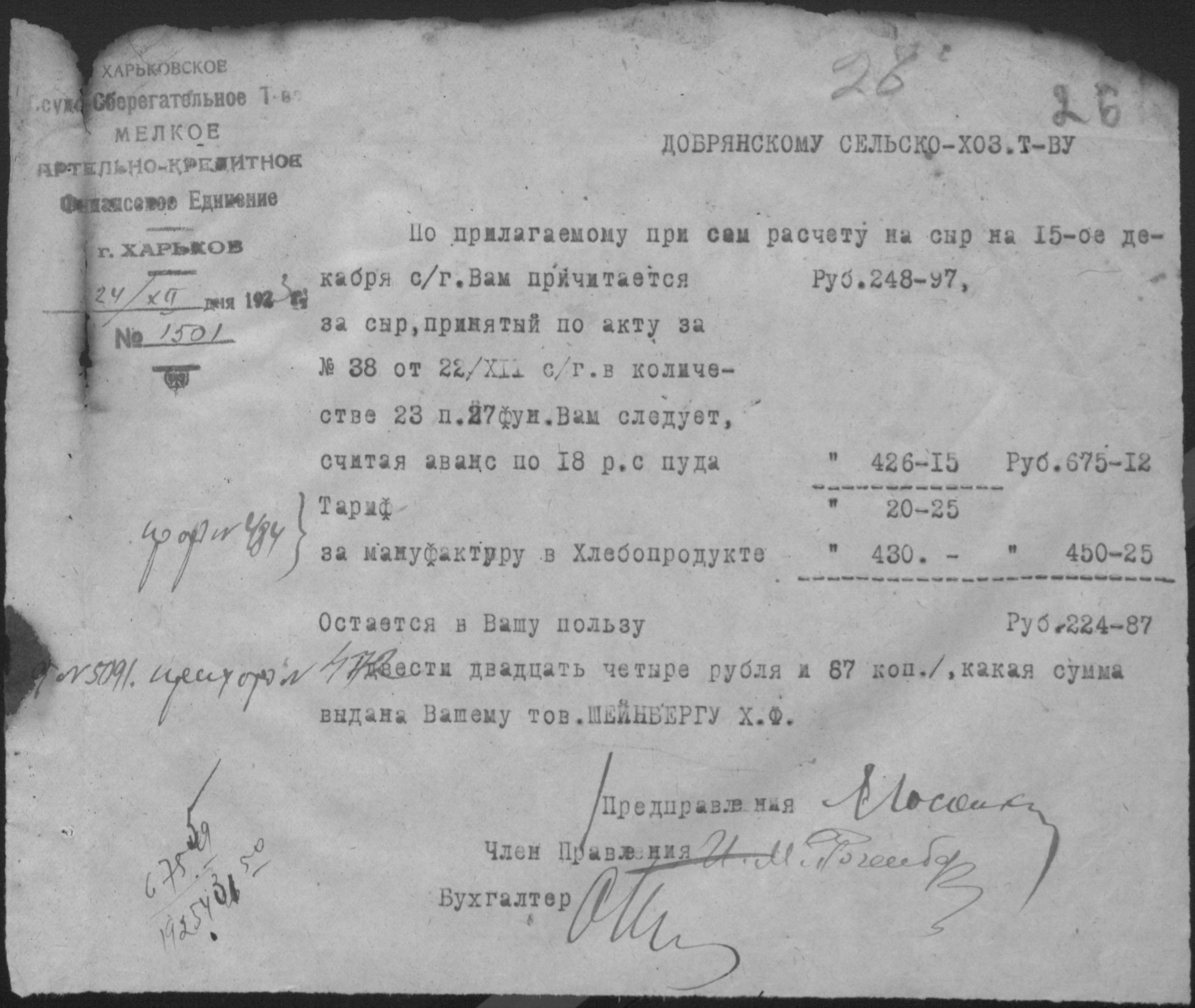 • • • • Справа № 5 “Листування з Харківським кредитно-ощадним товариством про видачу позичок на придбання сільськогосподарського інвентаря”