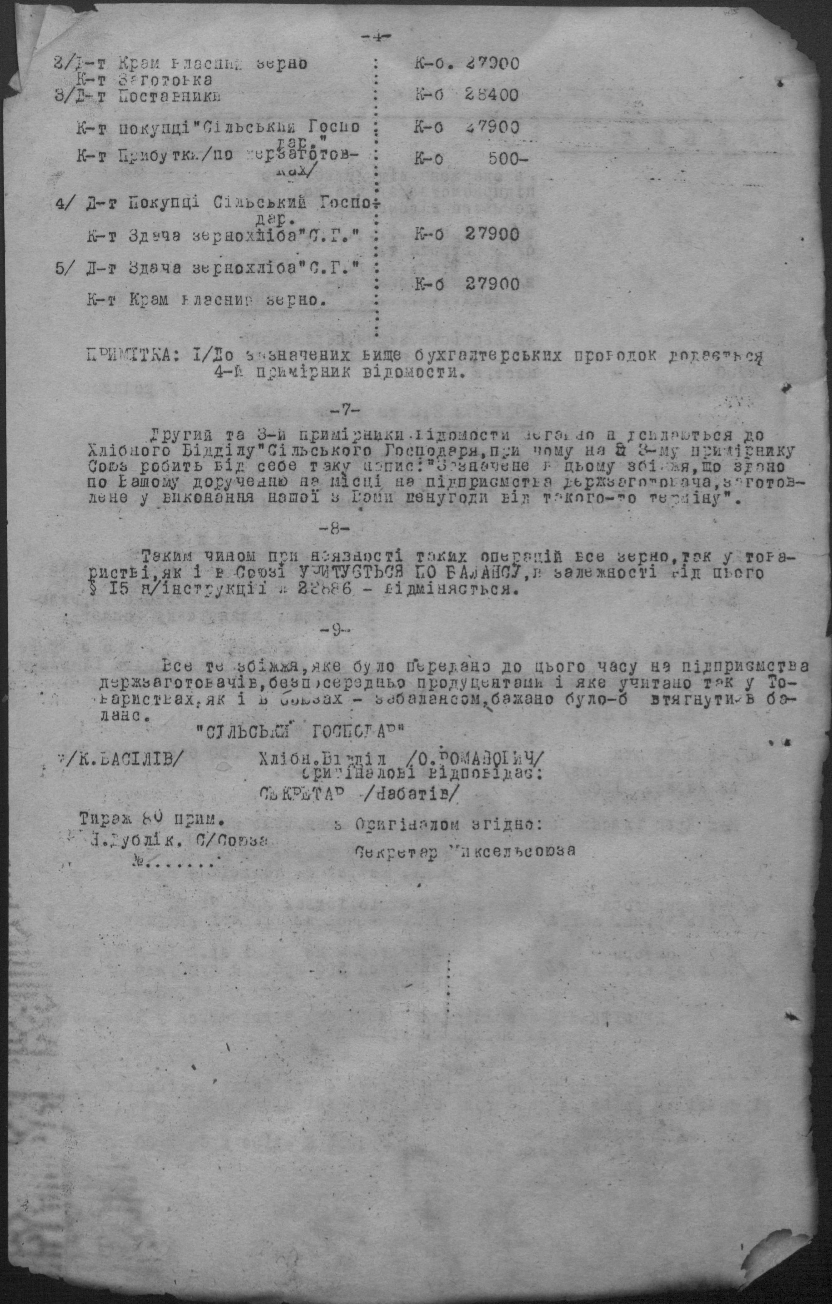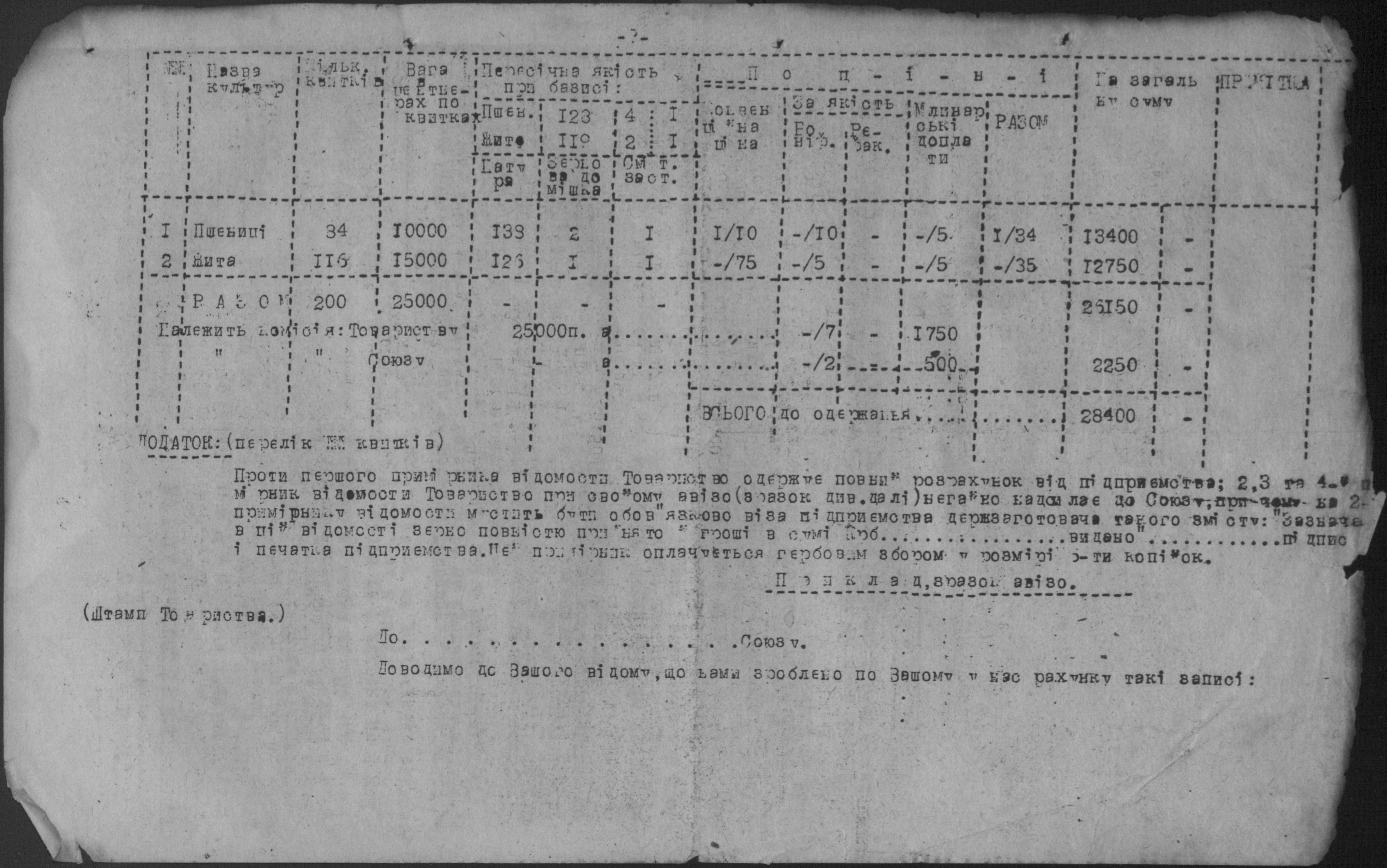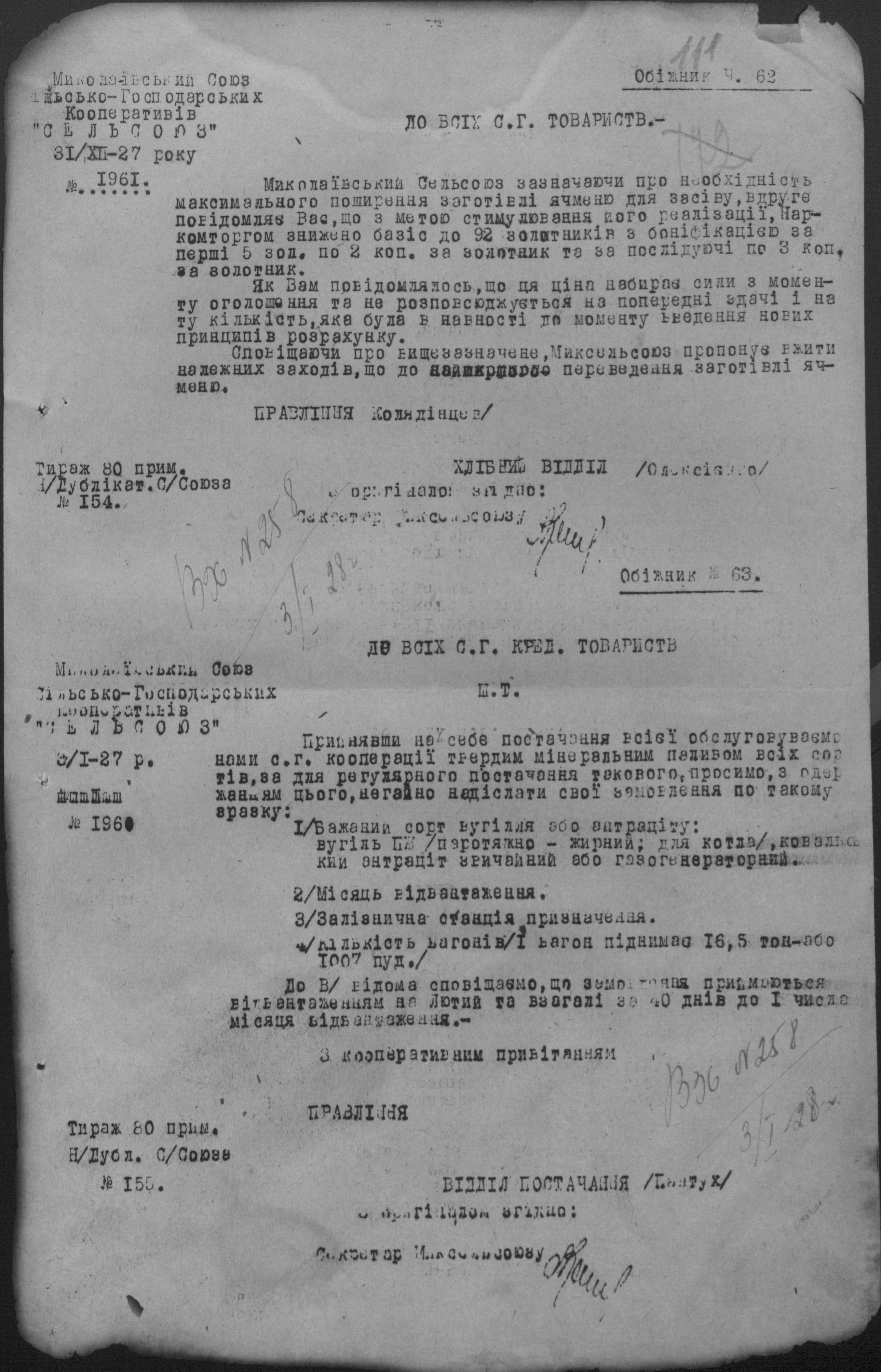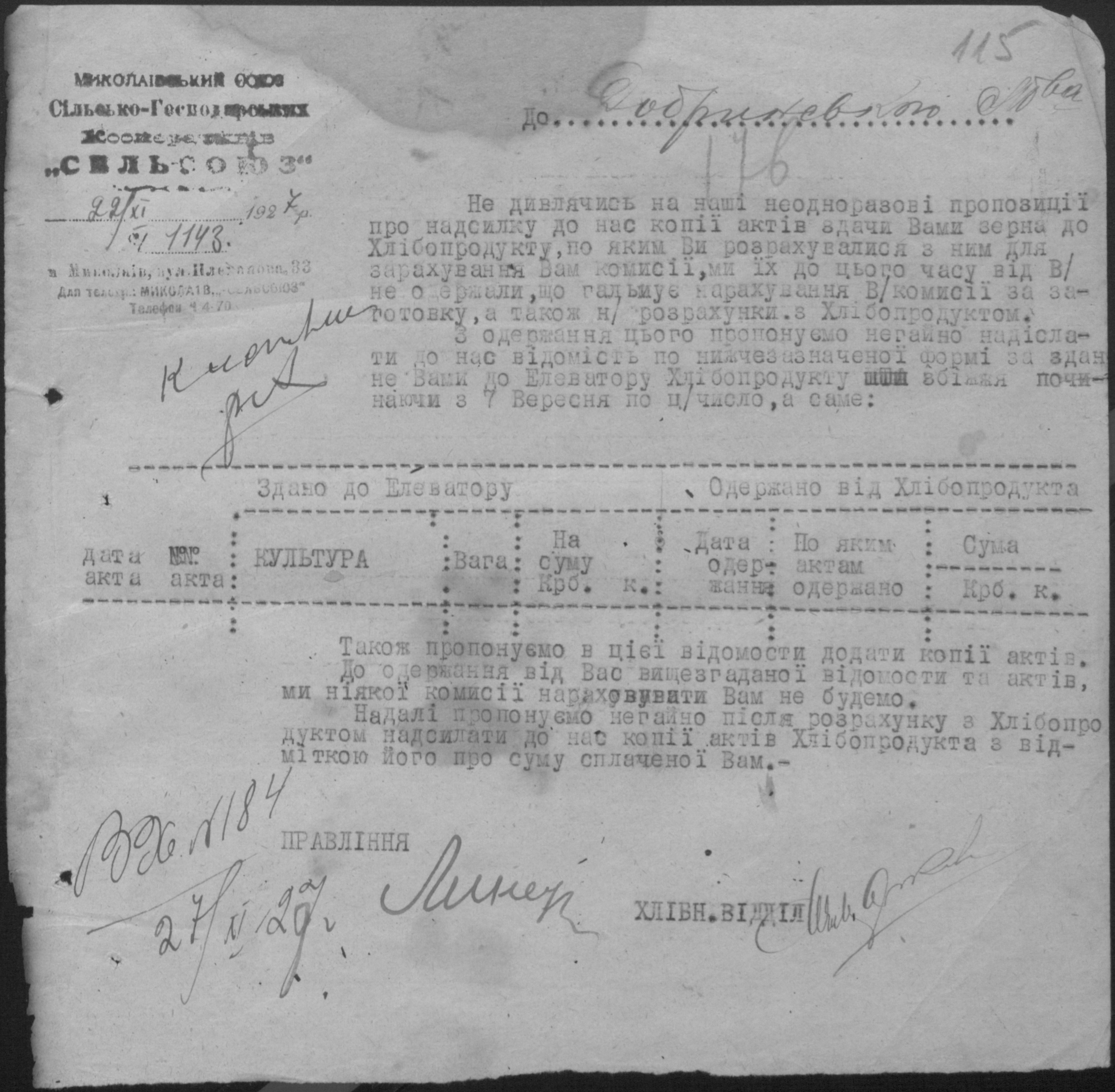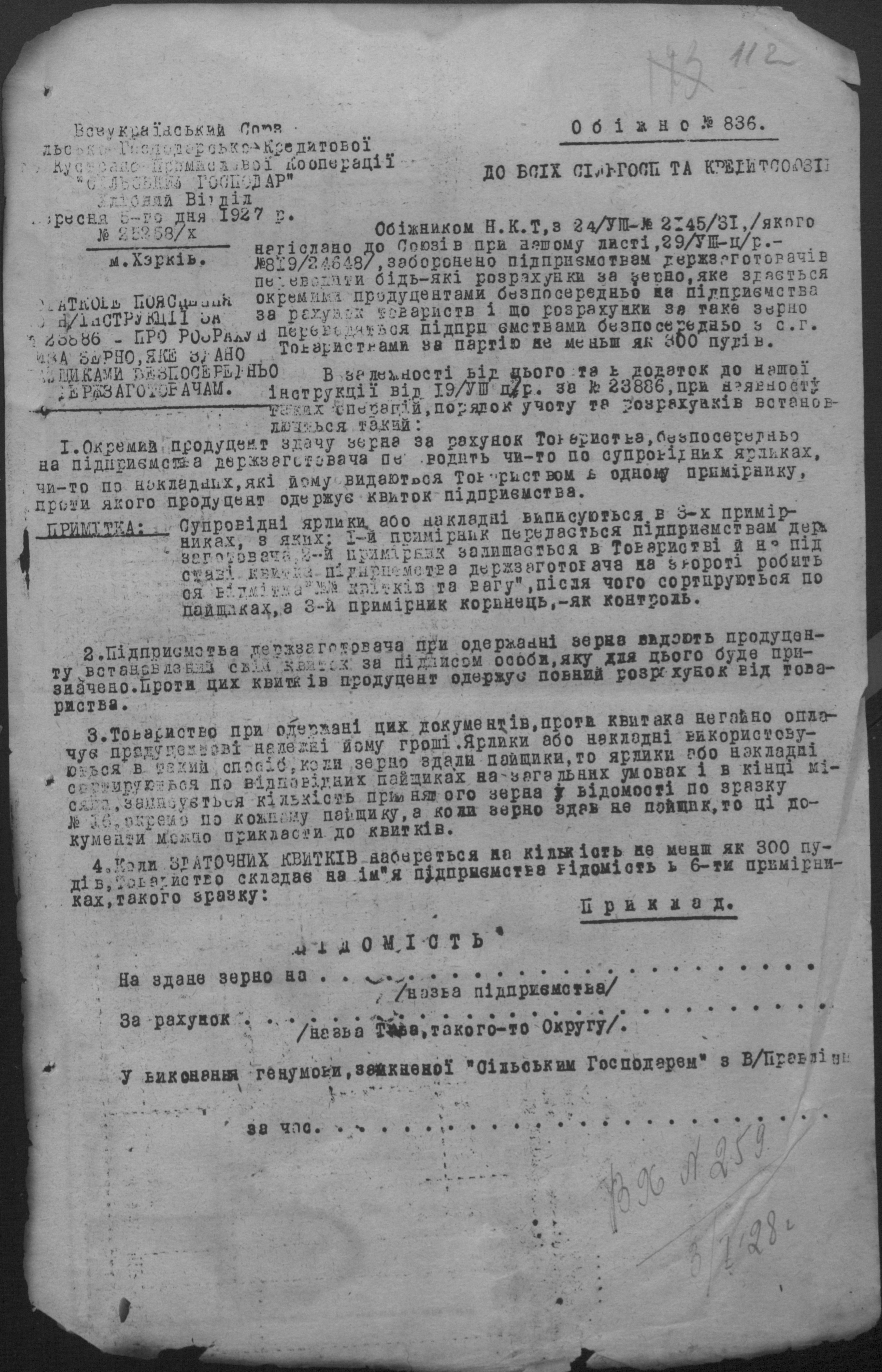 • • • • Справа № 7 “Обіжники Миколаївської спілки сільськогосподарських кооперативів «Сільсоюз», Всеукраїнської спілки «Сільський господар» про заготівлю зерна”