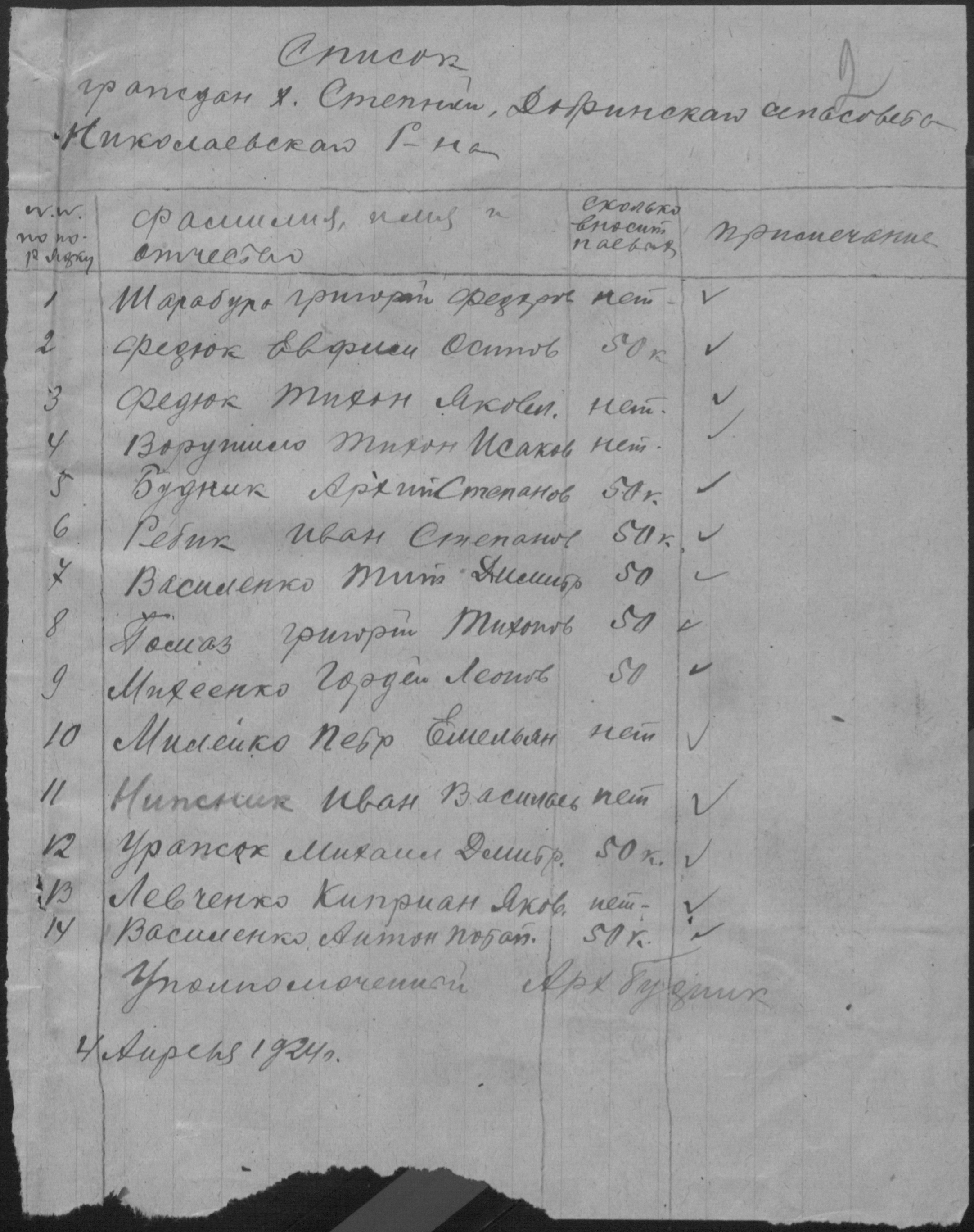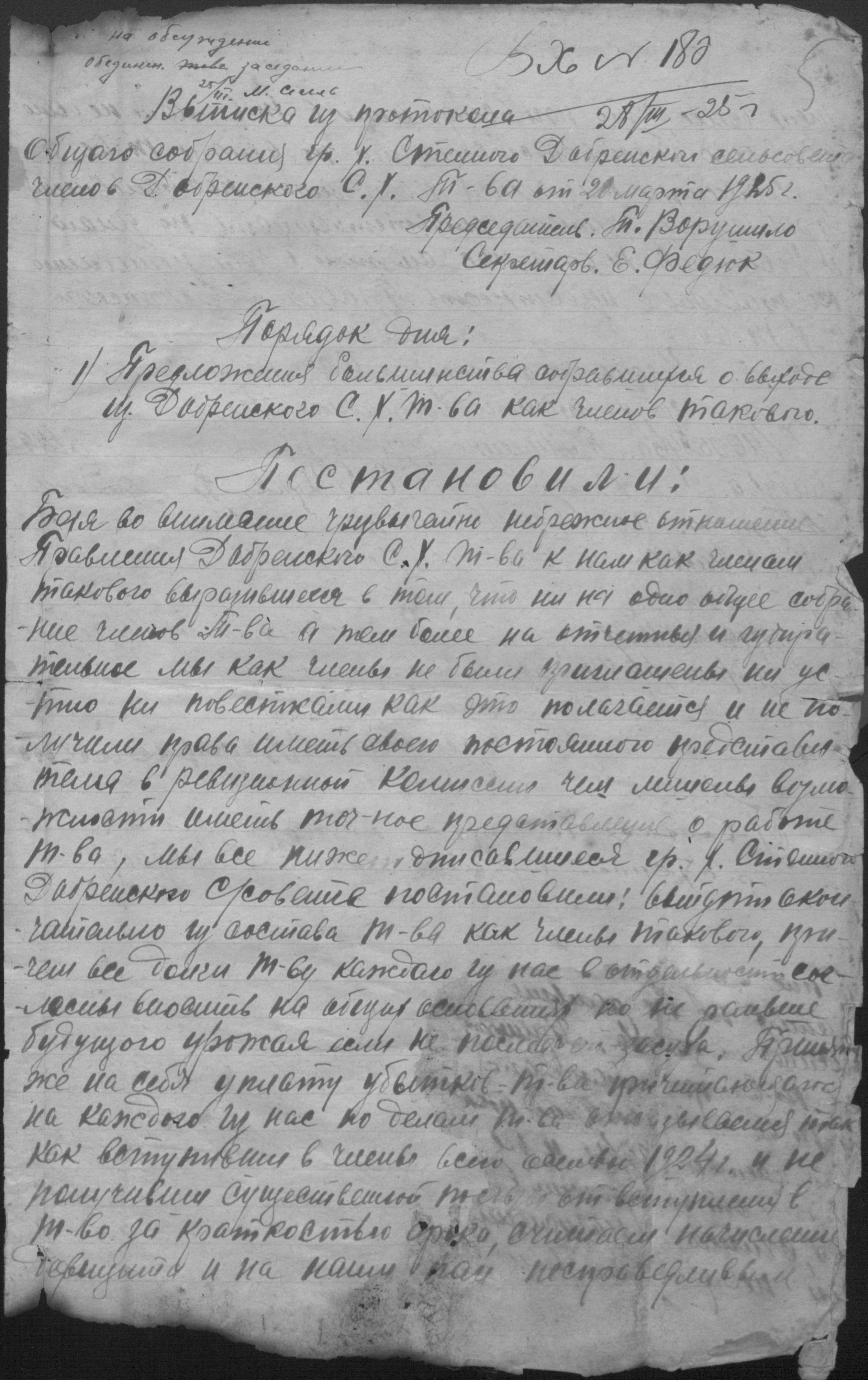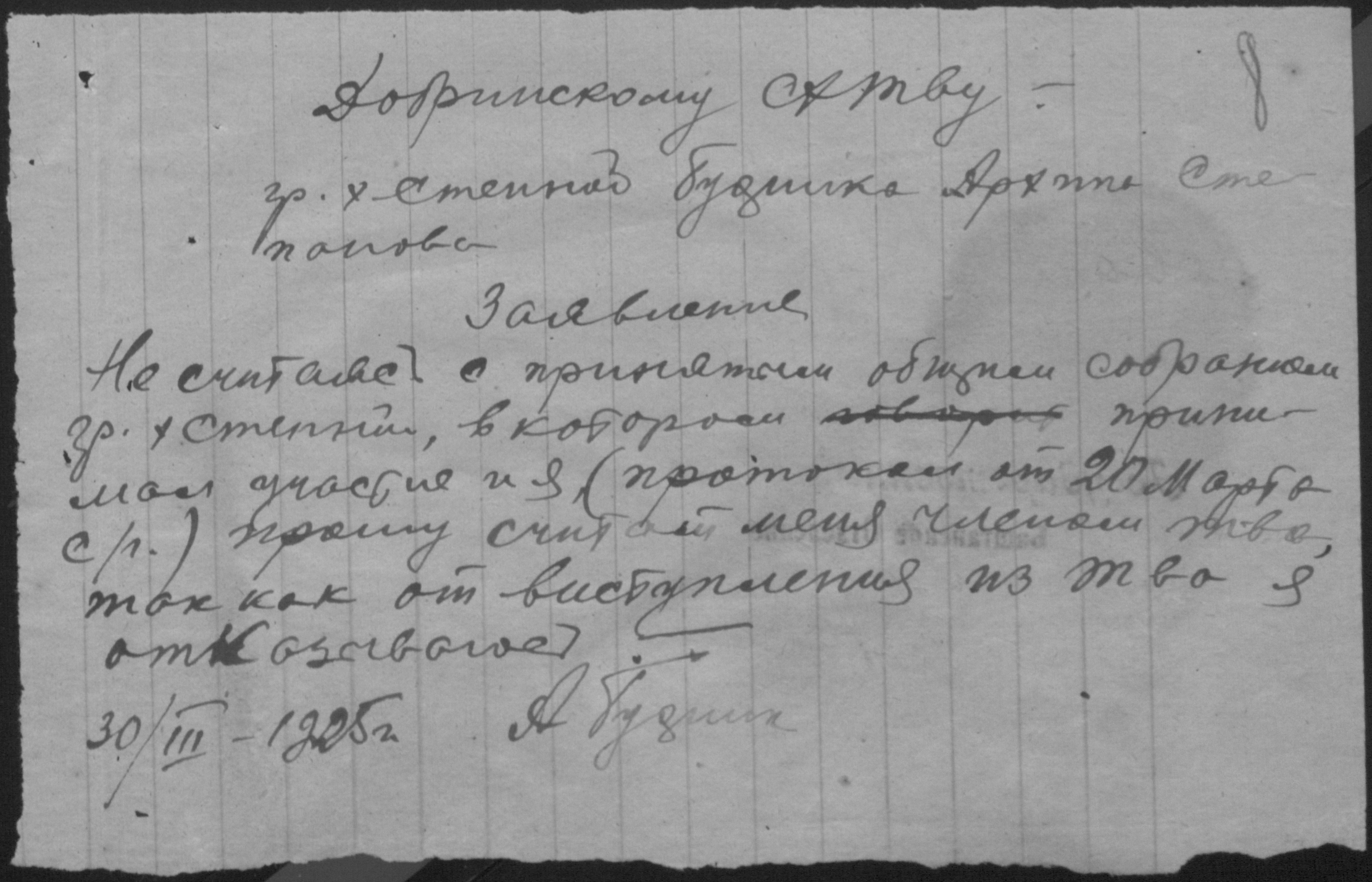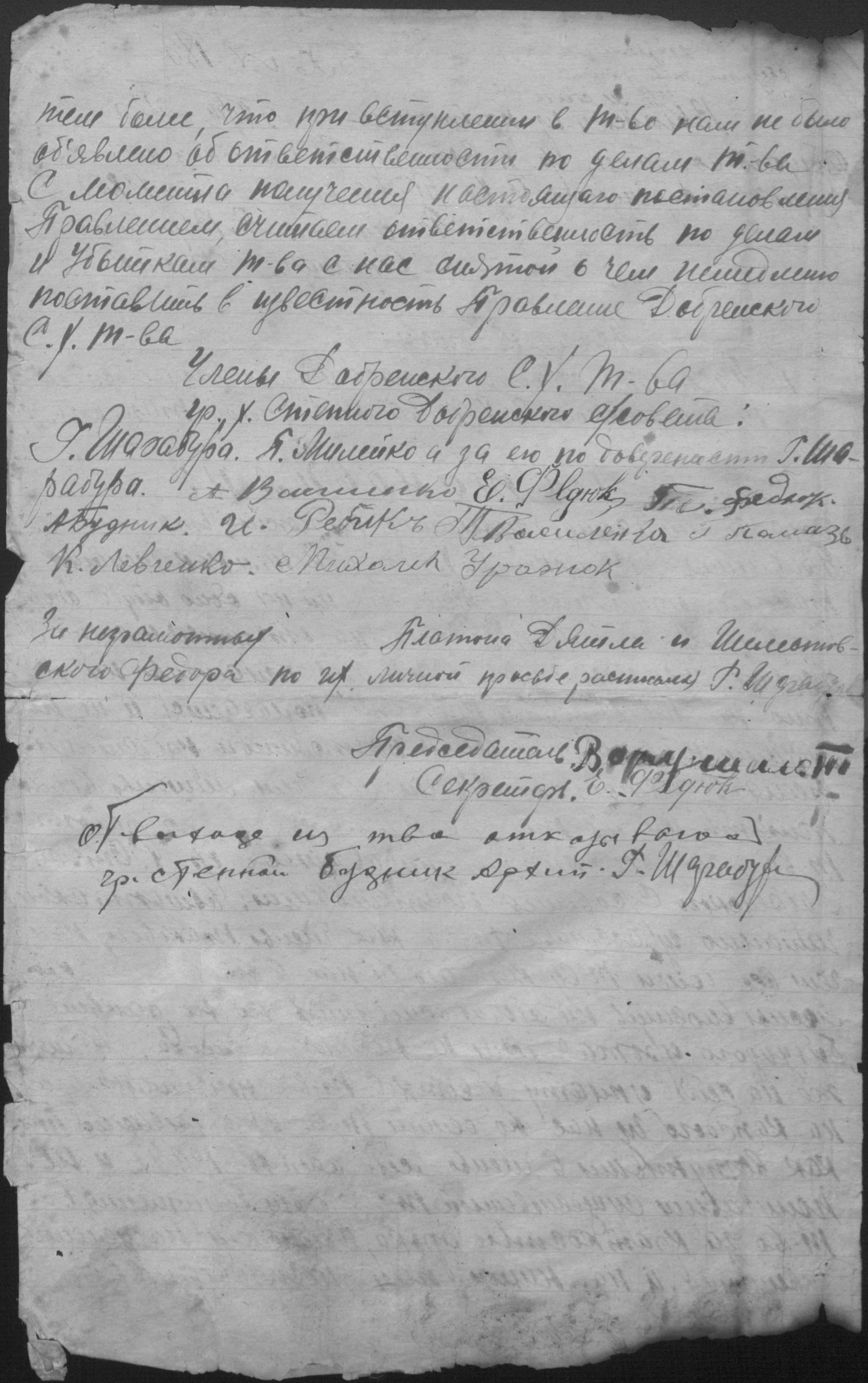 • • • • Справа № 10 “Рішення загальних зборів громадян хутора Степного Добренської сільради Миколаївського району про зарахування переселенців до товариства; список громадян хутора”