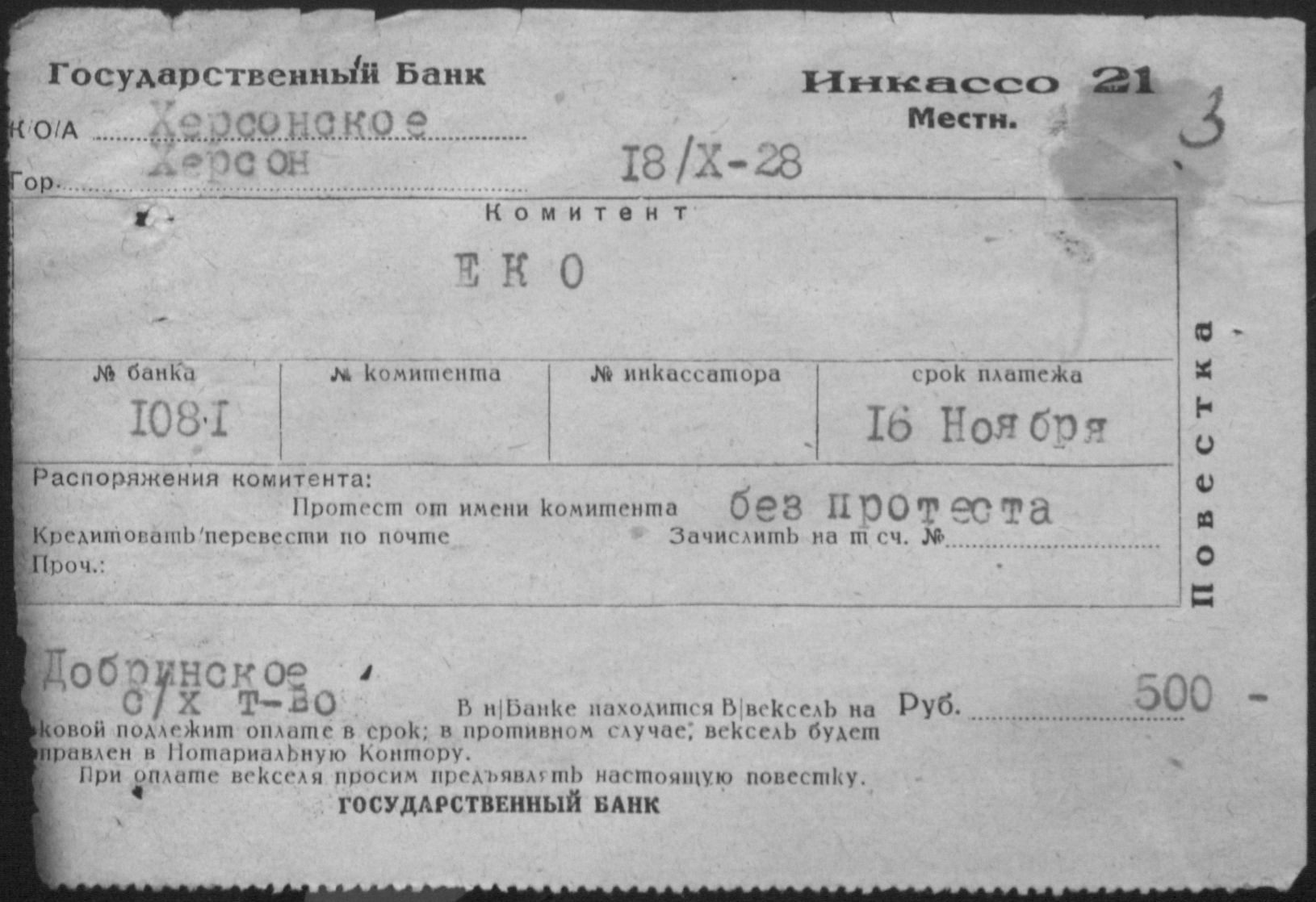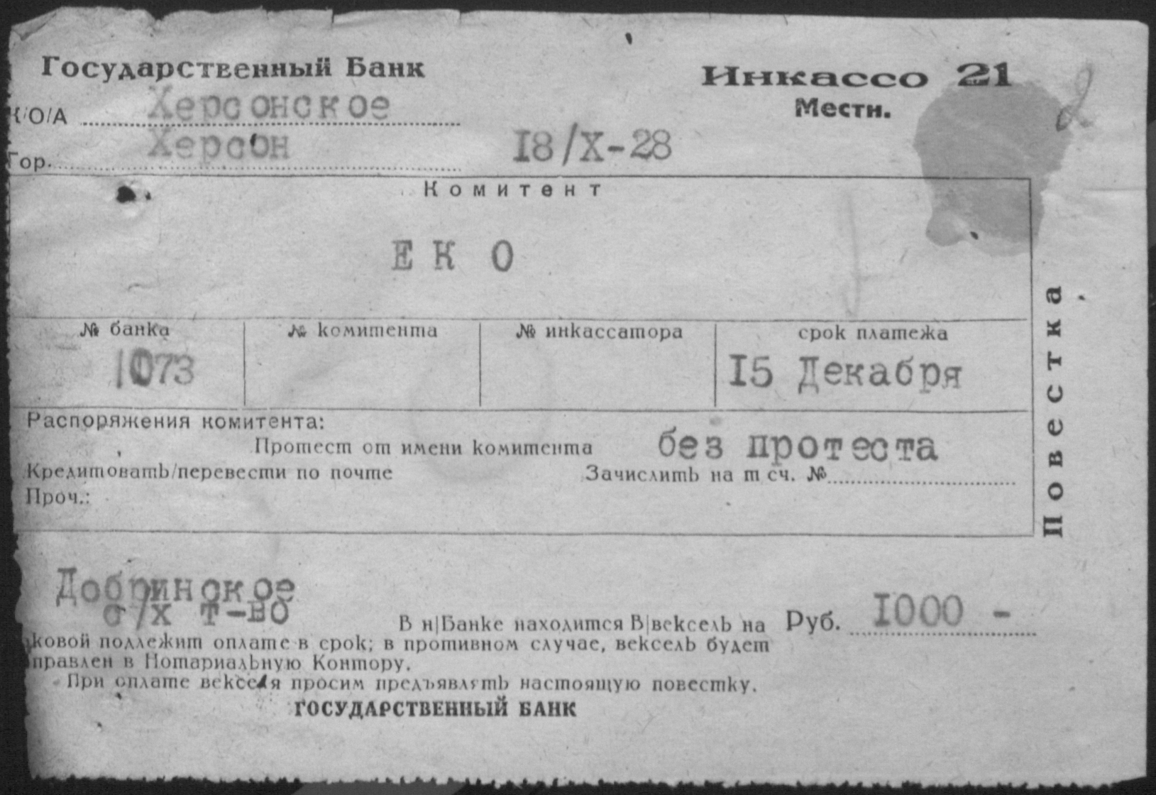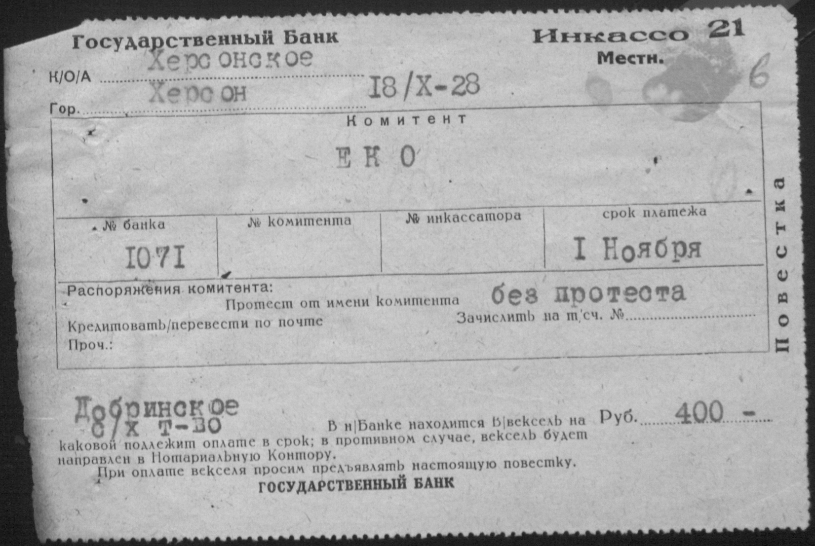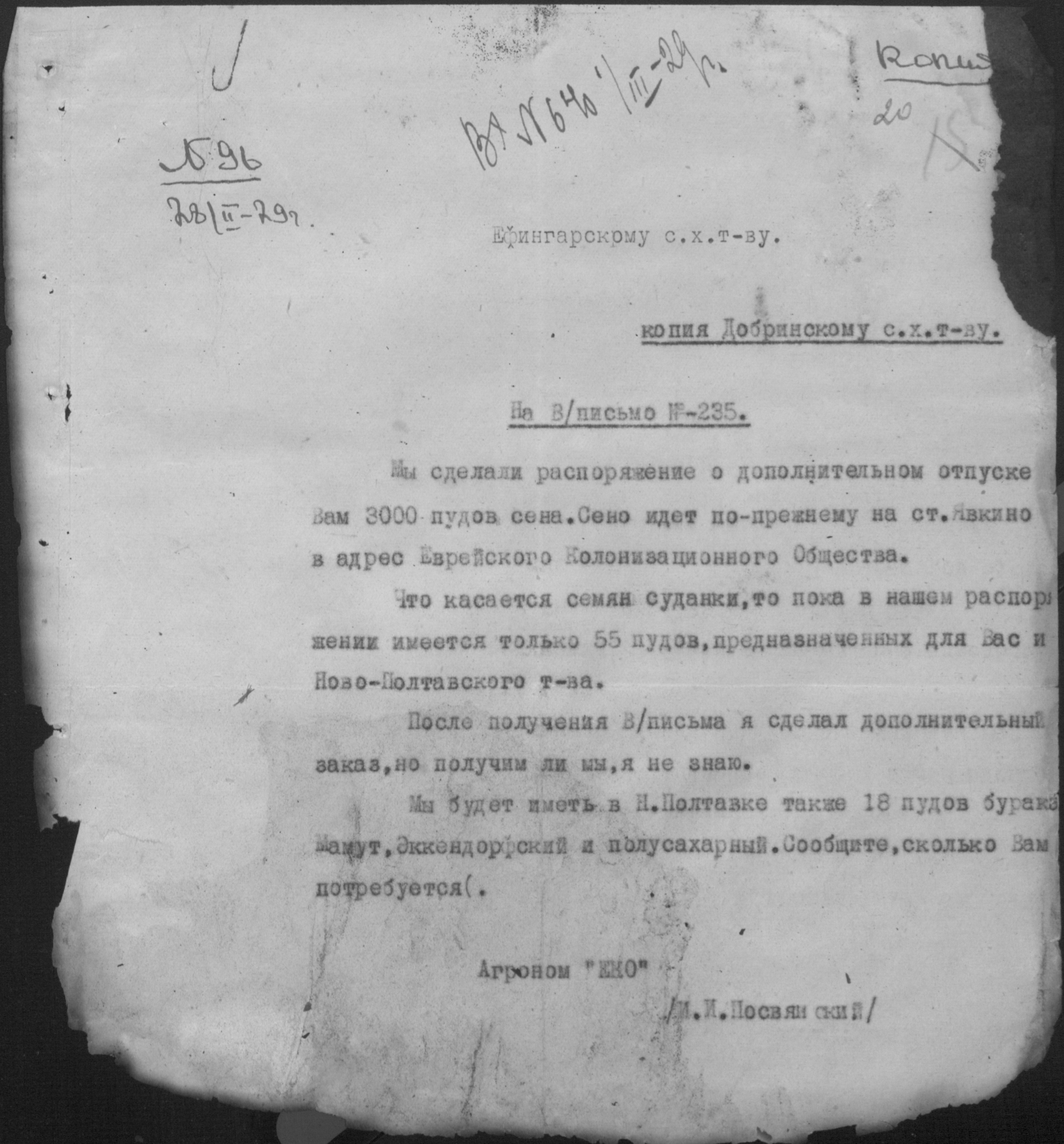 ◦ ◦ Фонд № Р-398 “Добренське сільськогосподарське кредитно-кооперативне товариство”