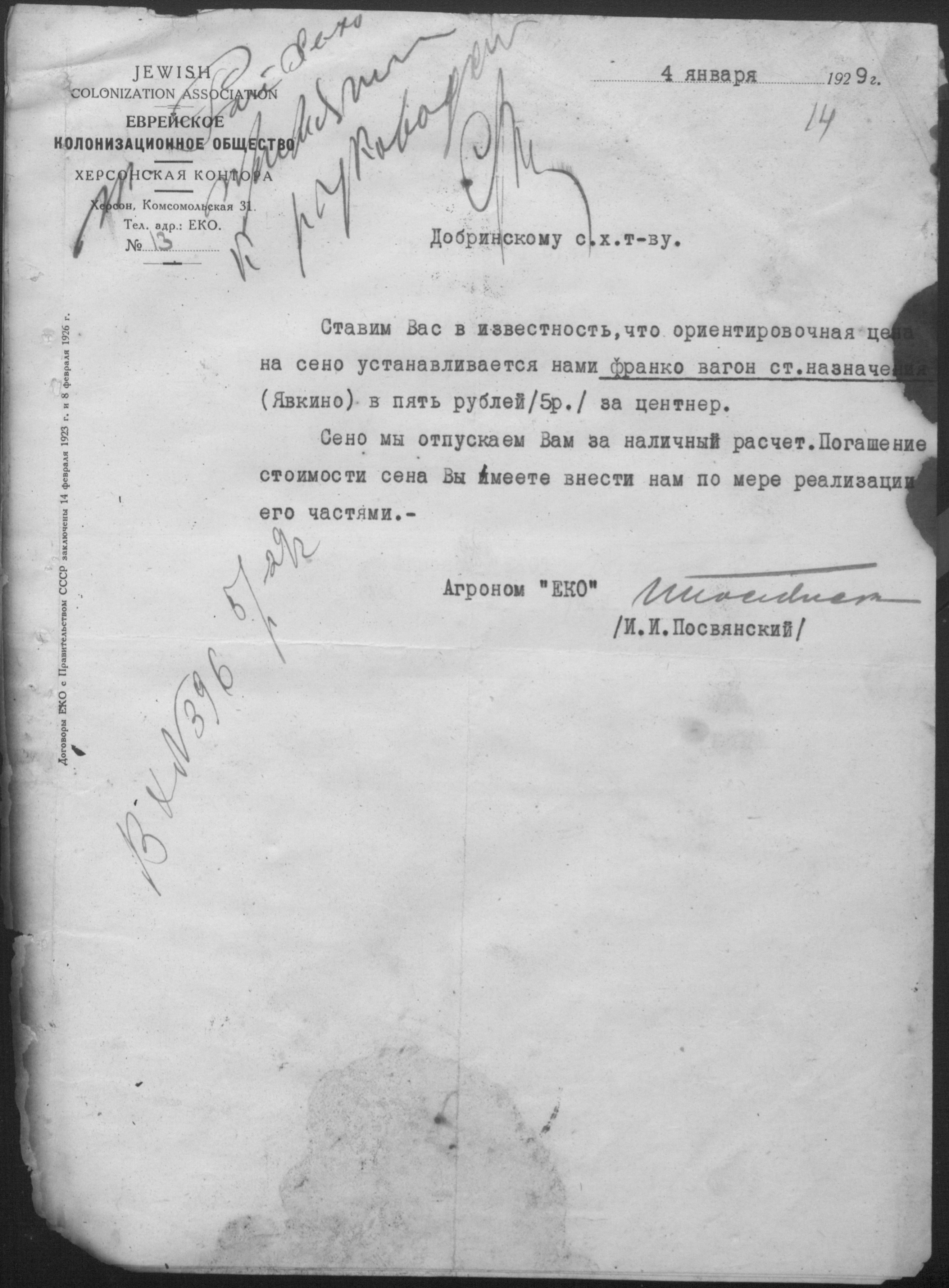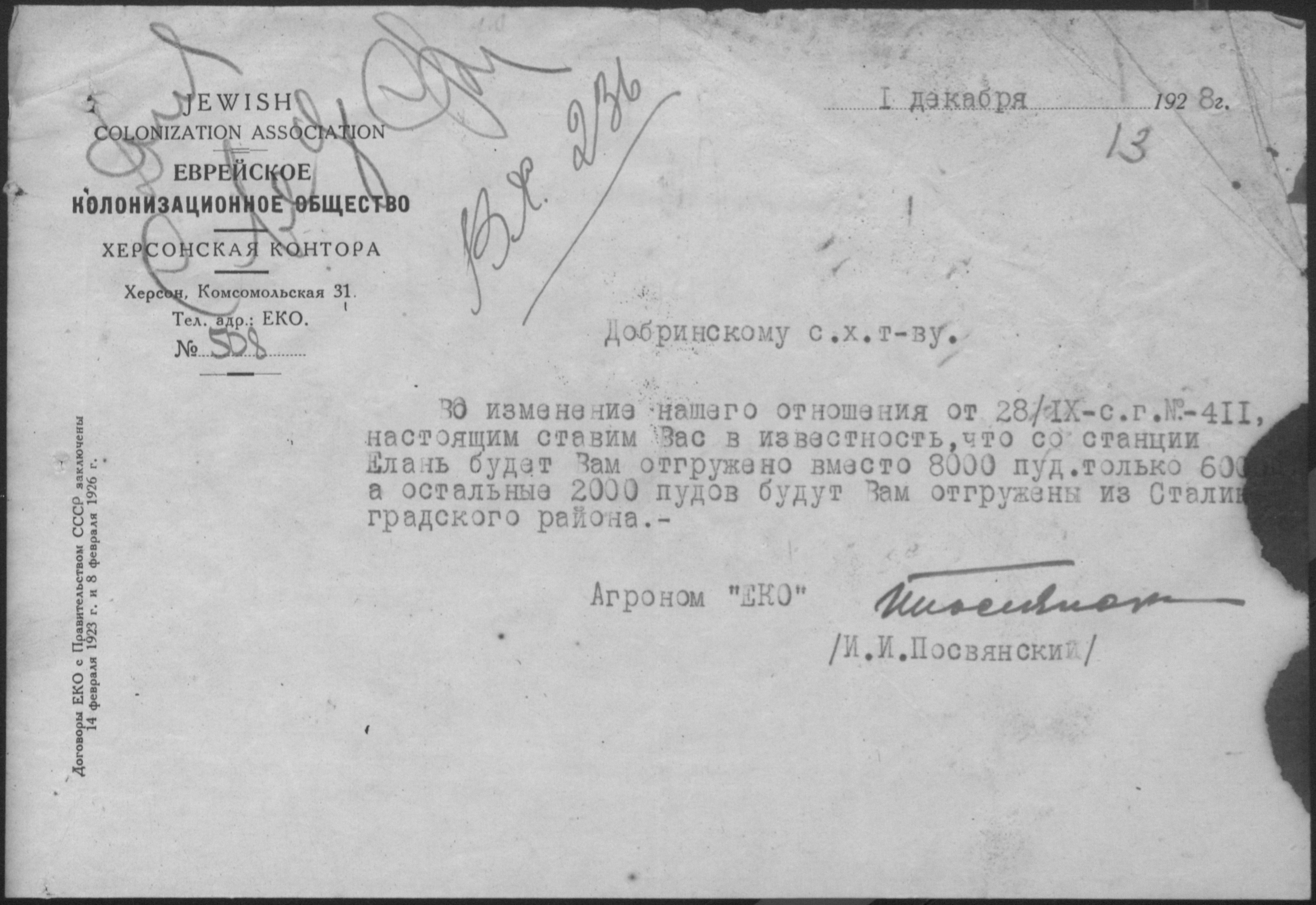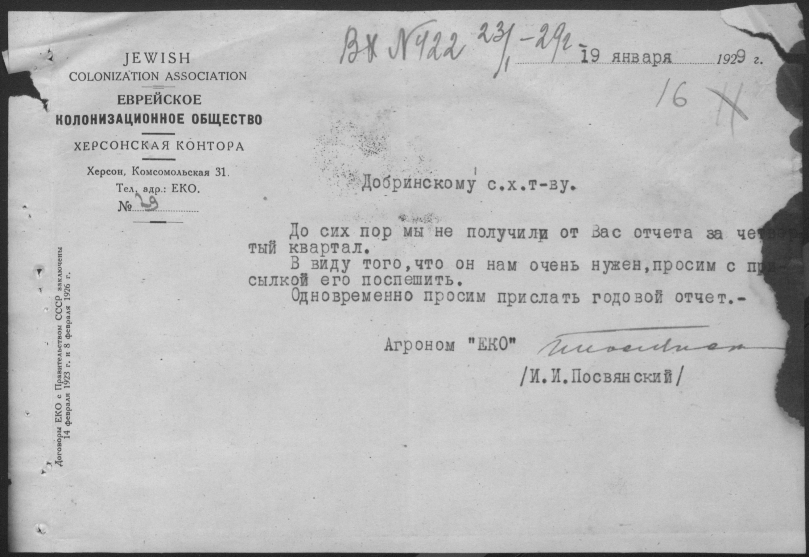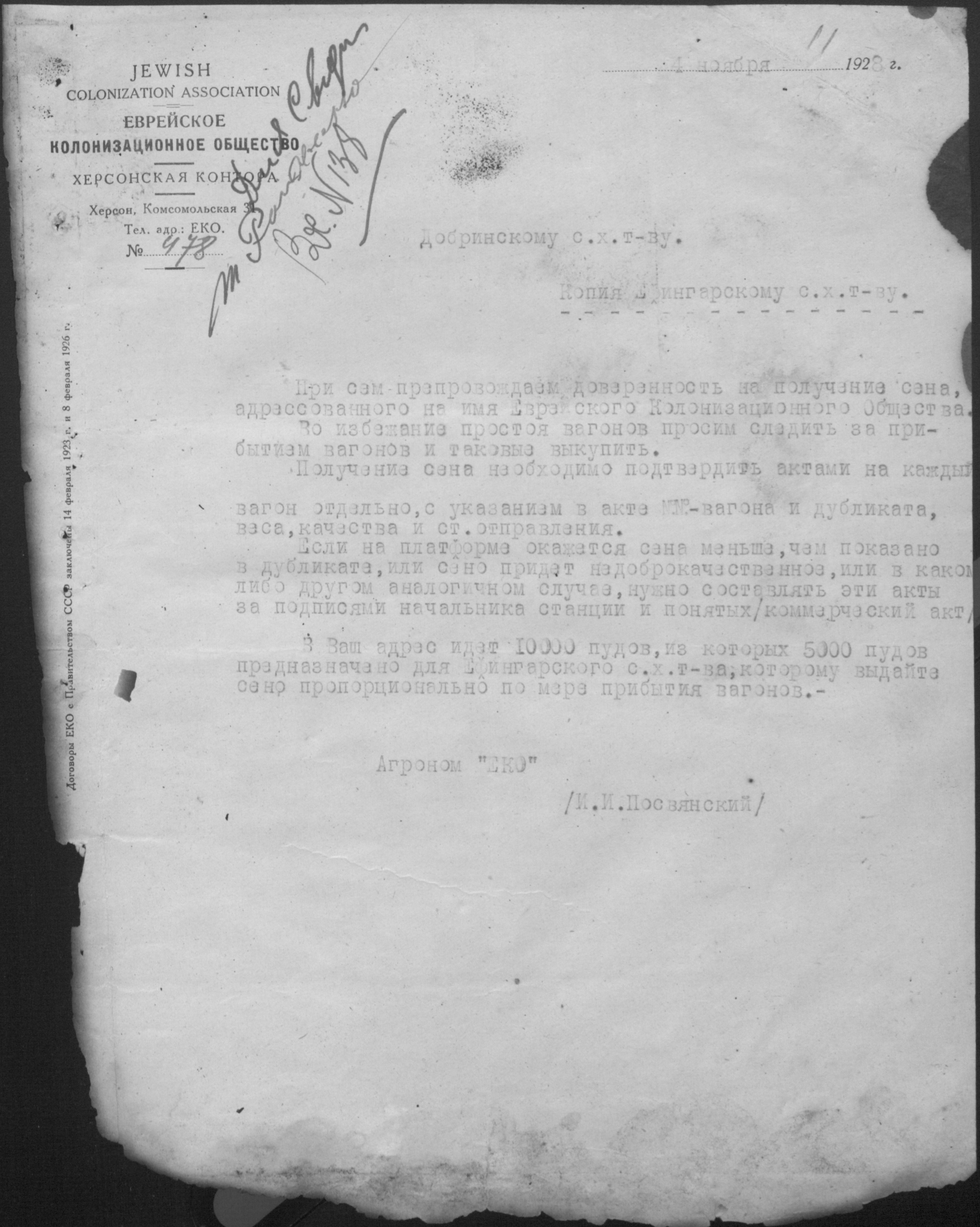 • • • • Справа № 11 “Листування з Херсонською конторою Єврейського колонізаційного товариства про видачу позичок і погашення заборгованостей”