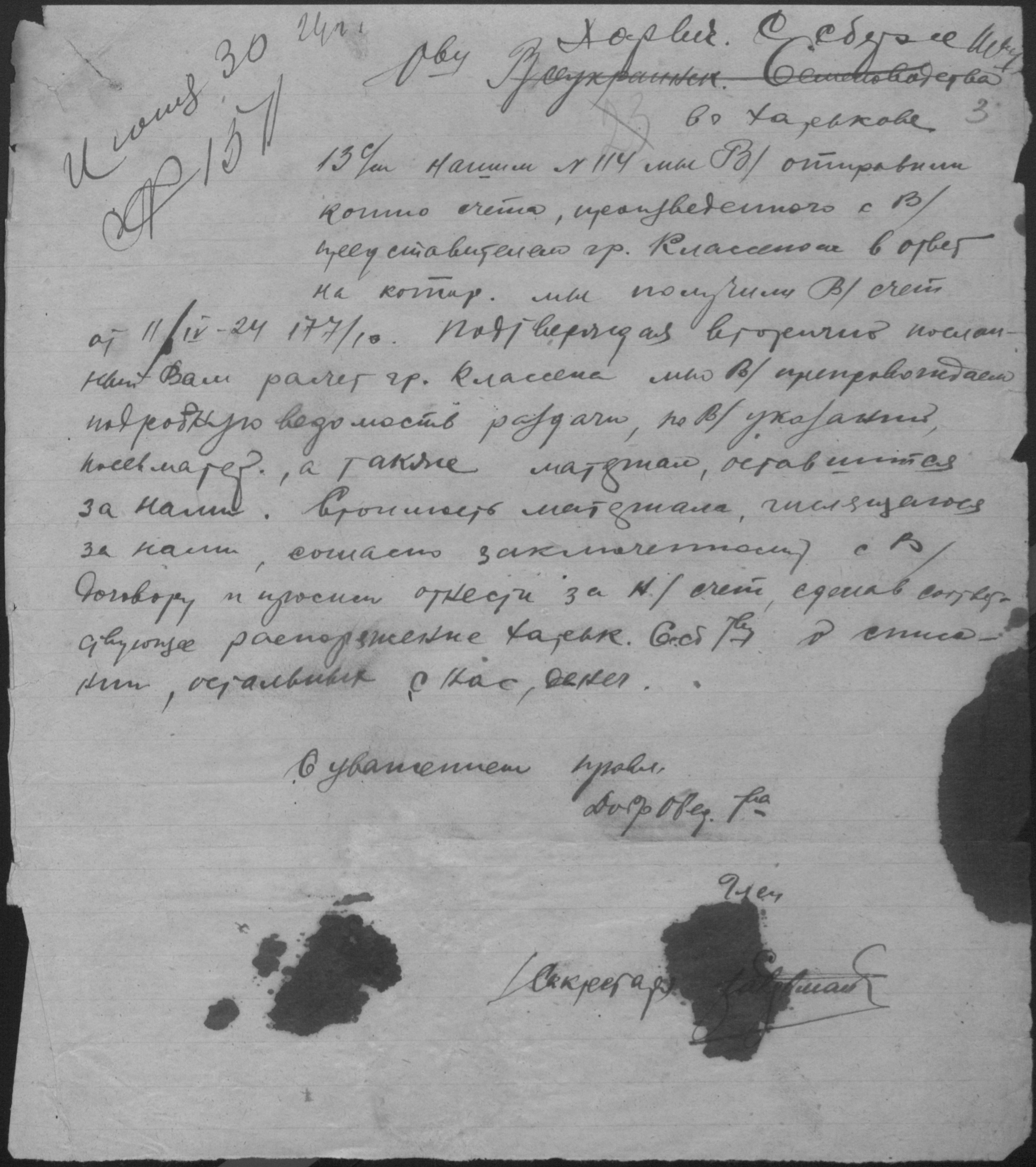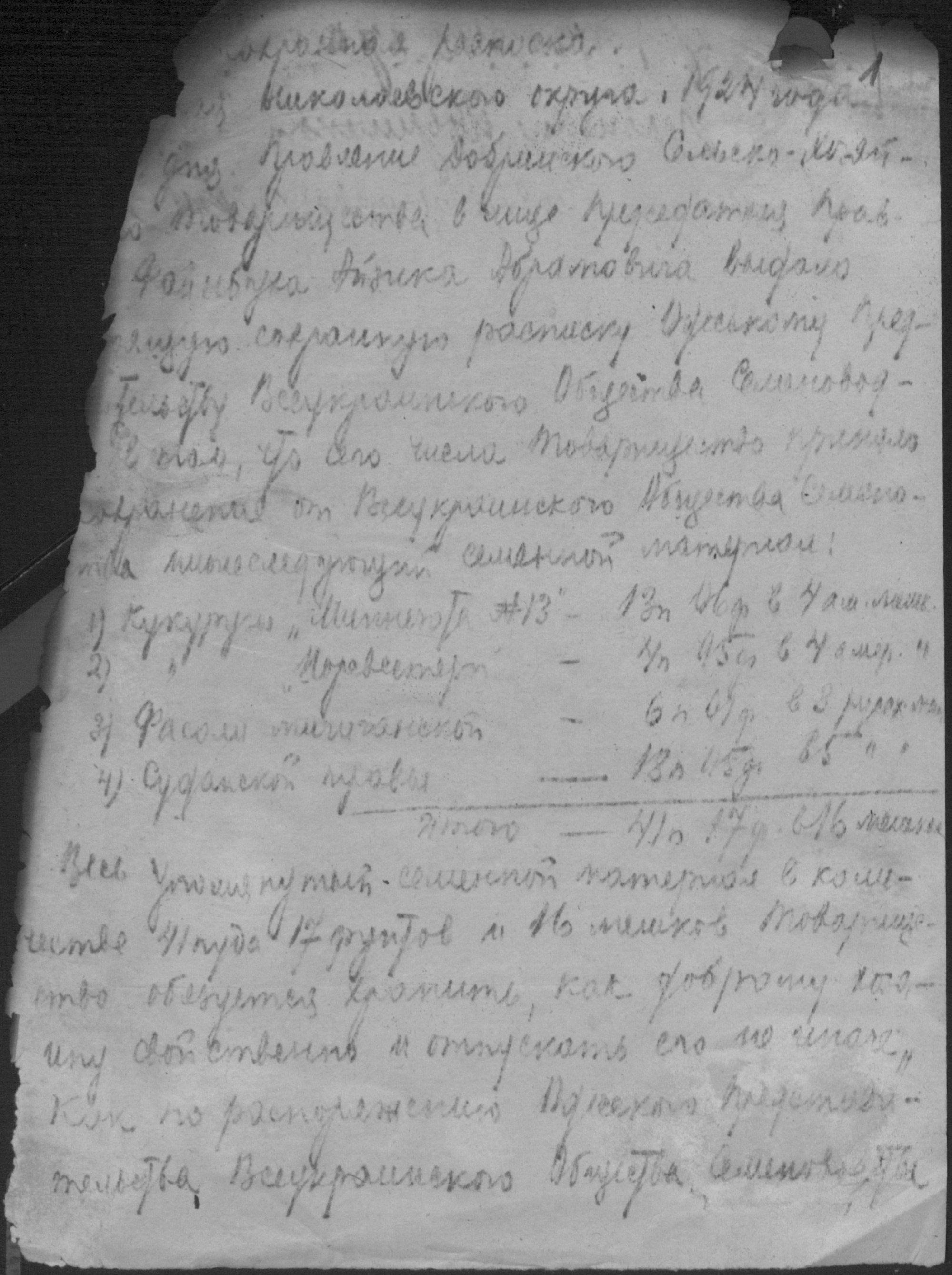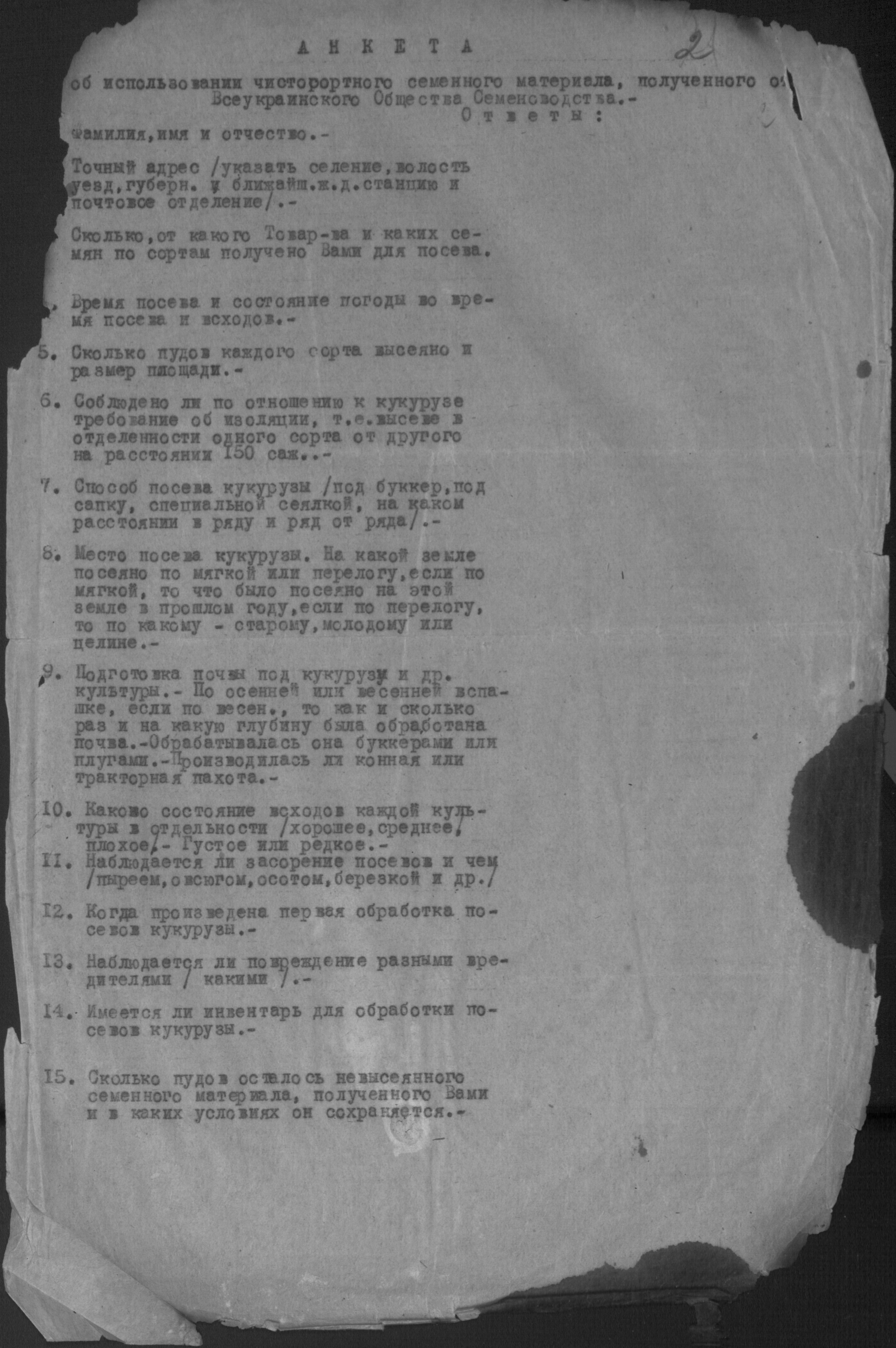 • • • • Справа № 13 “Листування з Всеукраїнським товариством насінництва про звітування щодо посівної кампанії, виплату грошей за насіння”