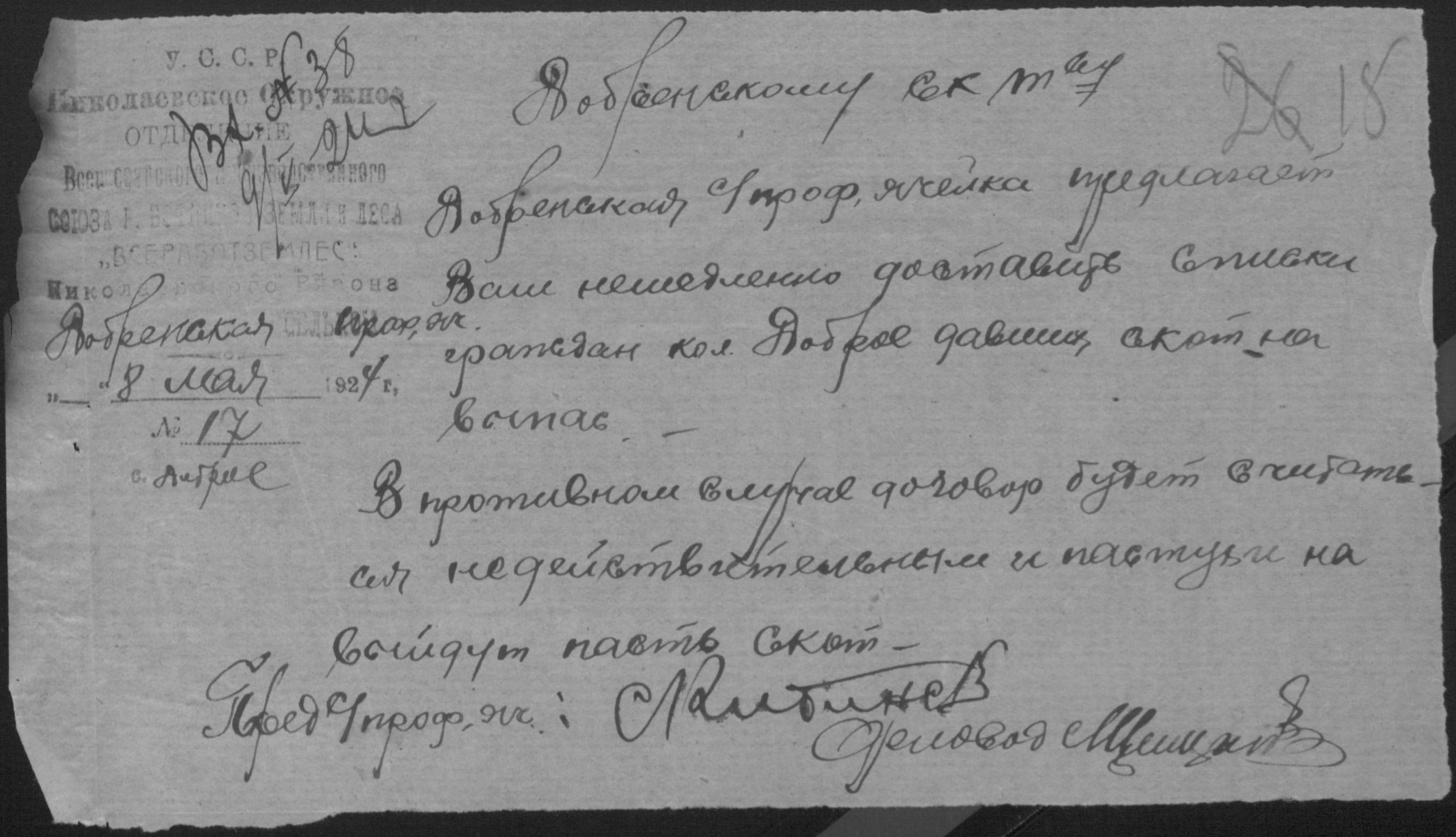 • • • • Справа № 15 “Листування з Миколаївським райвиконкомом, Миколаївською спілкою сільськогосподарських кооперативів «Сільсоюз» про придбання техніки і заготівлю зерна”