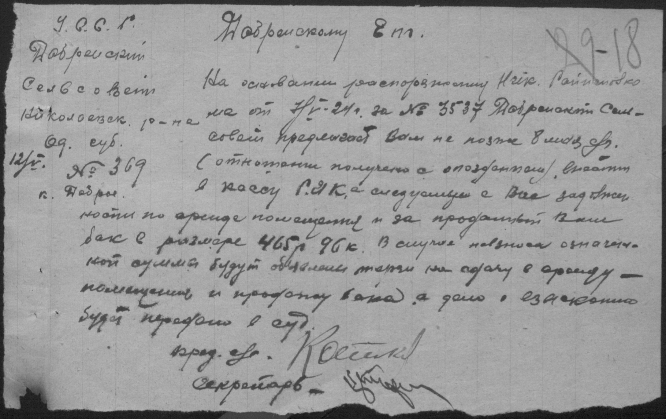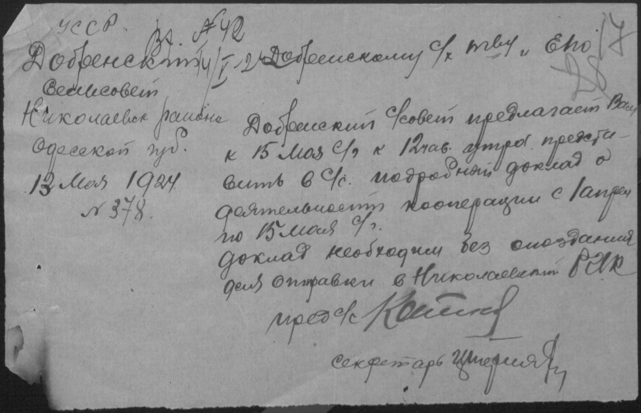 ◦ ◦ Фонд № Р-398 “Добренське сільськогосподарське кредитно-кооперативне товариство”