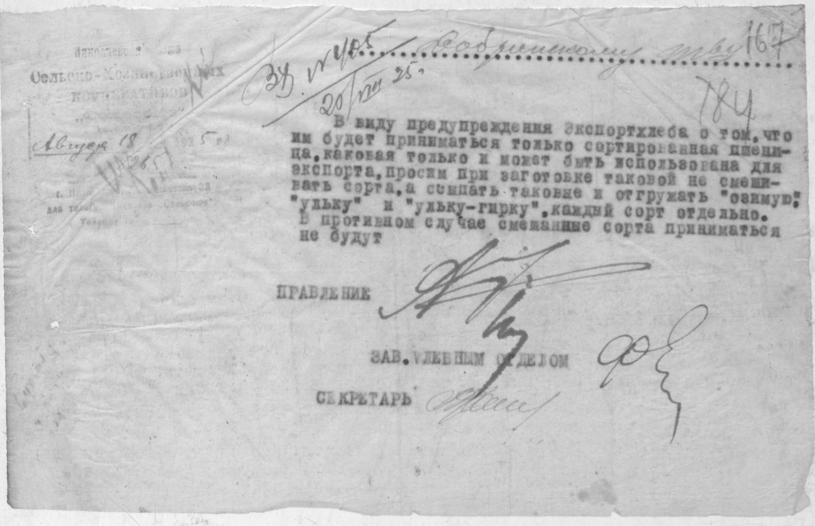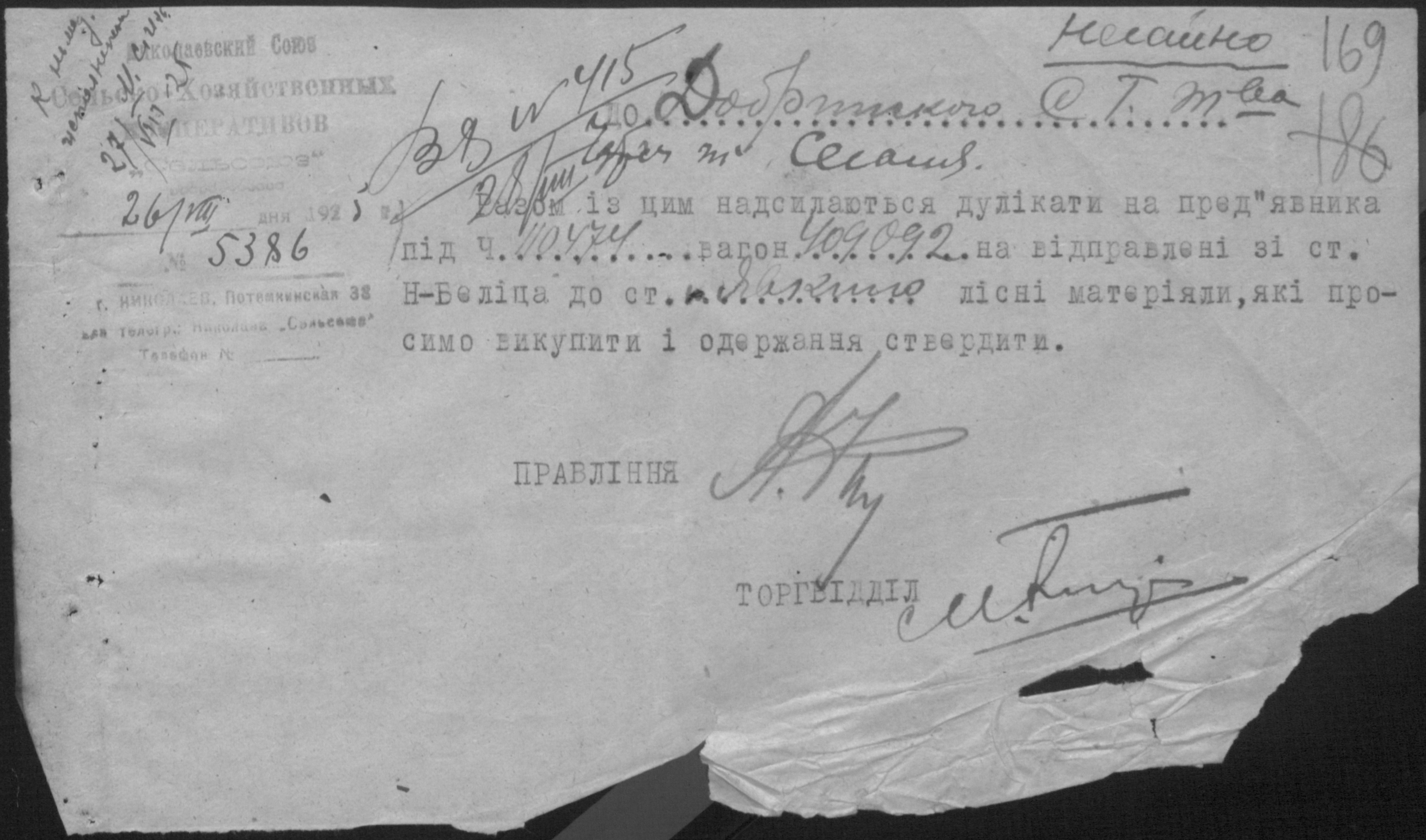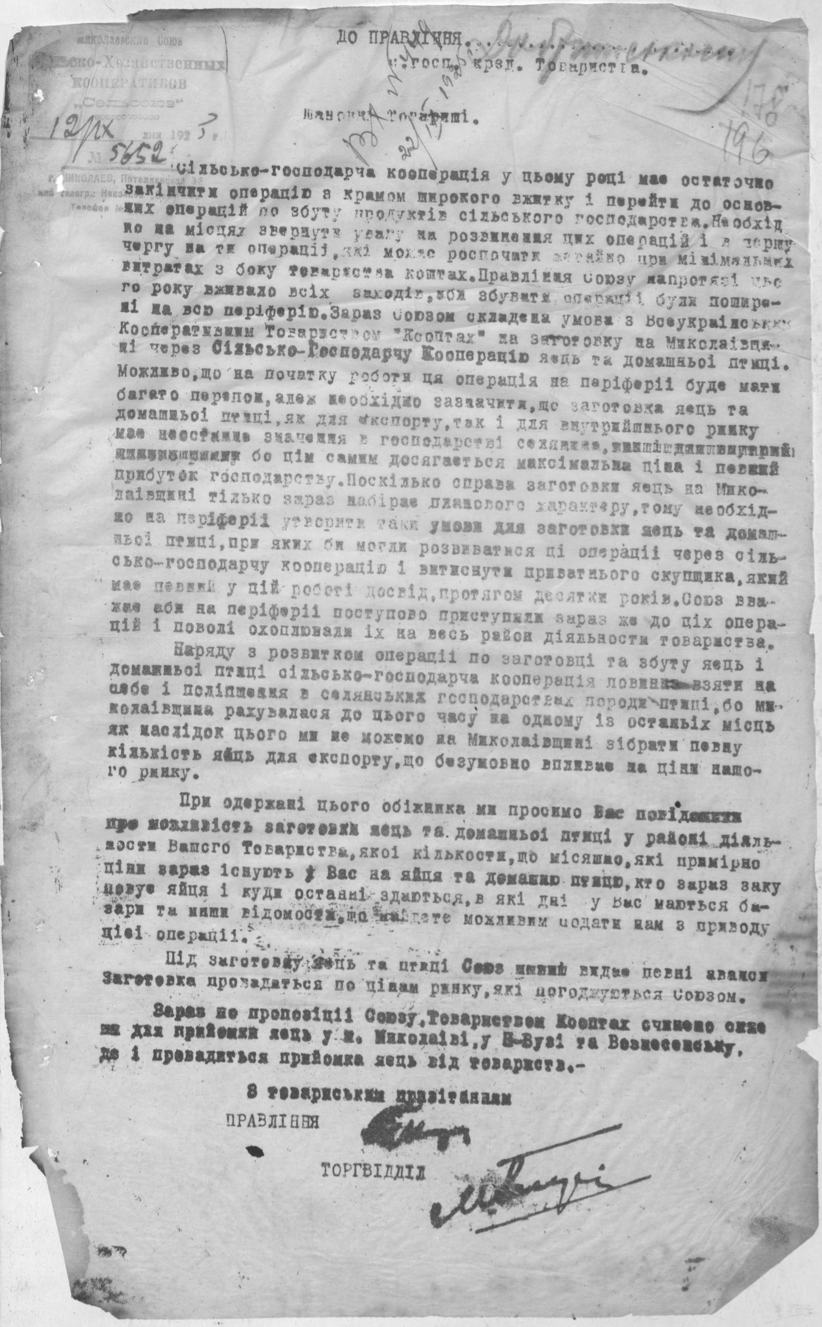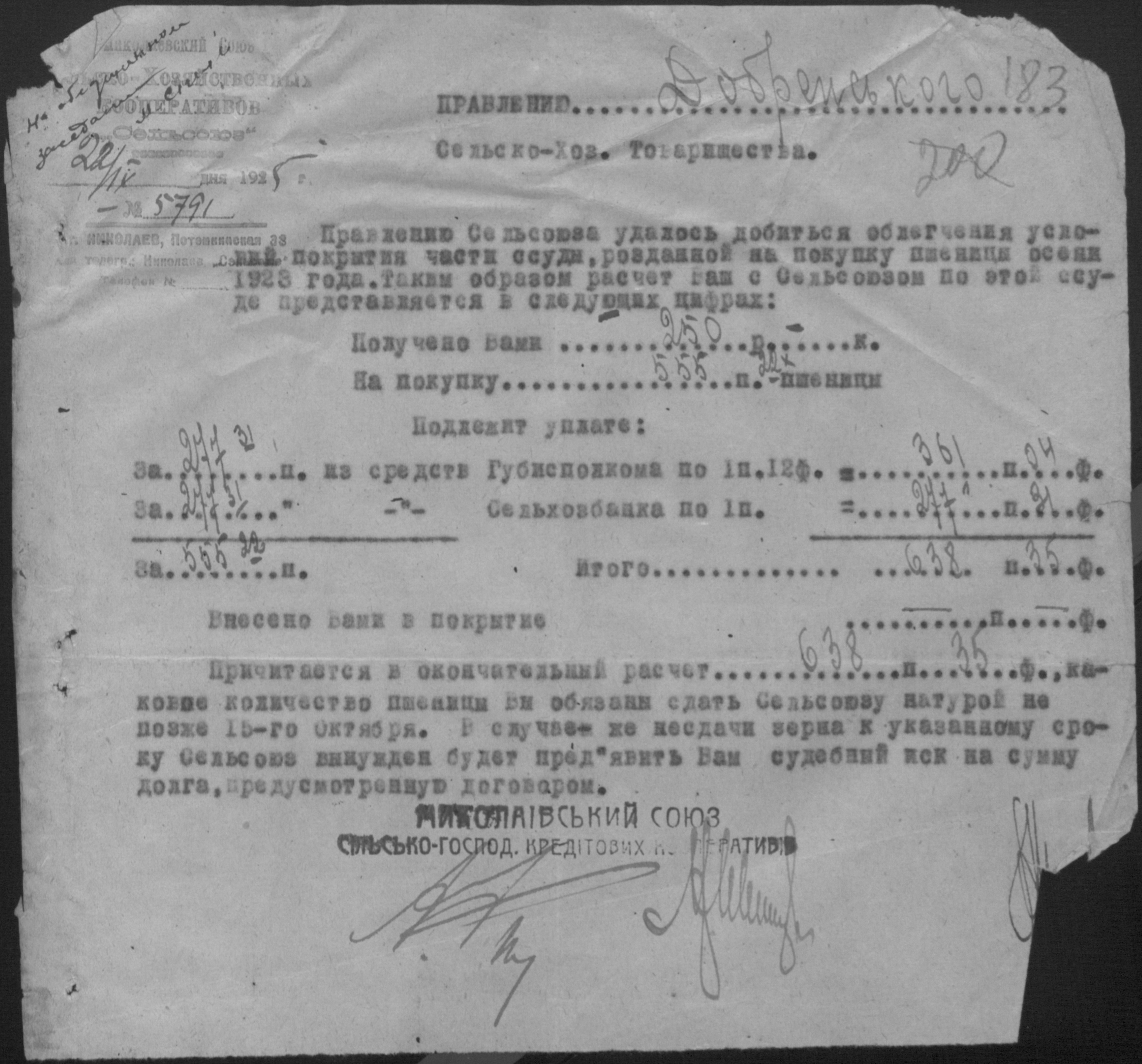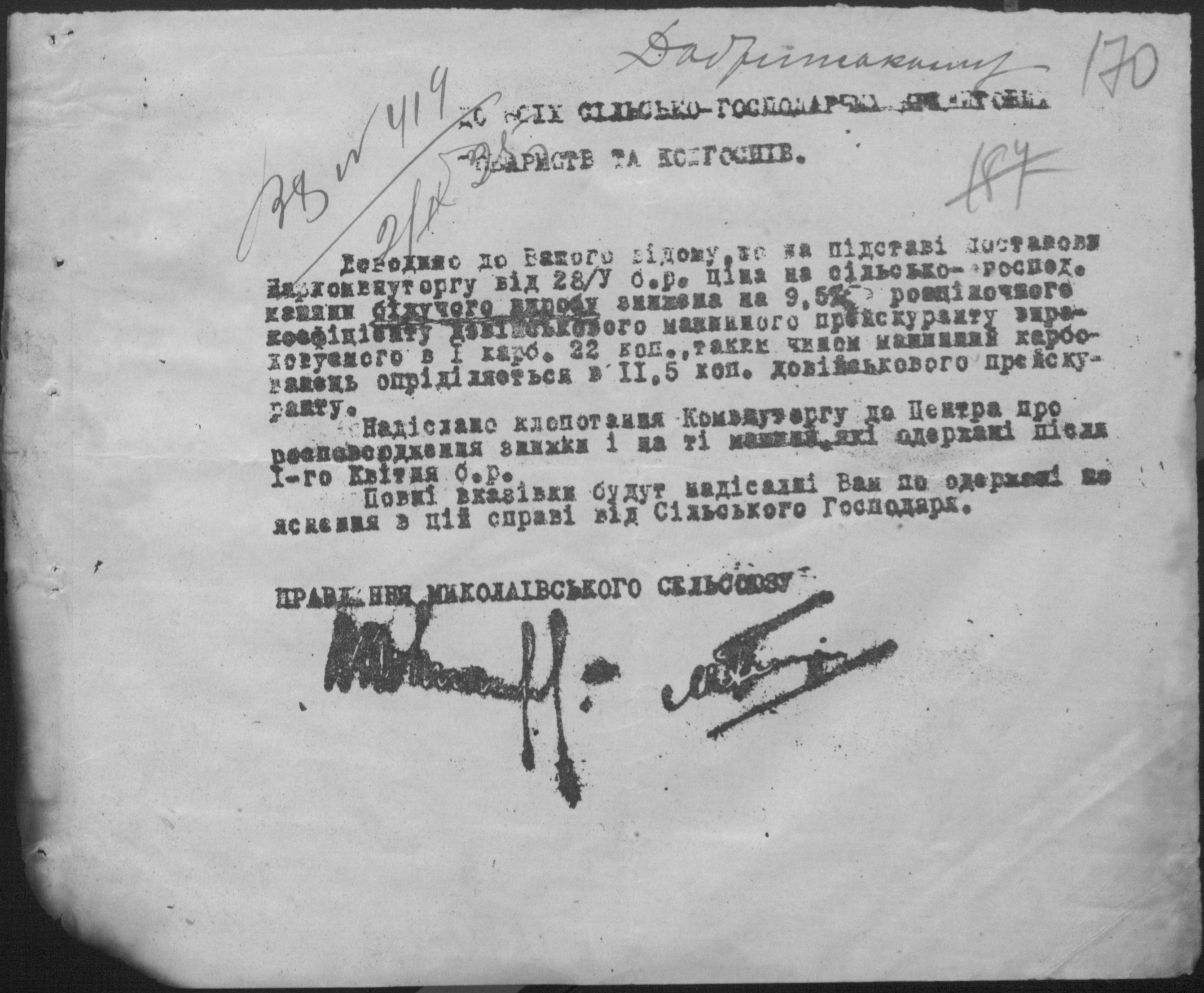 • • • • Справа № 15 “Листування з Миколаївським райвиконкомом, Миколаївською спілкою сільськогосподарських кооперативів «Сільсоюз» про придбання техніки і заготівлю зерна”