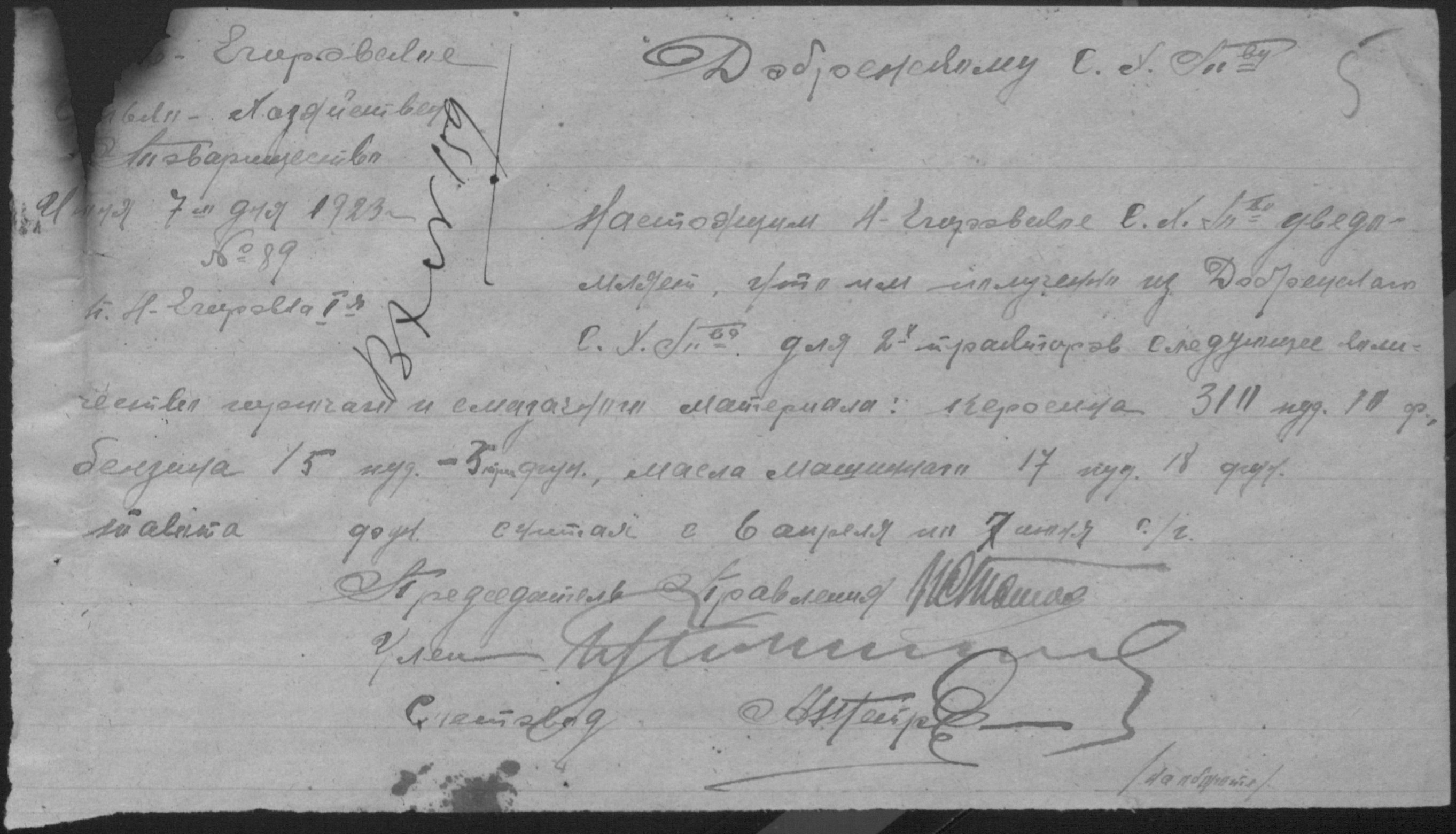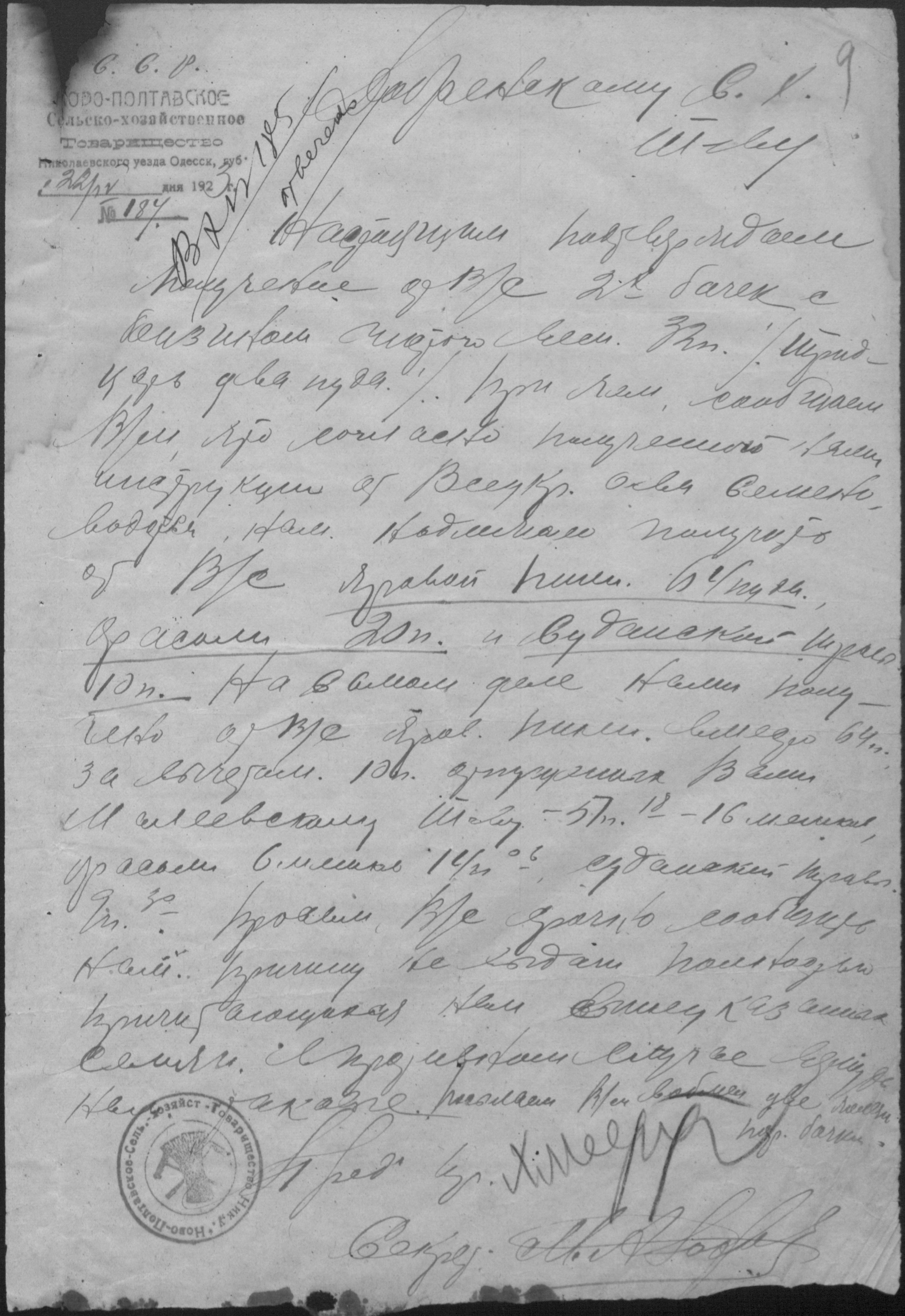 • • • • Справа № 16 “Листування з кредитними товариствами про отримання пально-мастильних матеріалів і заміну посівного матеріалу”