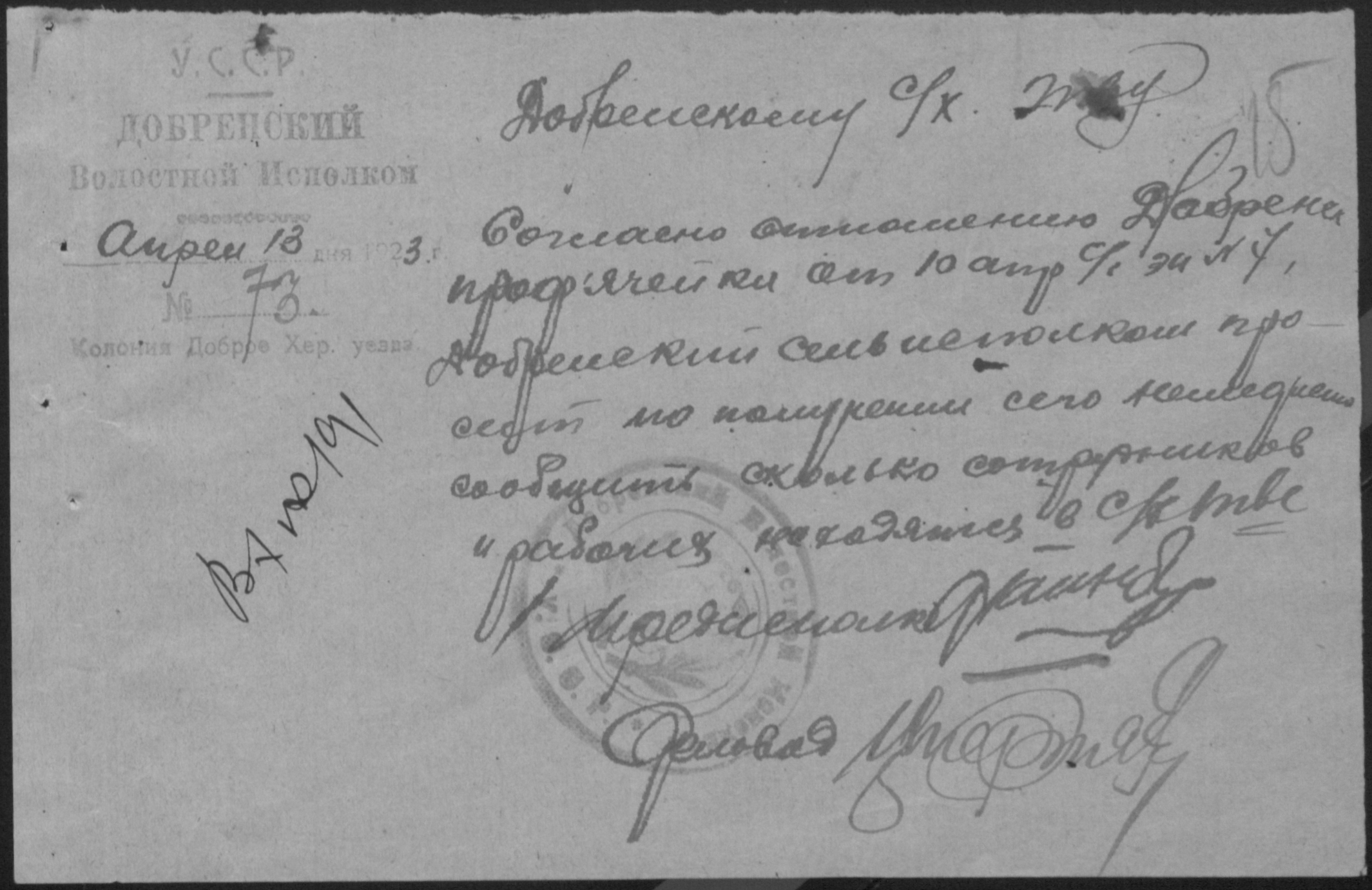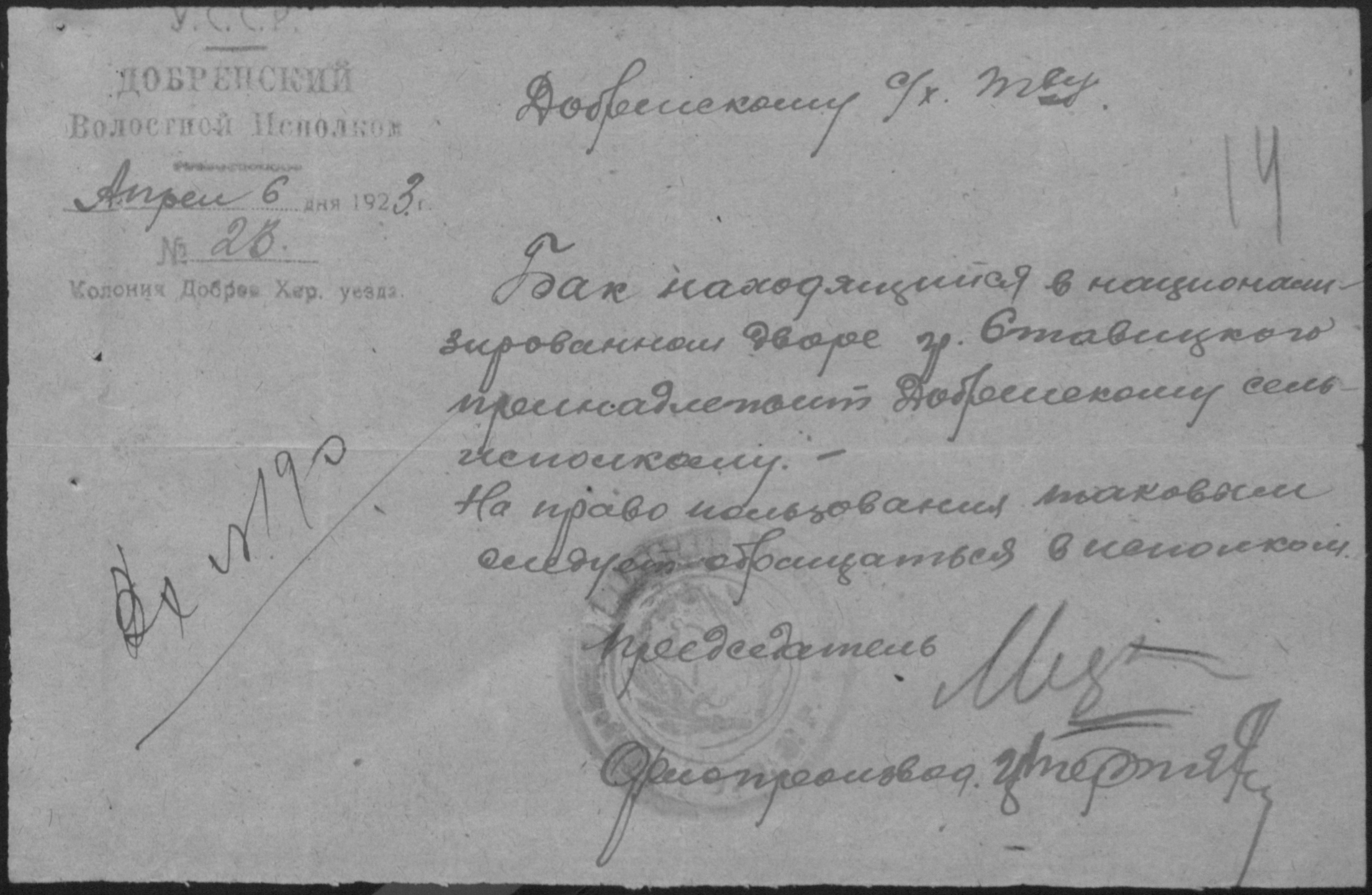 ◦ ◦ Фонд № Р-398 “Добренське сільськогосподарське кредитно-кооперативне товариство”