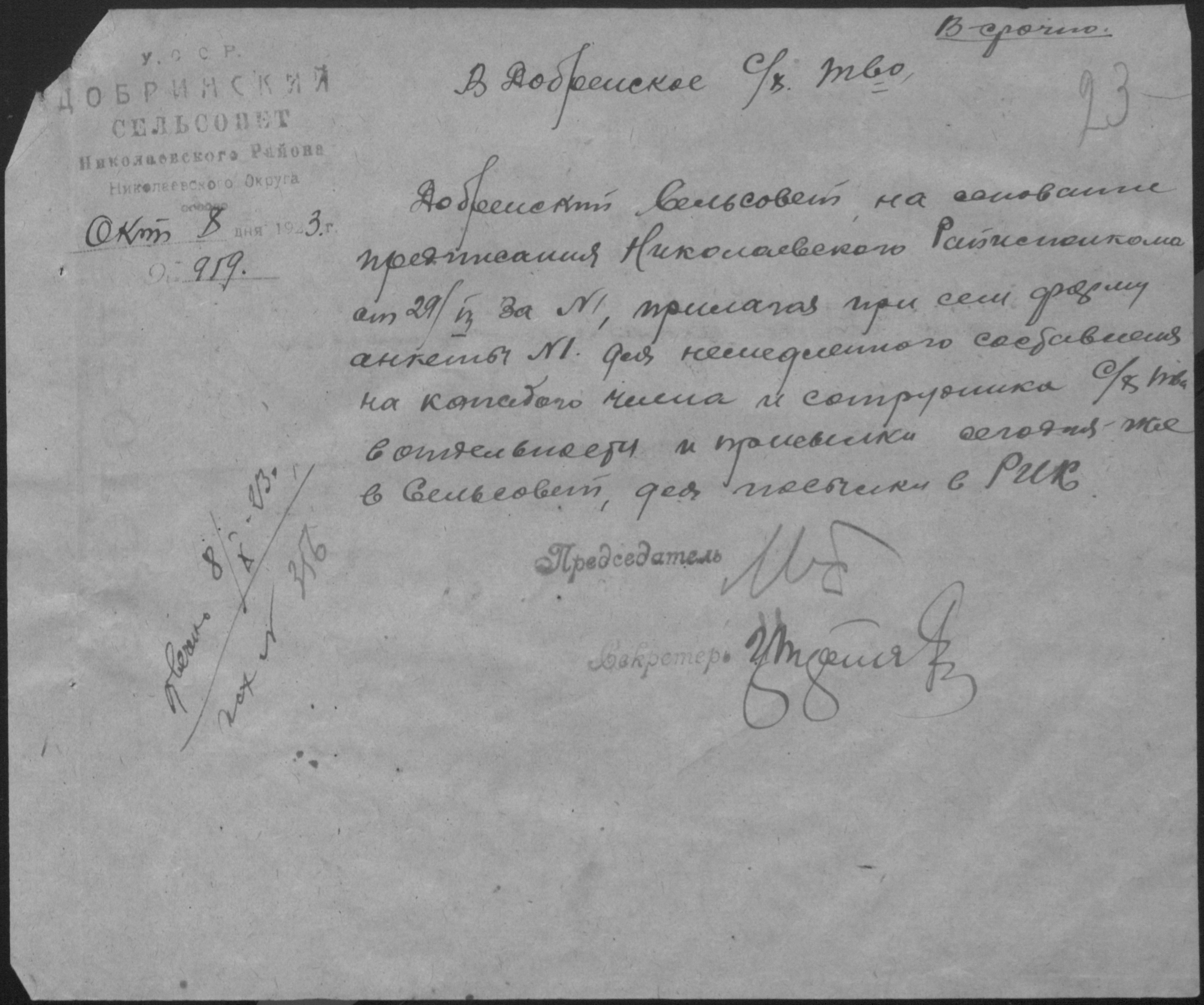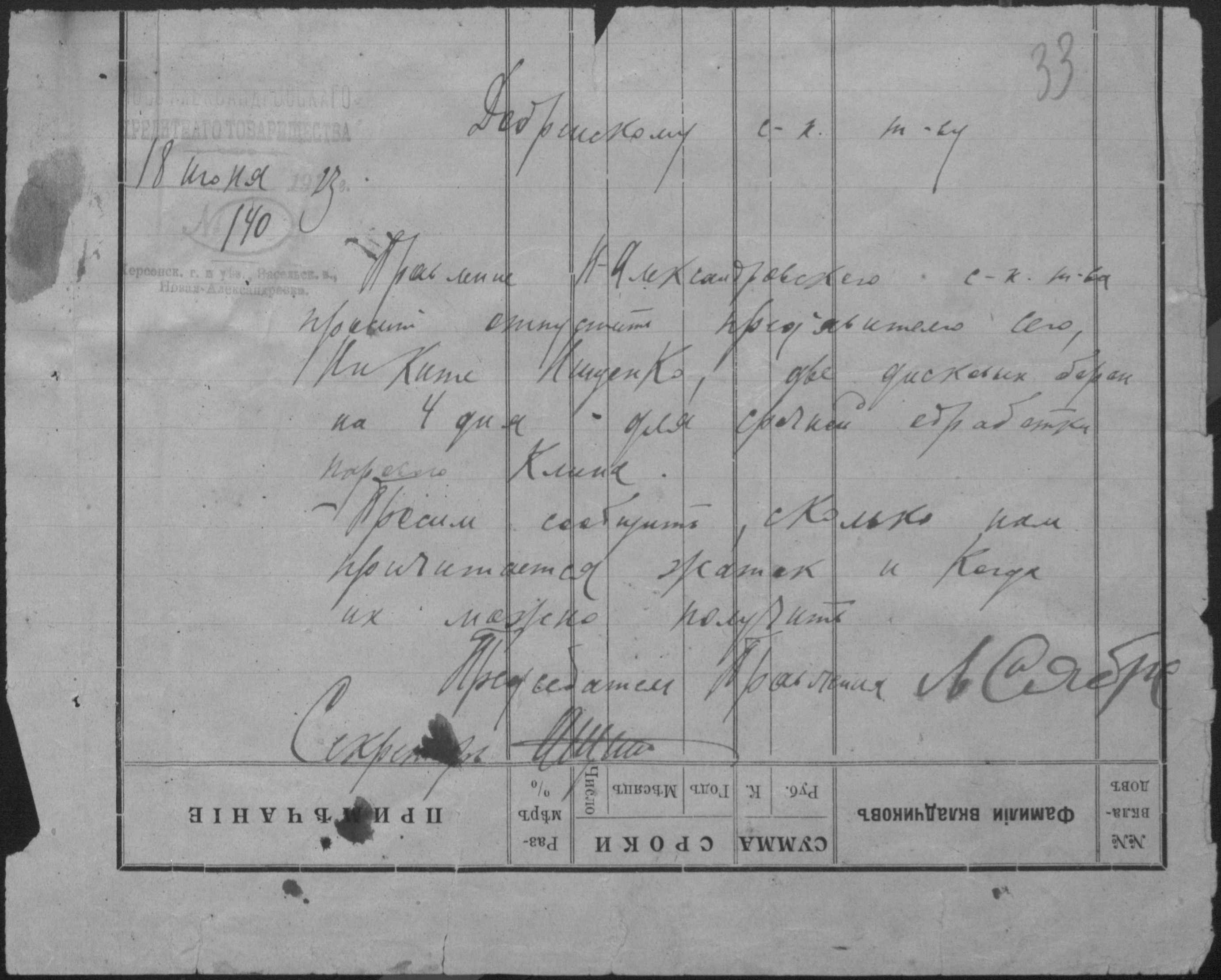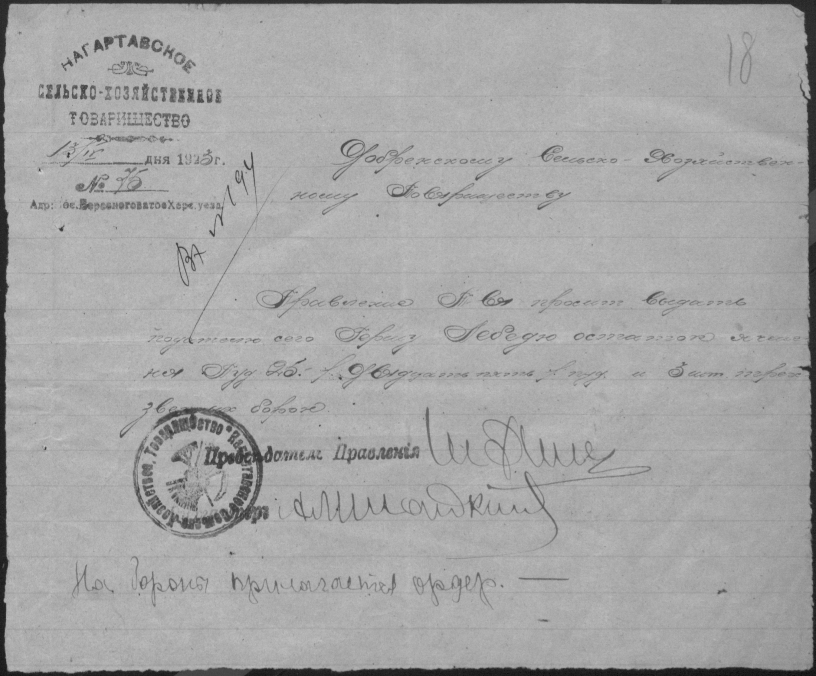 • • • • Справа № 16 “Листування з кредитними товариствами про отримання пально-мастильних матеріалів і заміну посівного матеріалу”