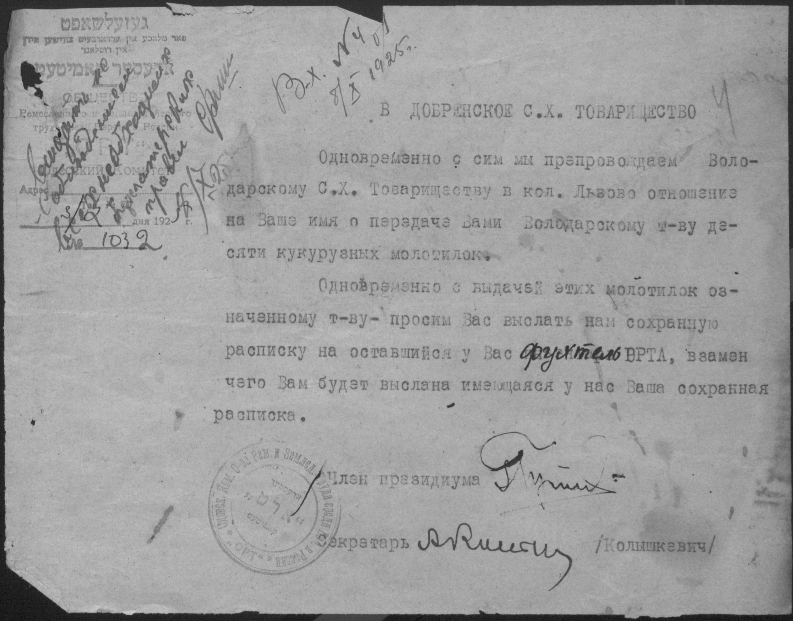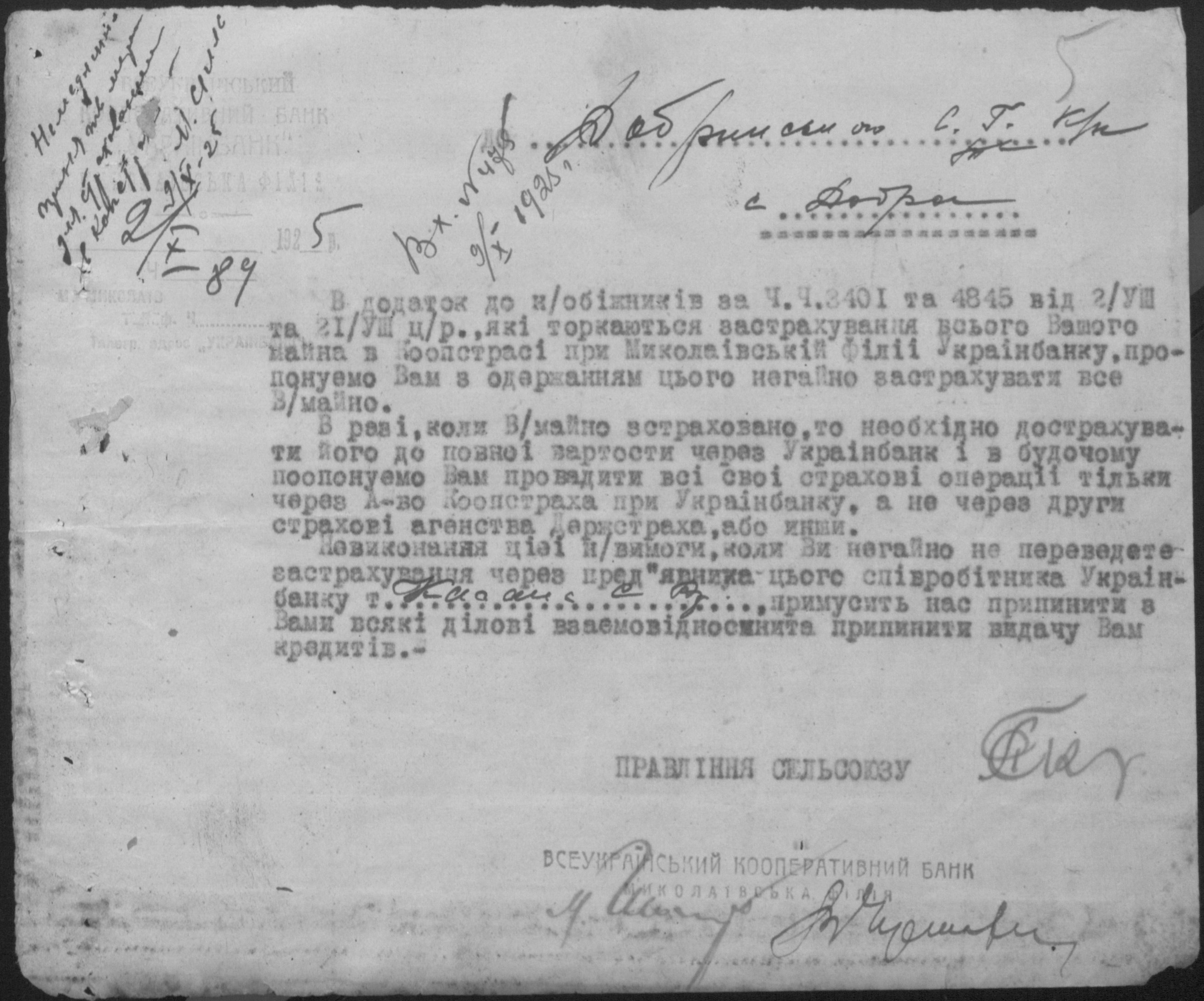 ◦ ◦ Фонд № Р-398 “Добренське сільськогосподарське кредитно-кооперативне товариство”