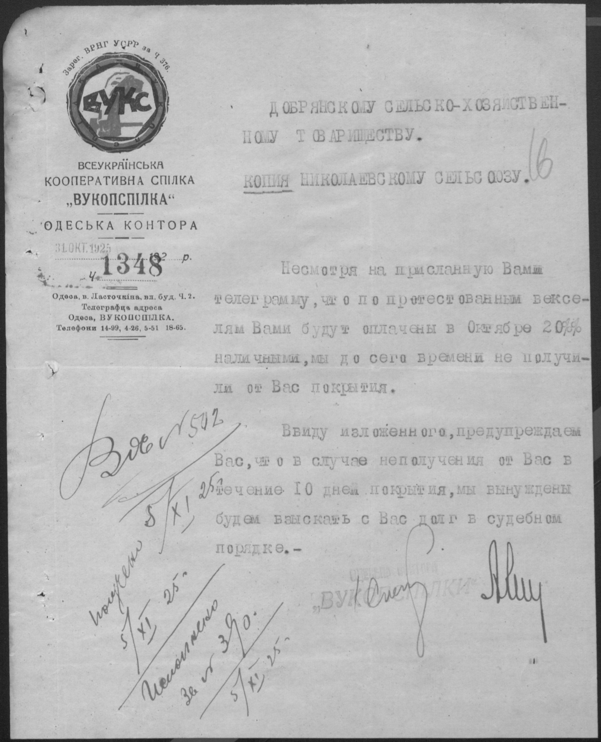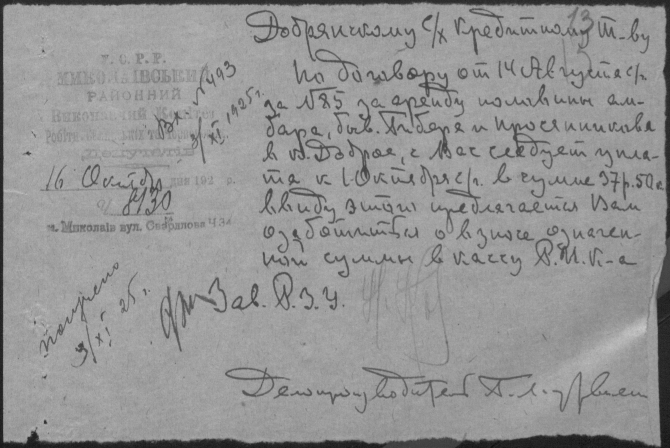• • • • Справа № 24 “Листування з Миколаївською спілкою сільськогосподарських кооперативів «Сільсоюз» і кредитними товариствами про оренду машин, видачу і розподіл позичок”