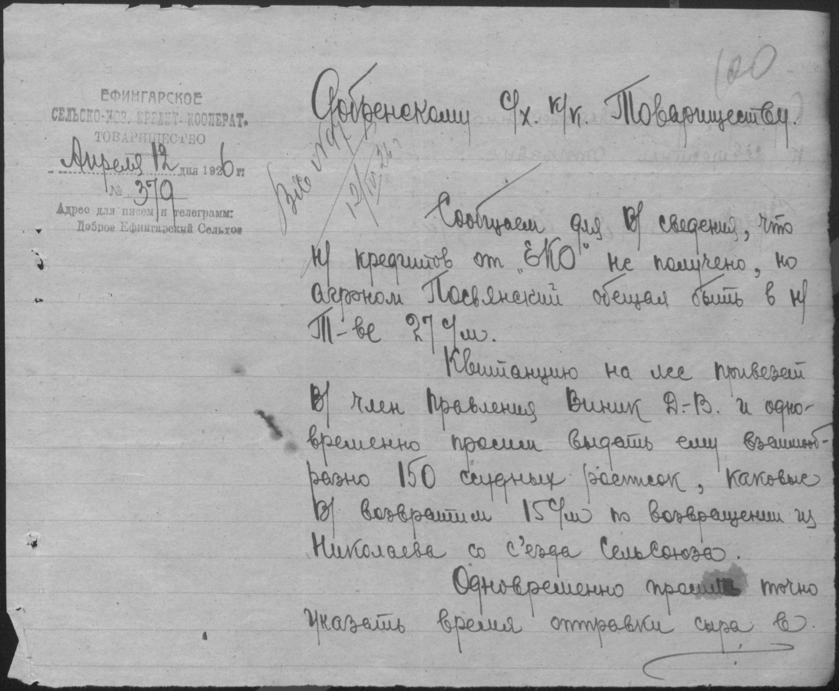 • • • • Справа № 24 “Листування з Миколаївською спілкою сільськогосподарських кооперативів «Сільсоюз» і кредитними товариствами про оренду машин, видачу і розподіл позичок”