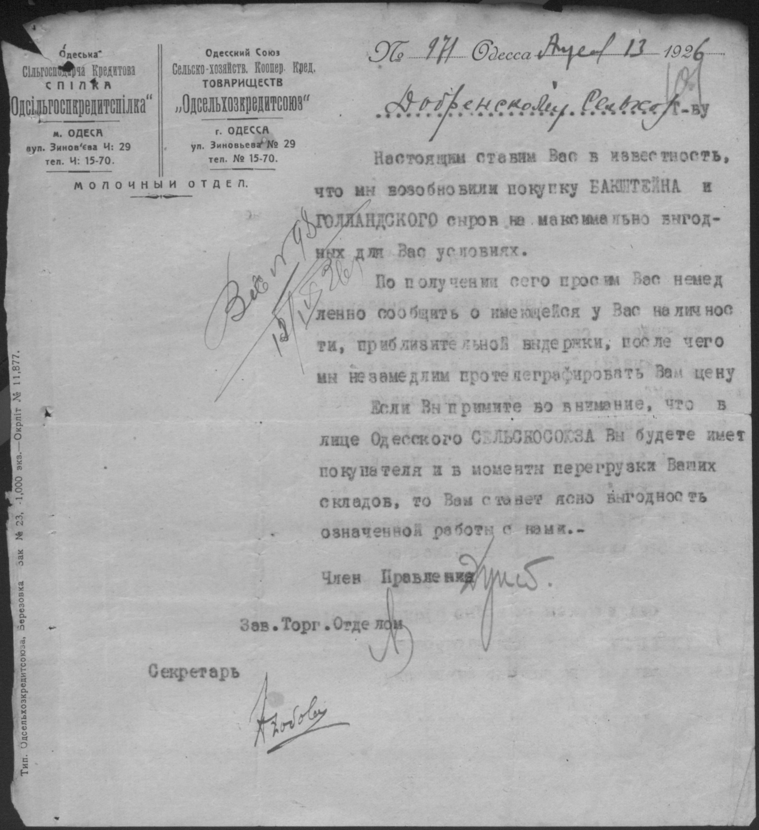 ◦ ◦ Фонд № Р-398 “Добренське сільськогосподарське кредитно-кооперативне товариство”