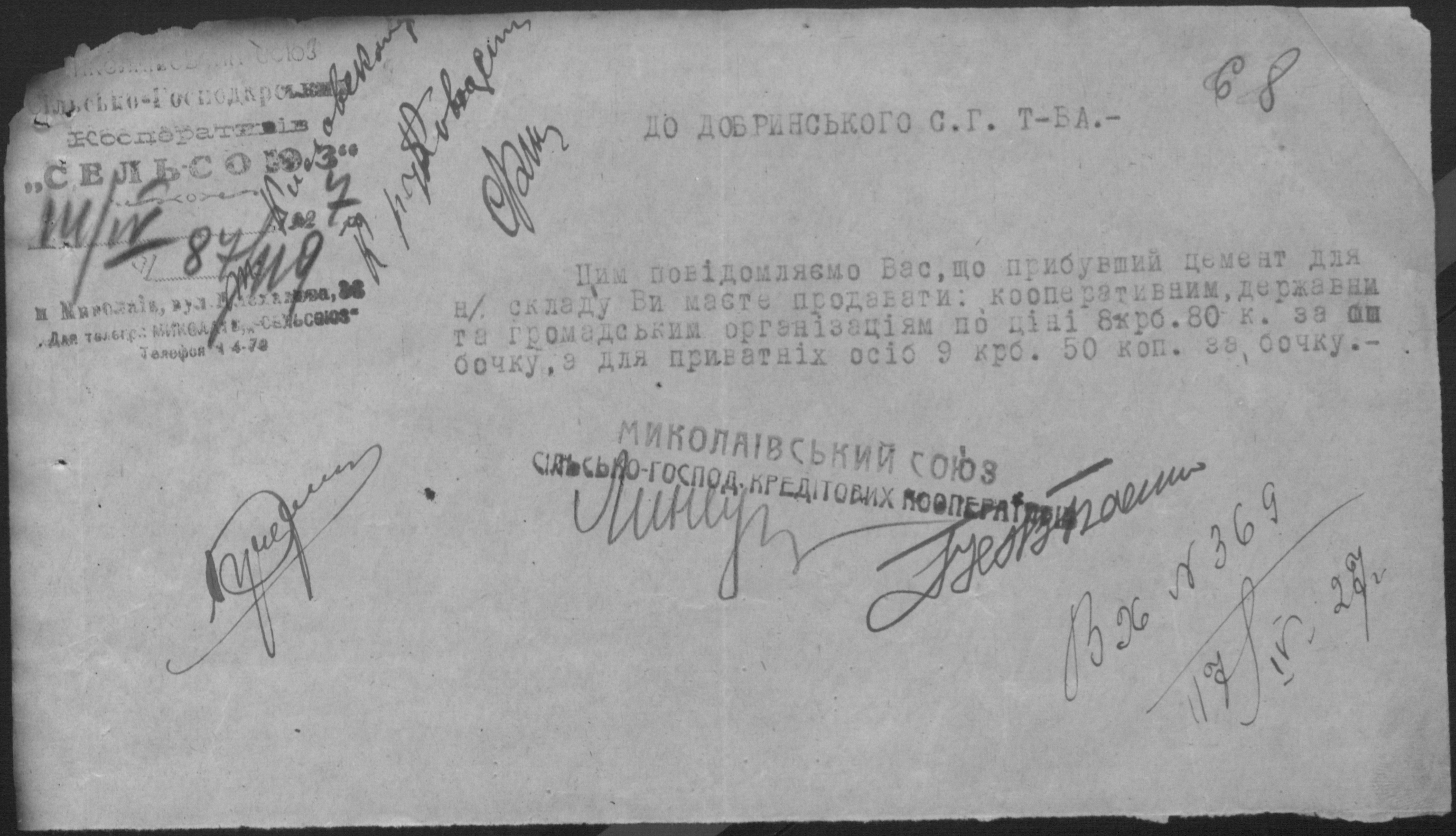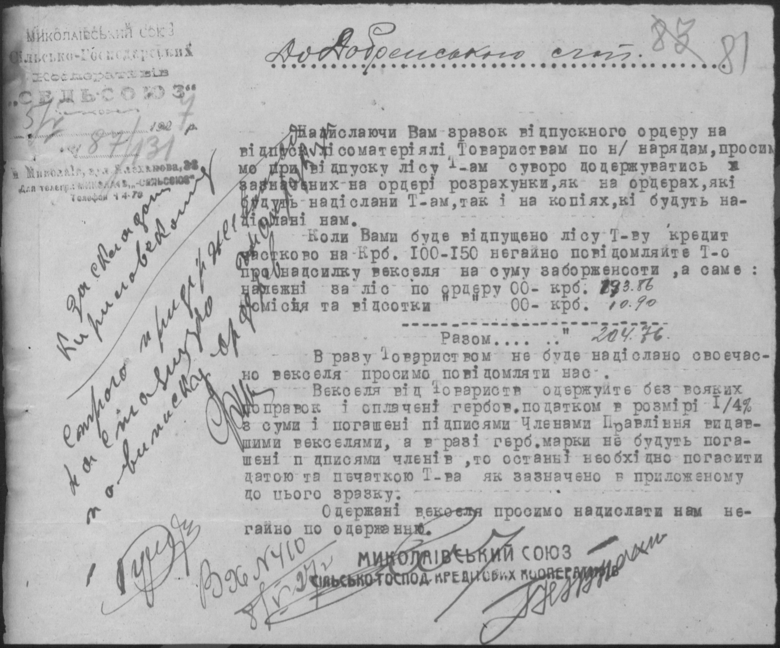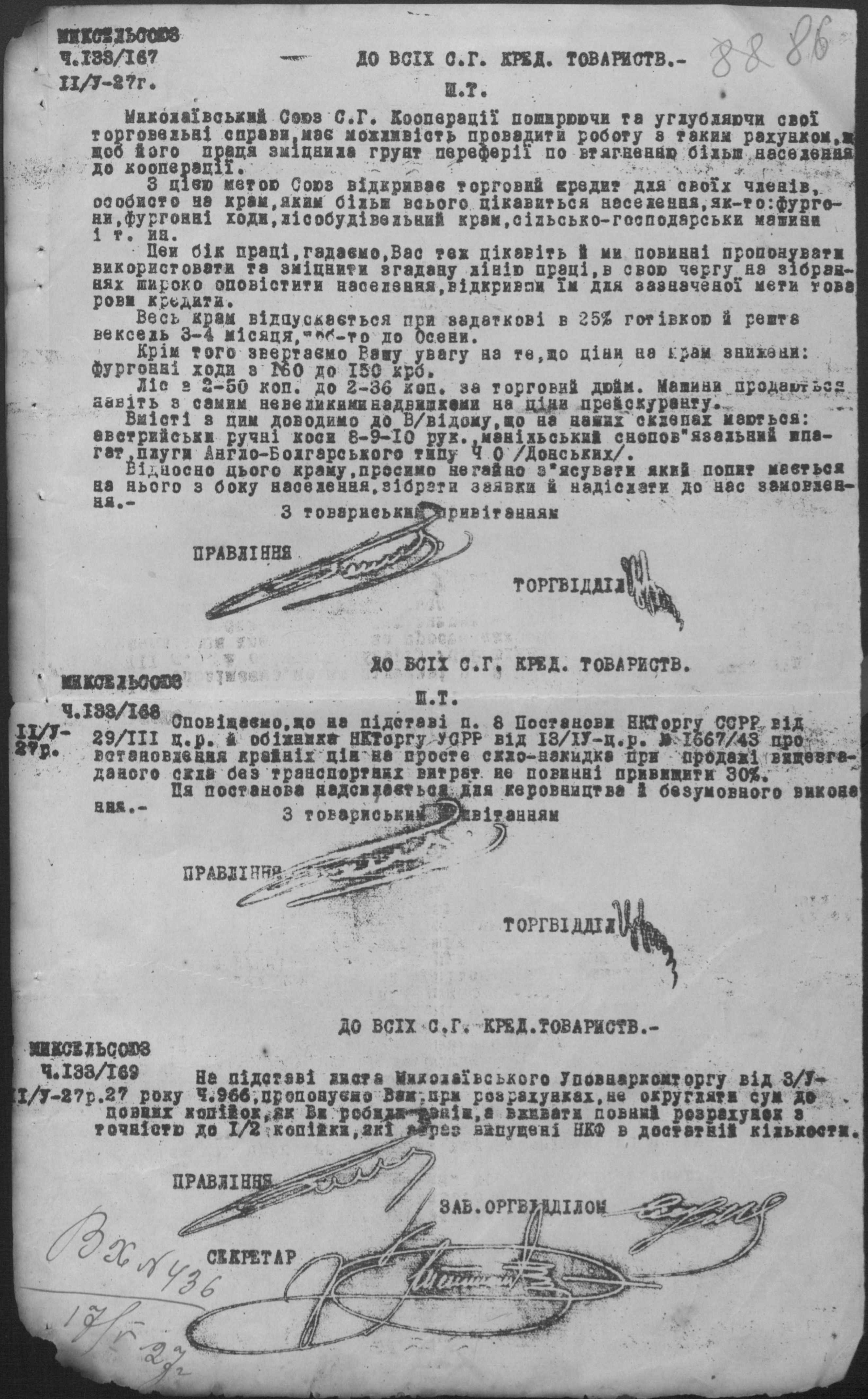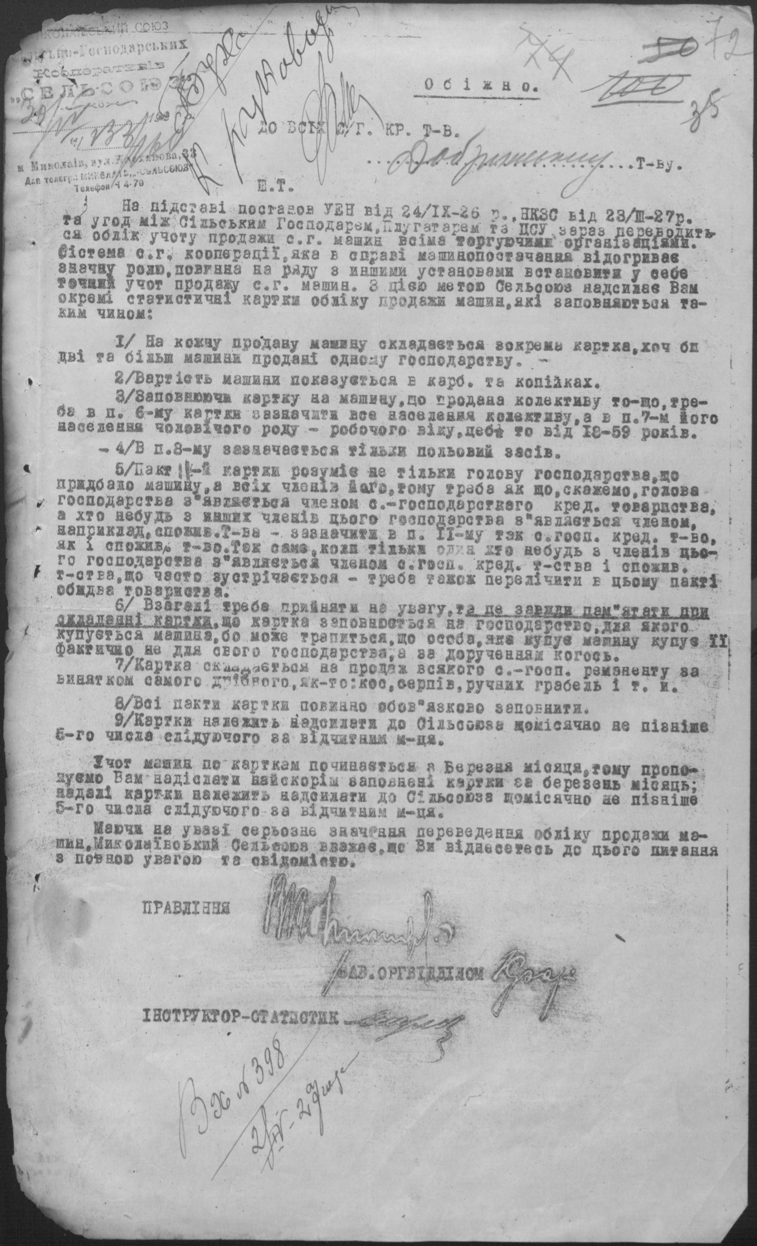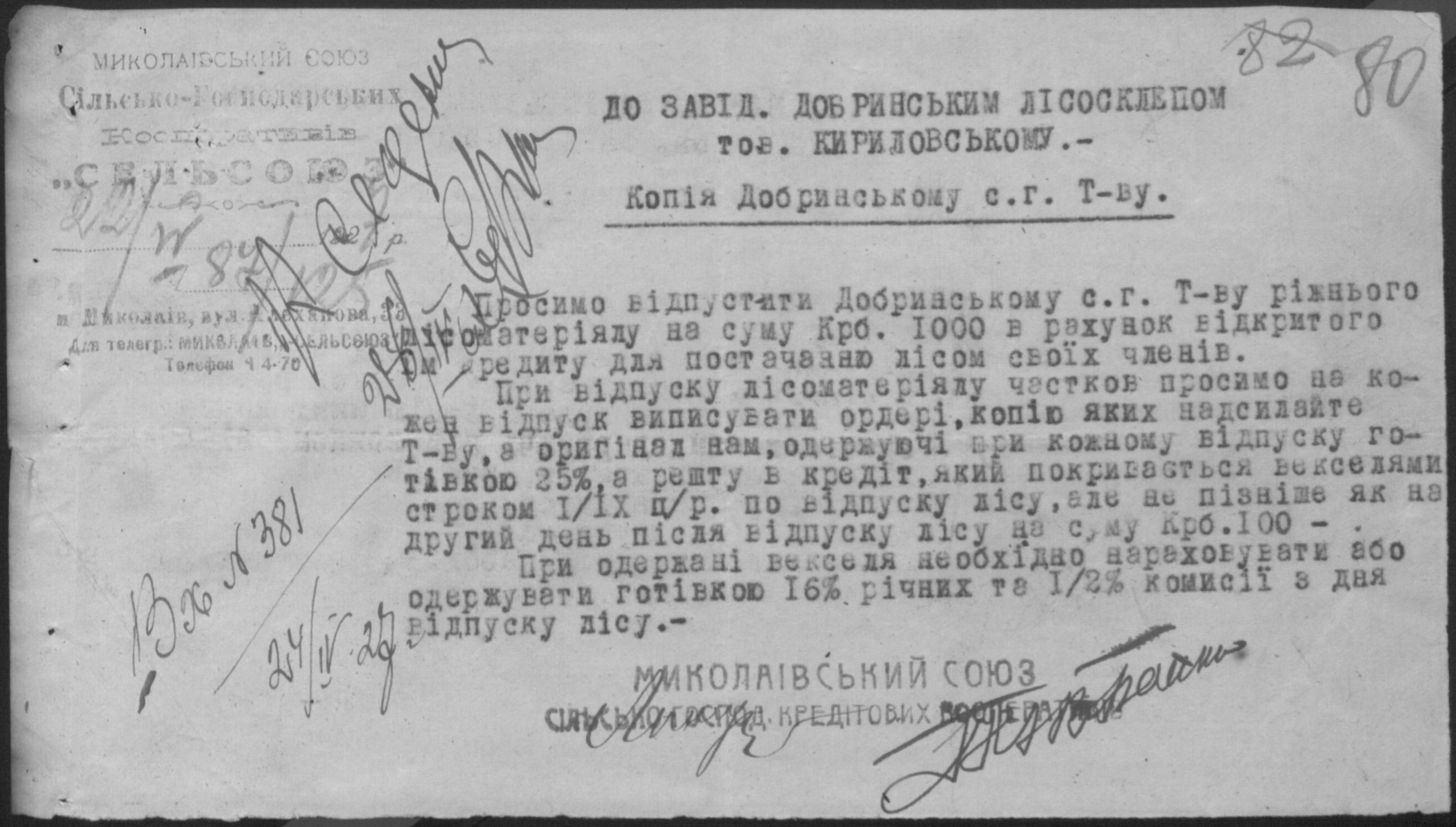 • • • • Справа № 26 “Обіжники Миколаївської спілки сільськогосподарських кооперативів «Сільсоюз» про видачу позичок і погашення заборгованостей”