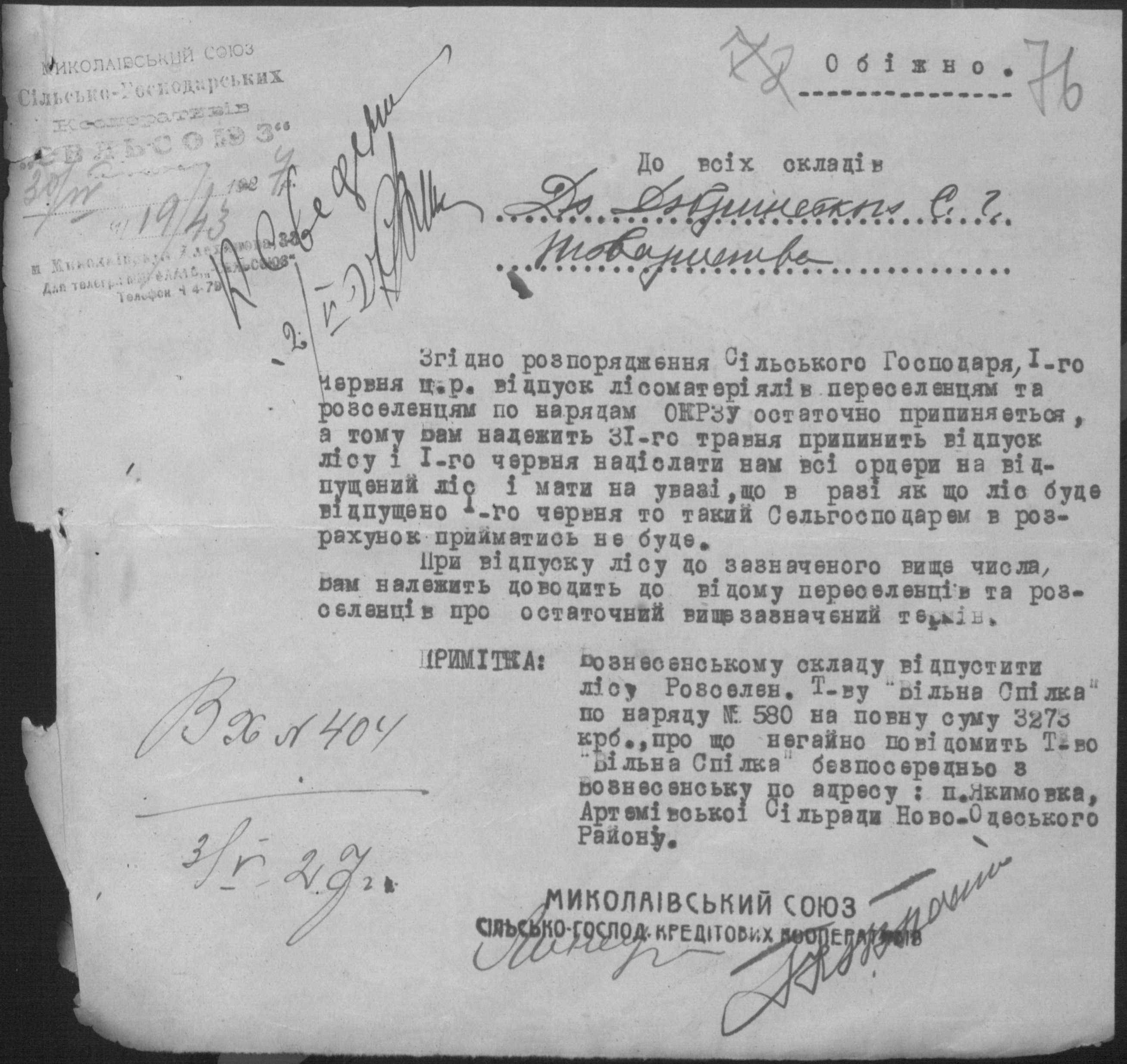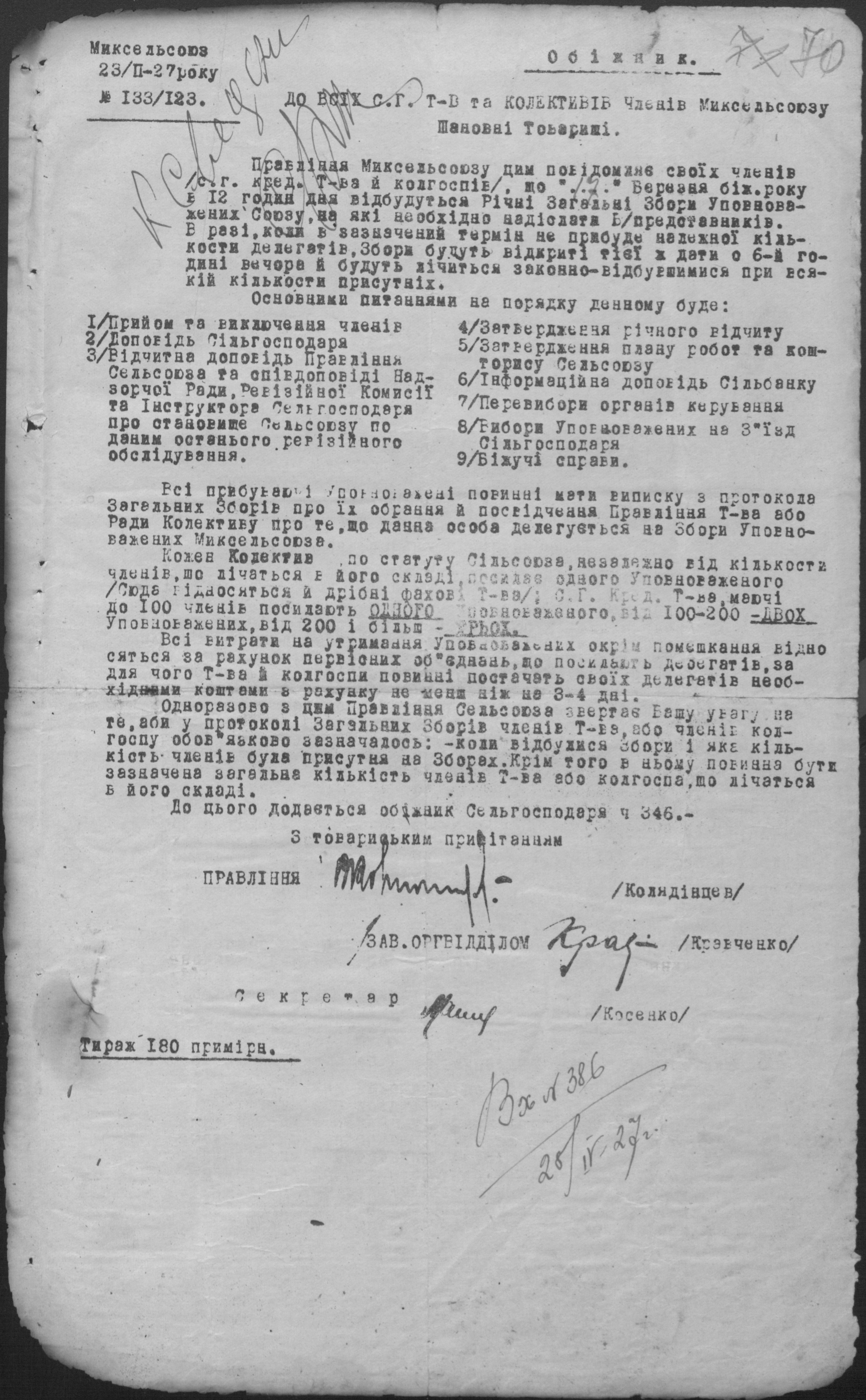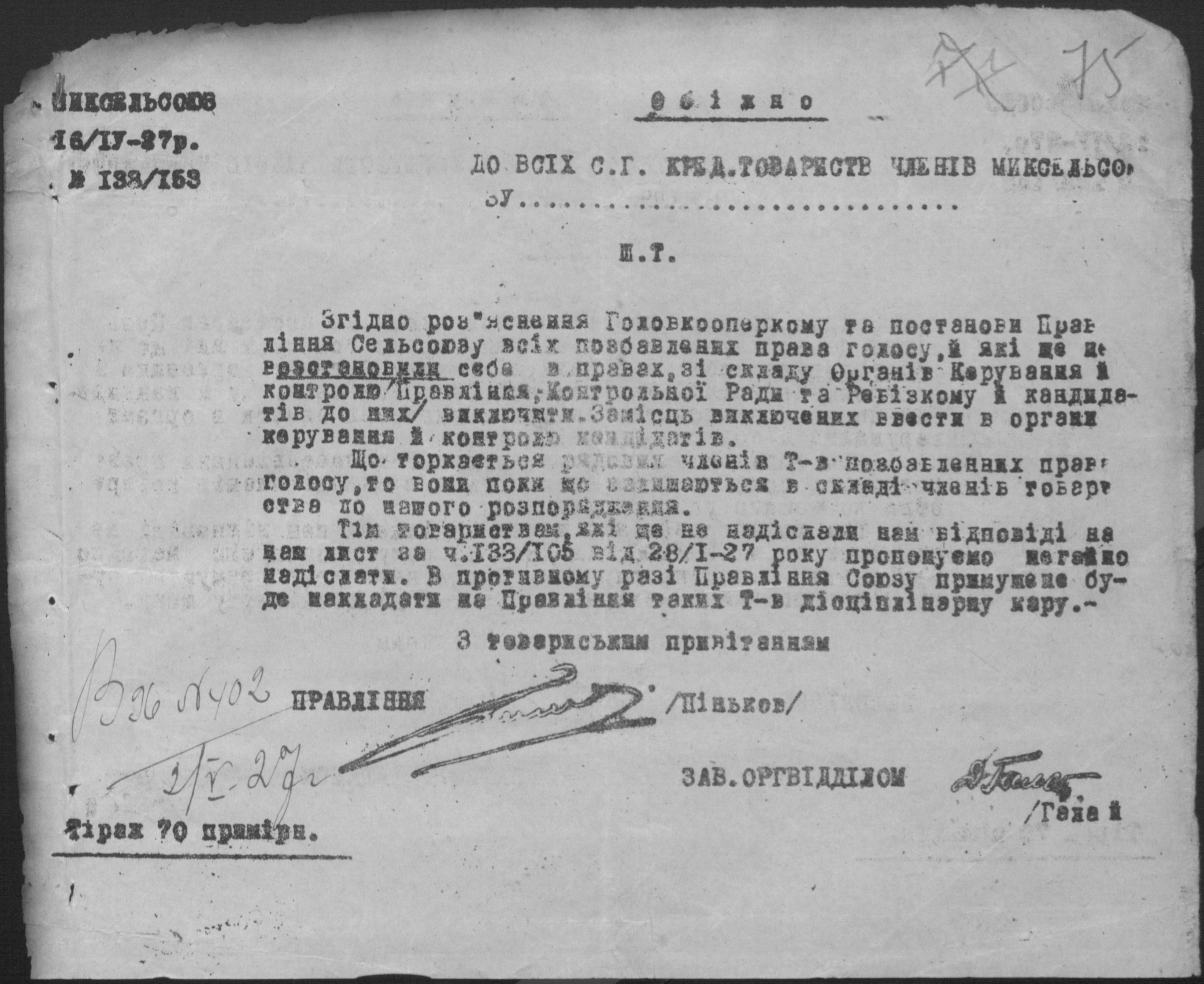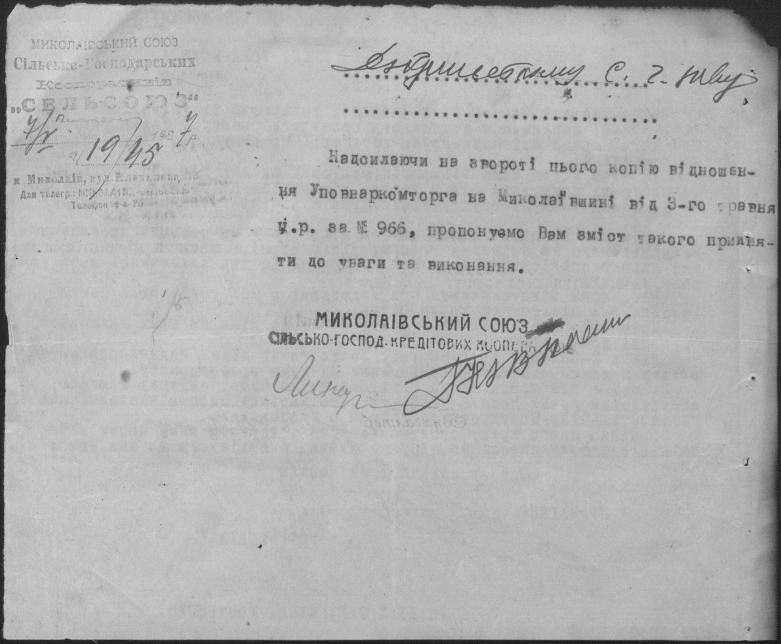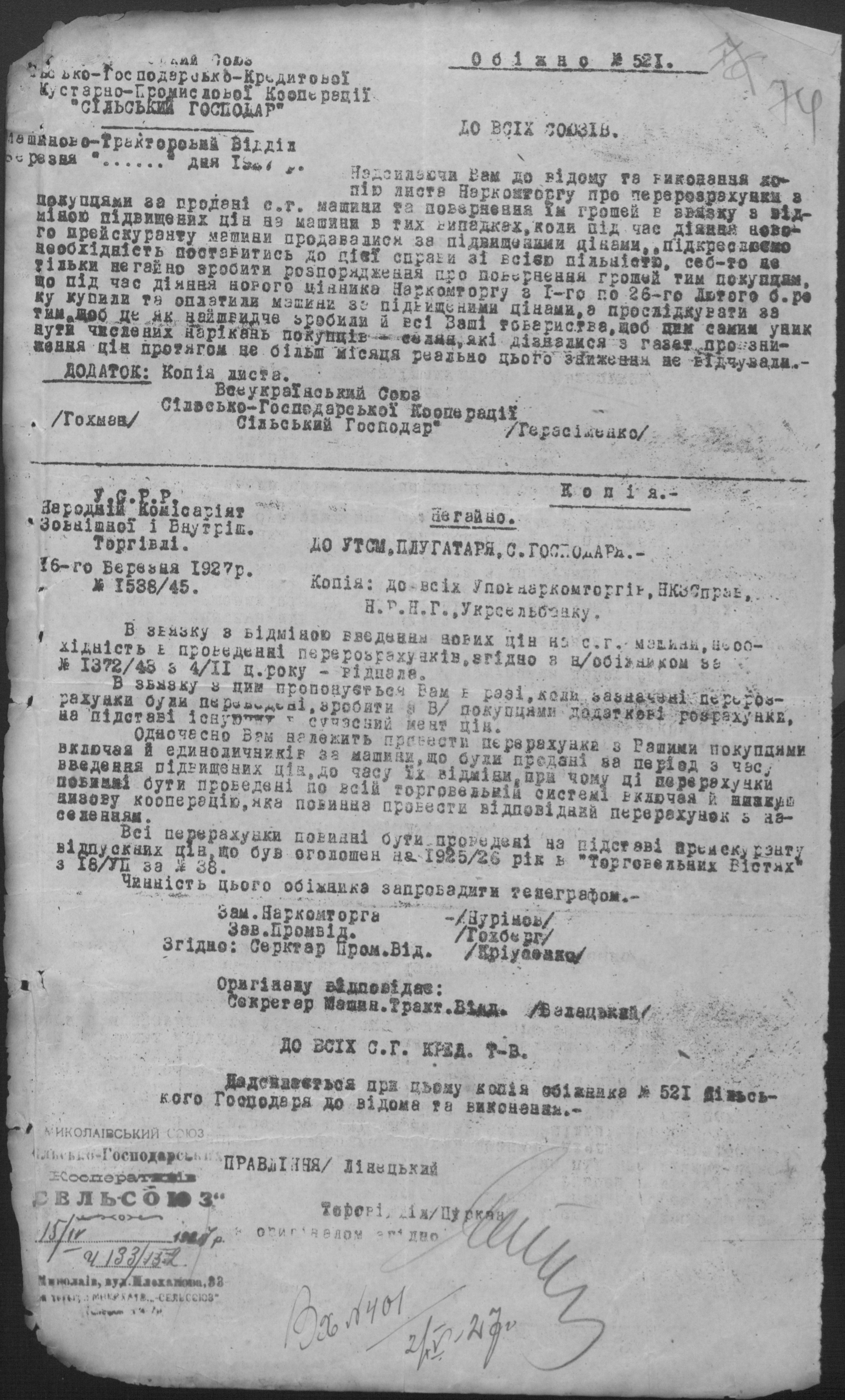 • • • • Справа № 26 “Обіжники Миколаївської спілки сільськогосподарських кооперативів «Сільсоюз» про видачу позичок і погашення заборгованостей”