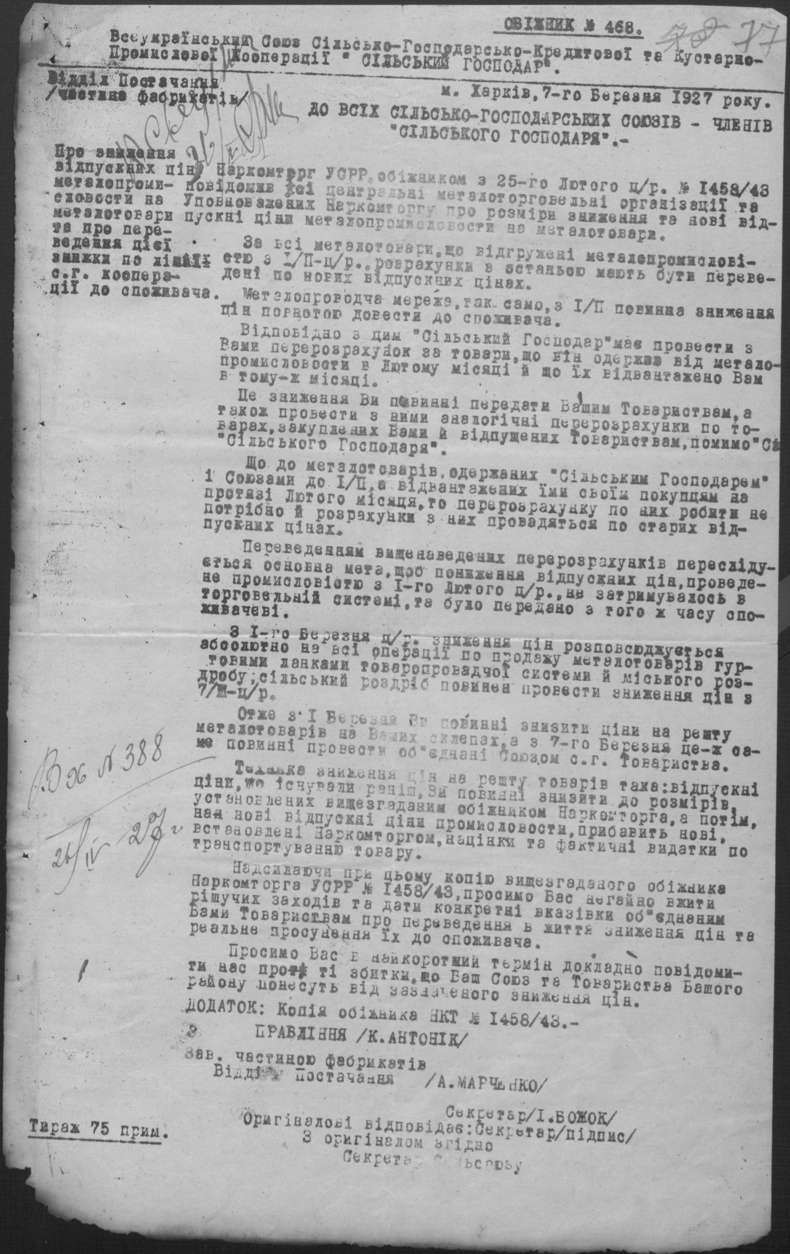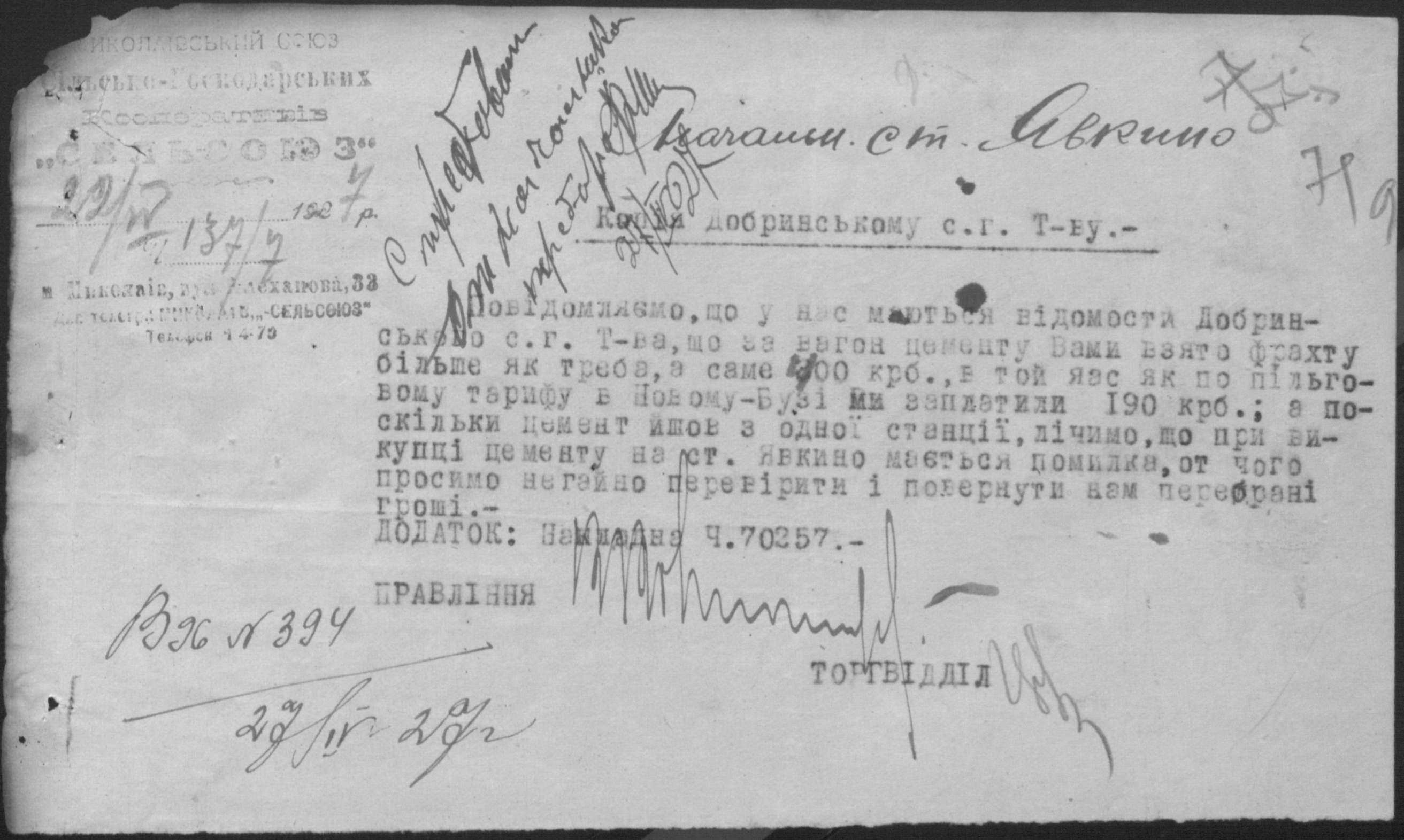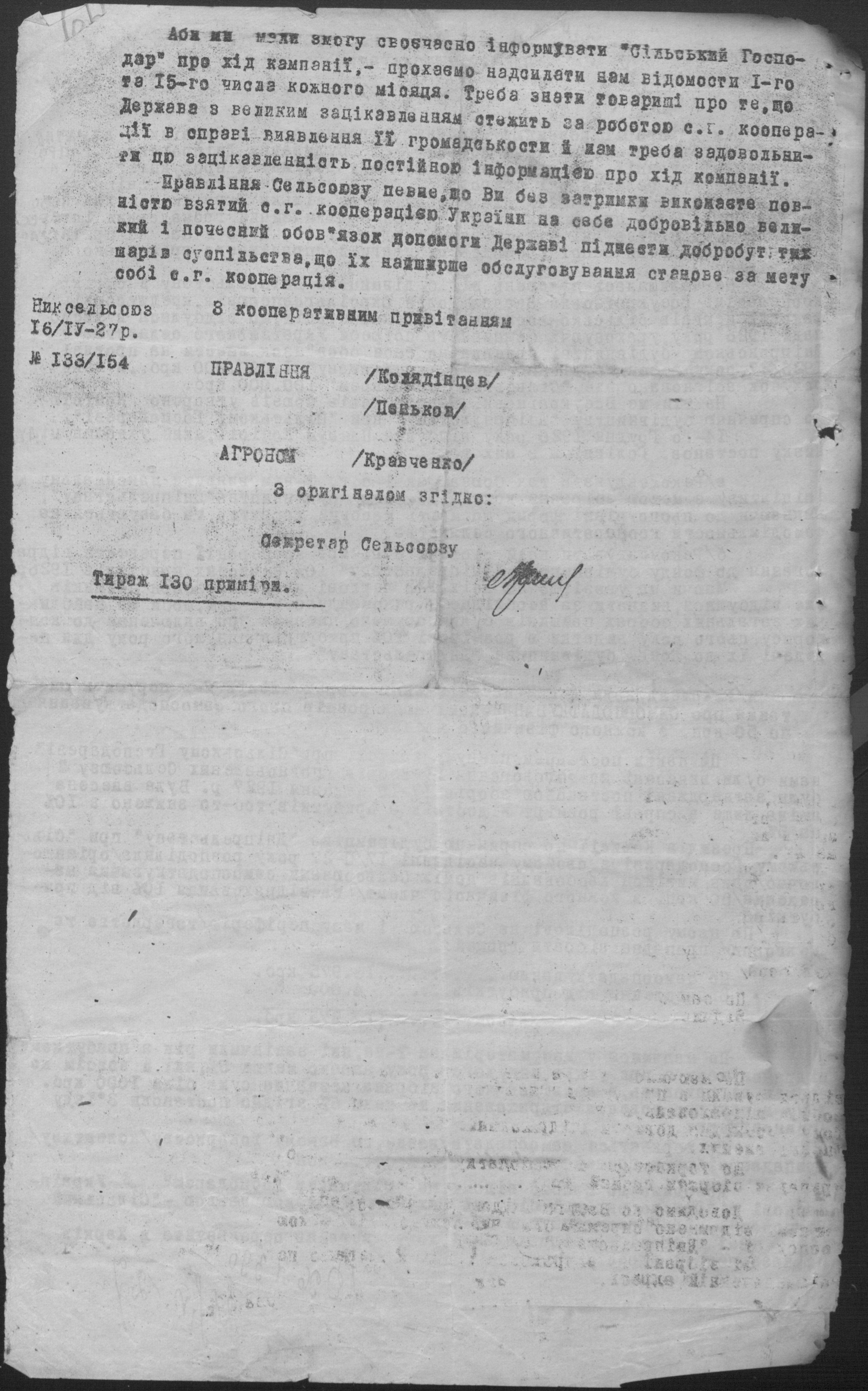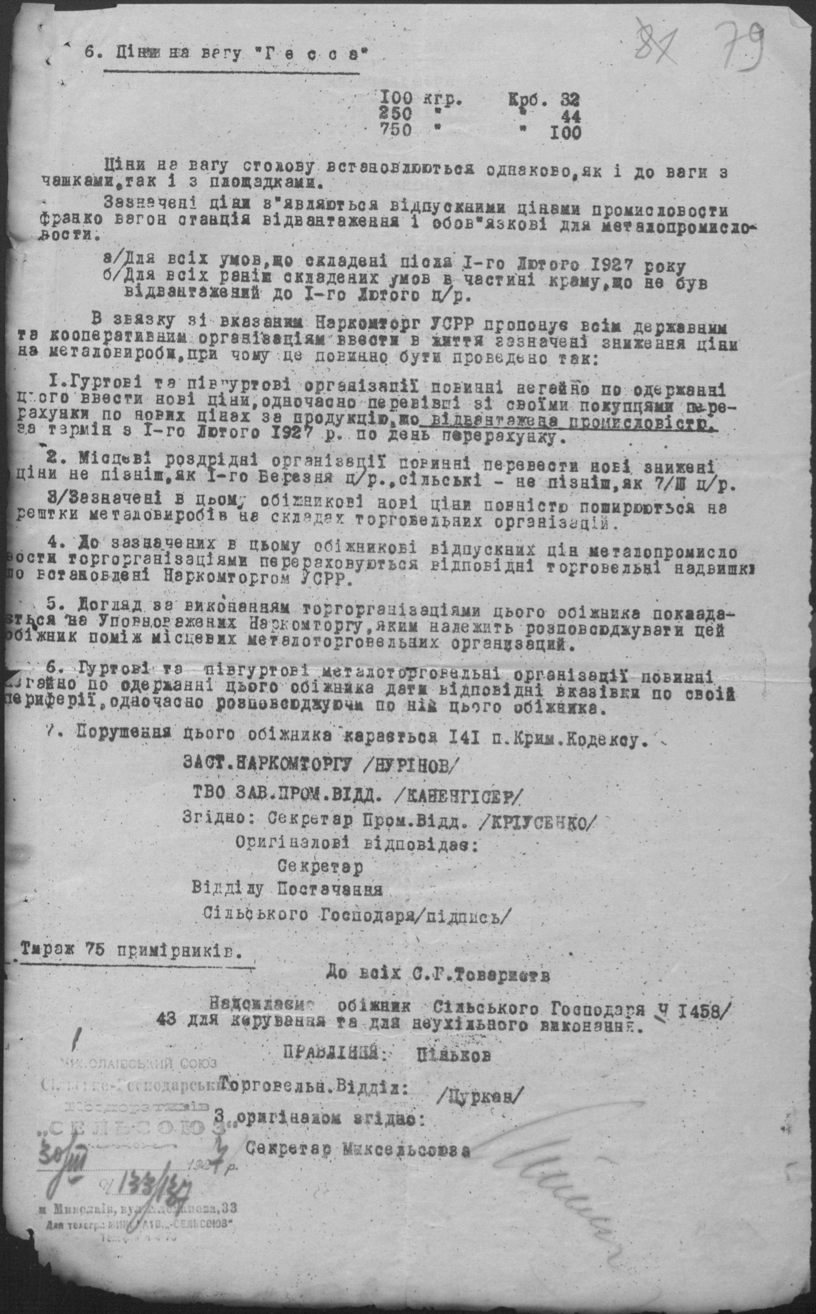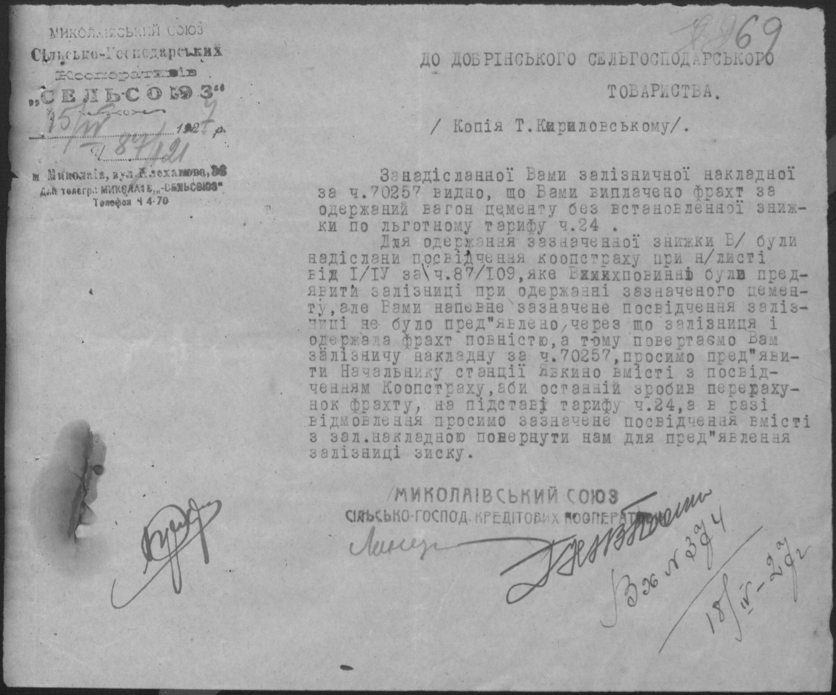 • • • • Справа № 26 “Обіжники Миколаївської спілки сільськогосподарських кооперативів «Сільсоюз» про видачу позичок і погашення заборгованостей”