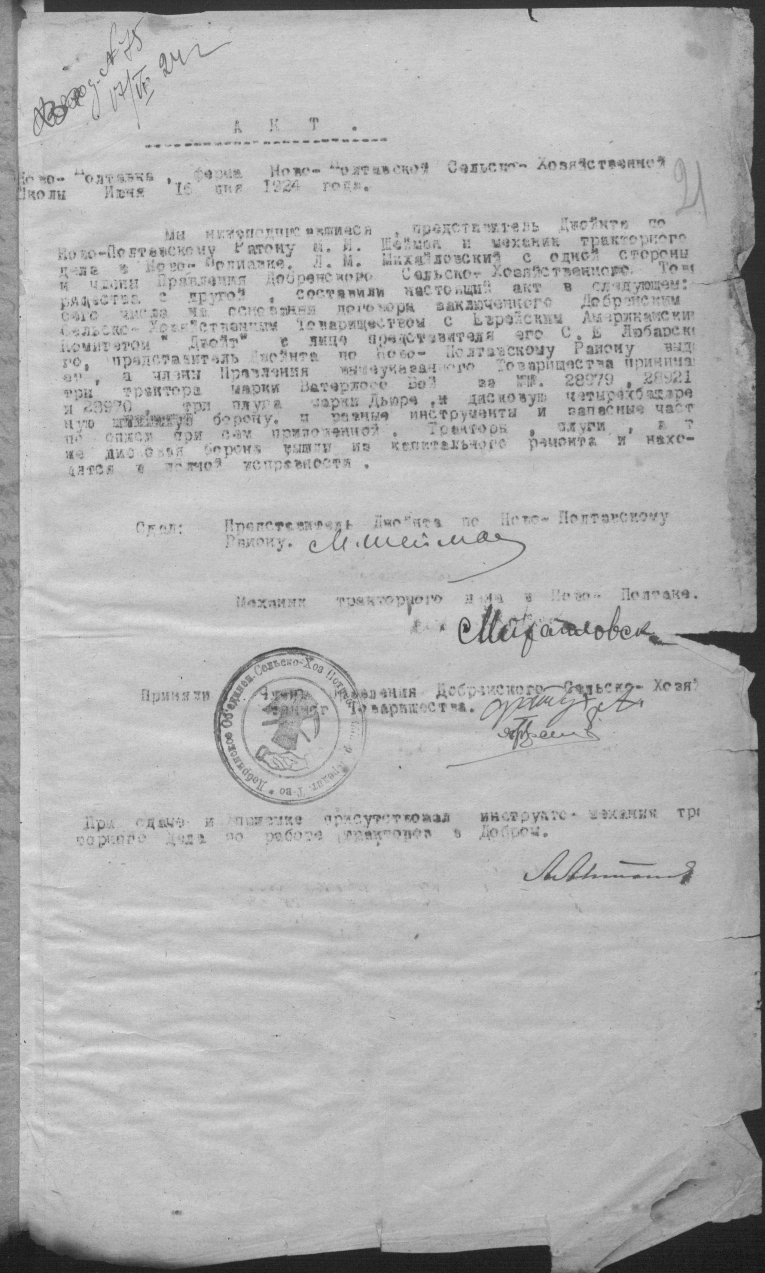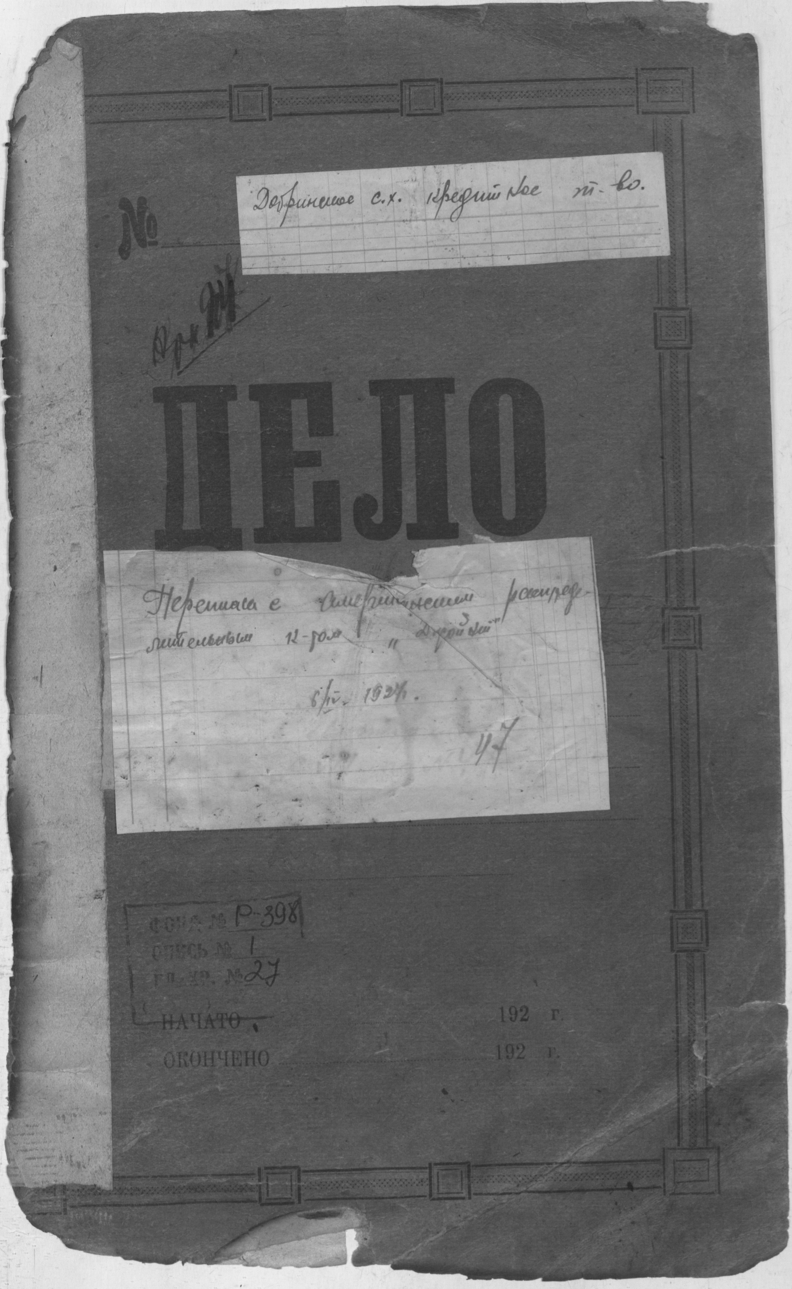 ◦ ◦ Фонд № Р-398 “Добренське сільськогосподарське кредитно-кооперативне товариство”