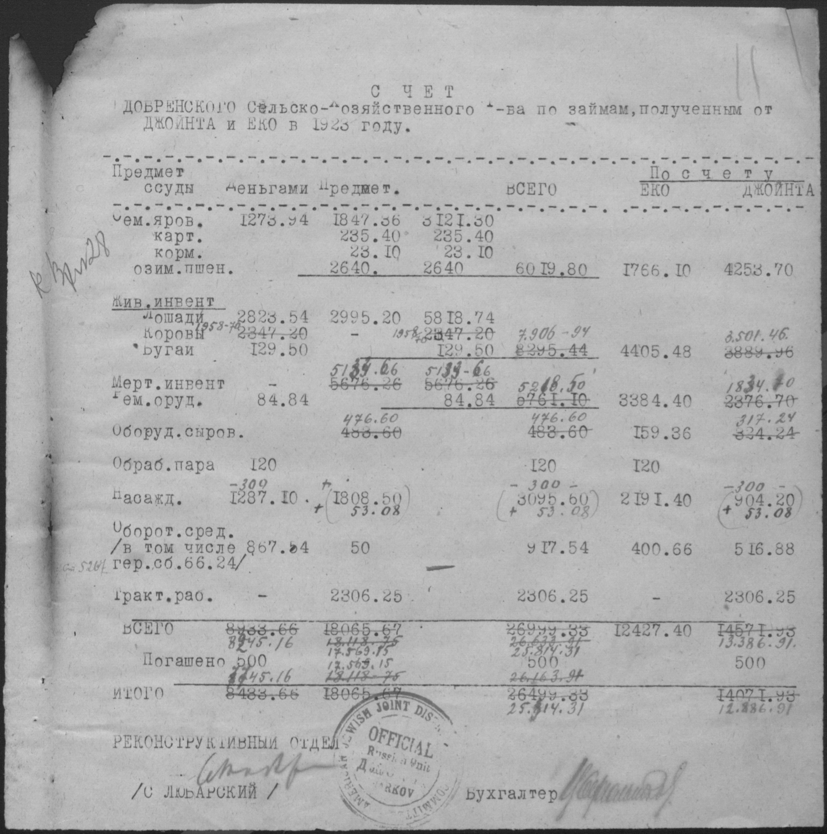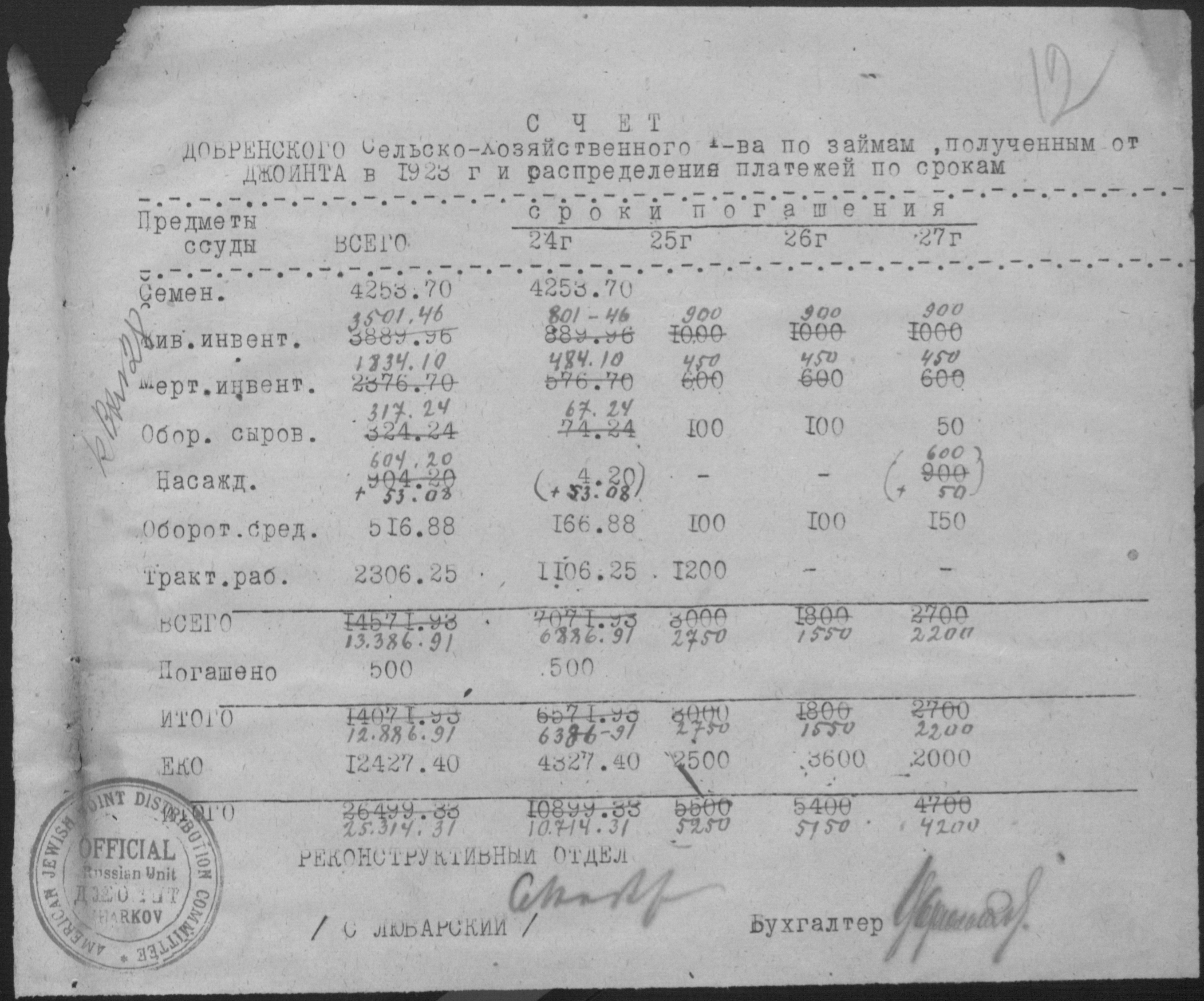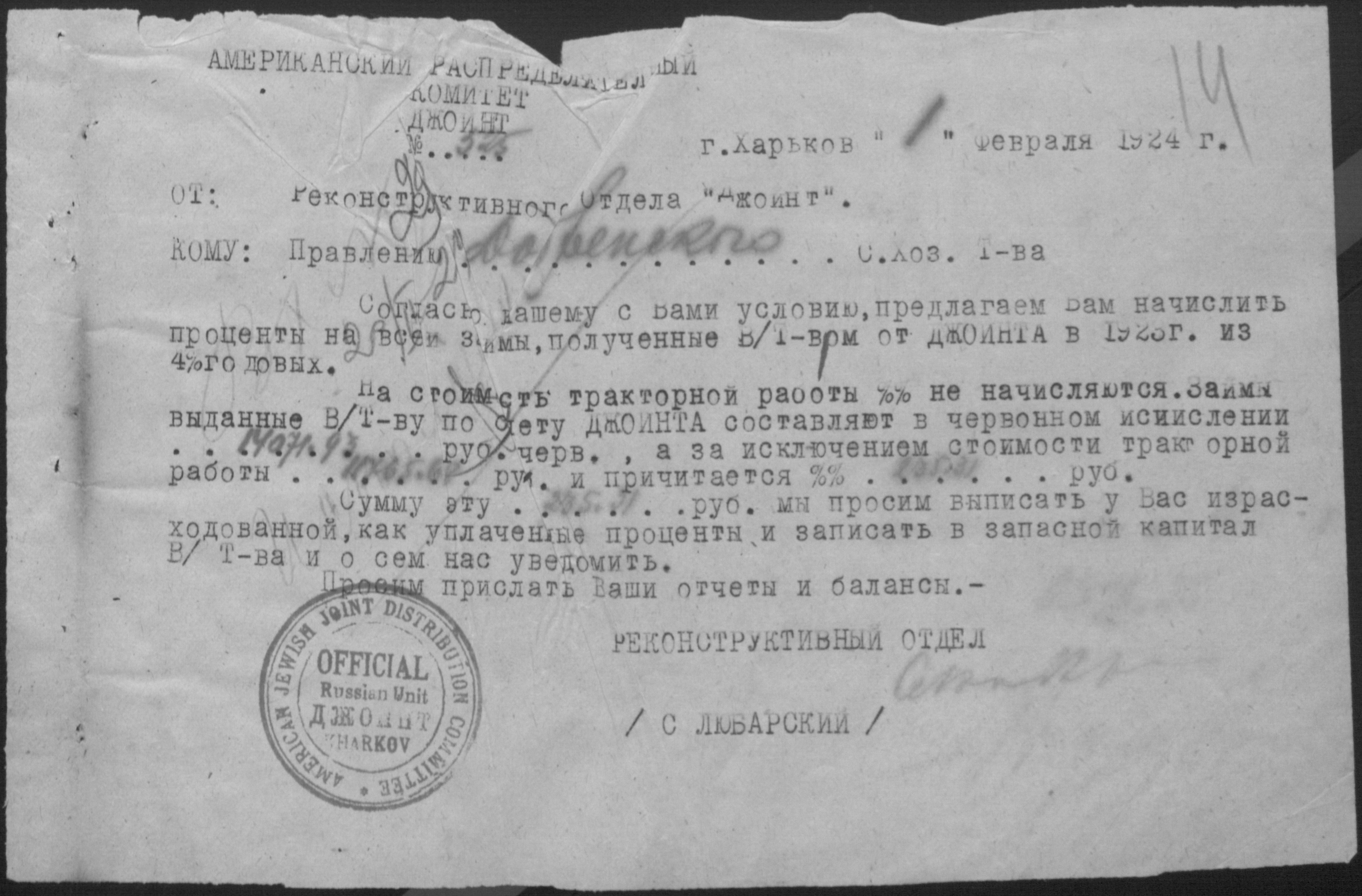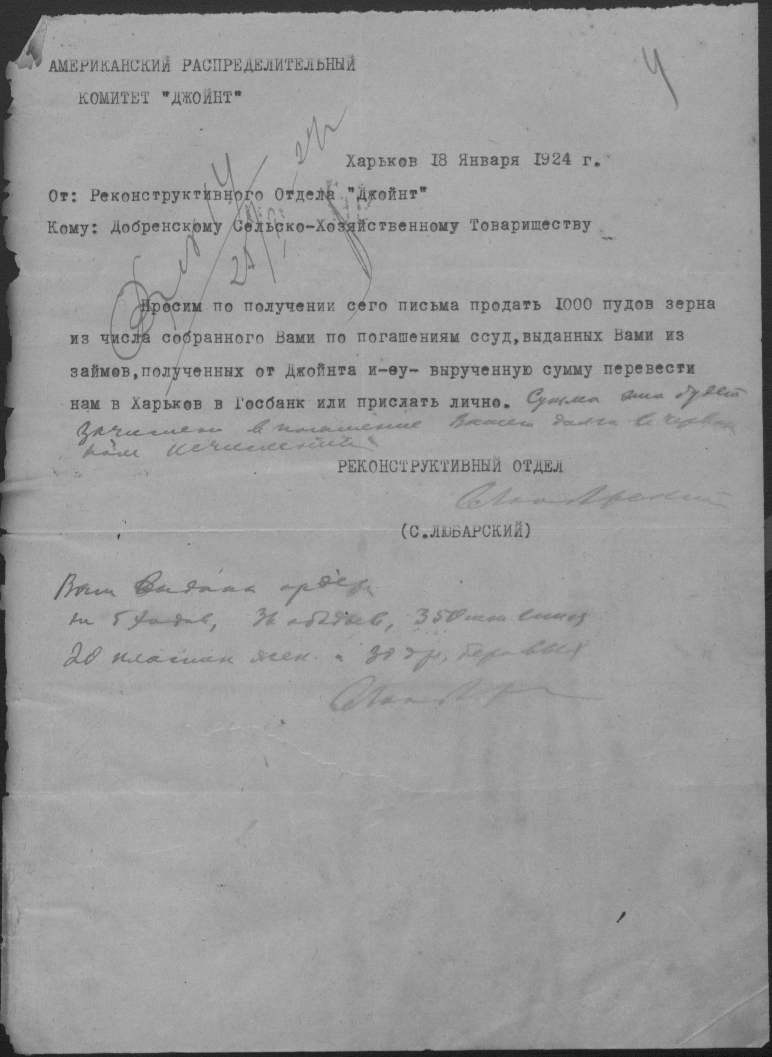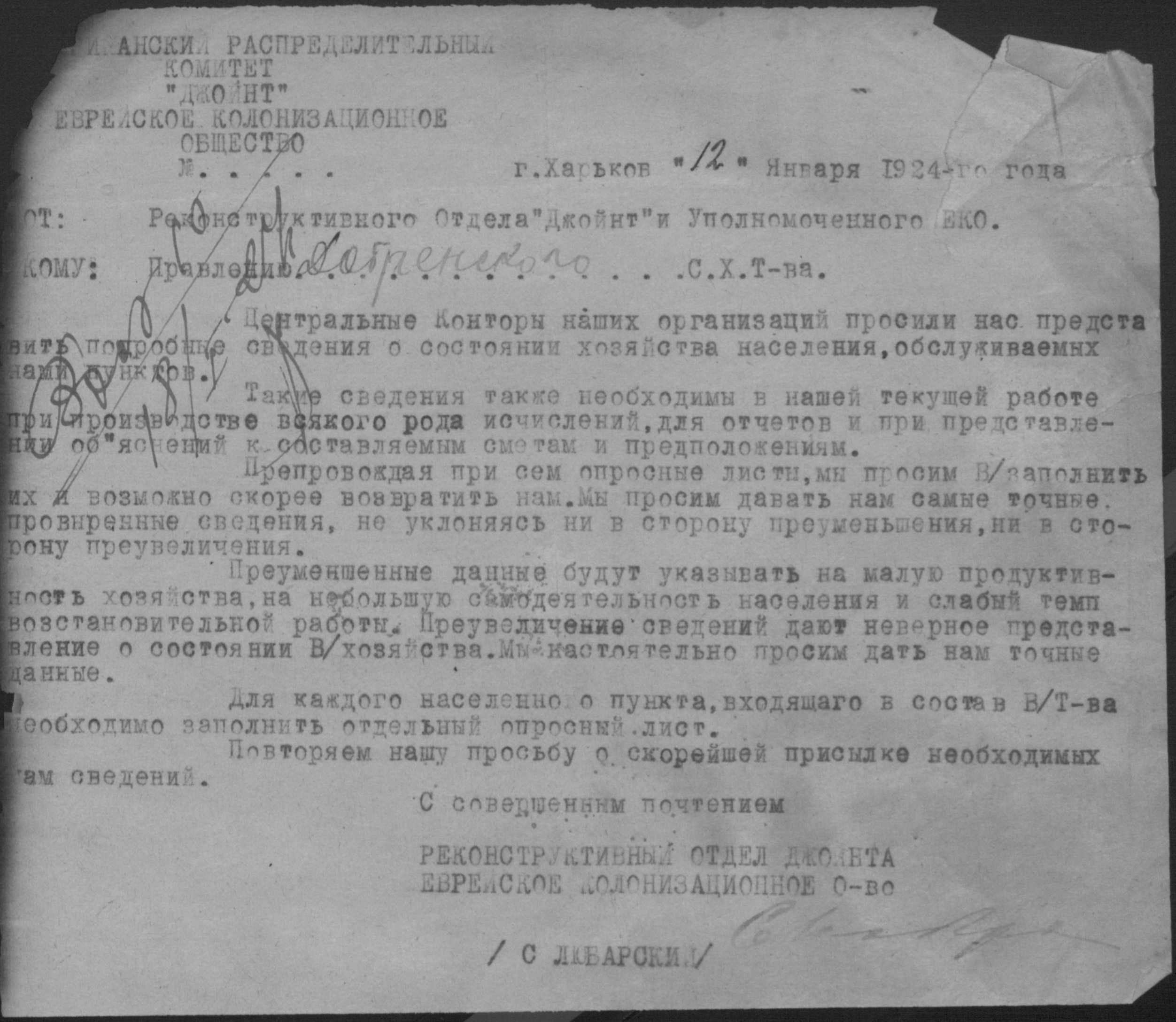 • • • • Справа № 27 “Листування з Американським розподільчим комітетом «Джойнт» про видачу позичок і відстрочення боргів, витрати вугілля, роботу сироварень”