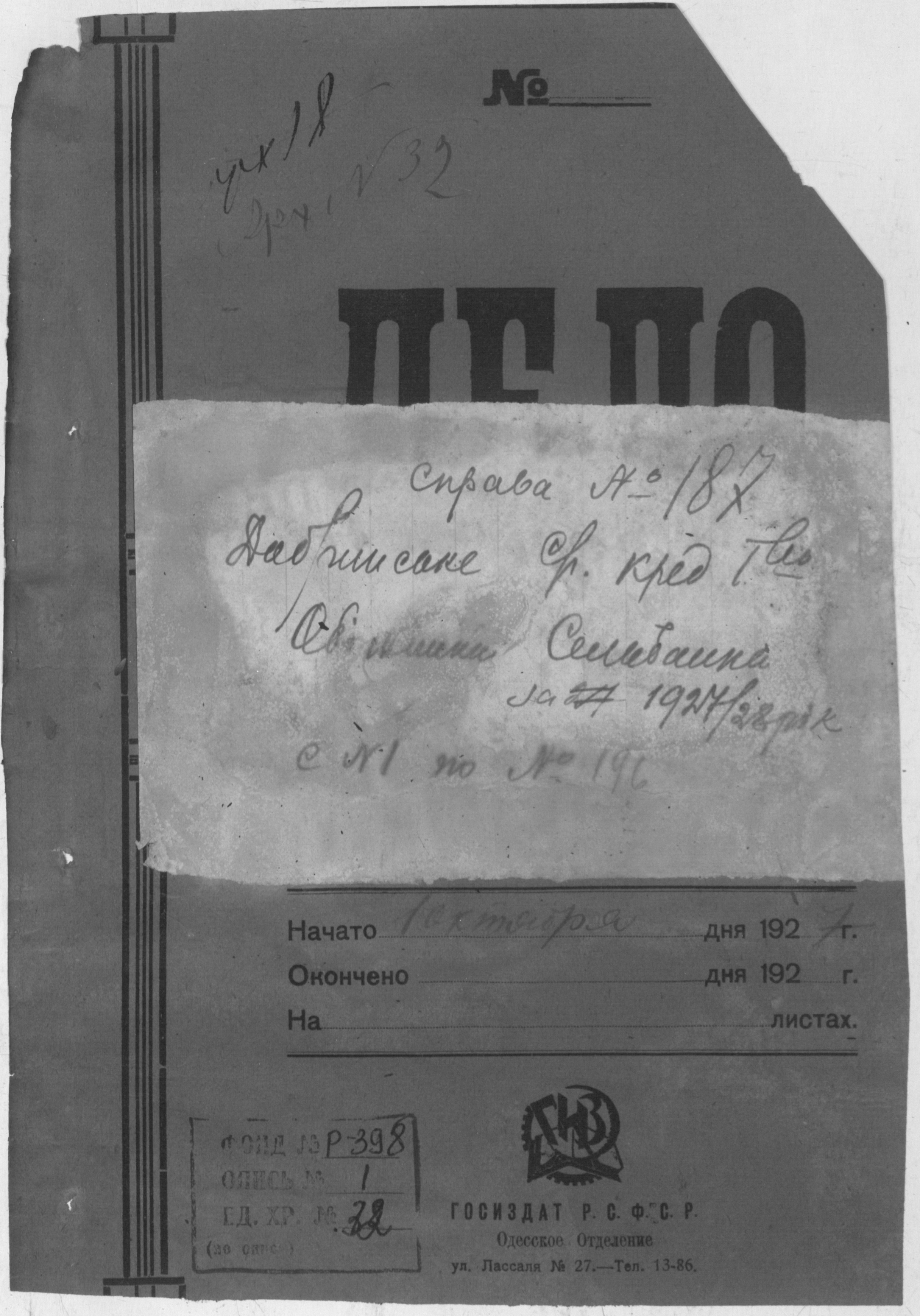 ◦ ◦ Фонд № Р-398 “Добренське сільськогосподарське кредитно-кооперативне товариство”