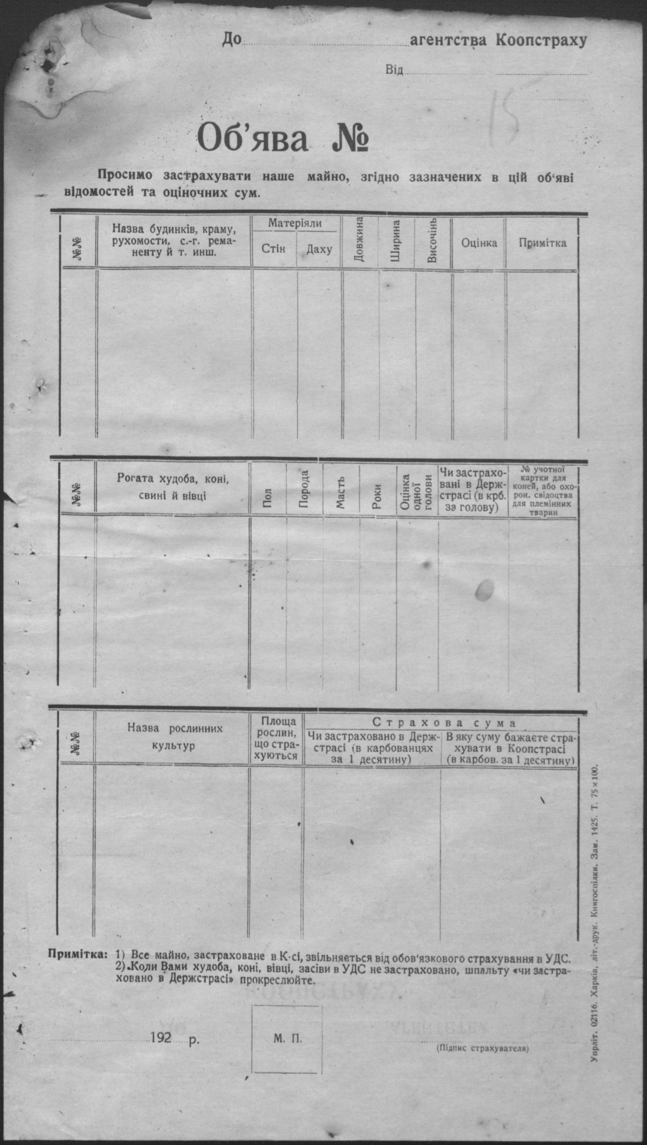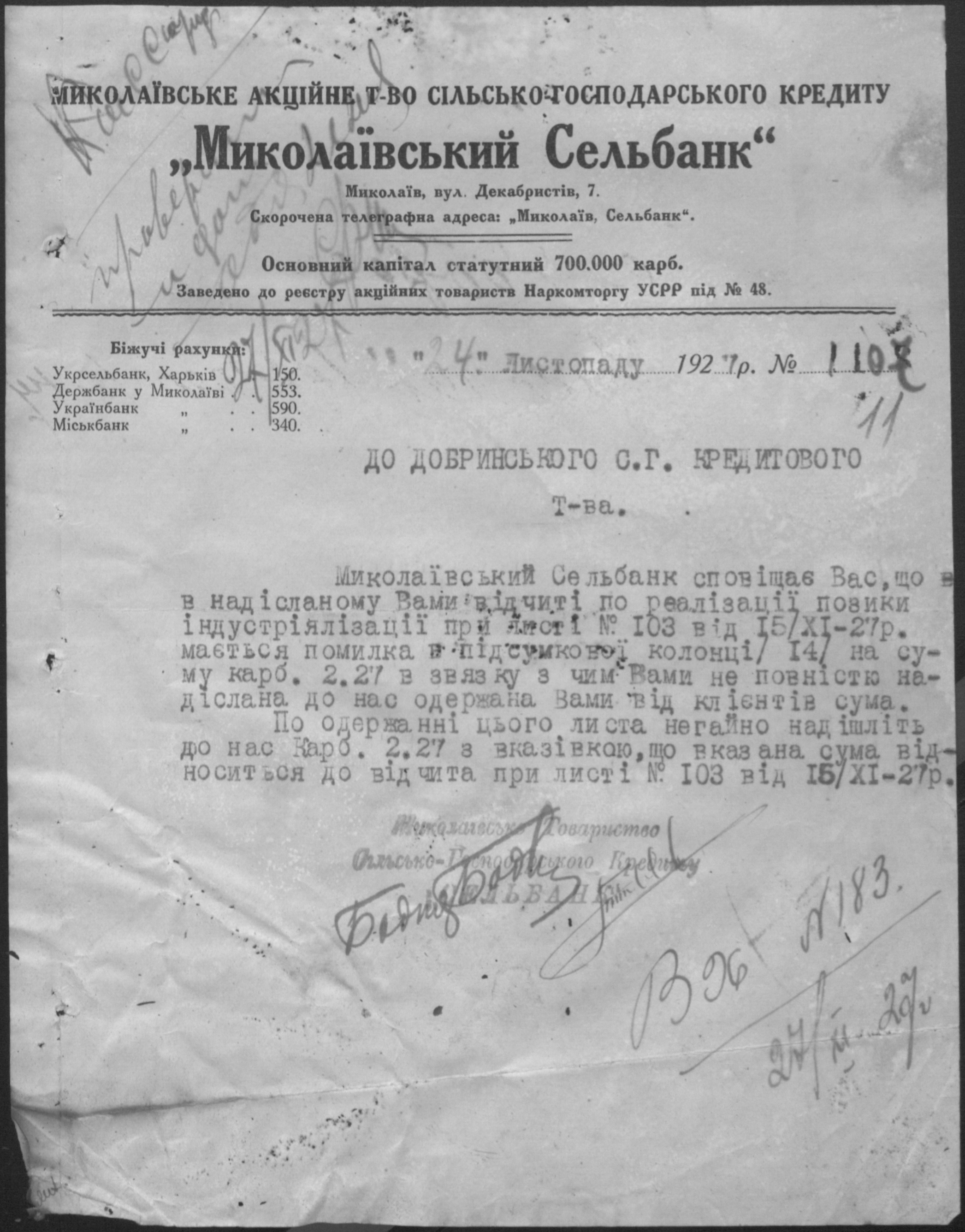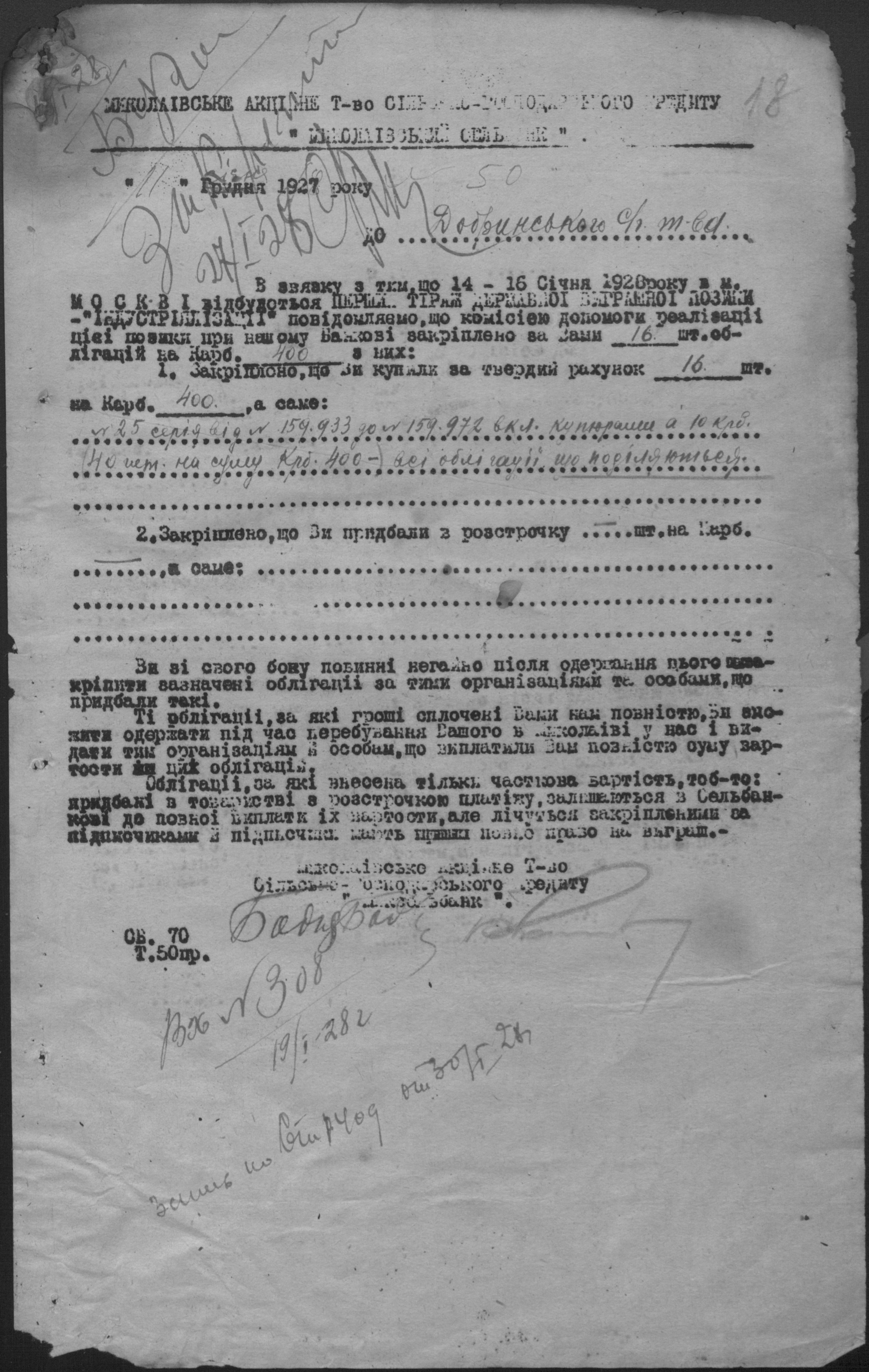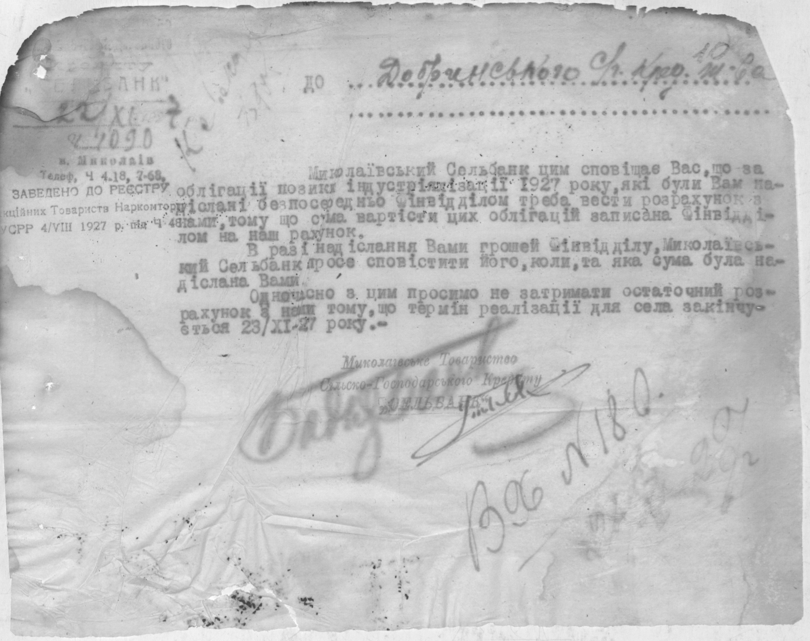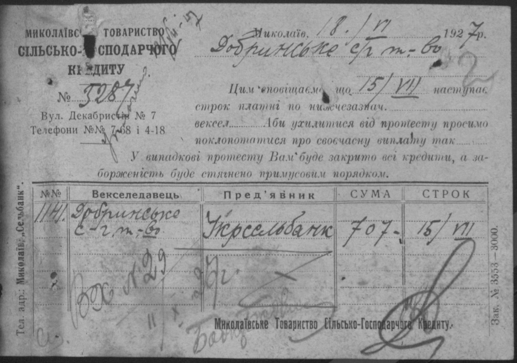 • • • • Справа № 32 “Обіжники Миколаївського акціонерного товариства сільськогосподарського кредиту «Миколаївський Сільбанк» про страхування худоби, видачу позичок і погашення заборгованостей”