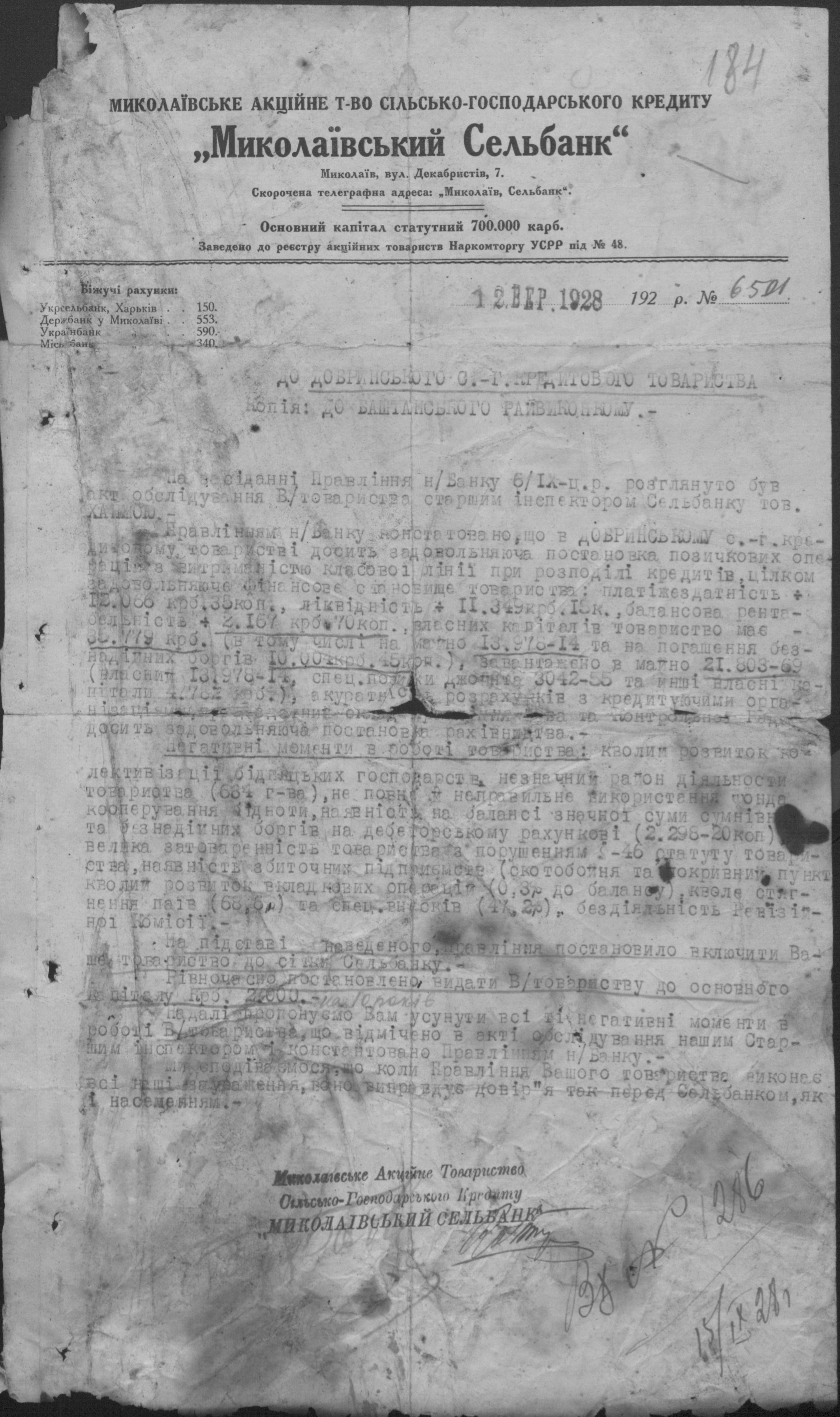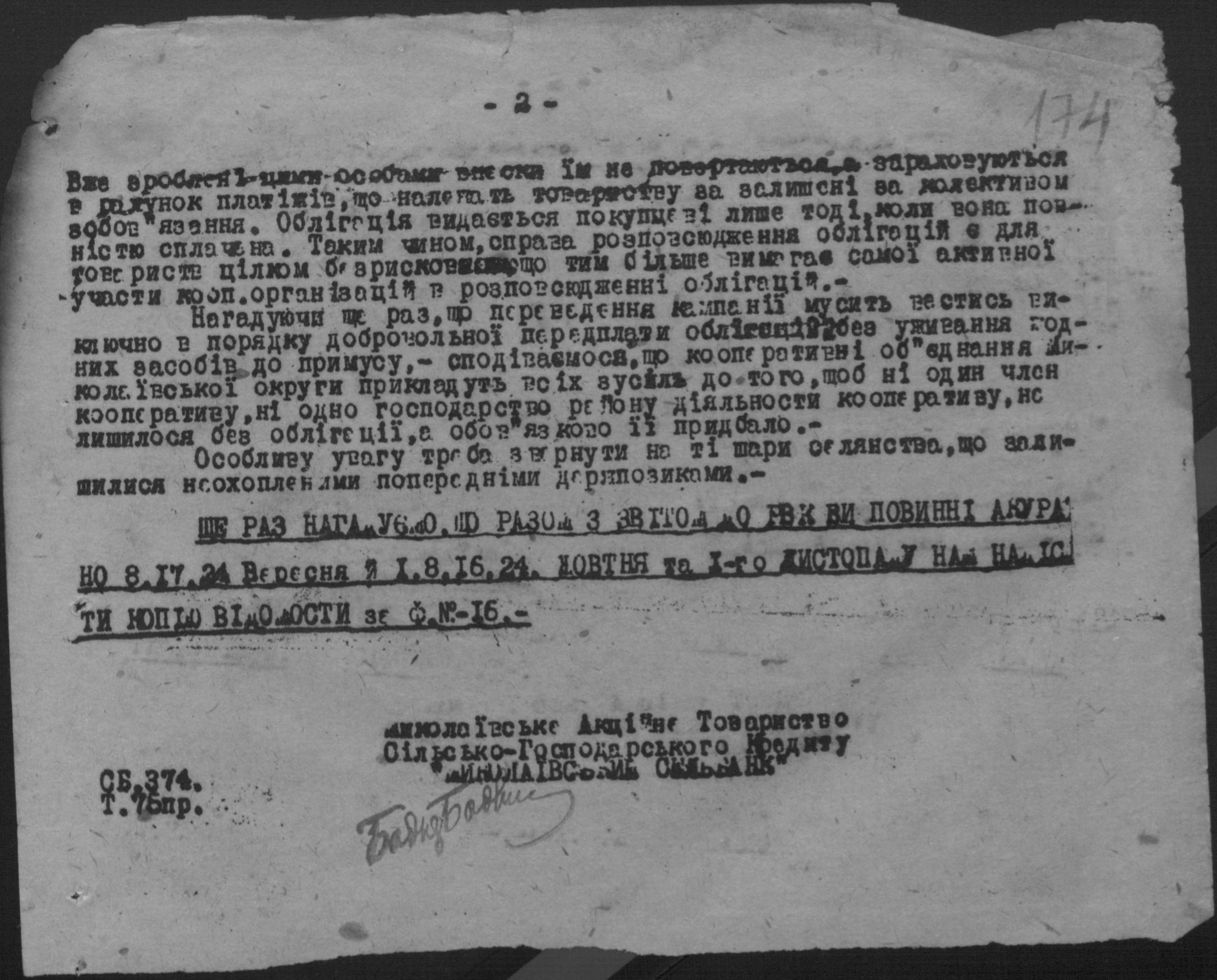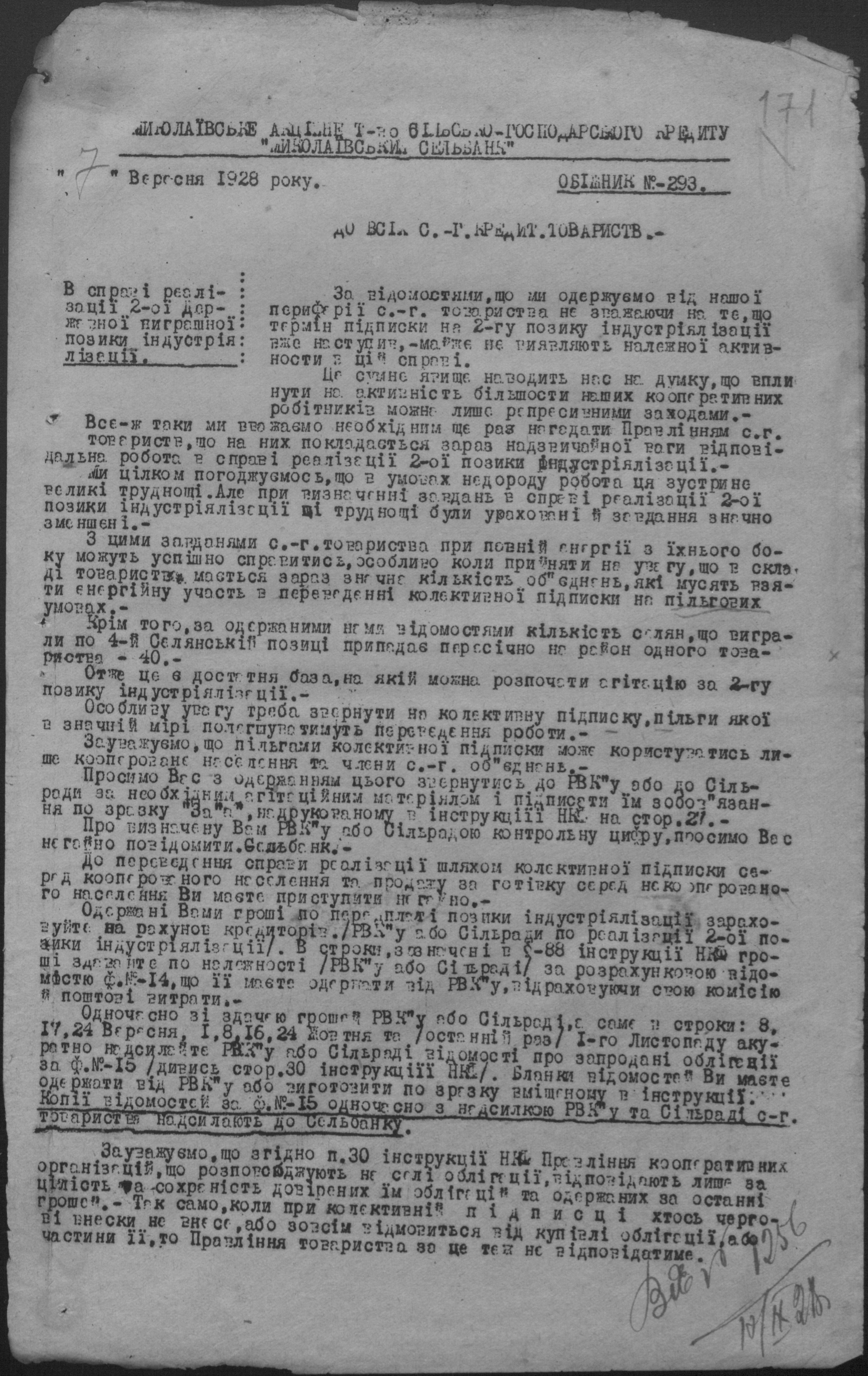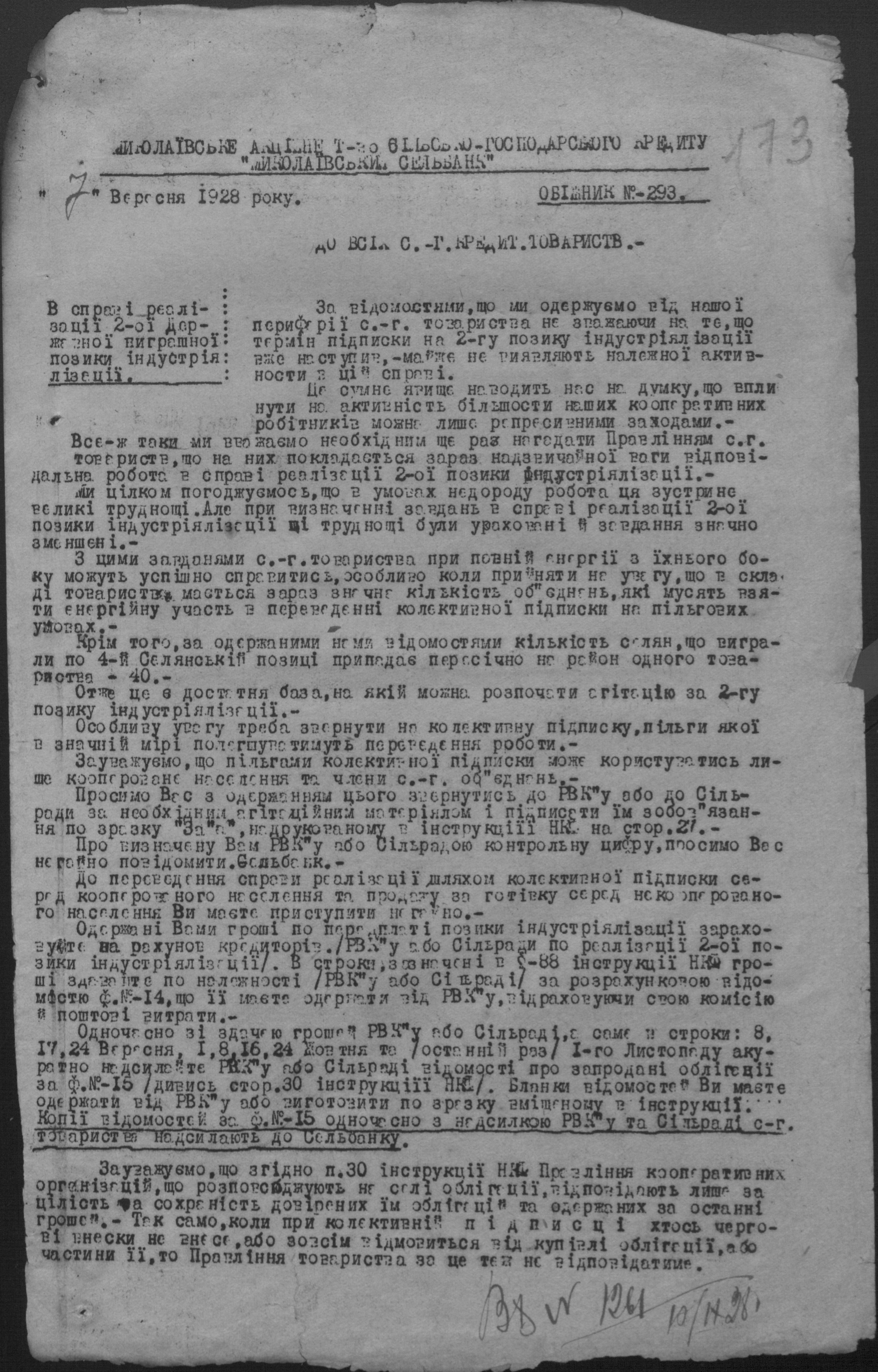 • • • • Справа № 32 “Обіжники Миколаївського акціонерного товариства сільськогосподарського кредиту «Миколаївський Сільбанк» про страхування худоби, видачу позичок і погашення заборгованостей”
