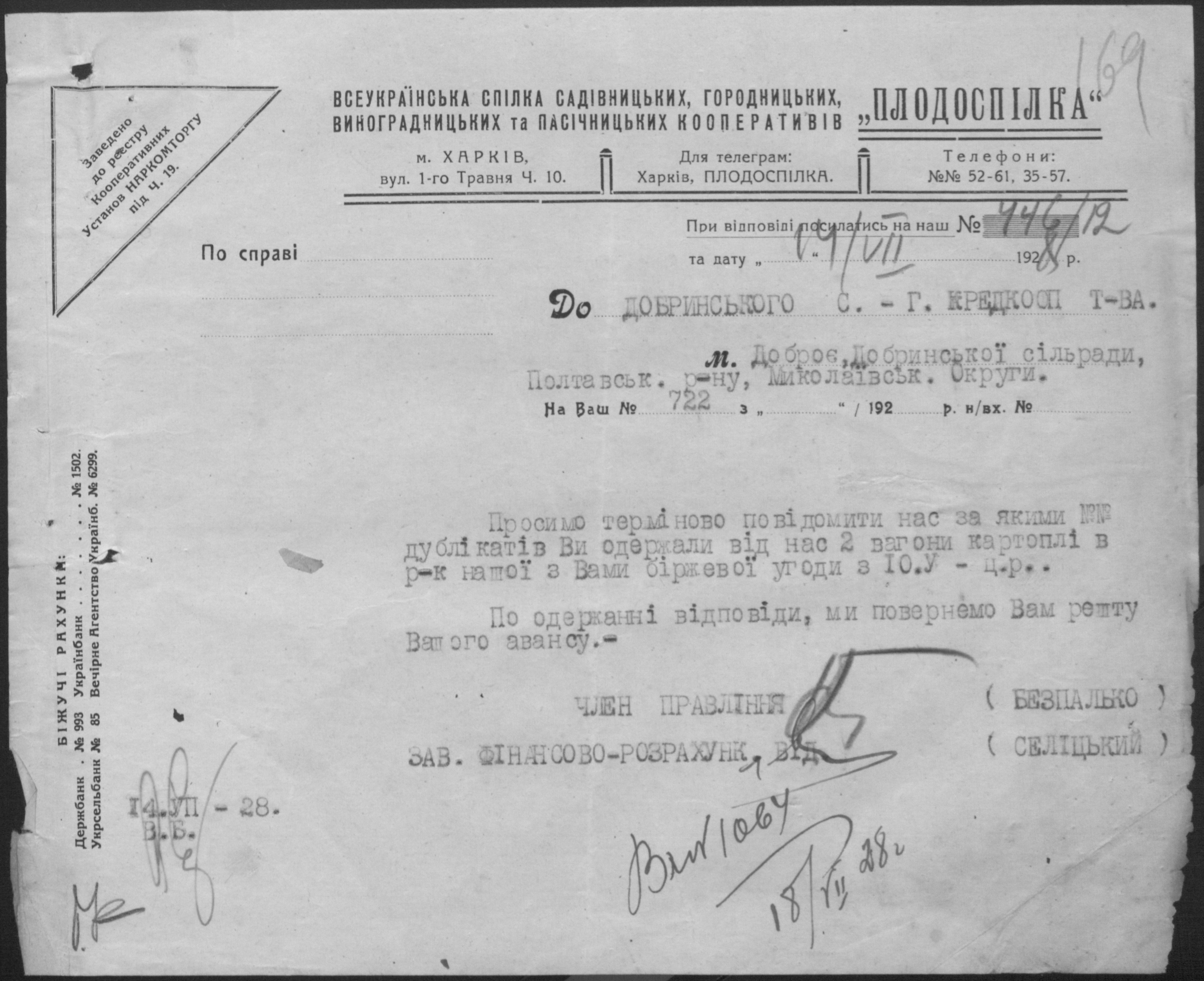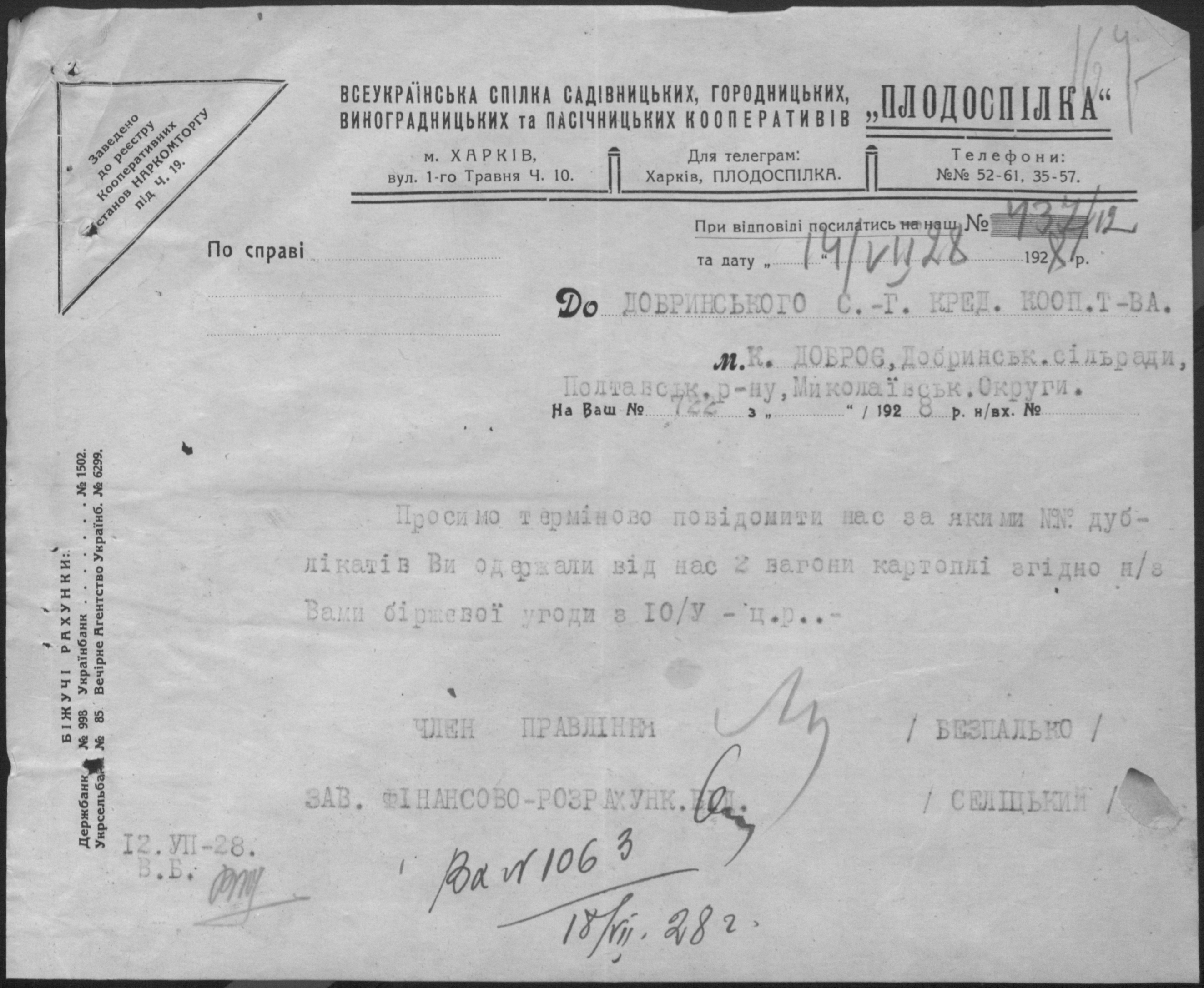 ◦ ◦ Фонд № Р-398 “Добренське сільськогосподарське кредитно-кооперативне товариство”