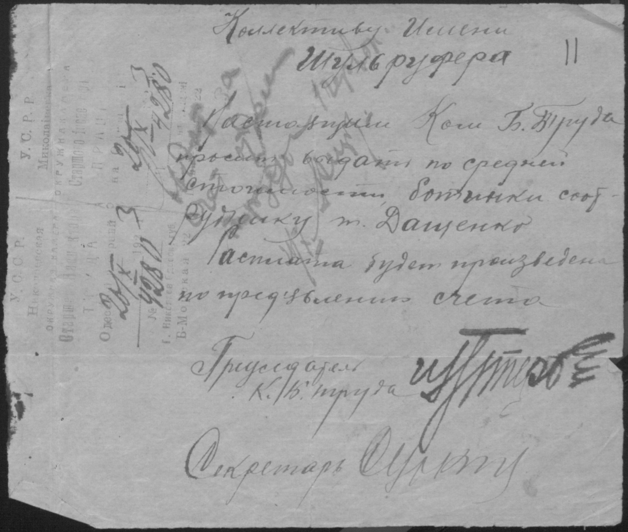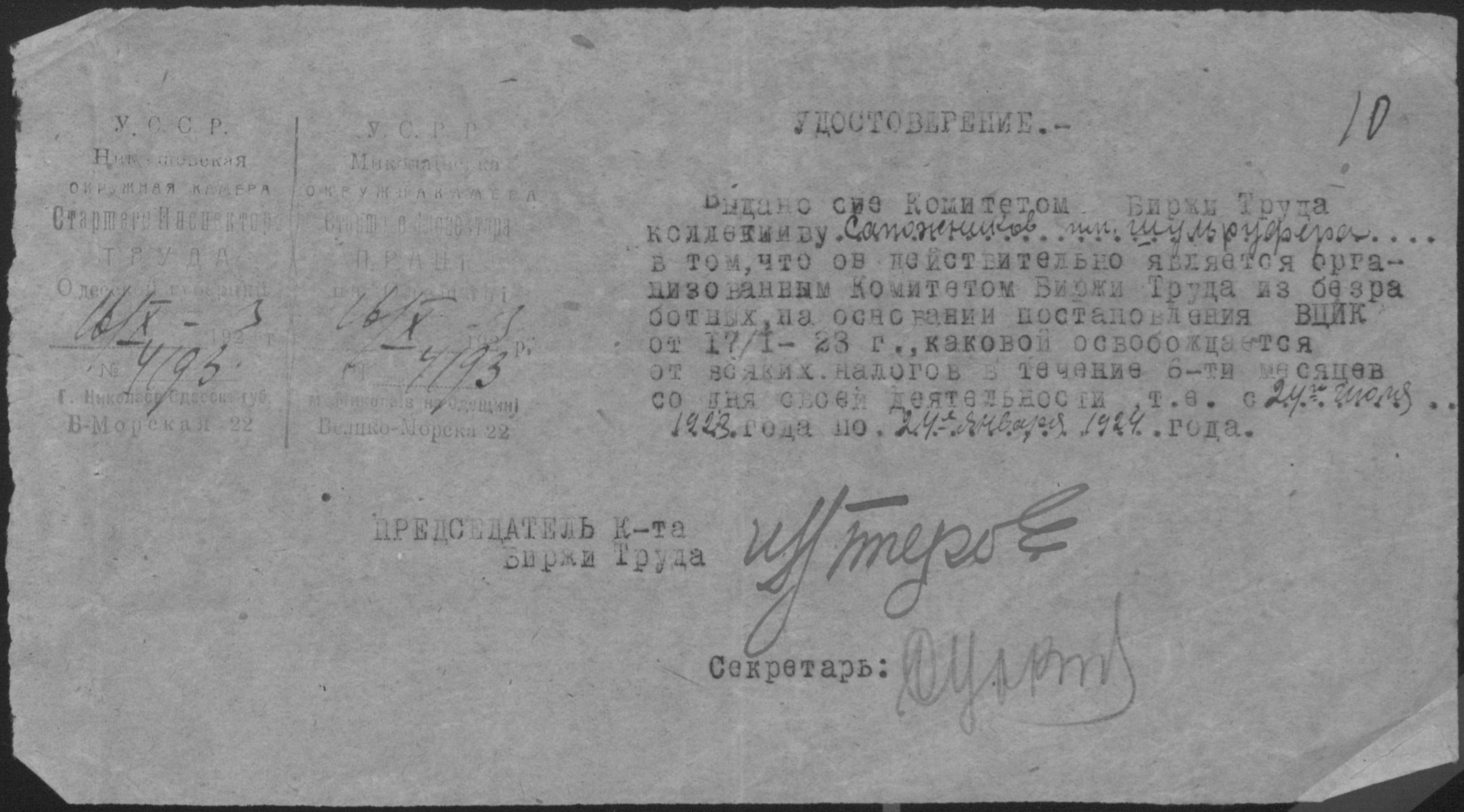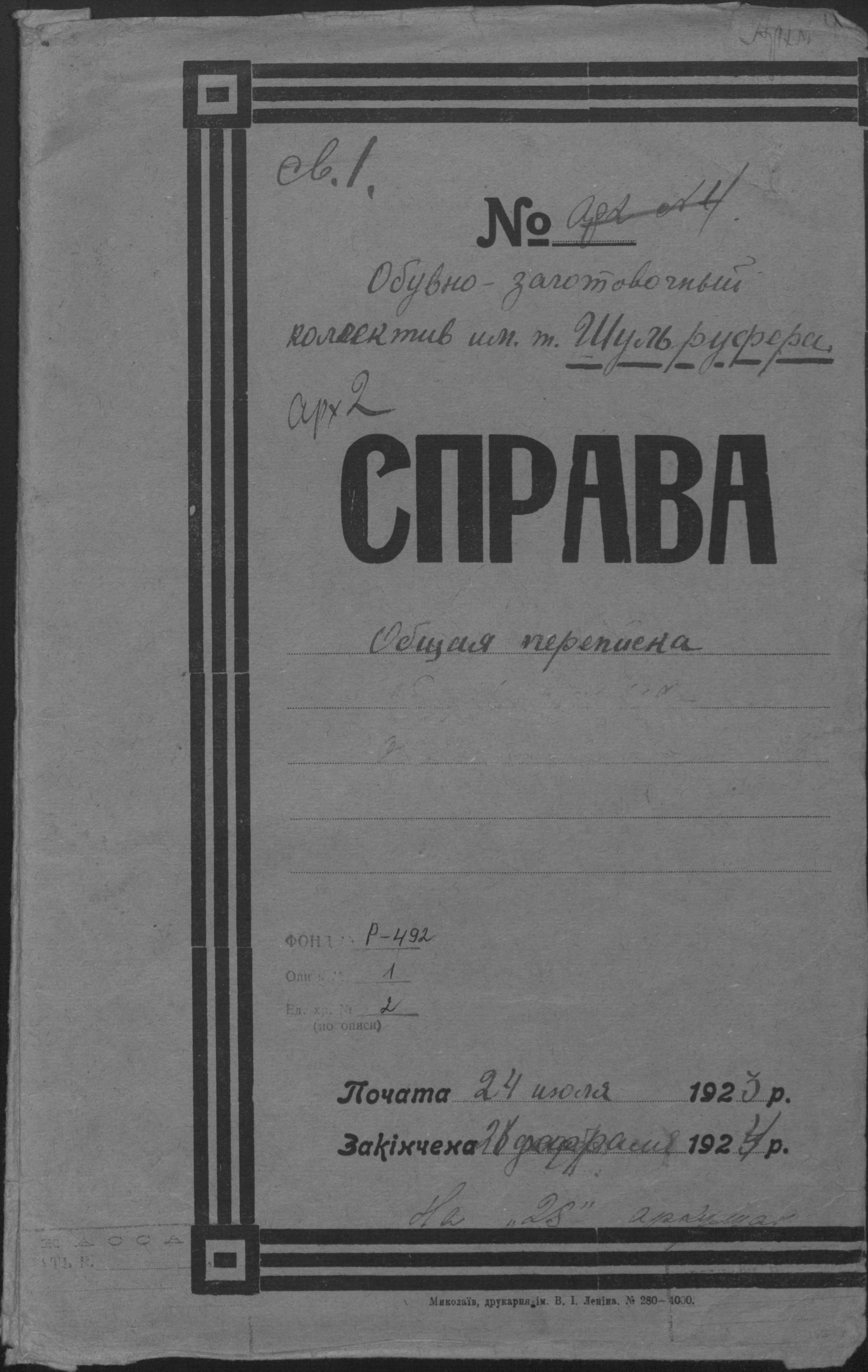 ◦ ◦ Фонд № Р-492 “Взуттєво-лимарна майстерня ім. Шульруфера колективу безробітних при Миколаївському окружному комітеті по боротьбі з безробіттям”
