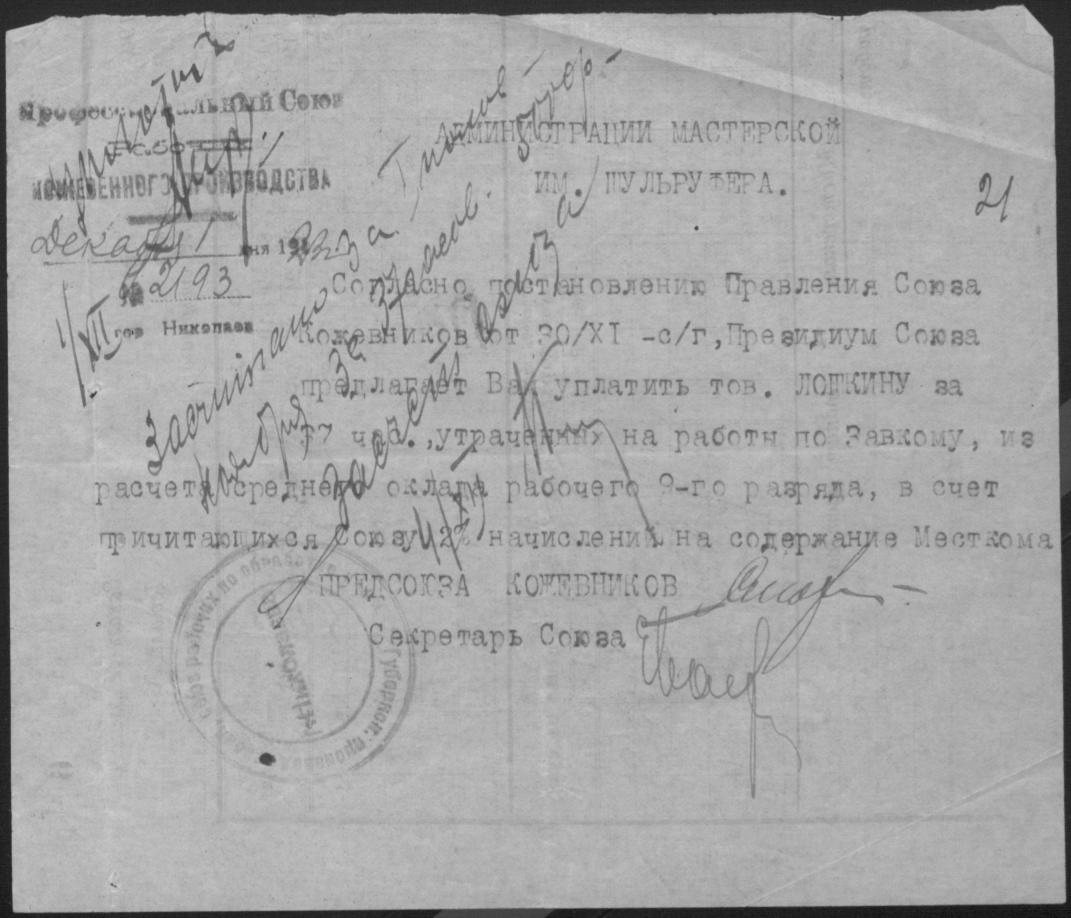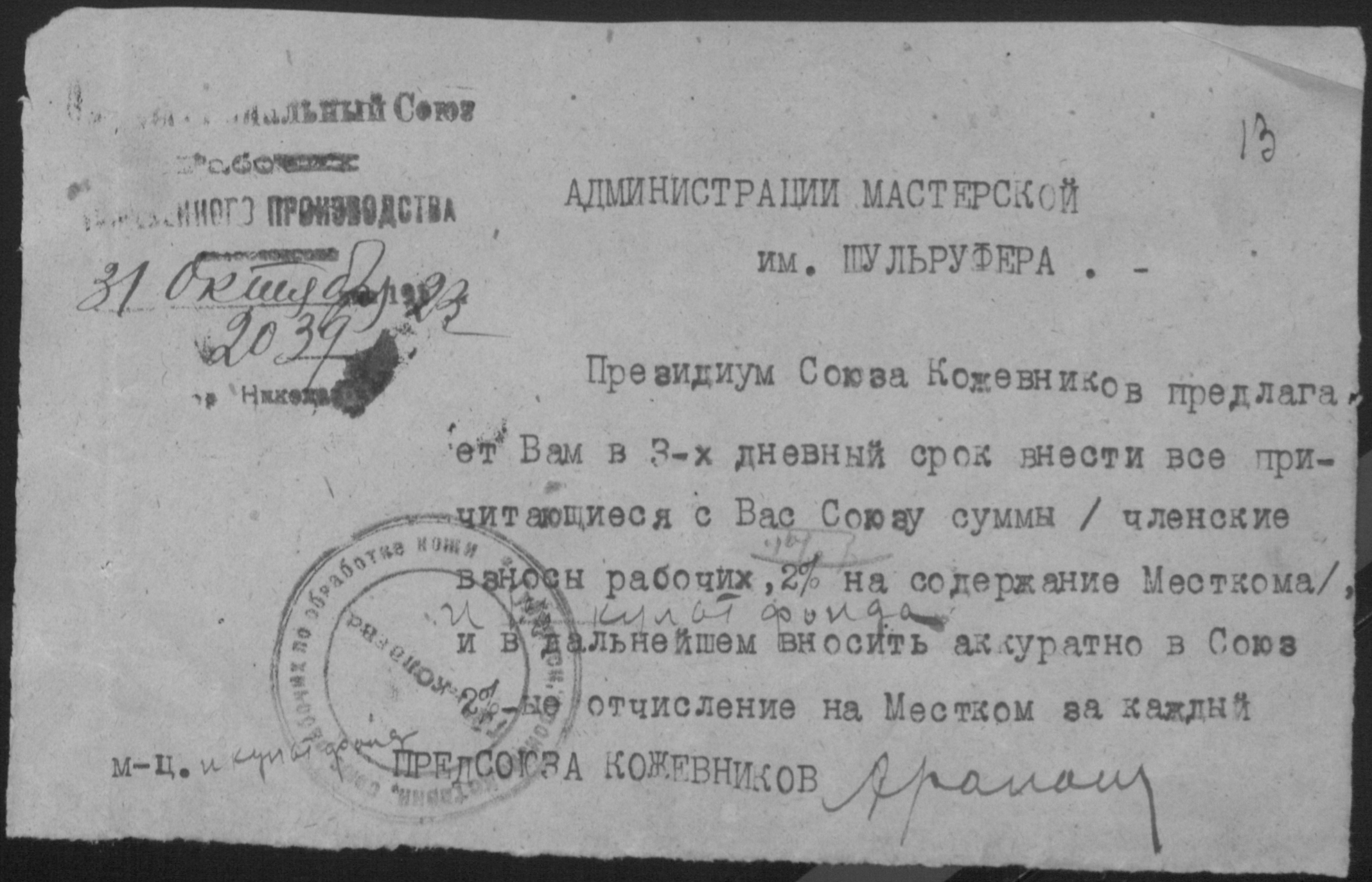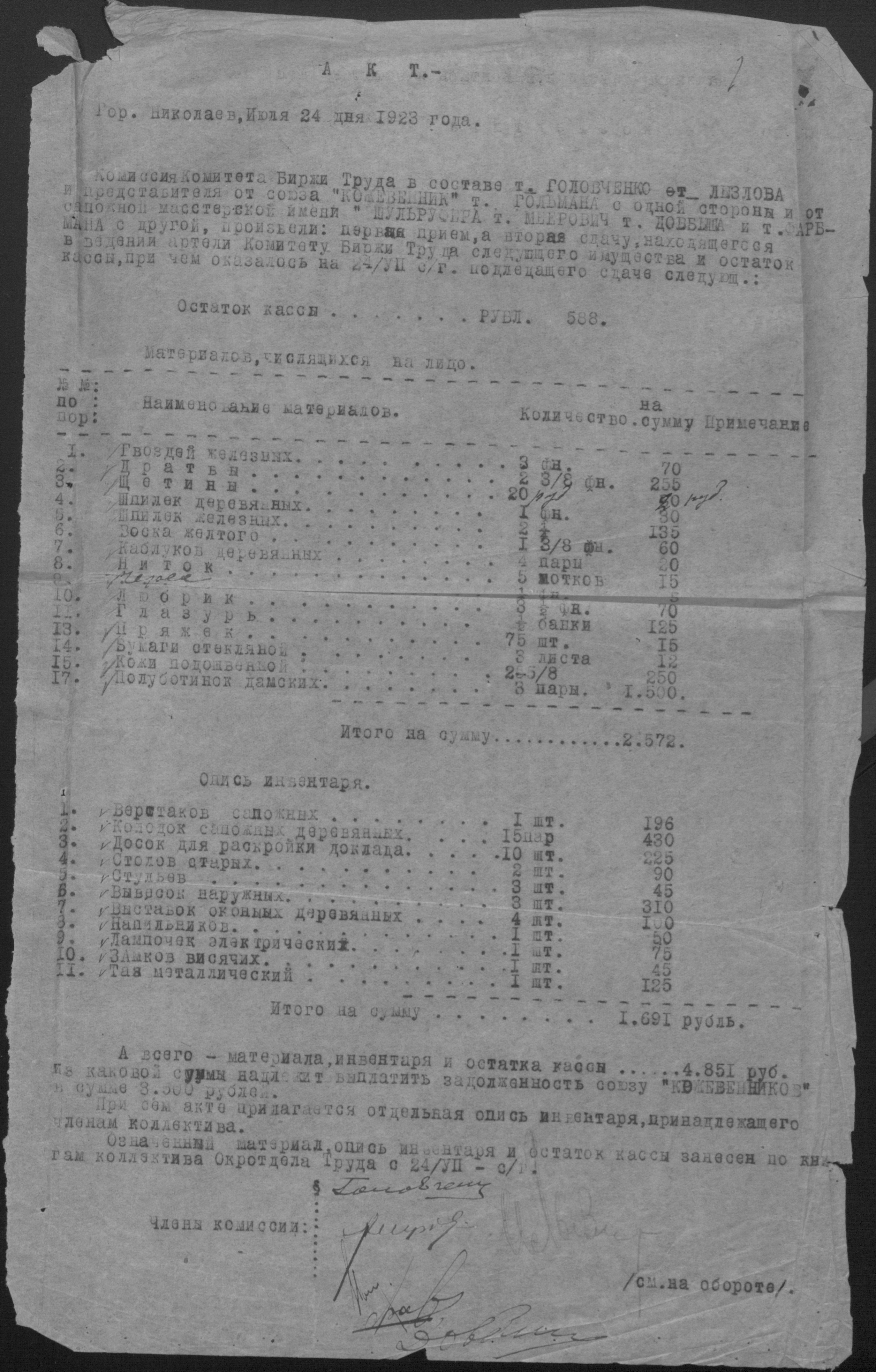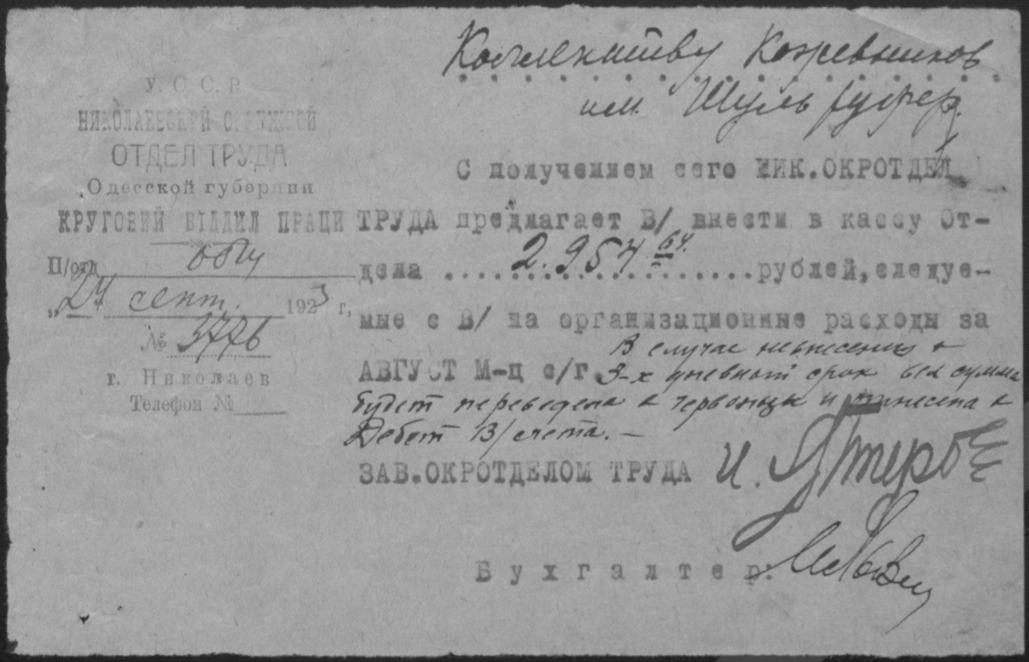 ◦ ◦ Фонд № Р-492 “Взуттєво-лимарна майстерня ім. Шульруфера колективу безробітних при Миколаївському окружному комітеті по боротьбі з безробіттям”