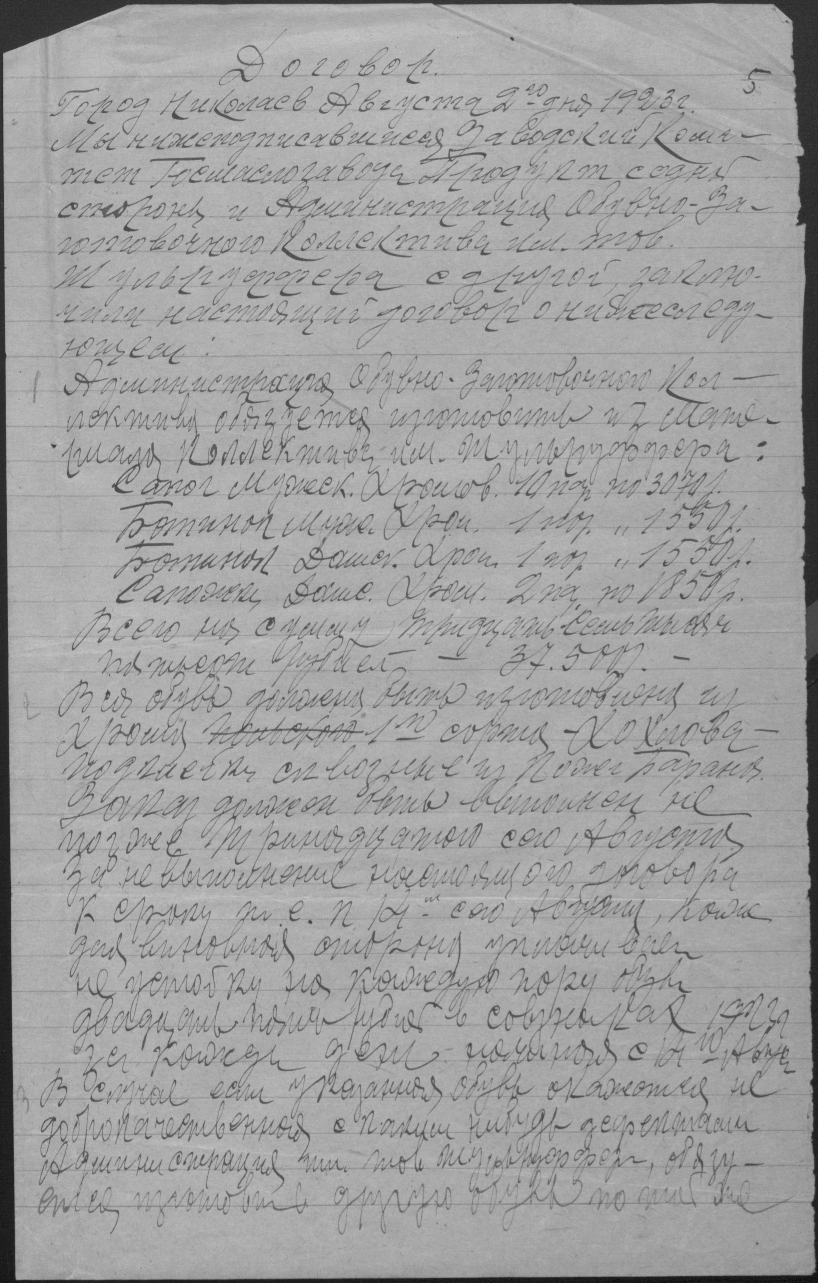• • • • Справа № 2 “Відомості витрат матеріалів, договори про виробництво взуття, акти приймання і передачі майна і матеріалів”