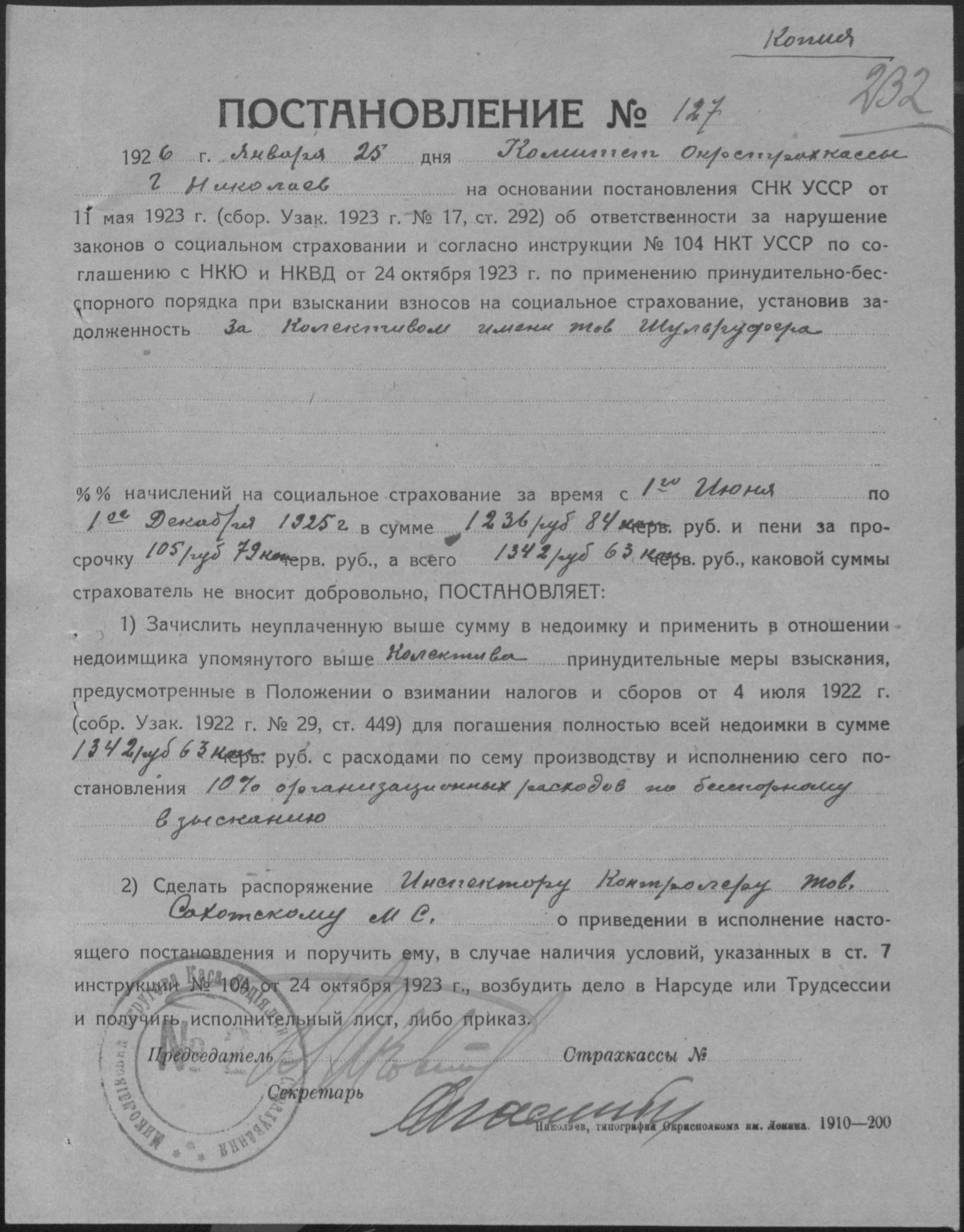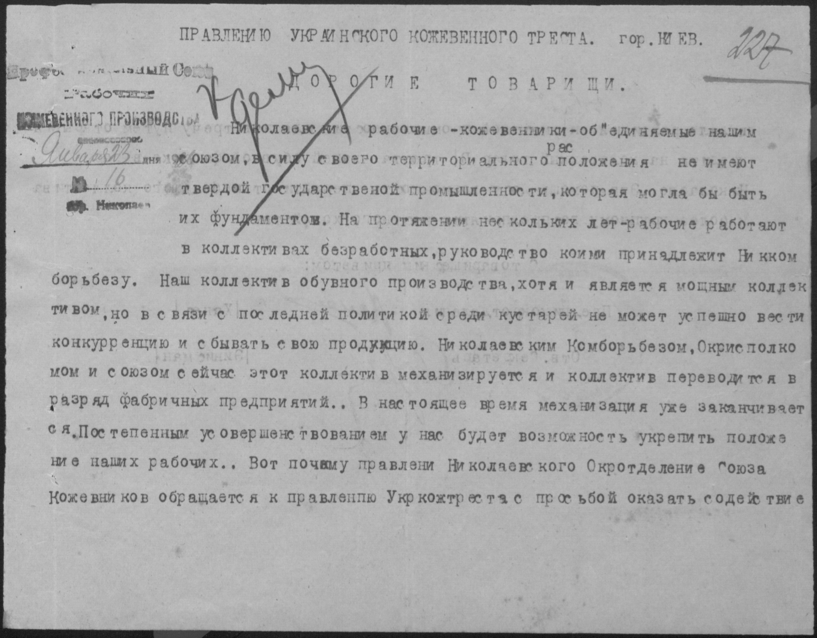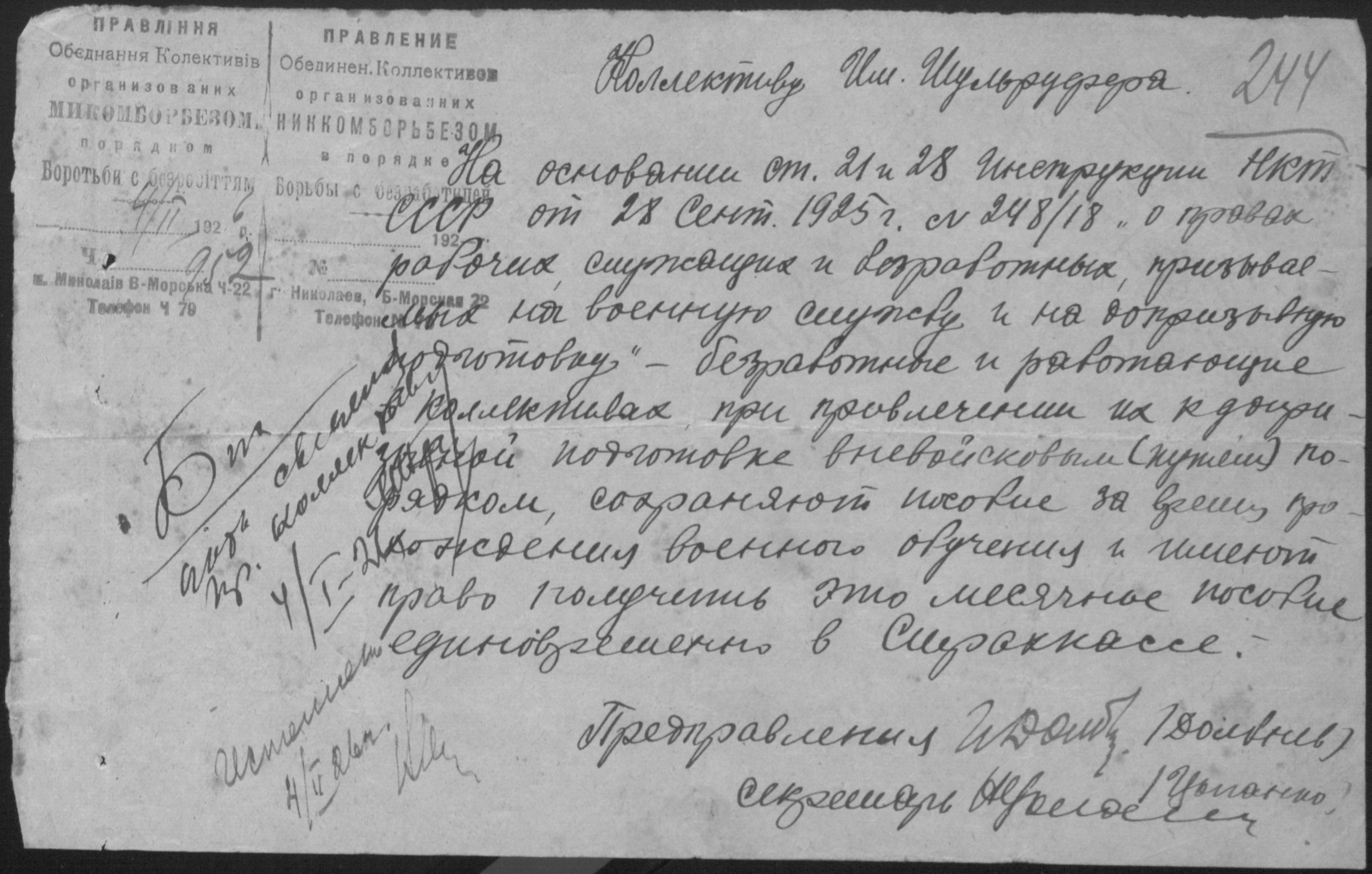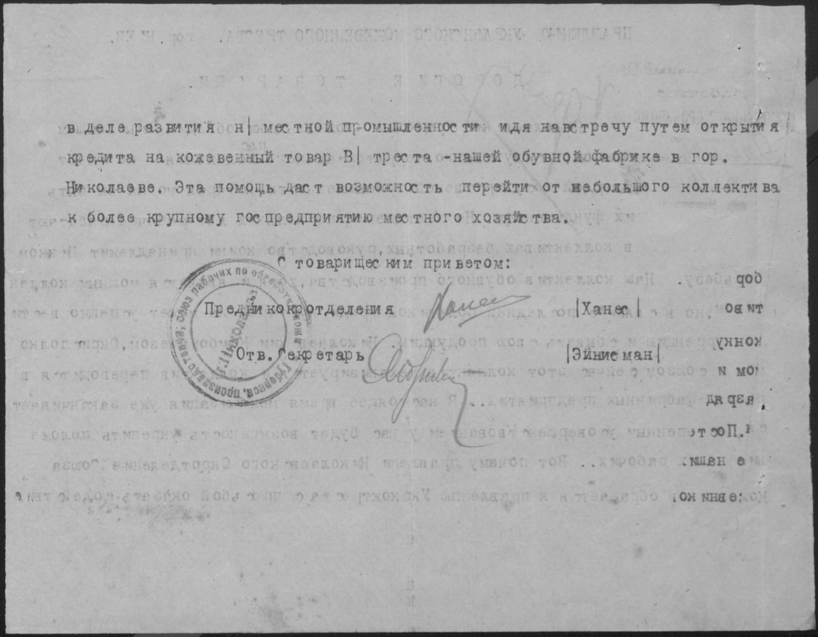 ◦ ◦ Фонд № Р-492 “Взуттєво-лимарна майстерня ім. Шульруфера колективу безробітних при Миколаївському окружному комітеті по боротьбі з безробіттям”