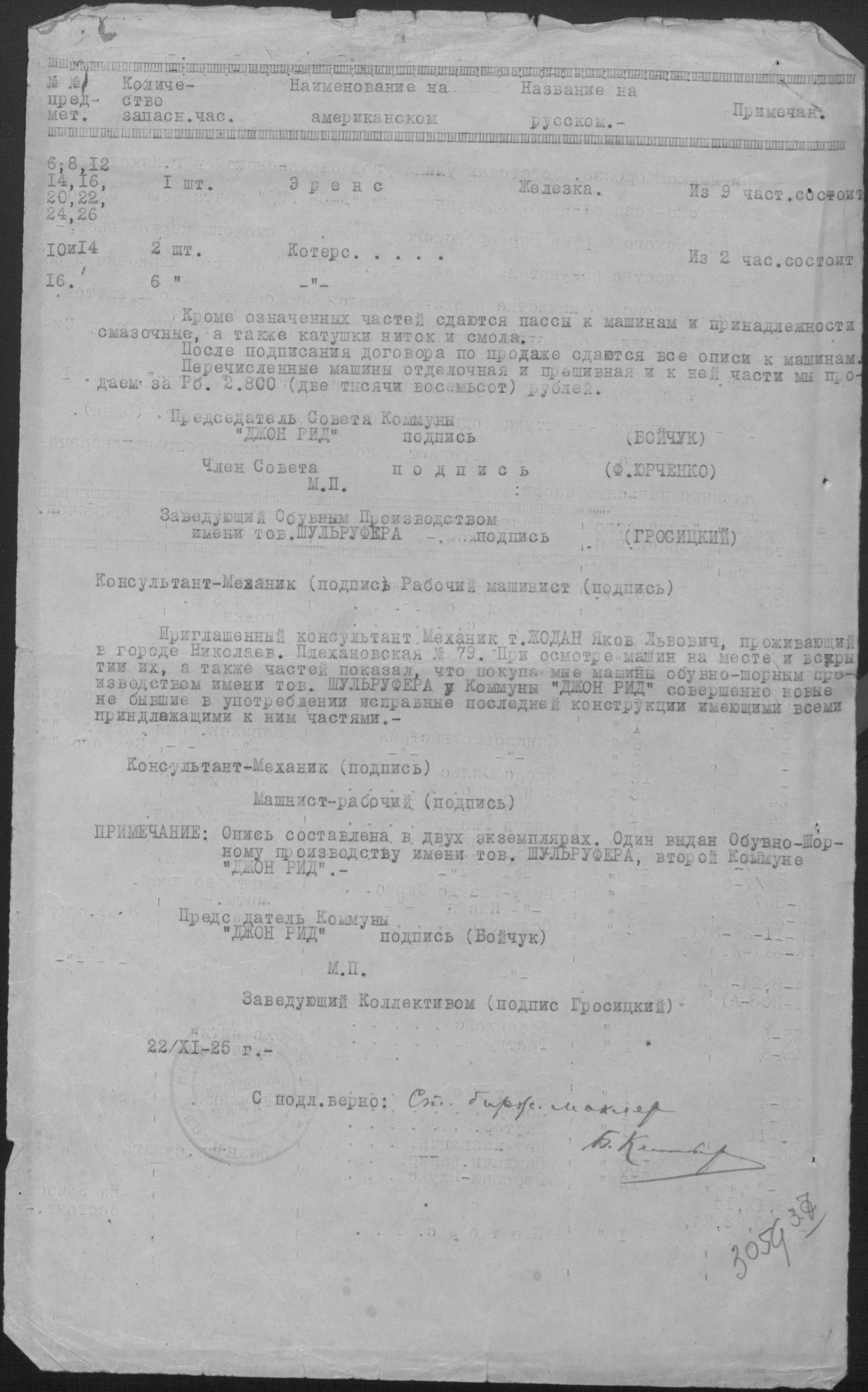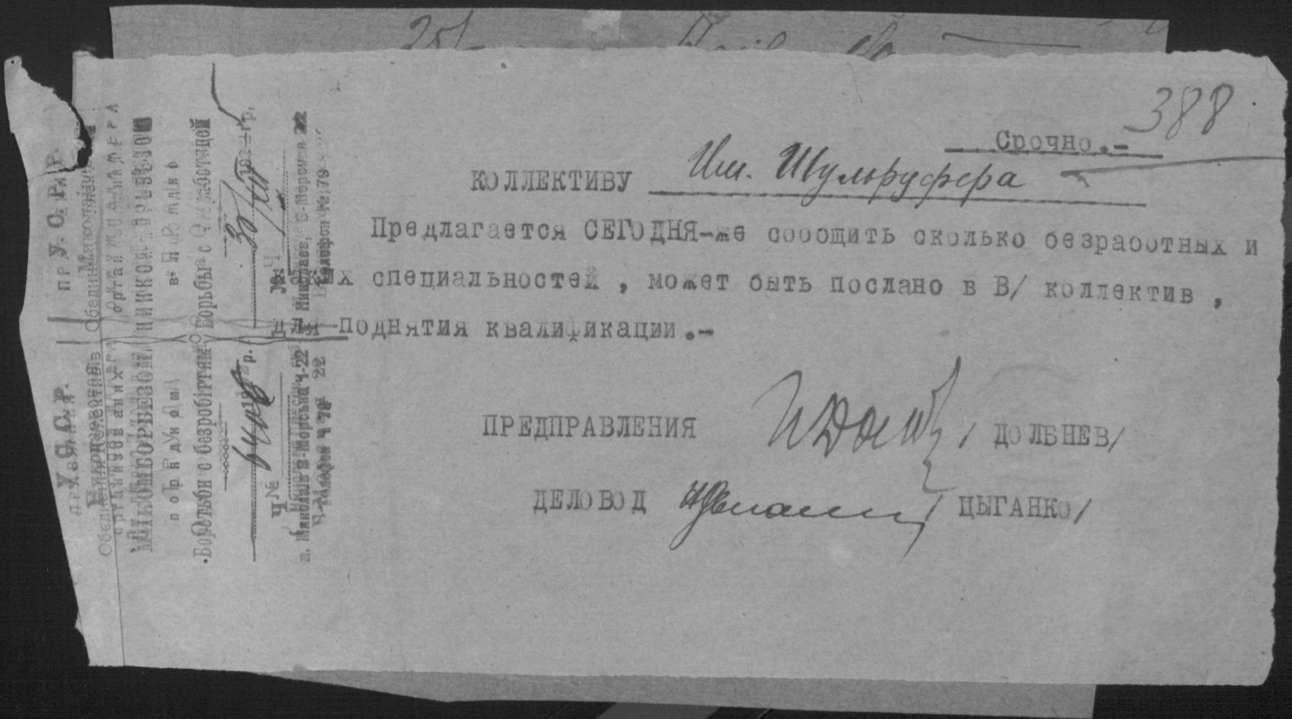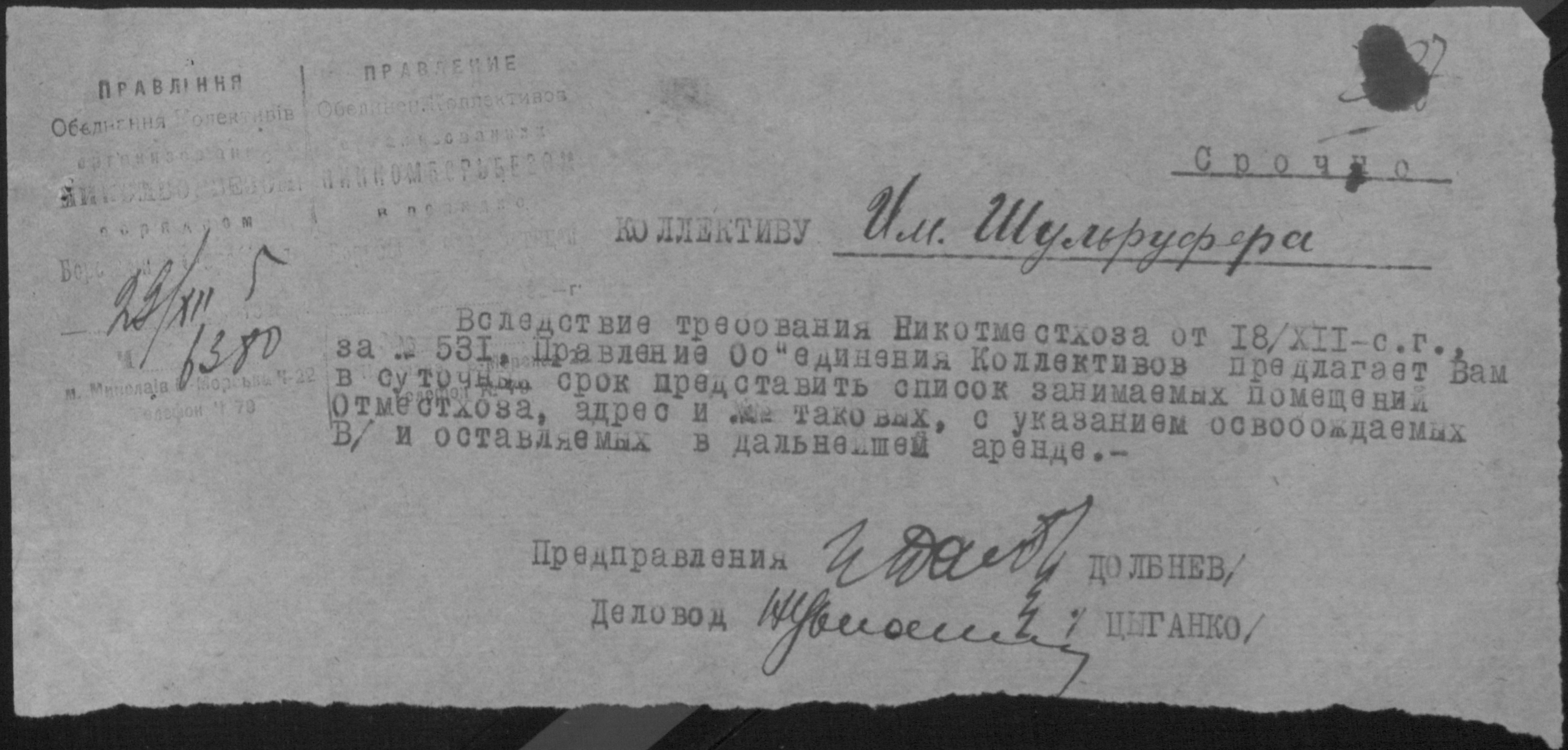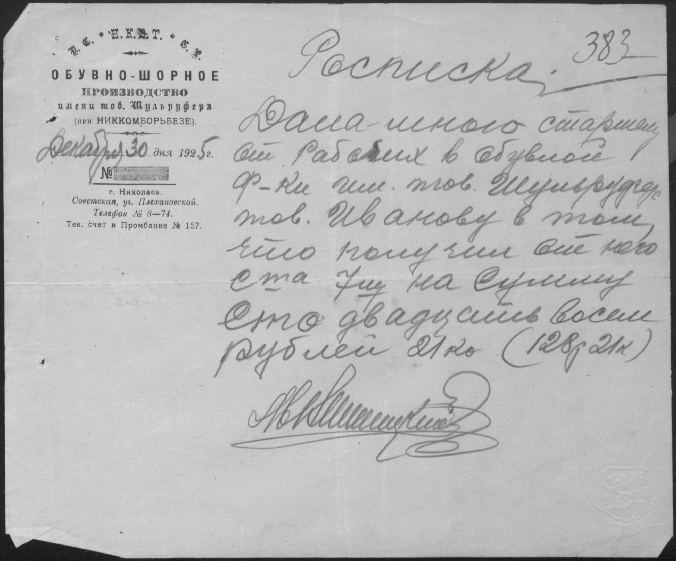 ◦ ◦ Фонд № Р-492 “Взуттєво-лимарна майстерня ім. Шульруфера колективу безробітних при Миколаївському окружному комітеті по боротьбі з безробіттям”