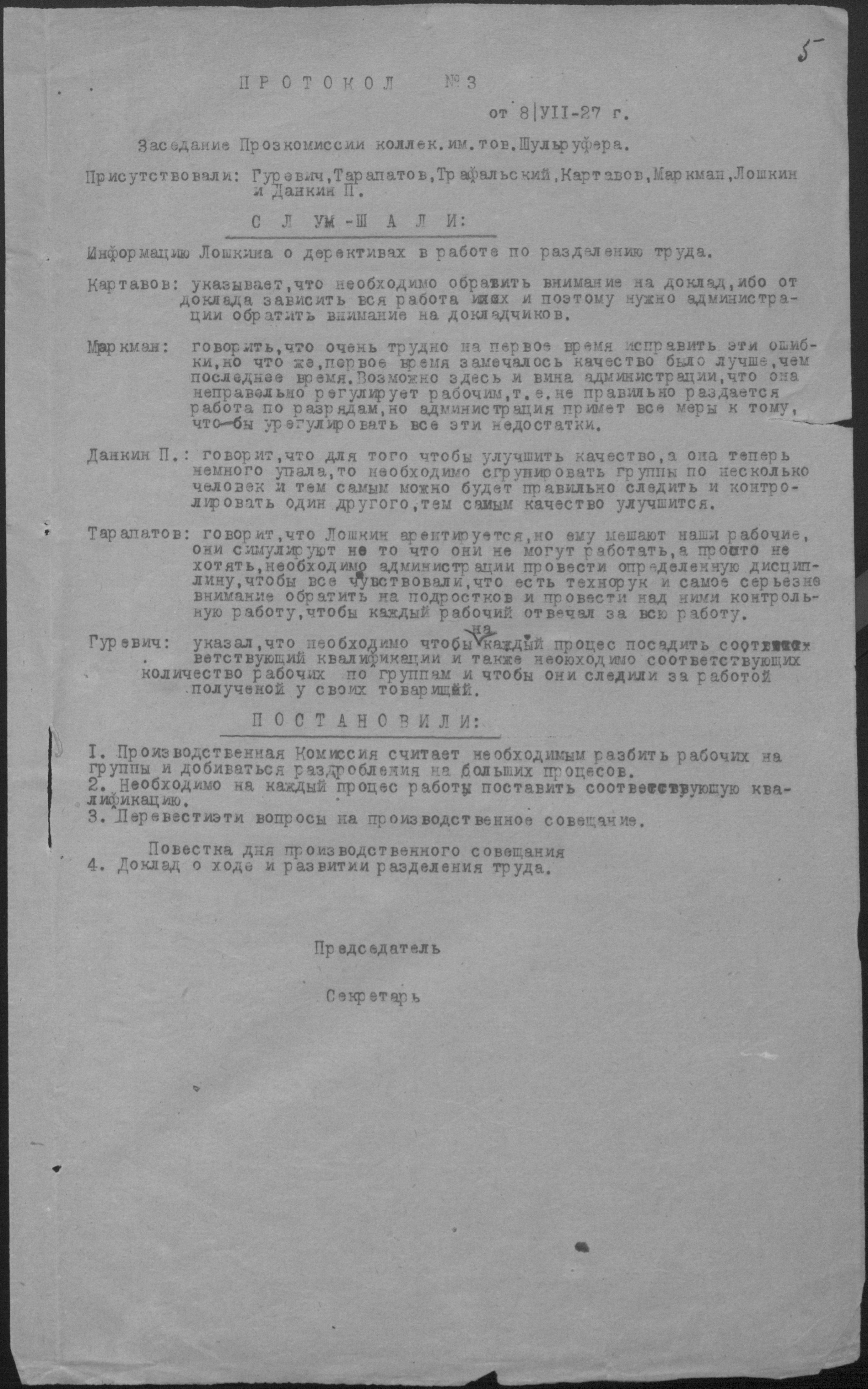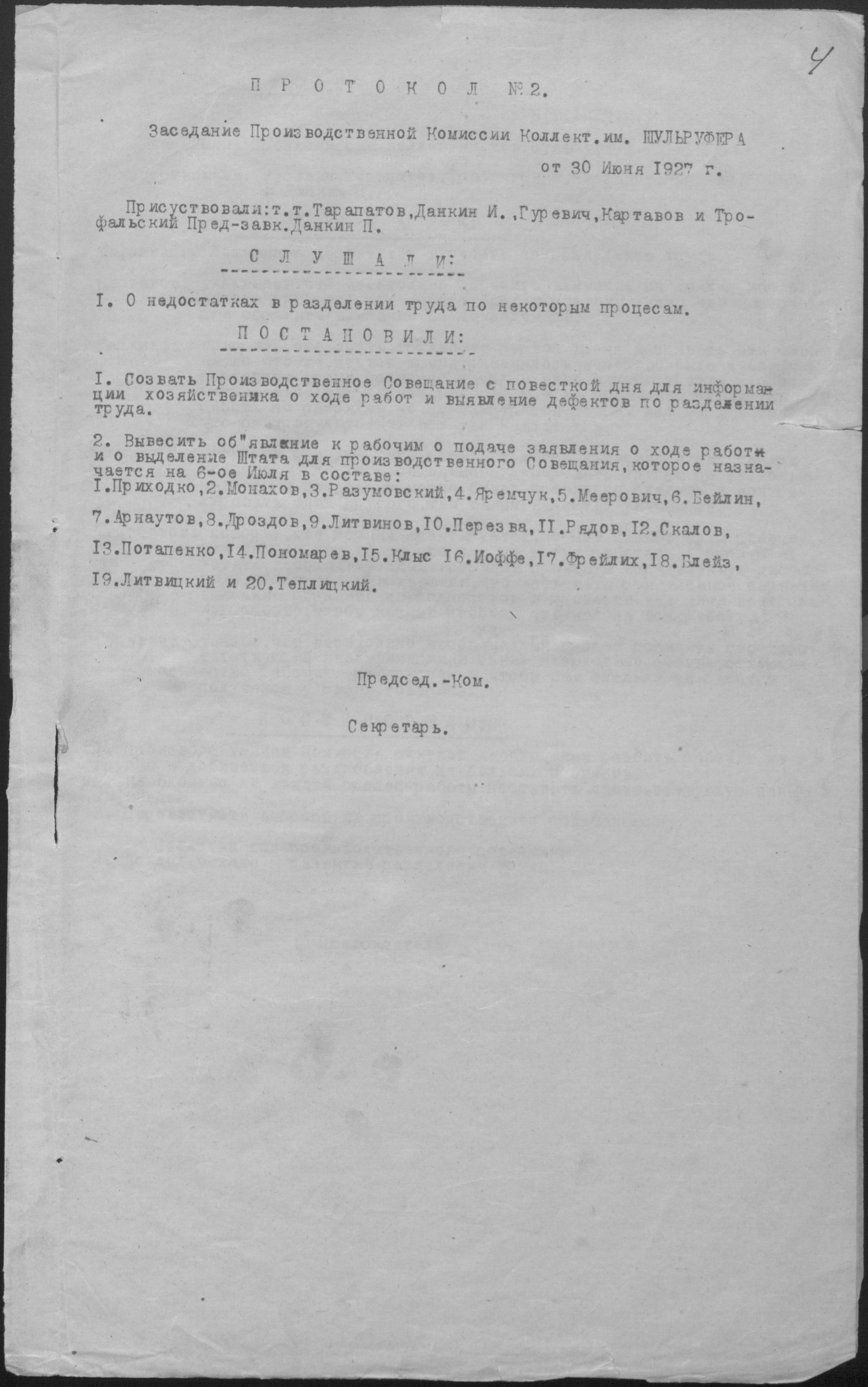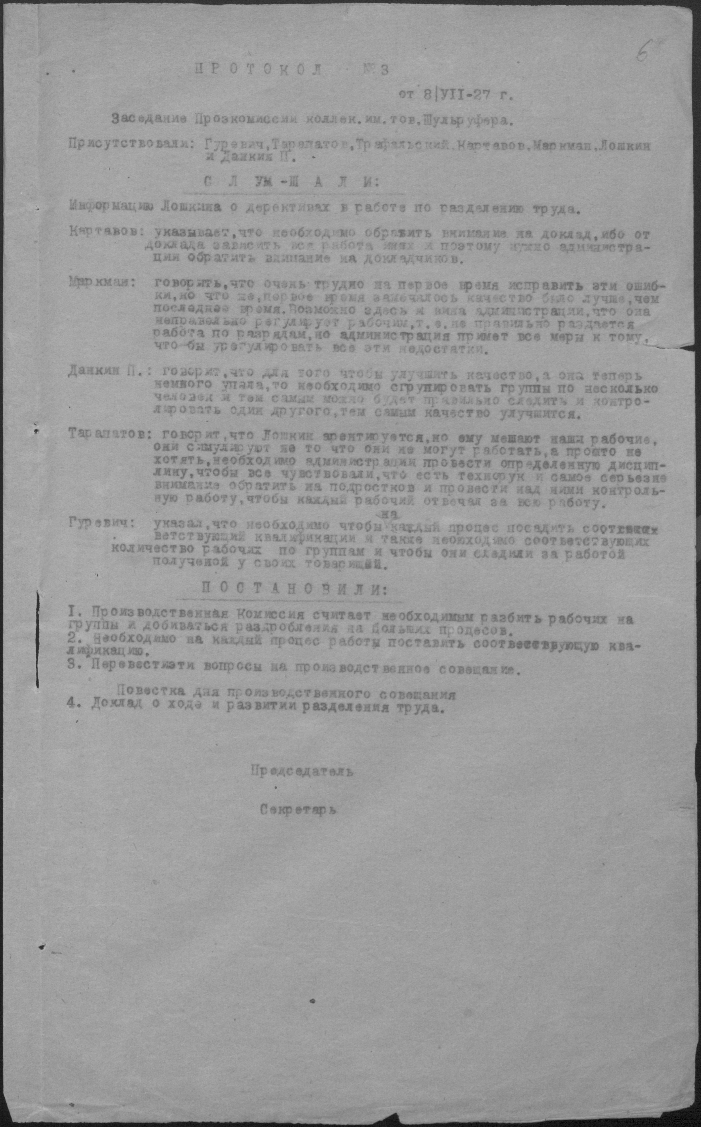 • • • • Справа № 8 “Протоколи виробничої наради і засідань виробничої комісії колективу”