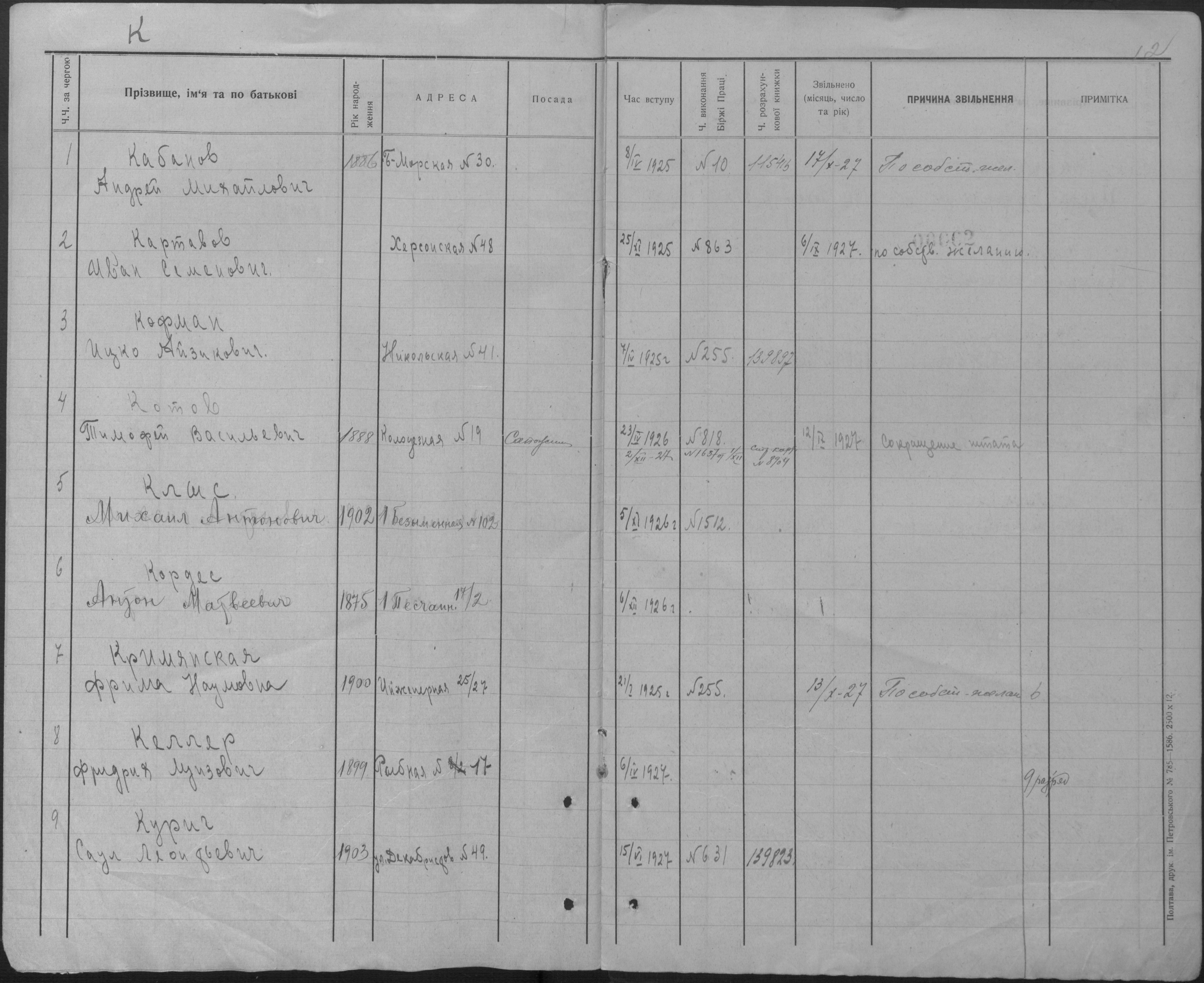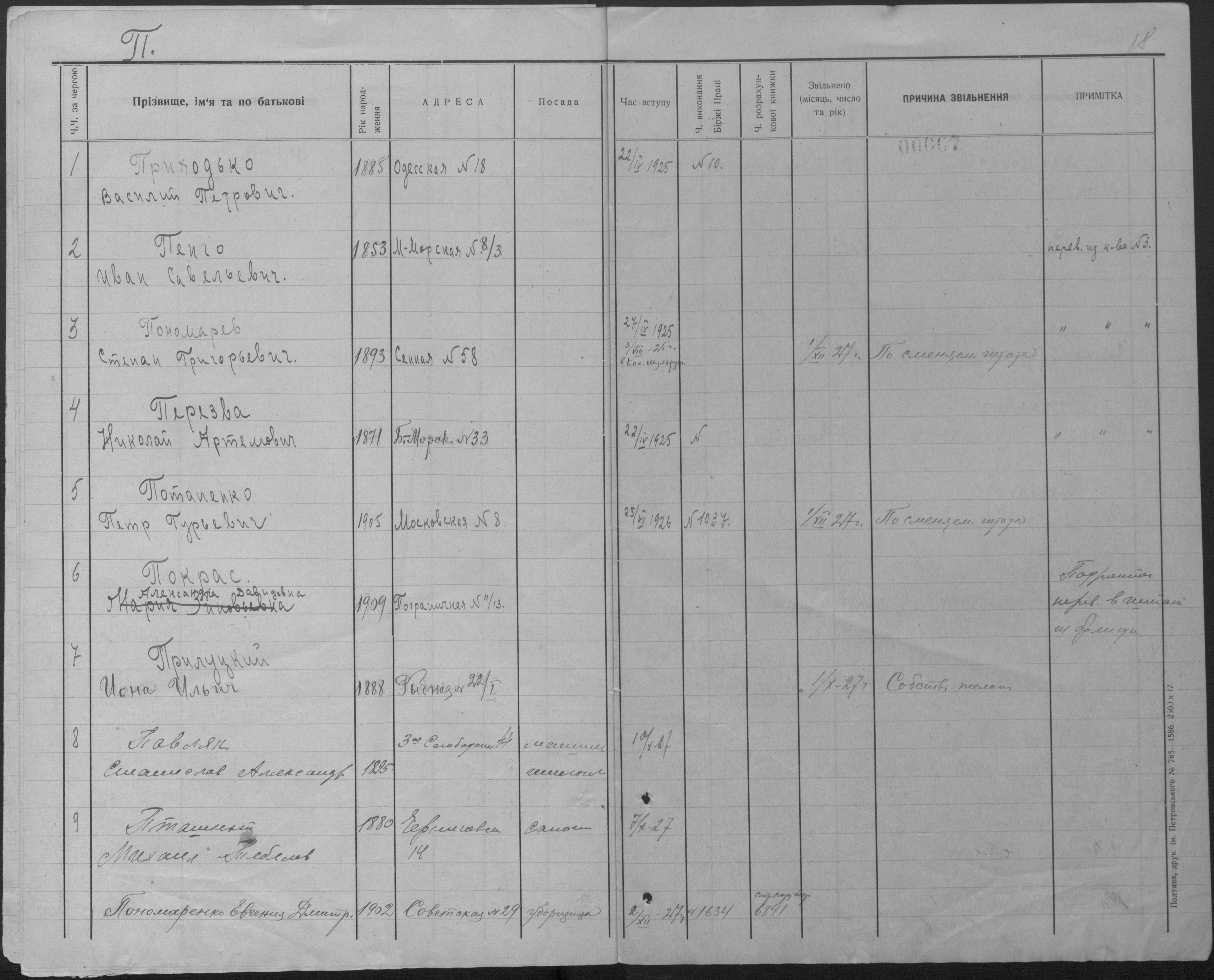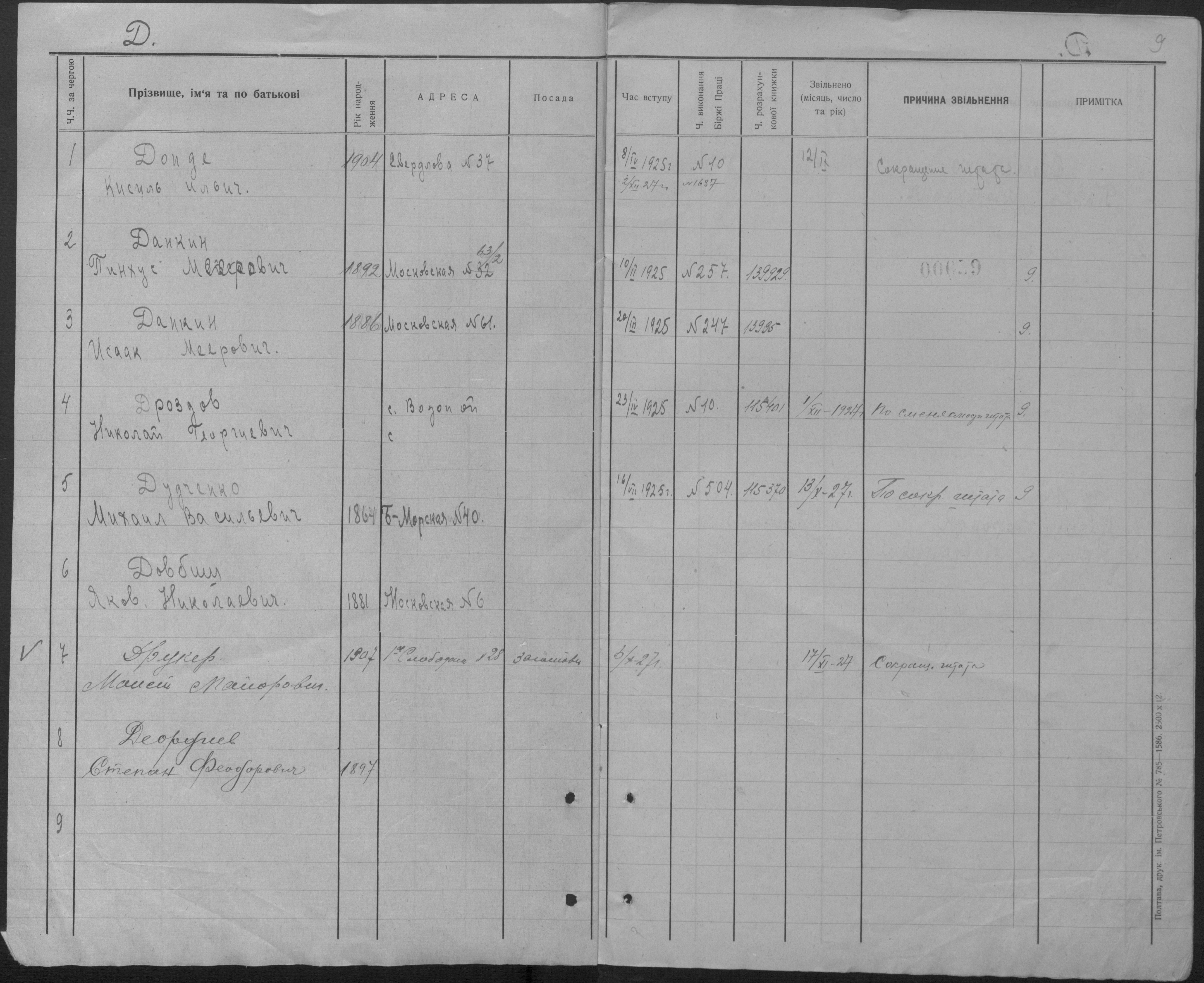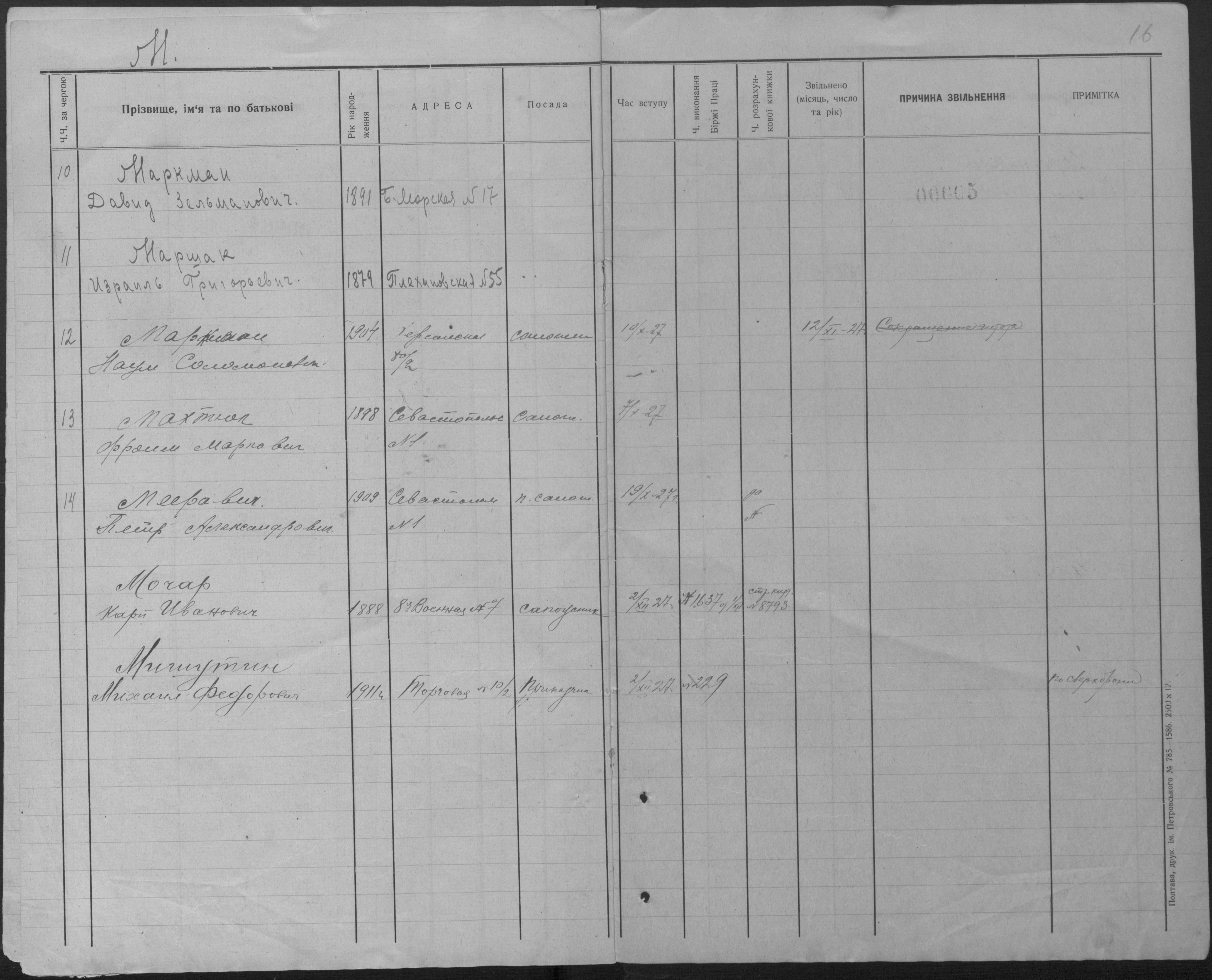 • • • • Справа № 10 “Іменний список робітників і службовців майстерні станом на 01 вересня 1927 року”