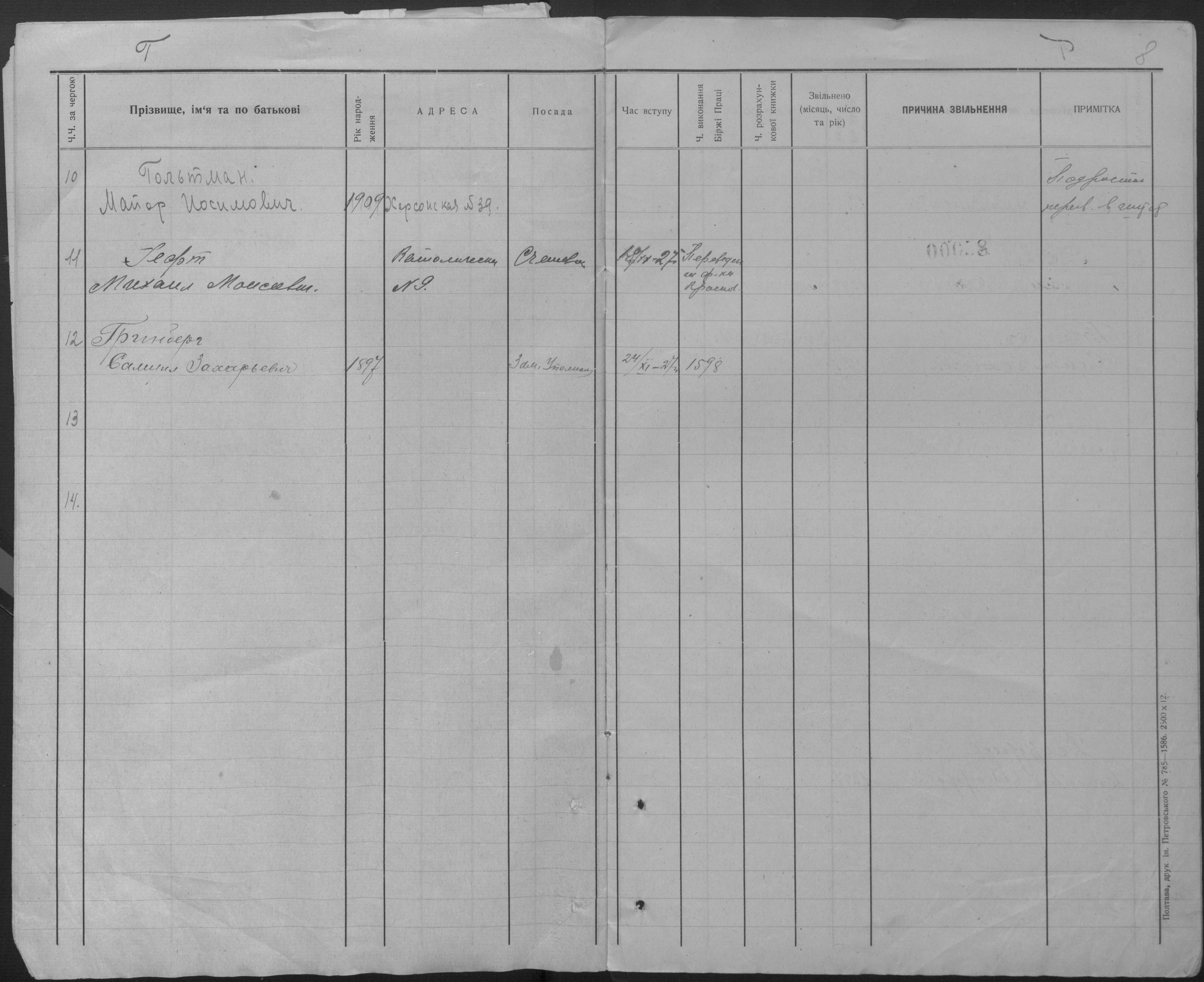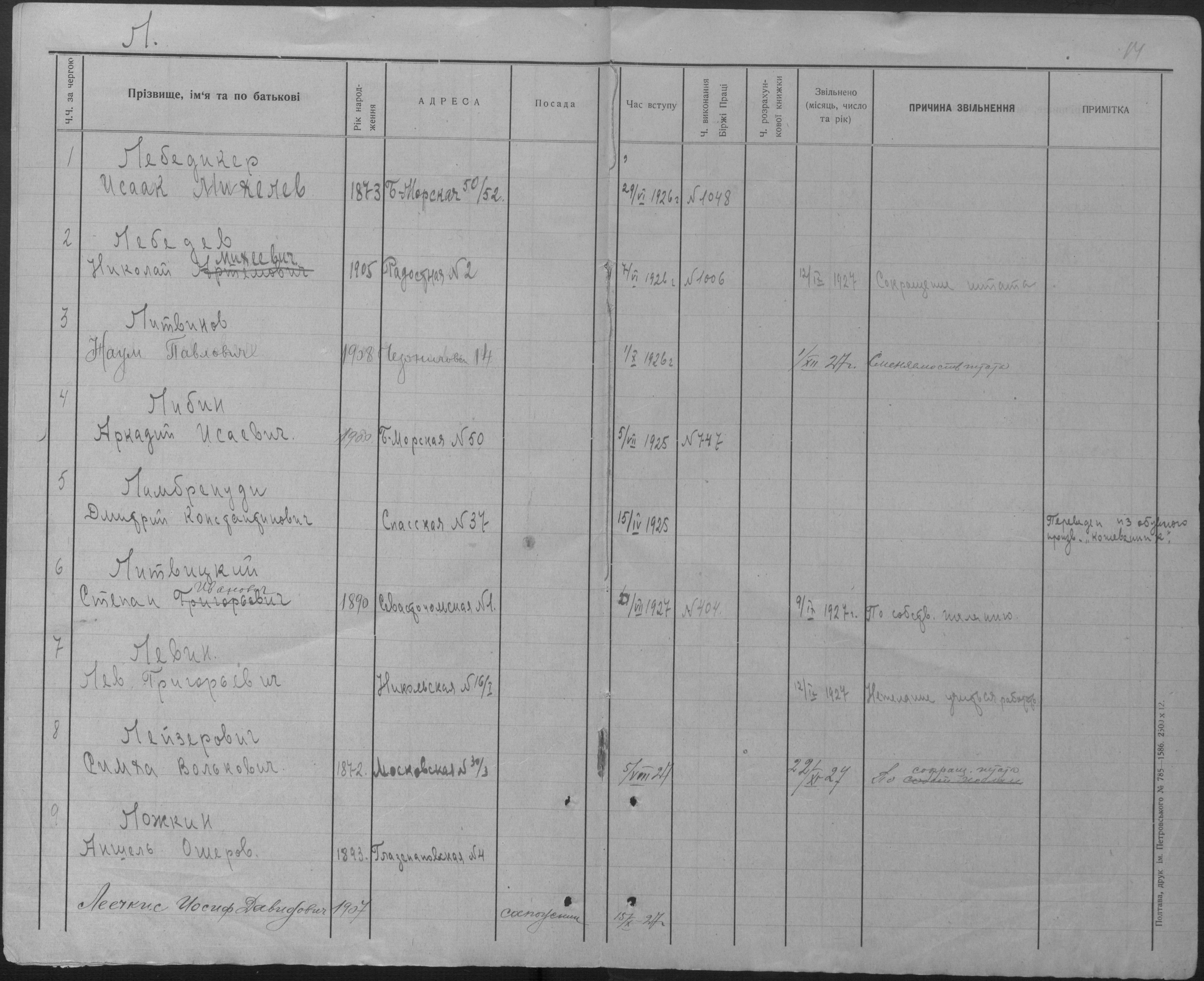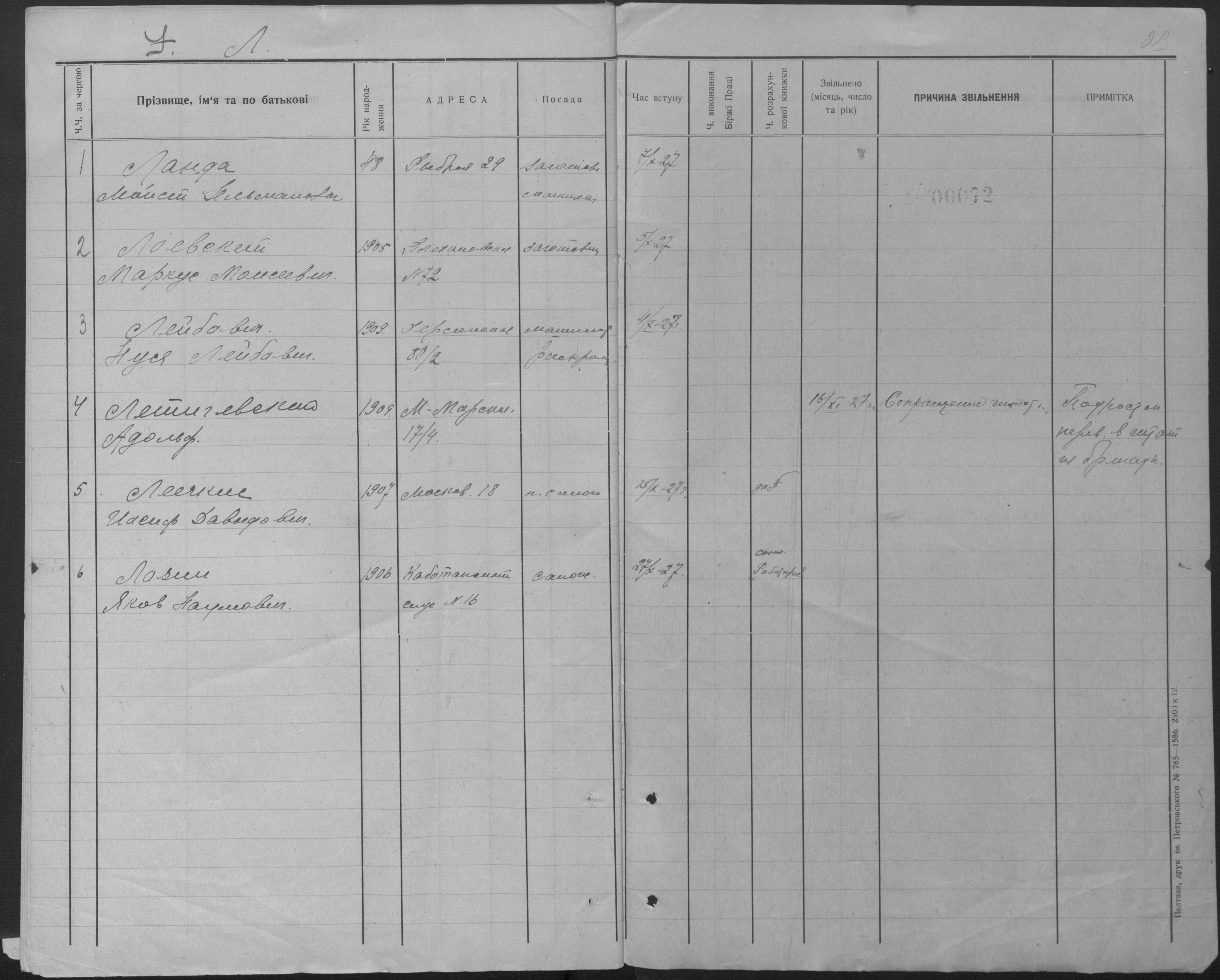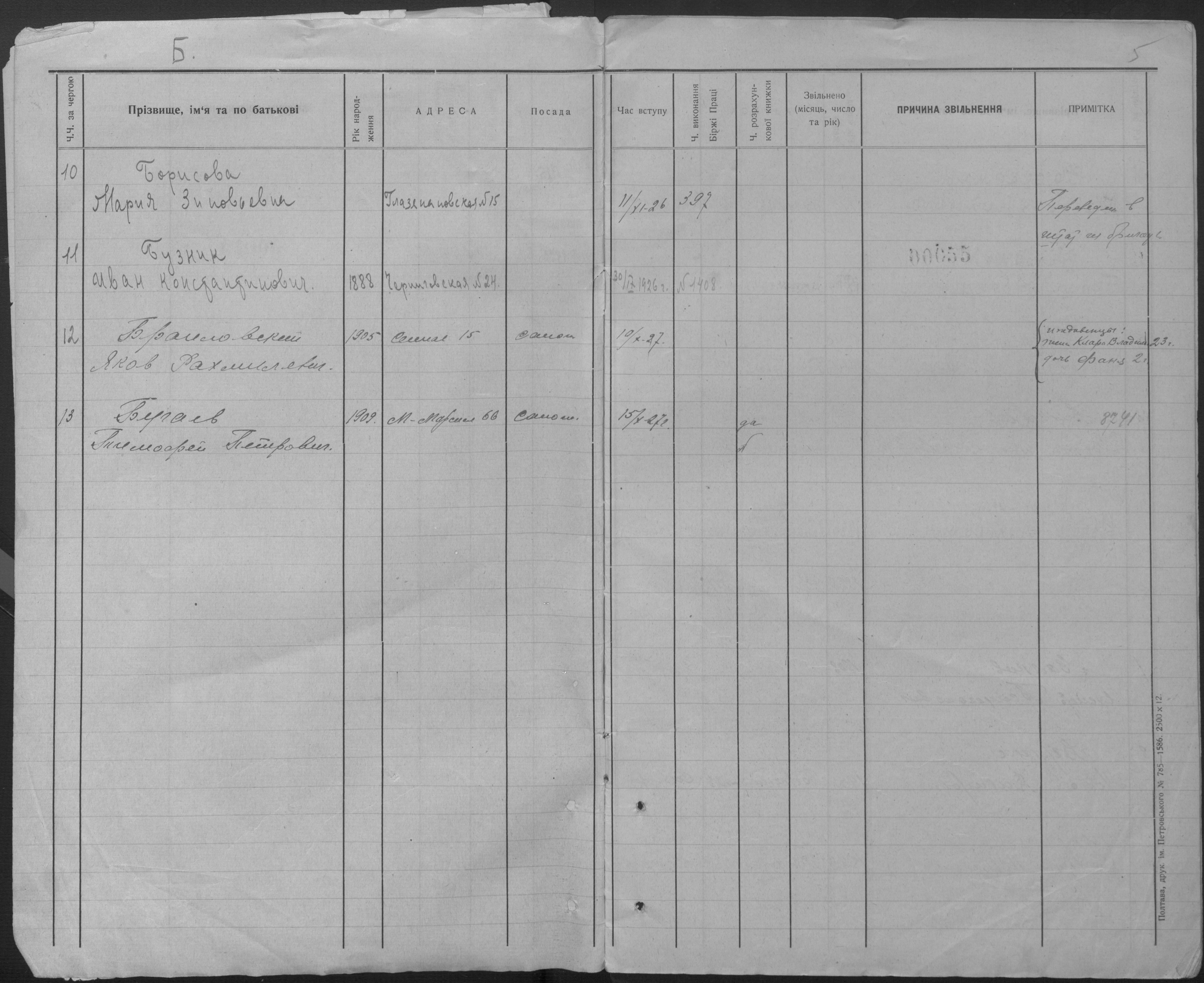 • • • • Справа № 10 “Іменний список робітників і службовців майстерні станом на 01 вересня 1927 року”