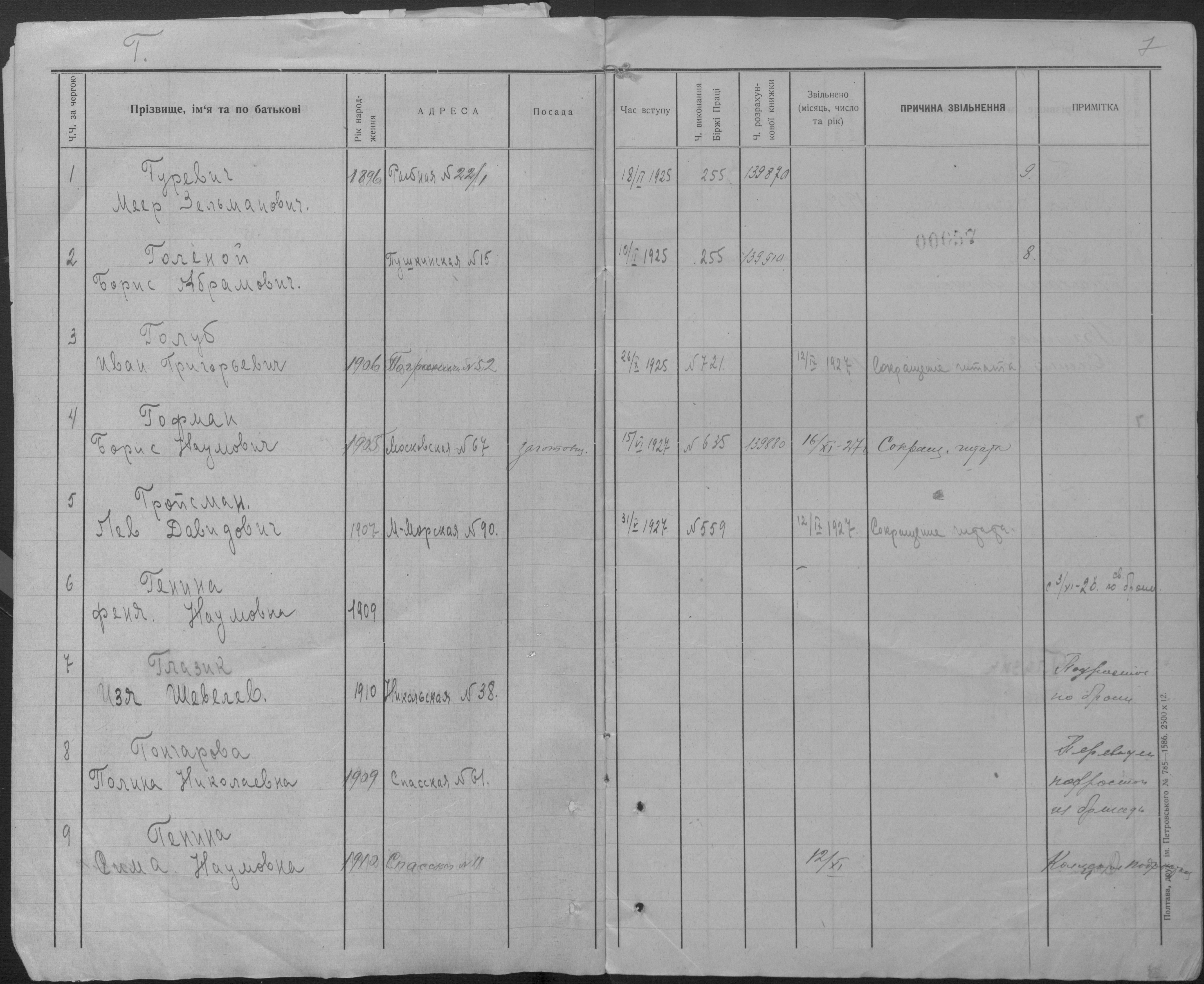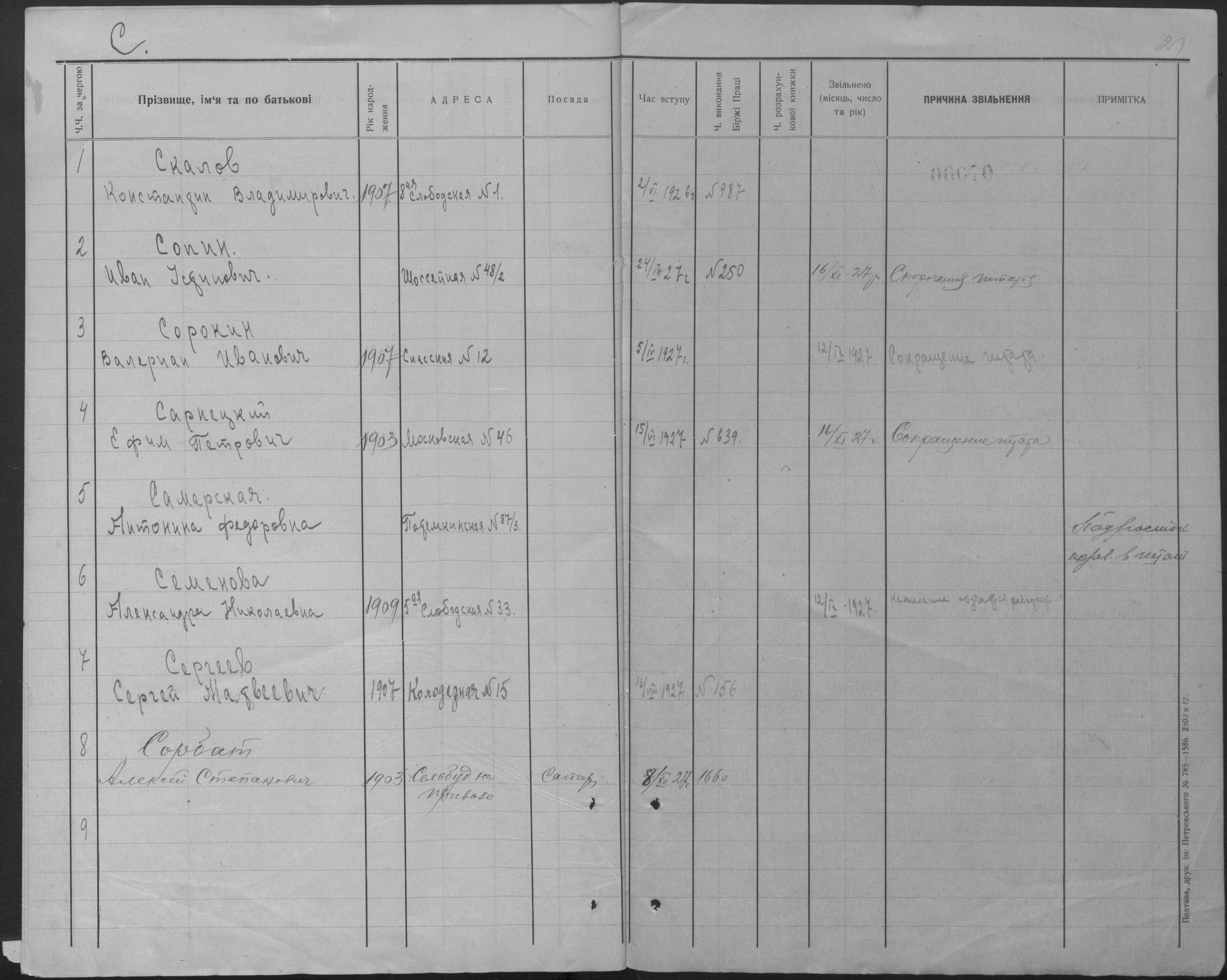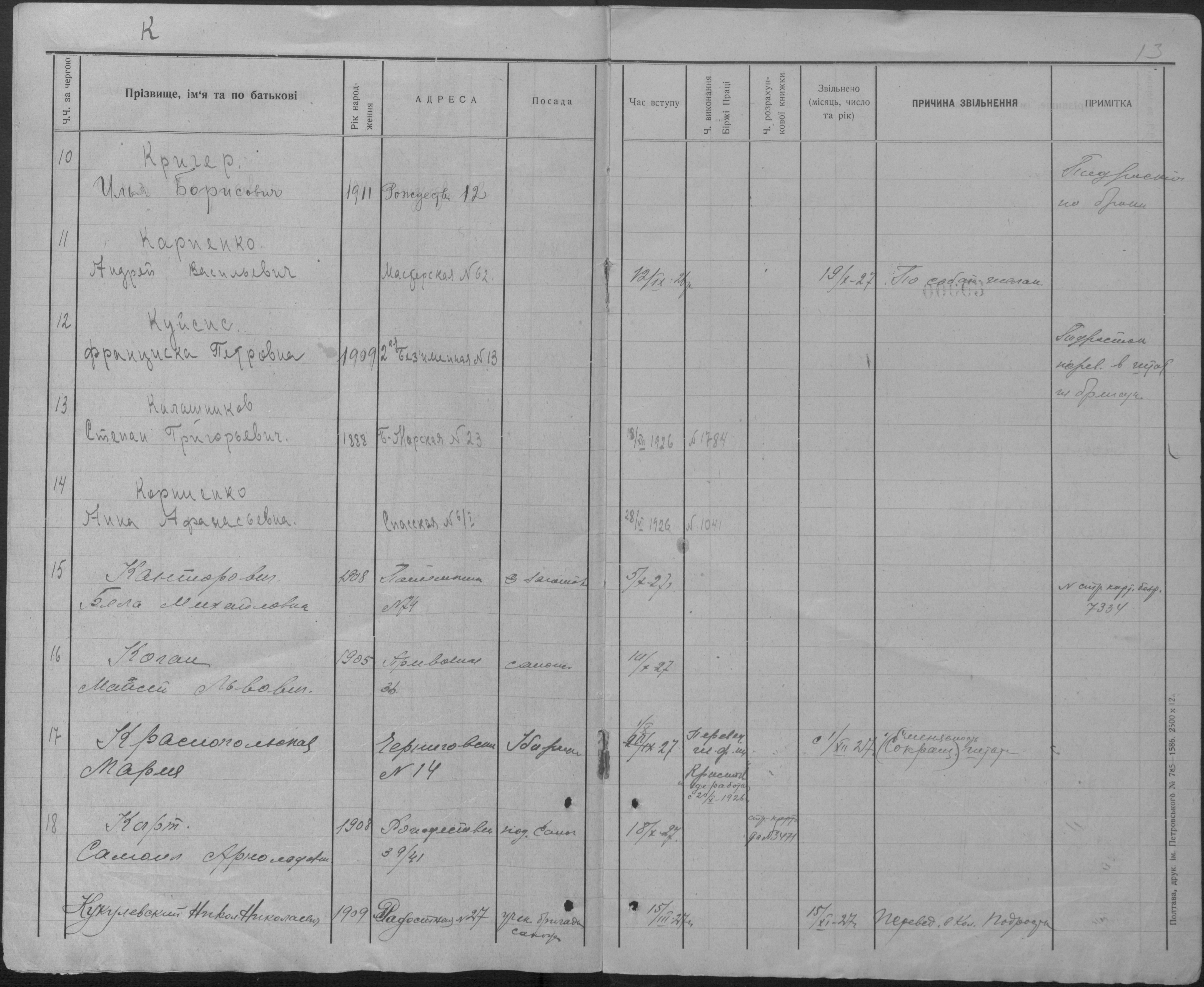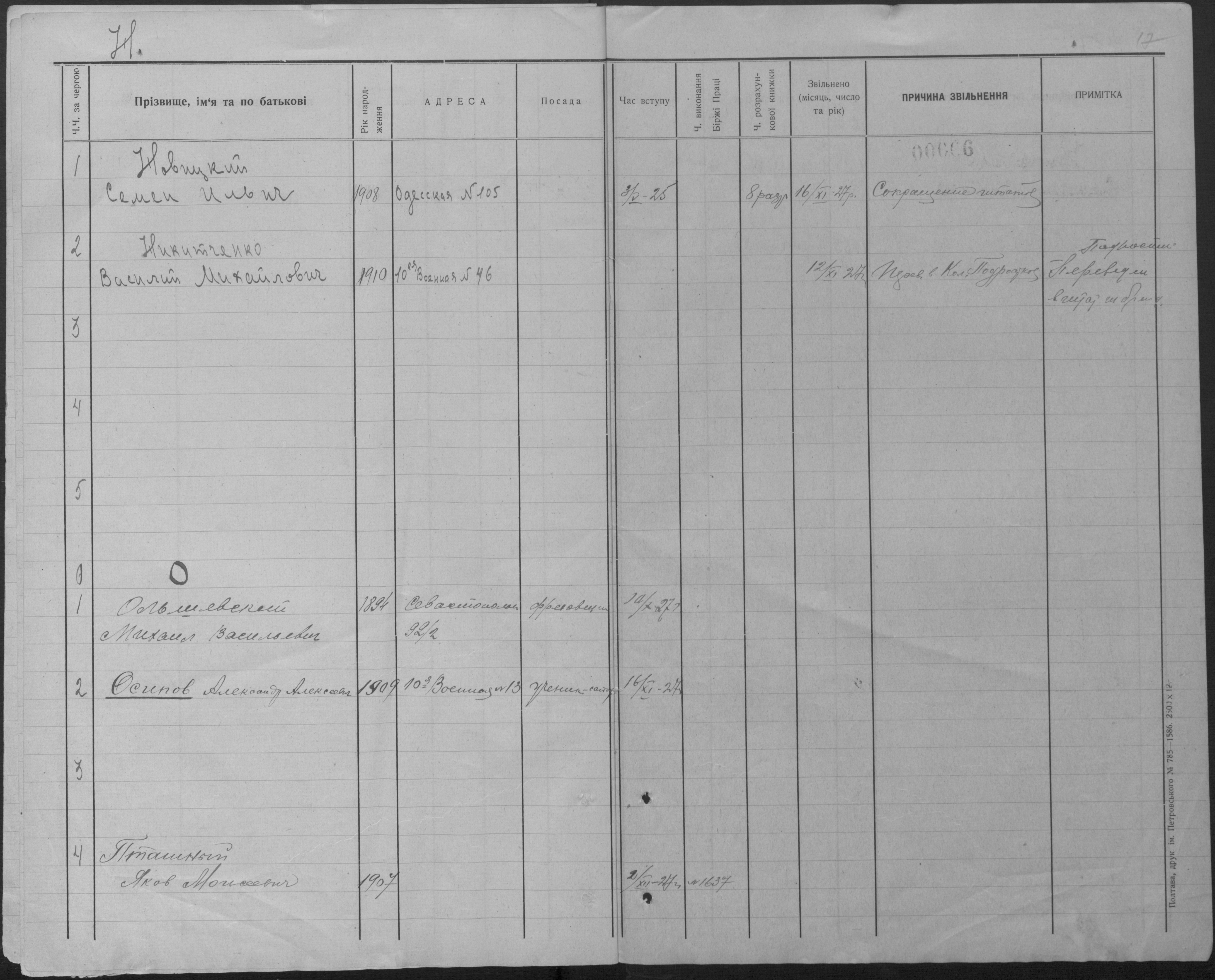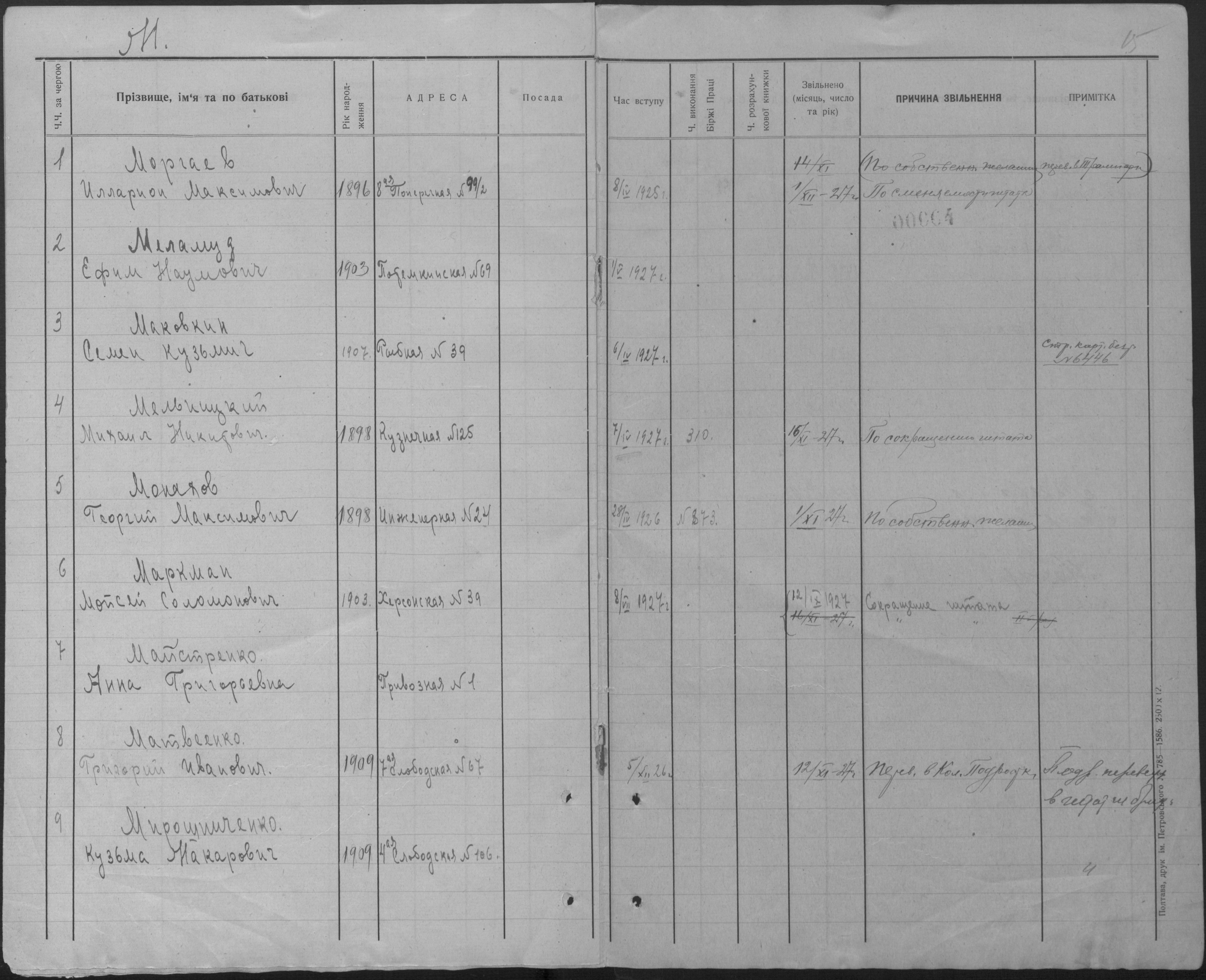 • • • • Справа № 10 “Іменний список робітників і службовців майстерні станом на 01 вересня 1927 року”