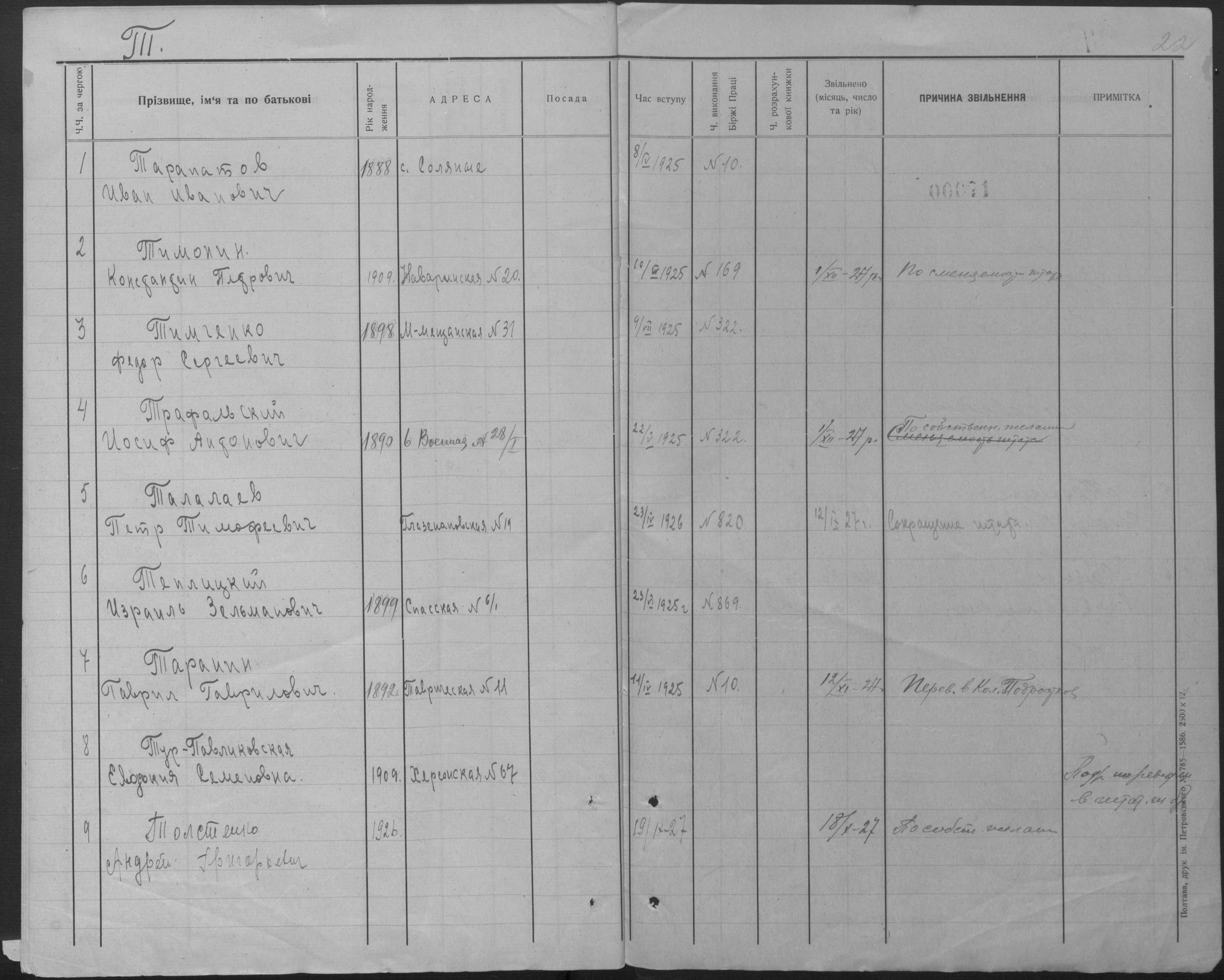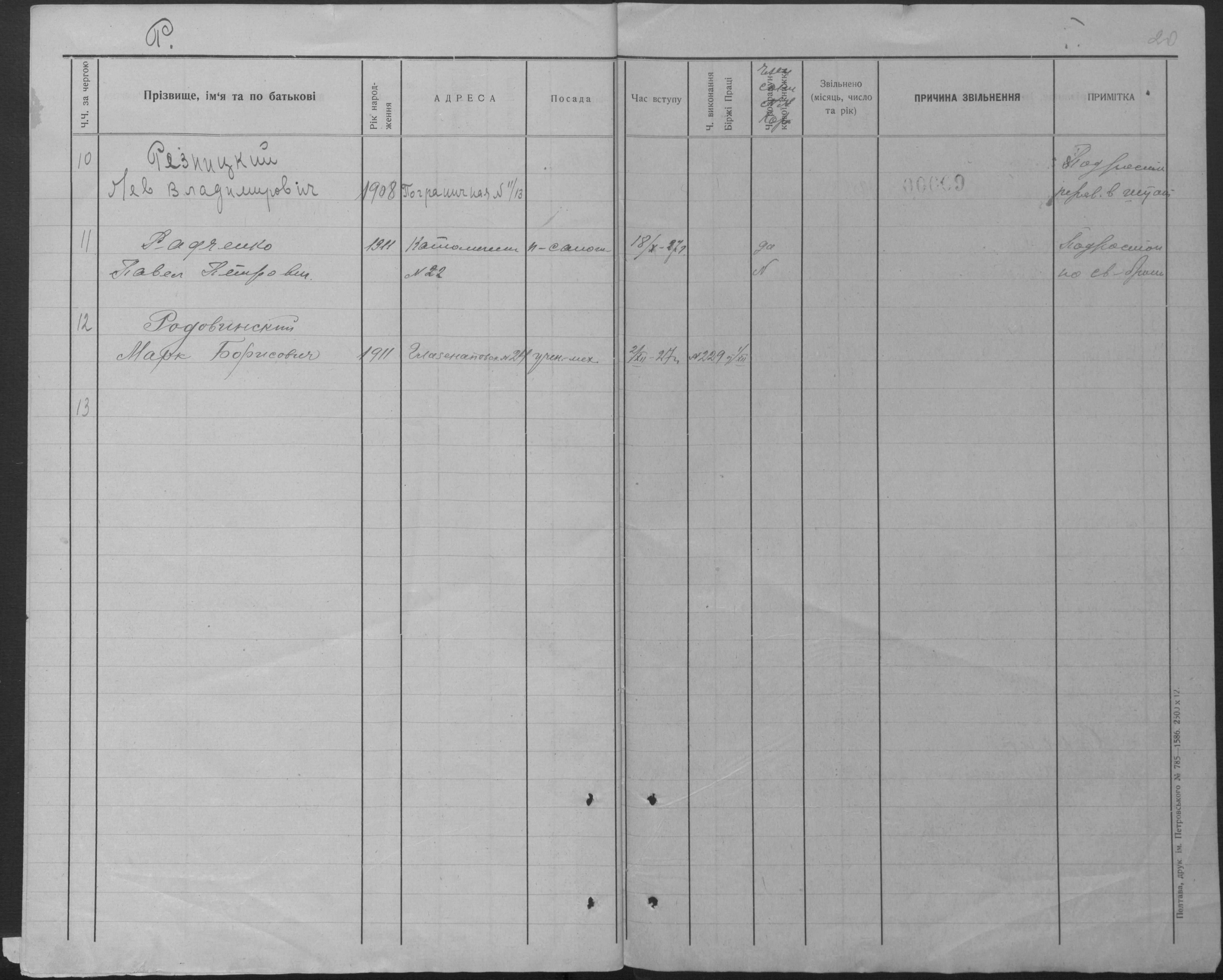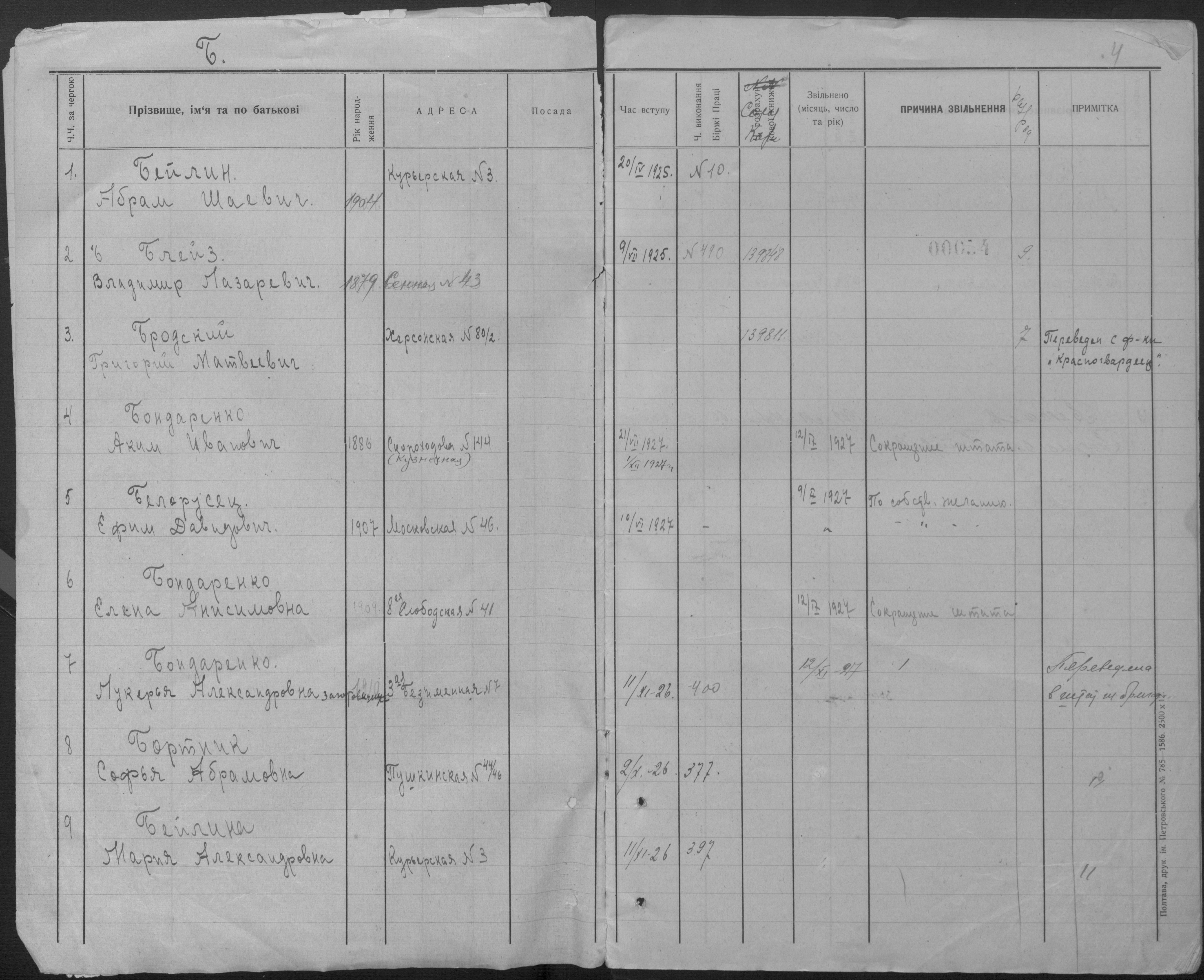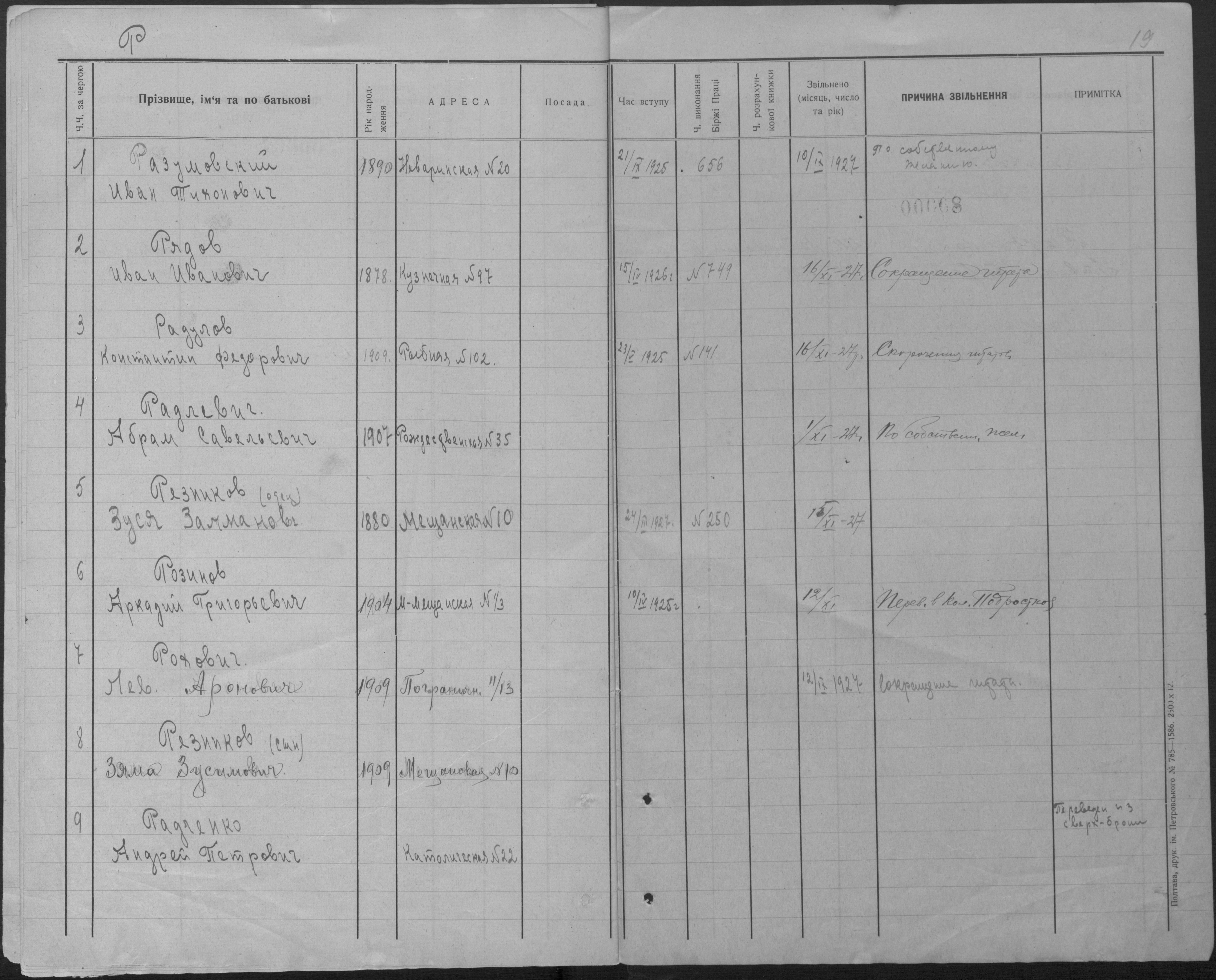 • • • • Справа № 10 “Іменний список робітників і службовців майстерні станом на 01 вересня 1927 року”