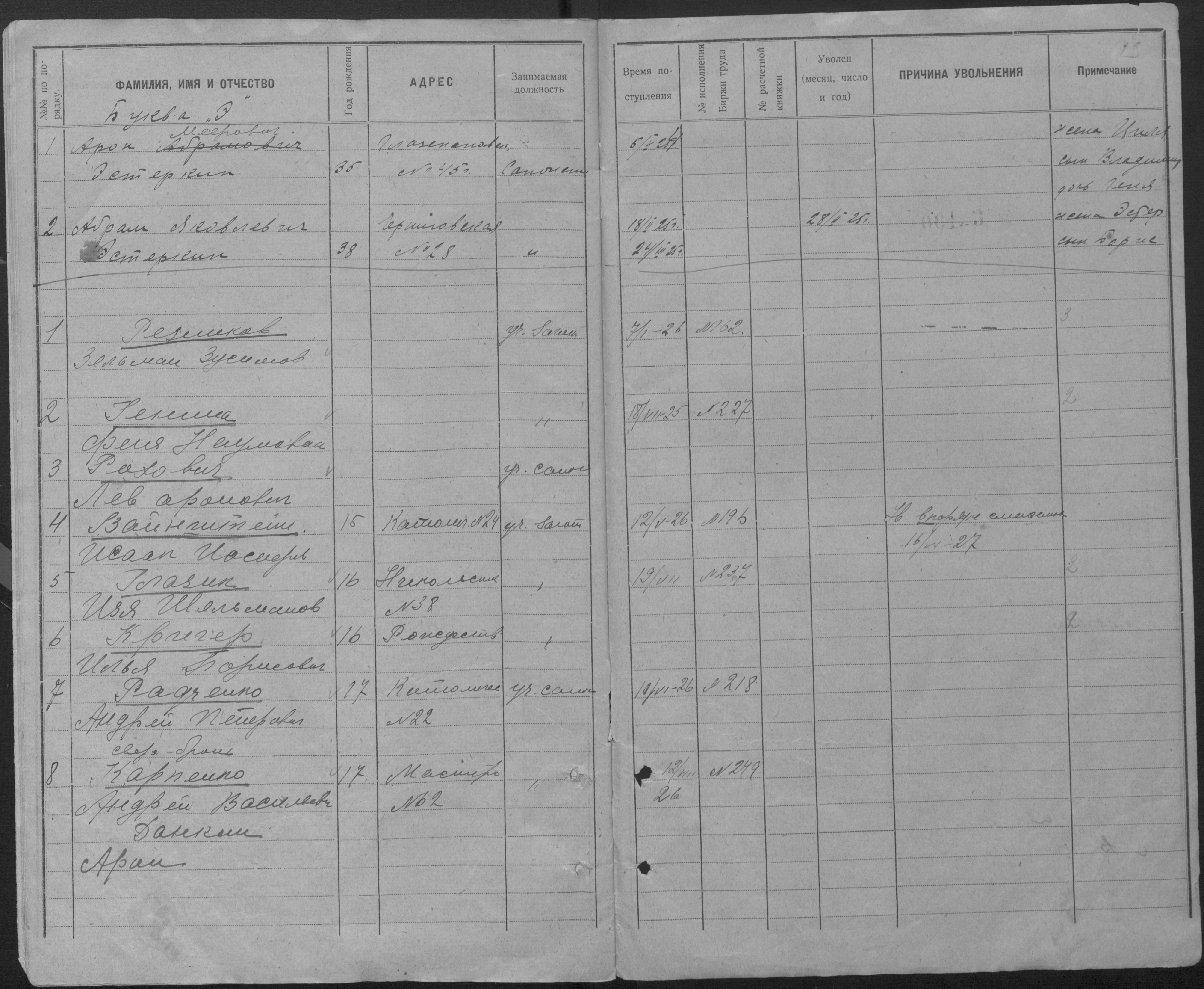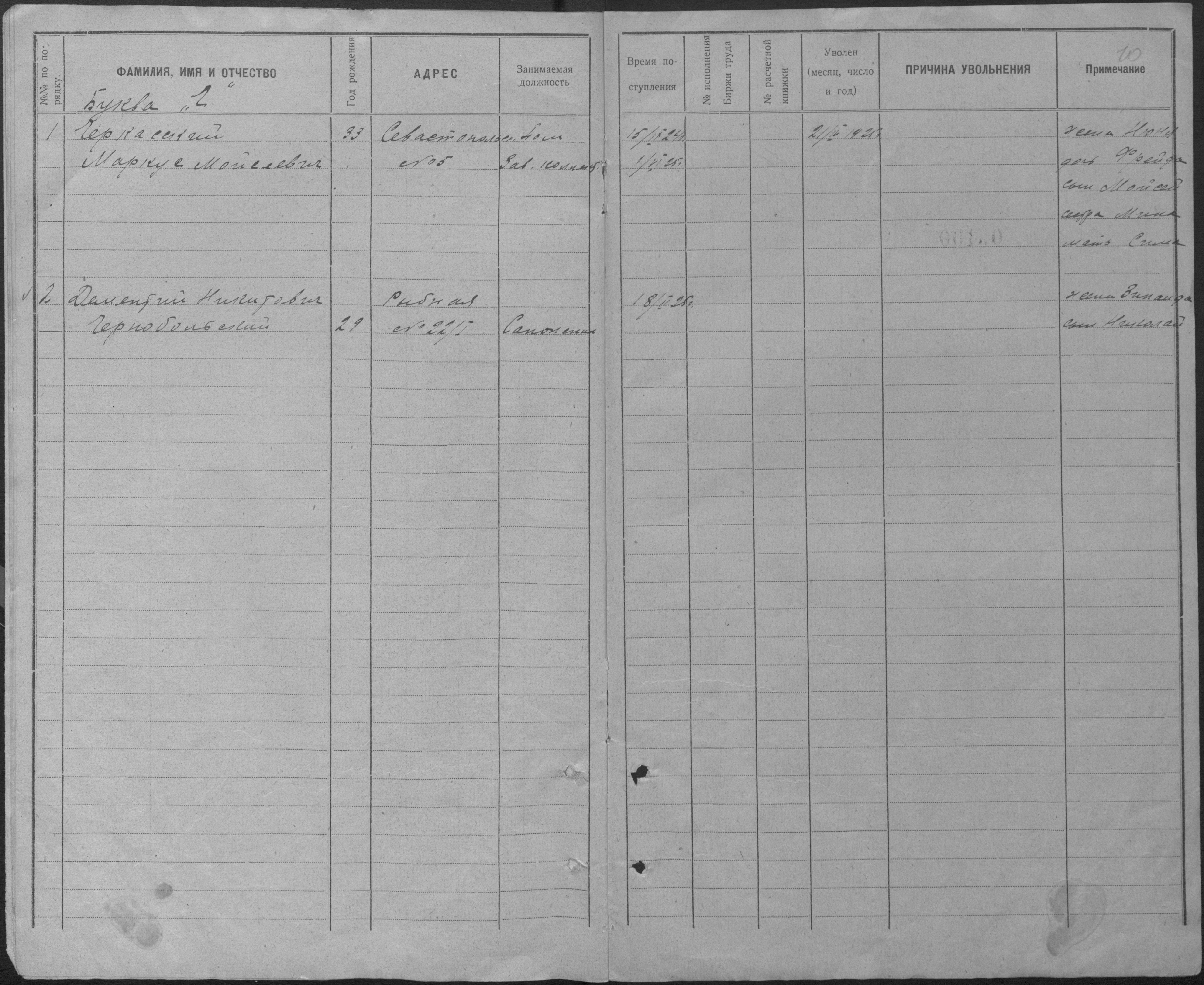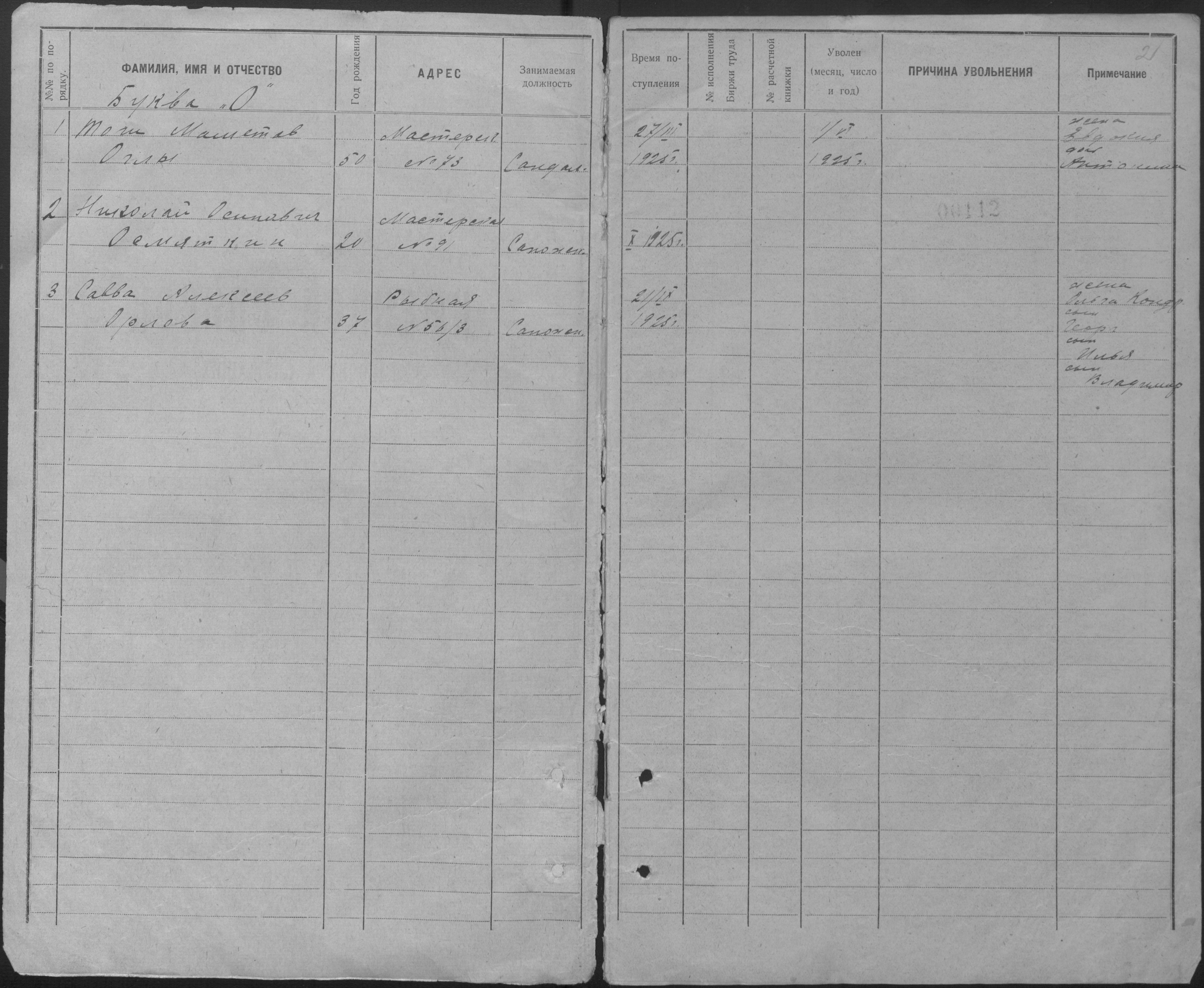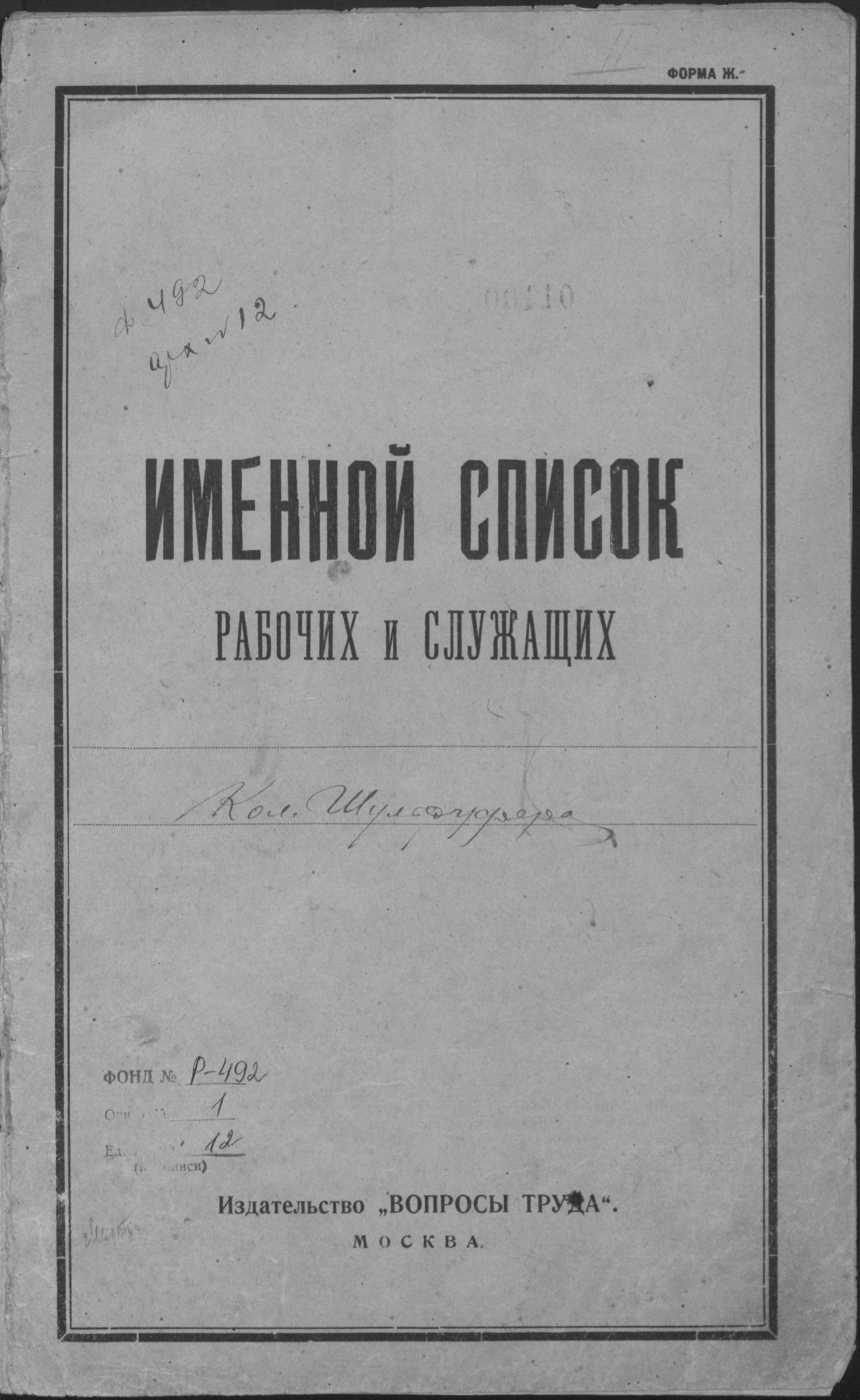• • • • Справа № 12 “Іменний список робітників і службовців майстерні”