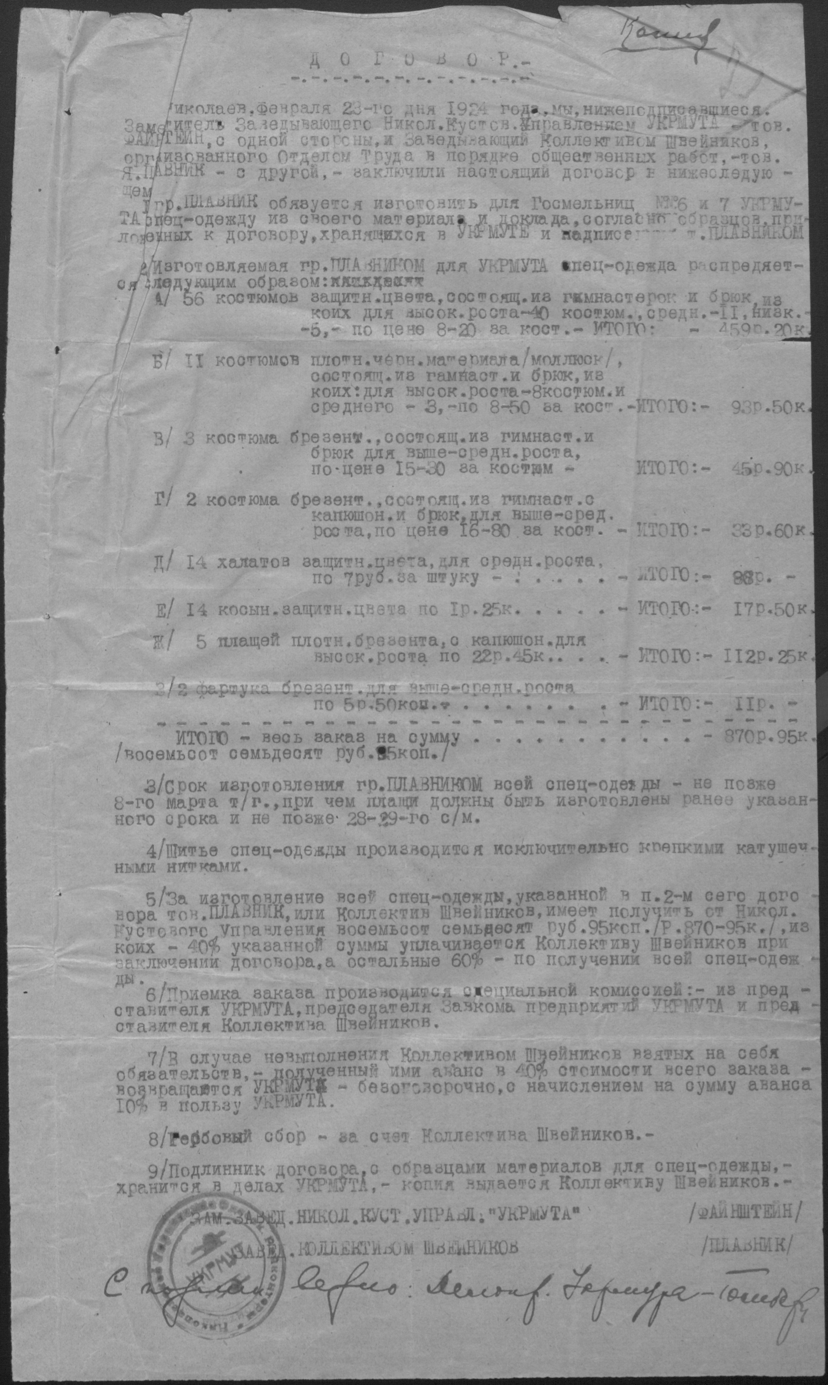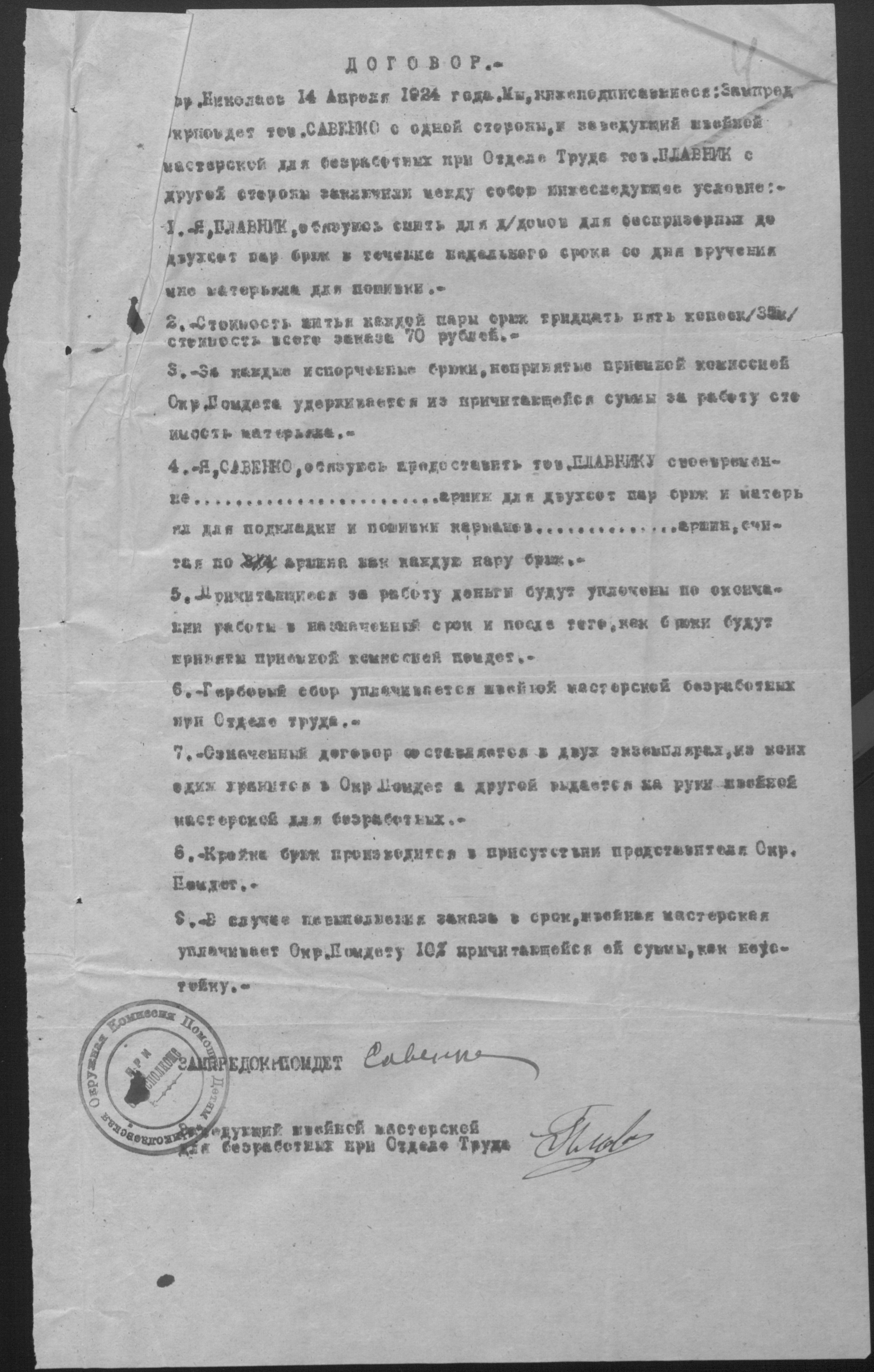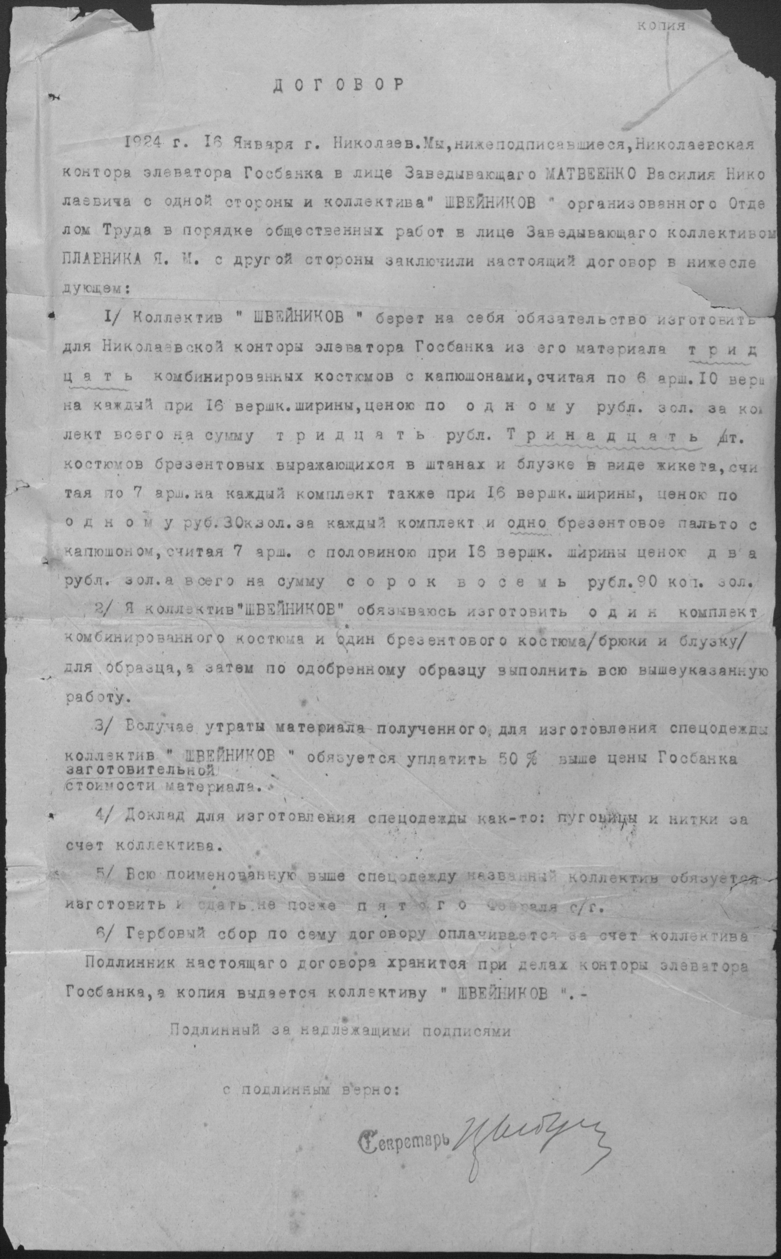 ◦ ◦ Фонд № Р-509 “Колектив безробітних швейників № 1 при Миколаївському окружному комітеті по боротьбі з безробіттям”