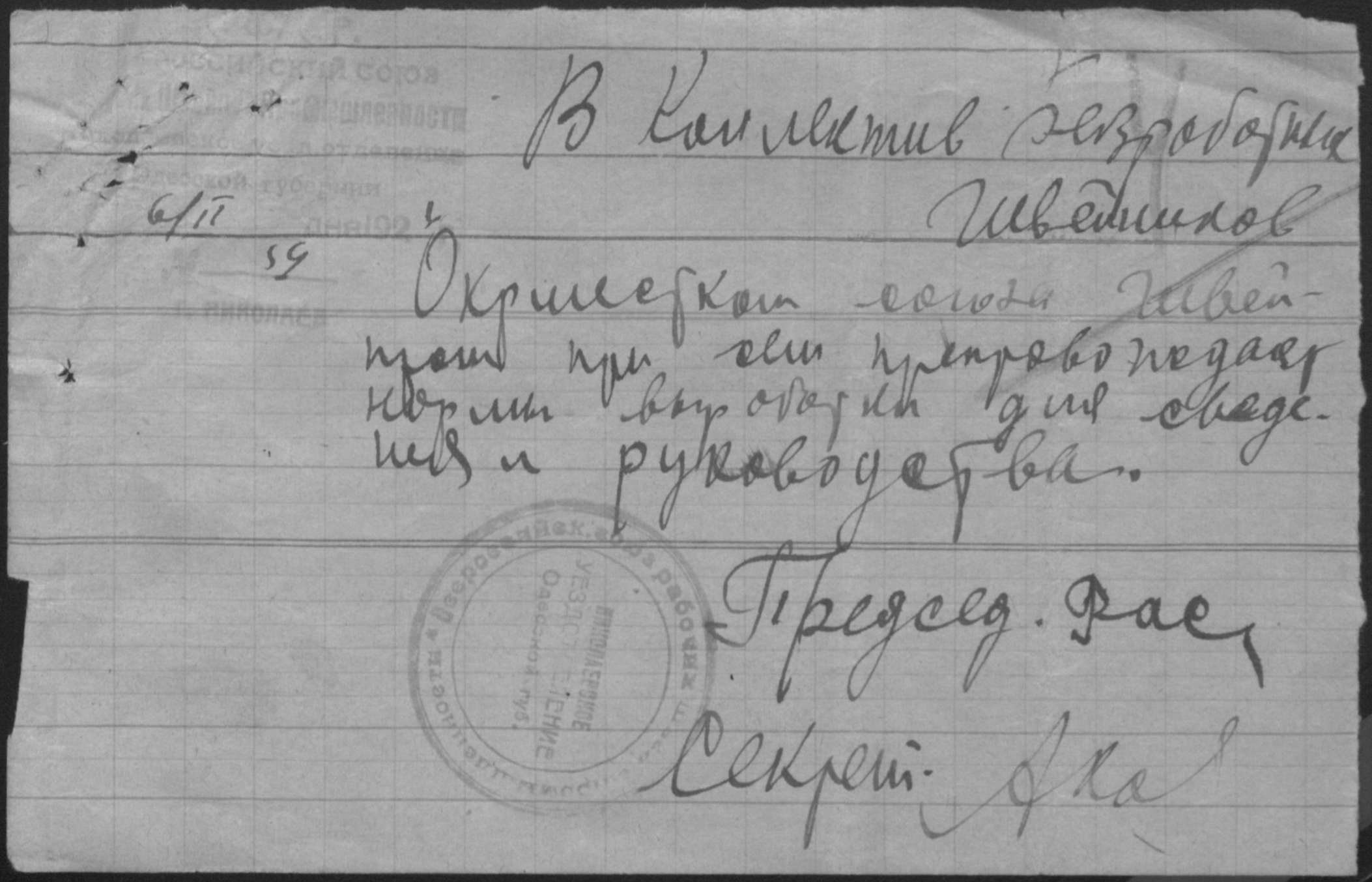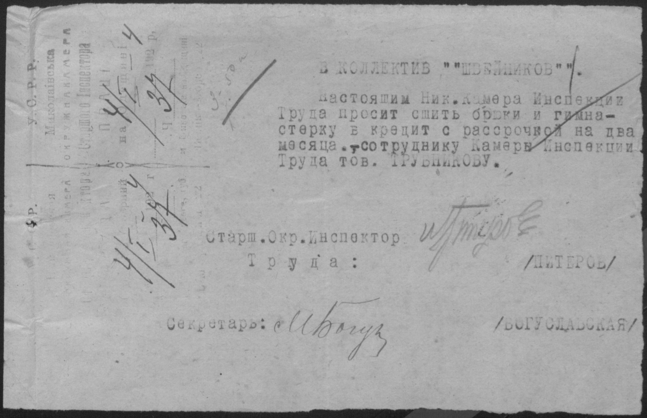◦ ◦ Фонд № Р-509 “Колектив безробітних швейників № 1 при Миколаївському окружному комітеті по боротьбі з безробіттям”