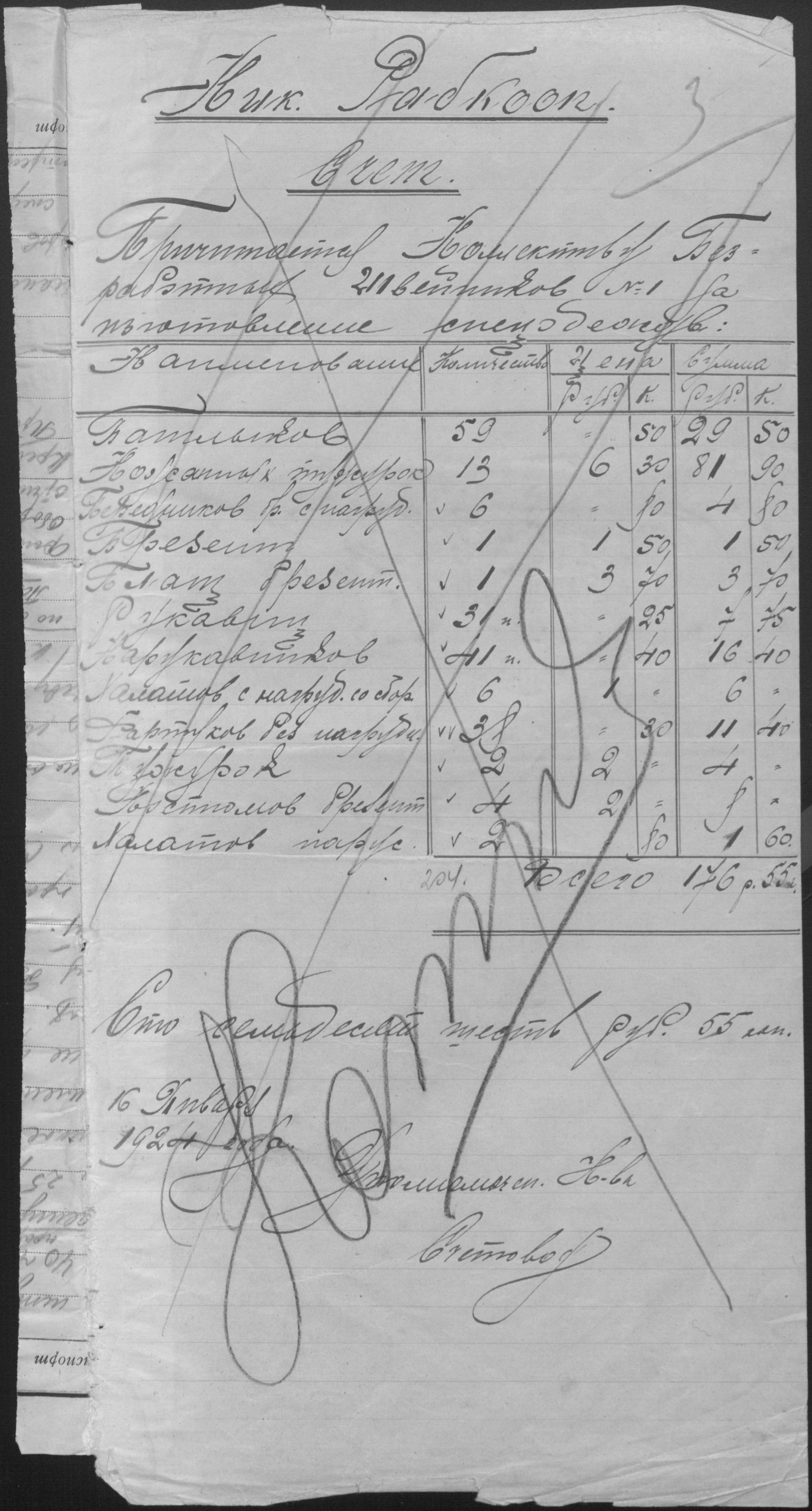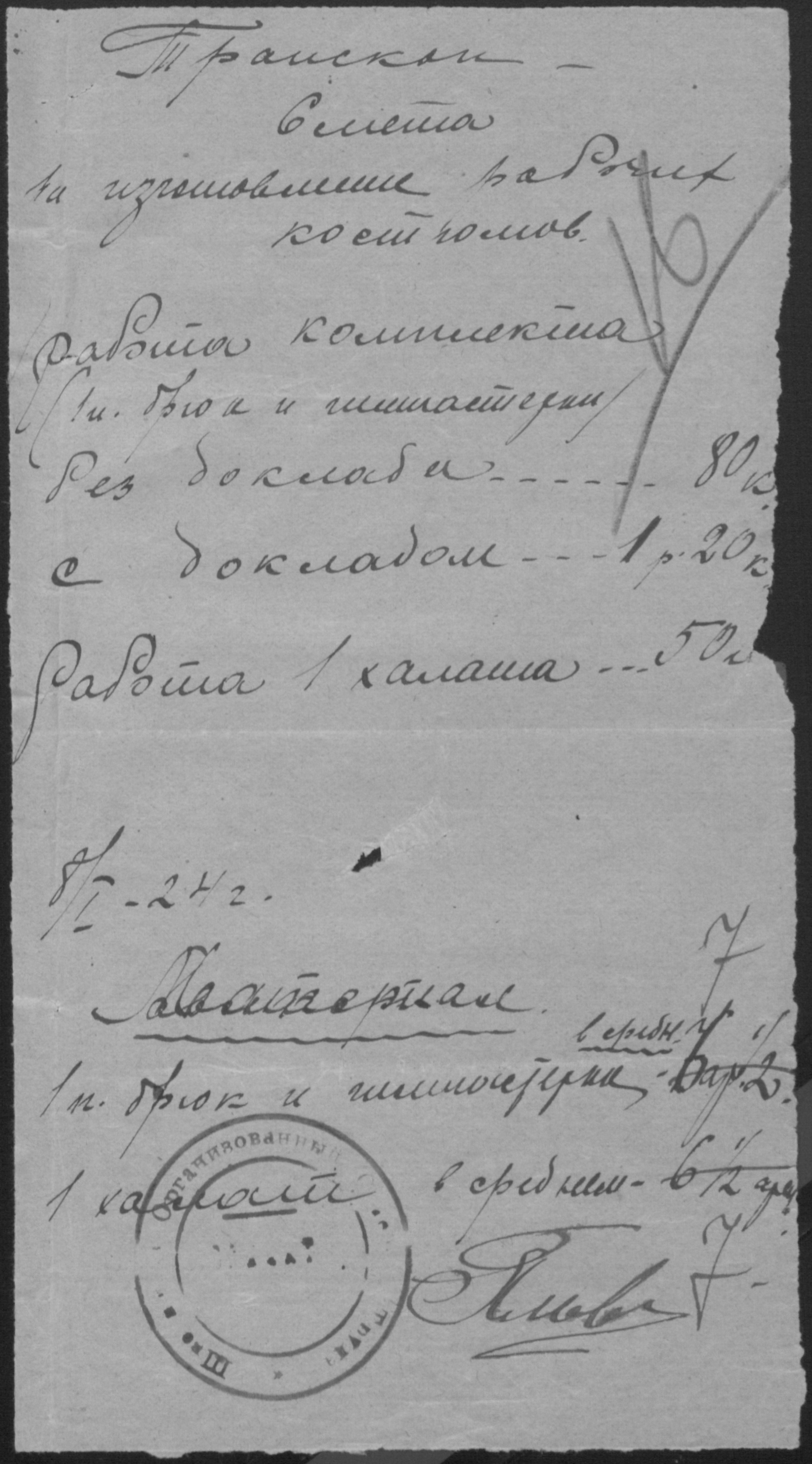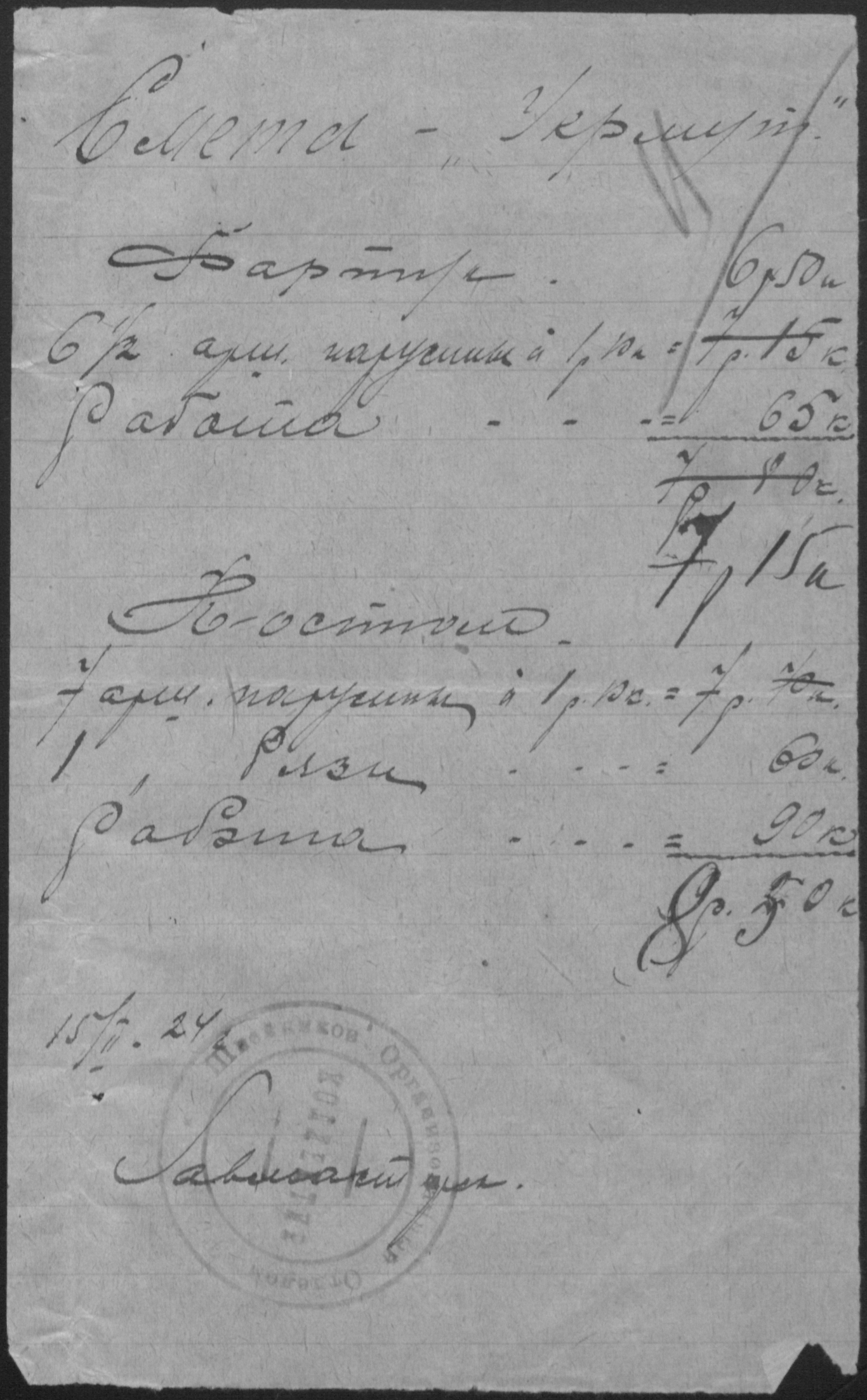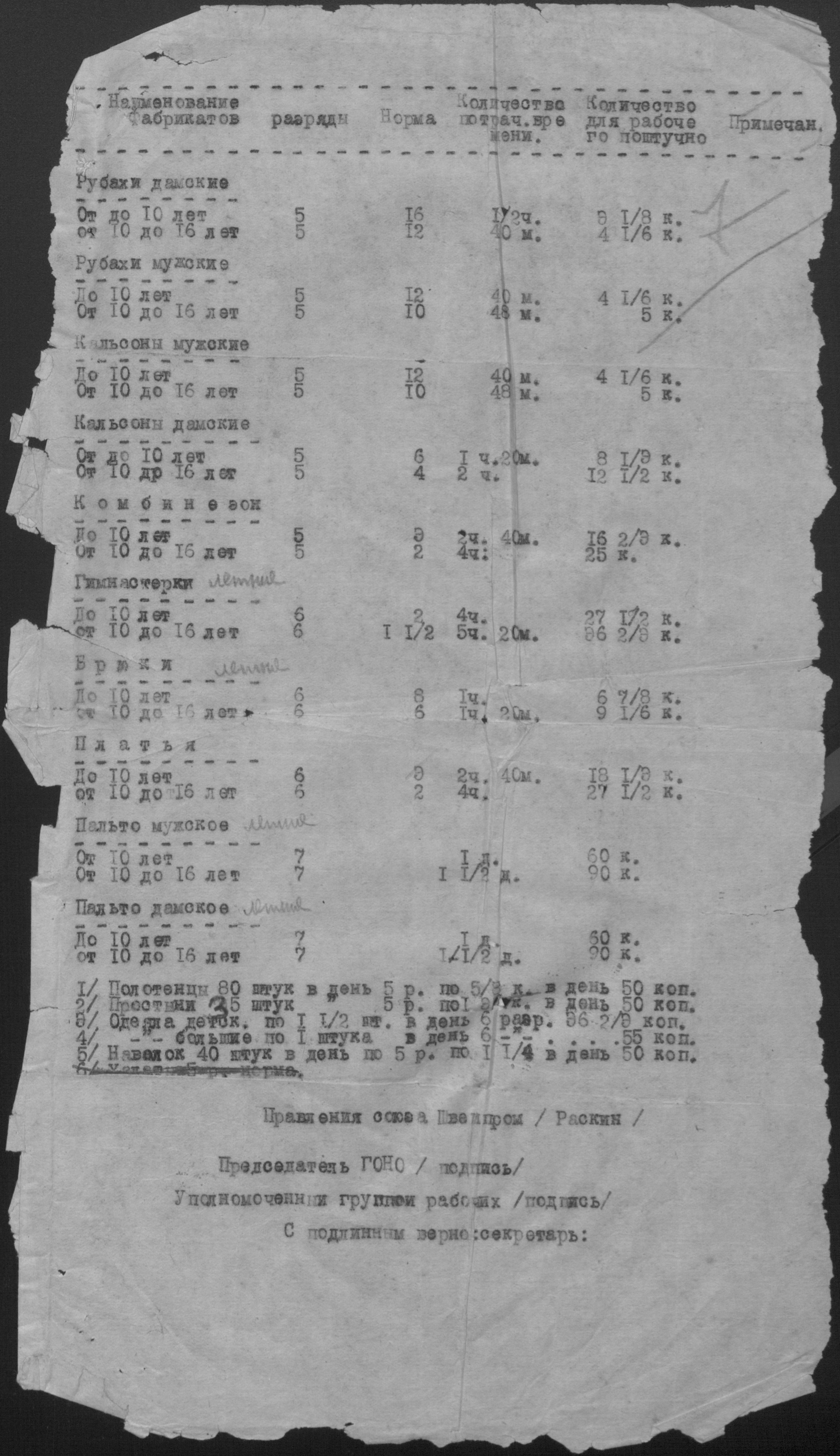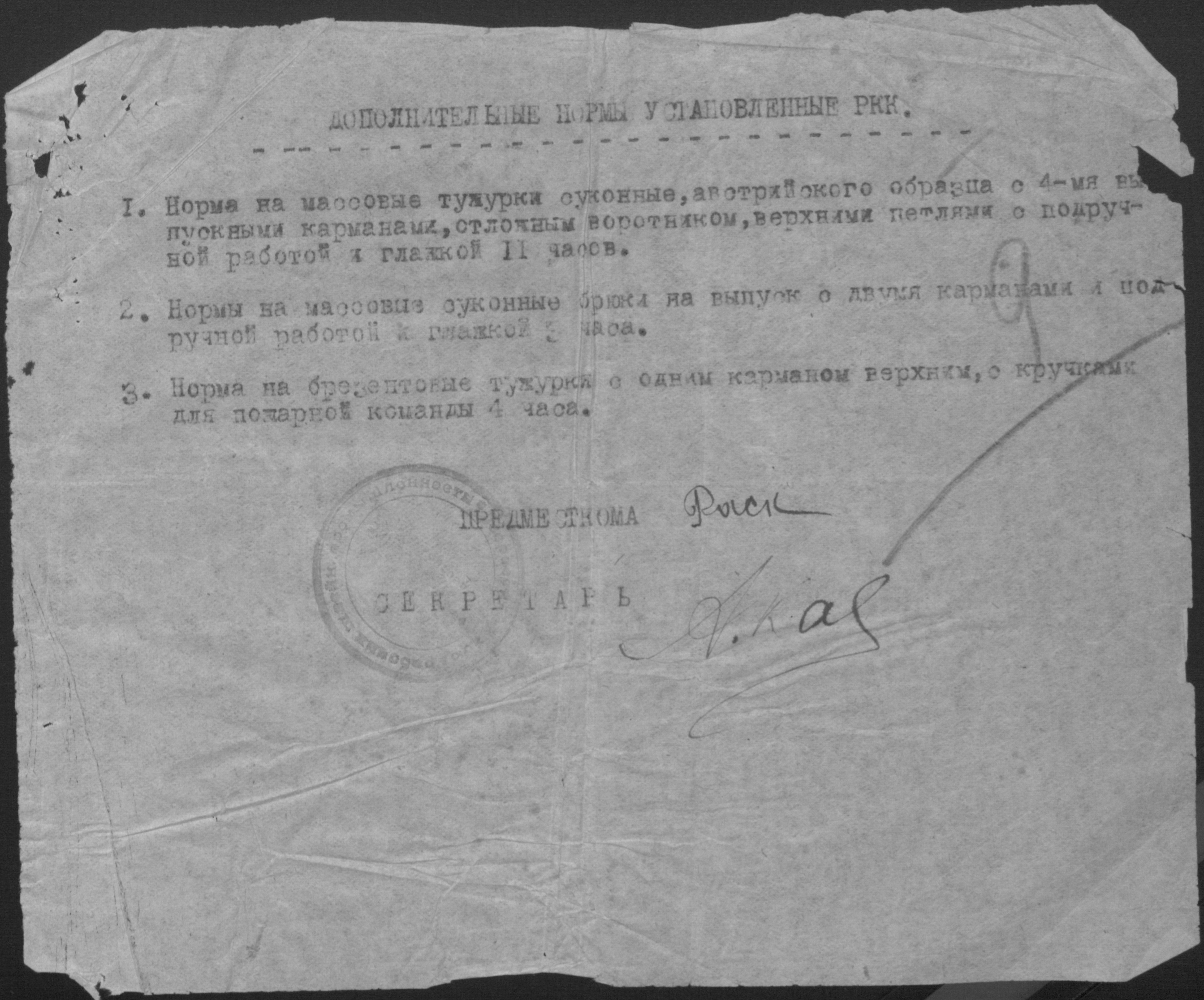 • • • • Справа № 4 “Обіжник Народного комісаріату праці УРСР про посилення контролю за діяльністю колективів; листування з окрмісцевкомом спілки швейної промисловості з виробничих і господарських питань; листування із замовниками про пошиття виробів; звіти про рух товарів у колективі; відомості про доходи і видатки, кошториси, рахунки”