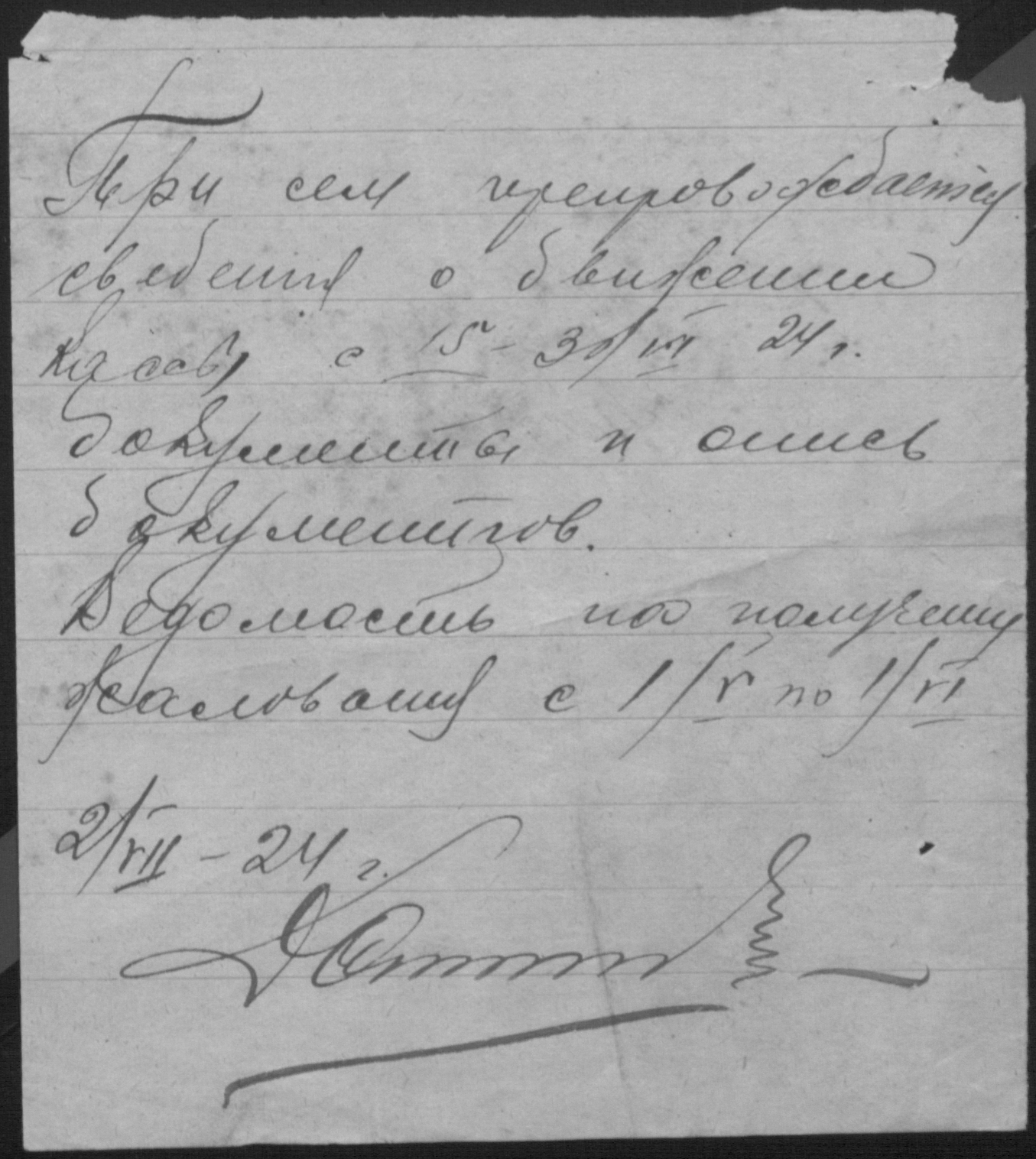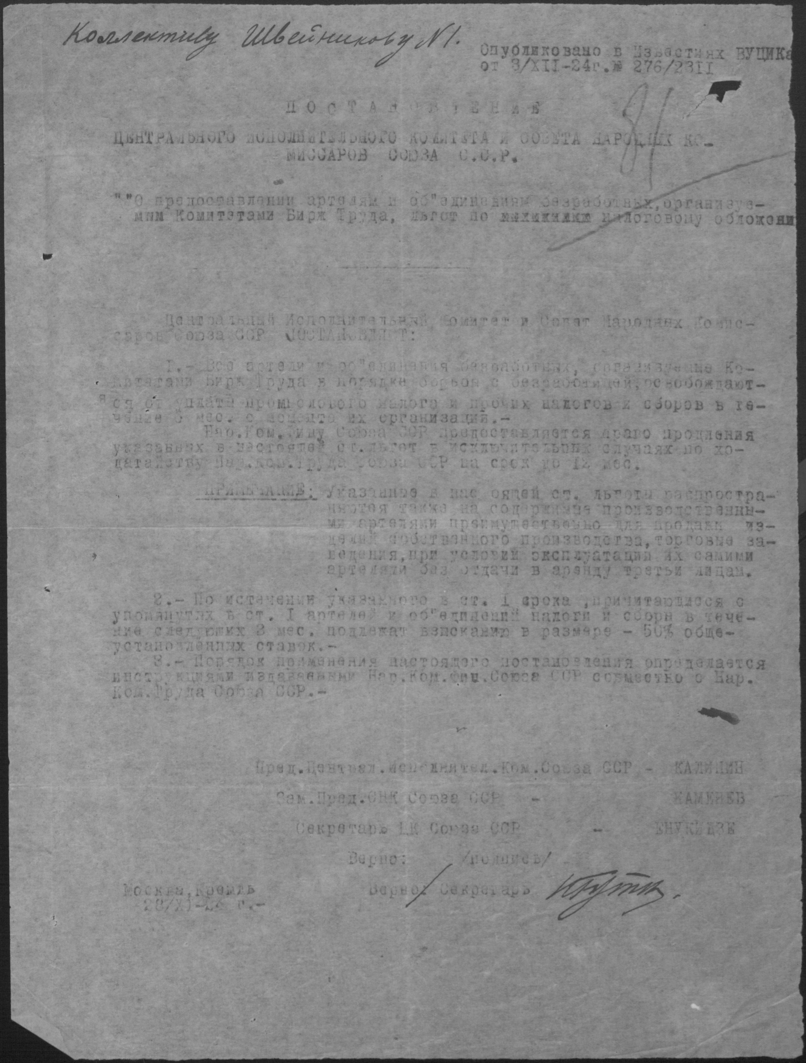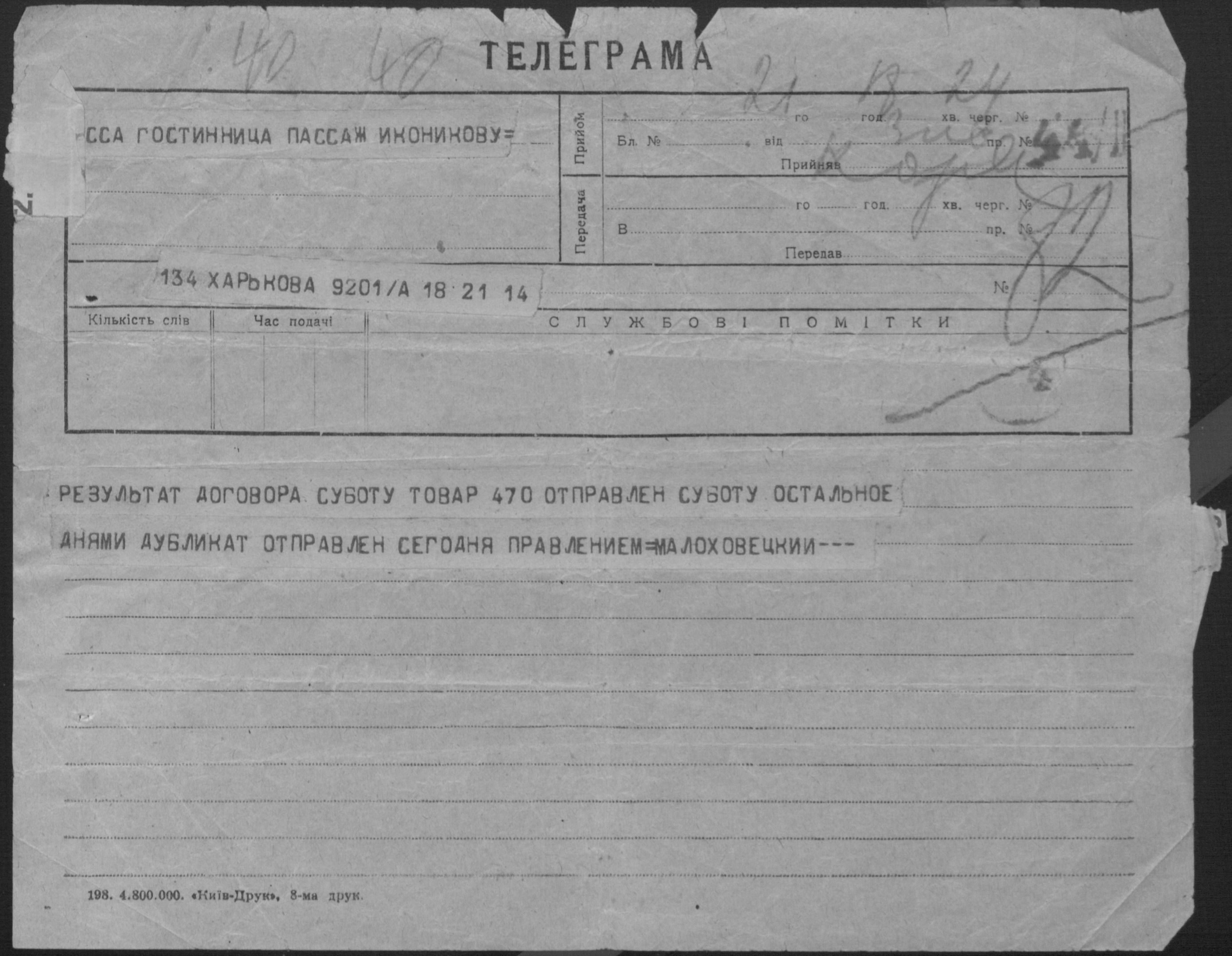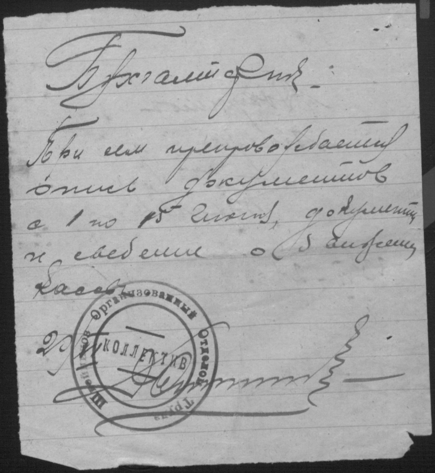 • • • • Справа № 4 “Обіжник Народного комісаріату праці УРСР про посилення контролю за діяльністю колективів; листування з окрмісцевкомом спілки швейної промисловості з виробничих і господарських питань; листування із замовниками про пошиття виробів; звіти про рух товарів у колективі; відомості про доходи і видатки, кошториси, рахунки”