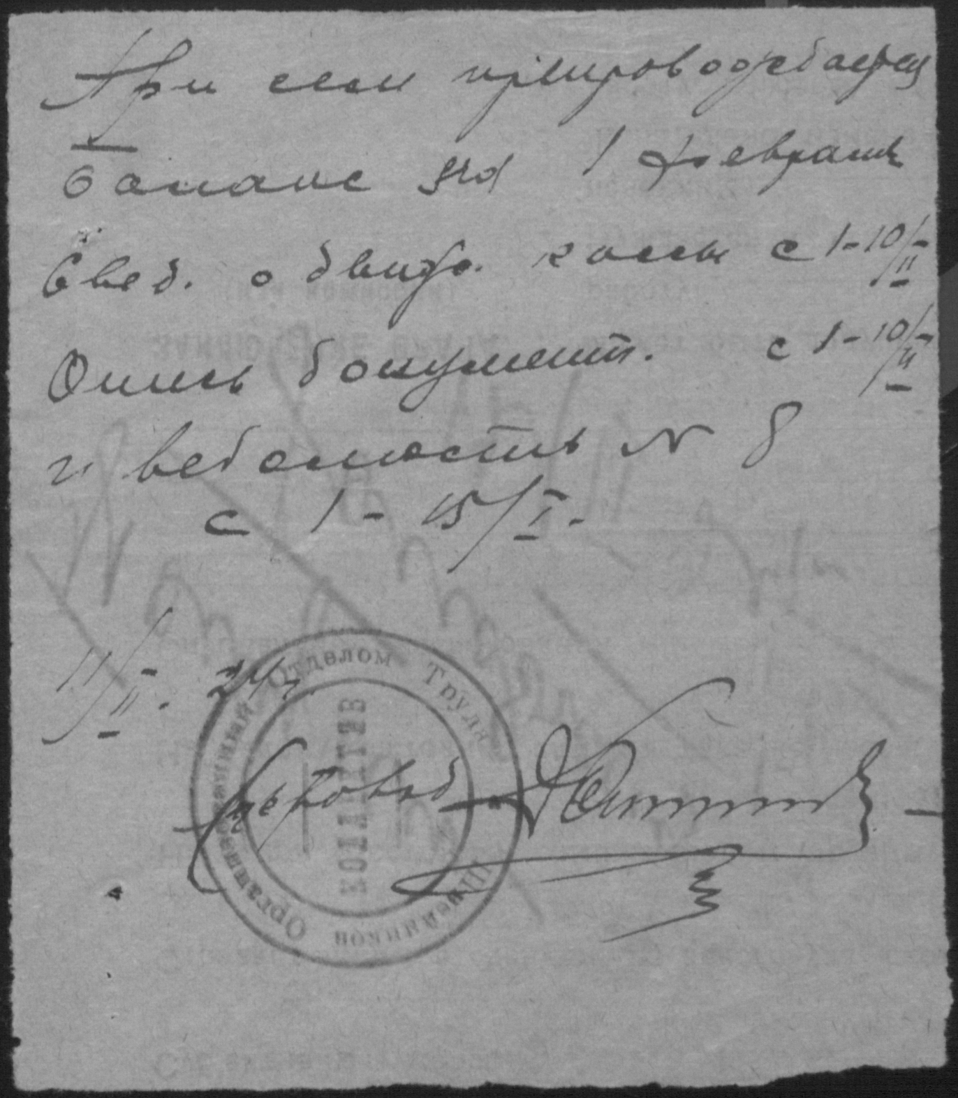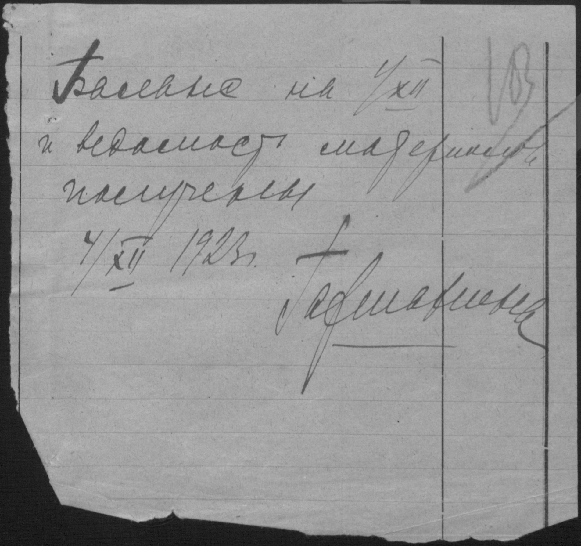 • • • • Справа № 4 “Обіжник Народного комісаріату праці УРСР про посилення контролю за діяльністю колективів; листування з окрмісцевкомом спілки швейної промисловості з виробничих і господарських питань; листування із замовниками про пошиття виробів; звіти про рух товарів у колективі; відомості про доходи і видатки, кошториси, рахунки”