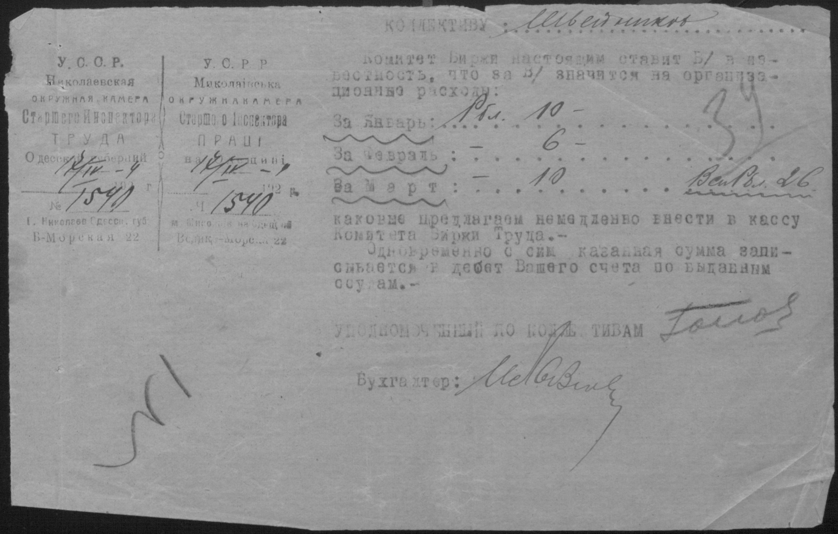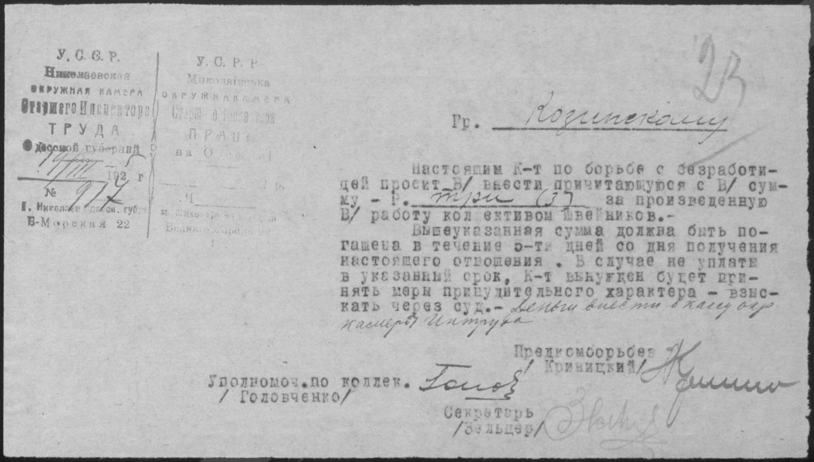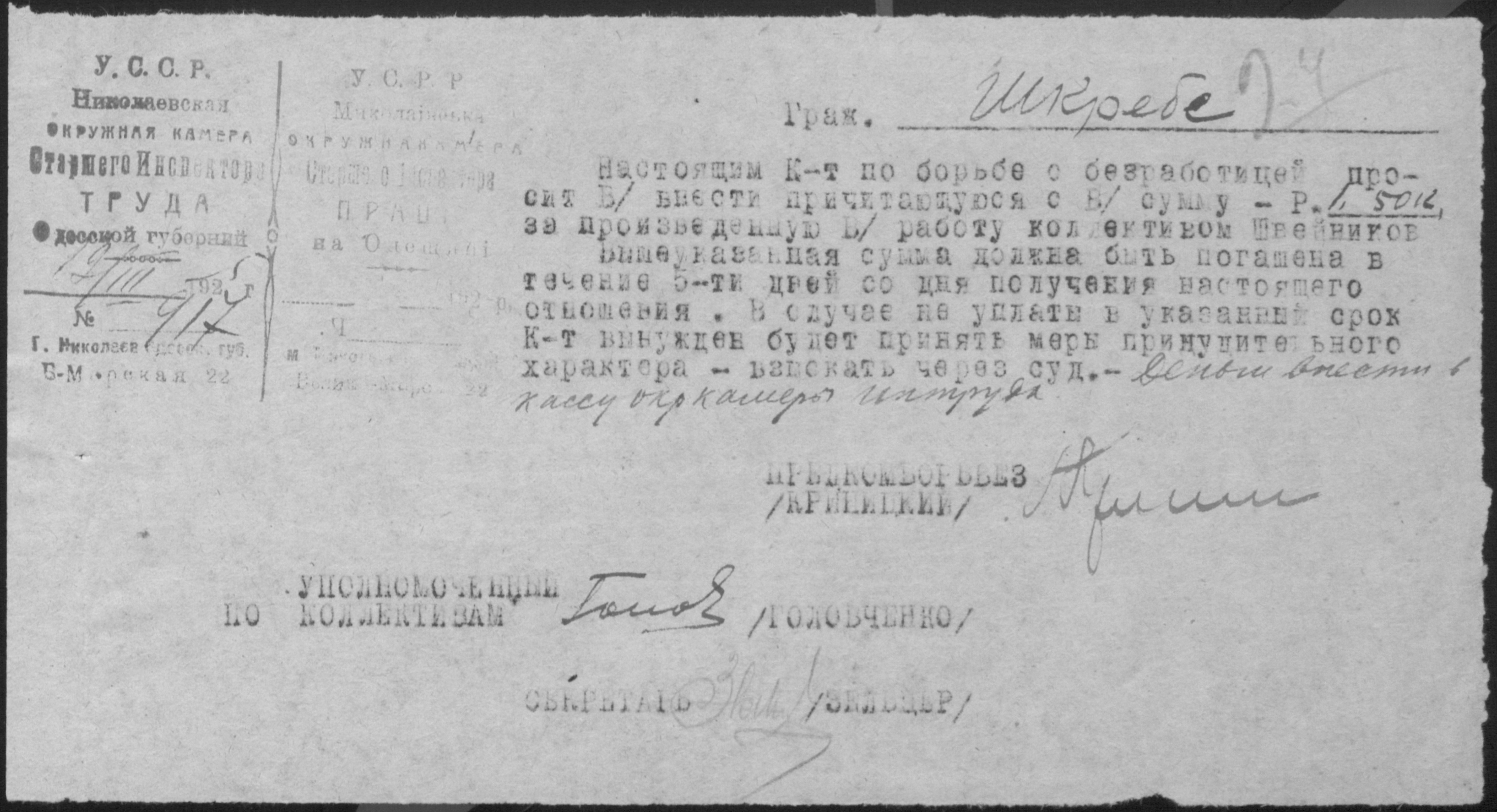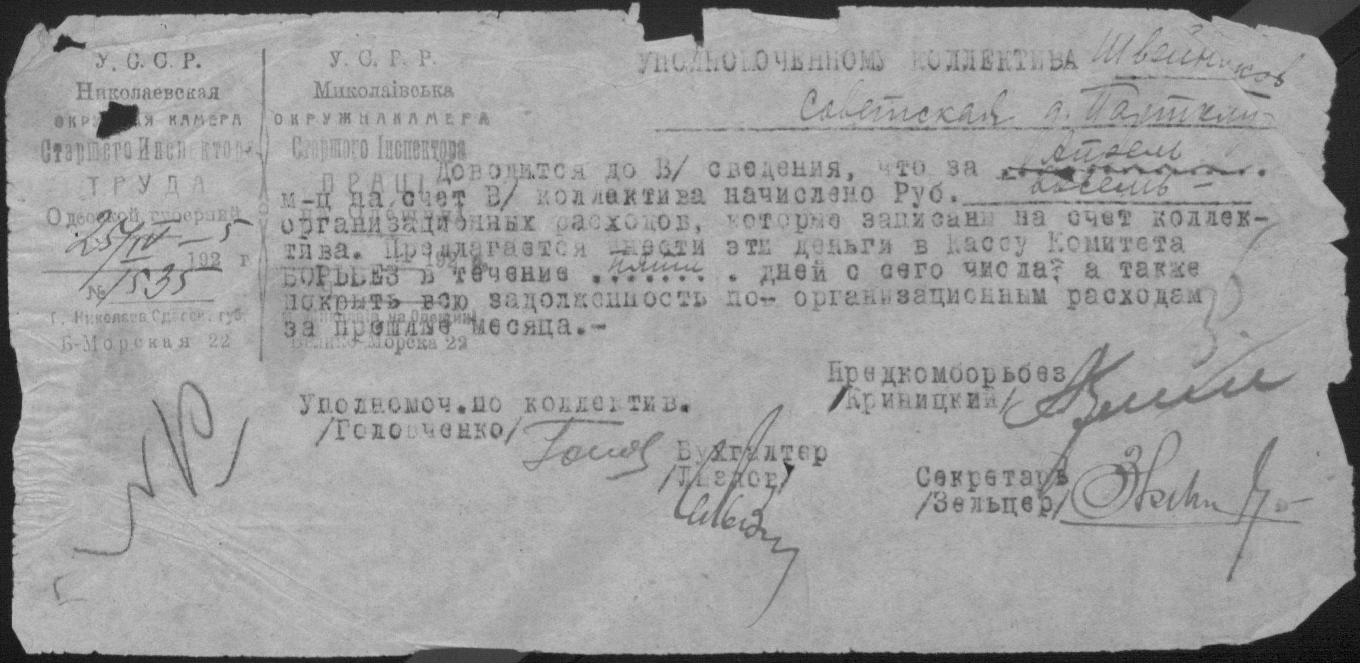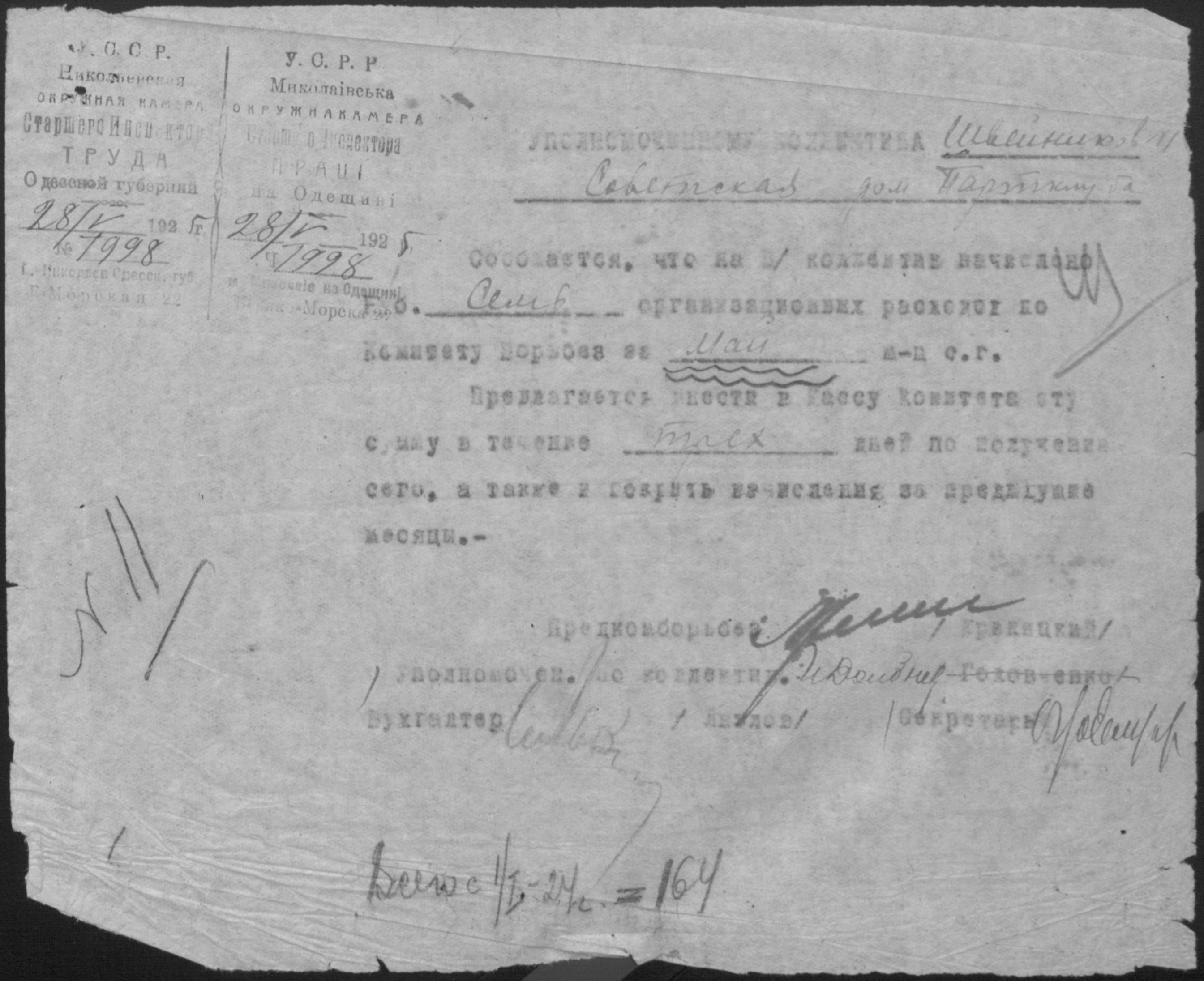 ◦ ◦ Фонд № Р-509 “Колектив безробітних швейників № 1 при Миколаївському окружному комітеті по боротьбі з безробіттям”