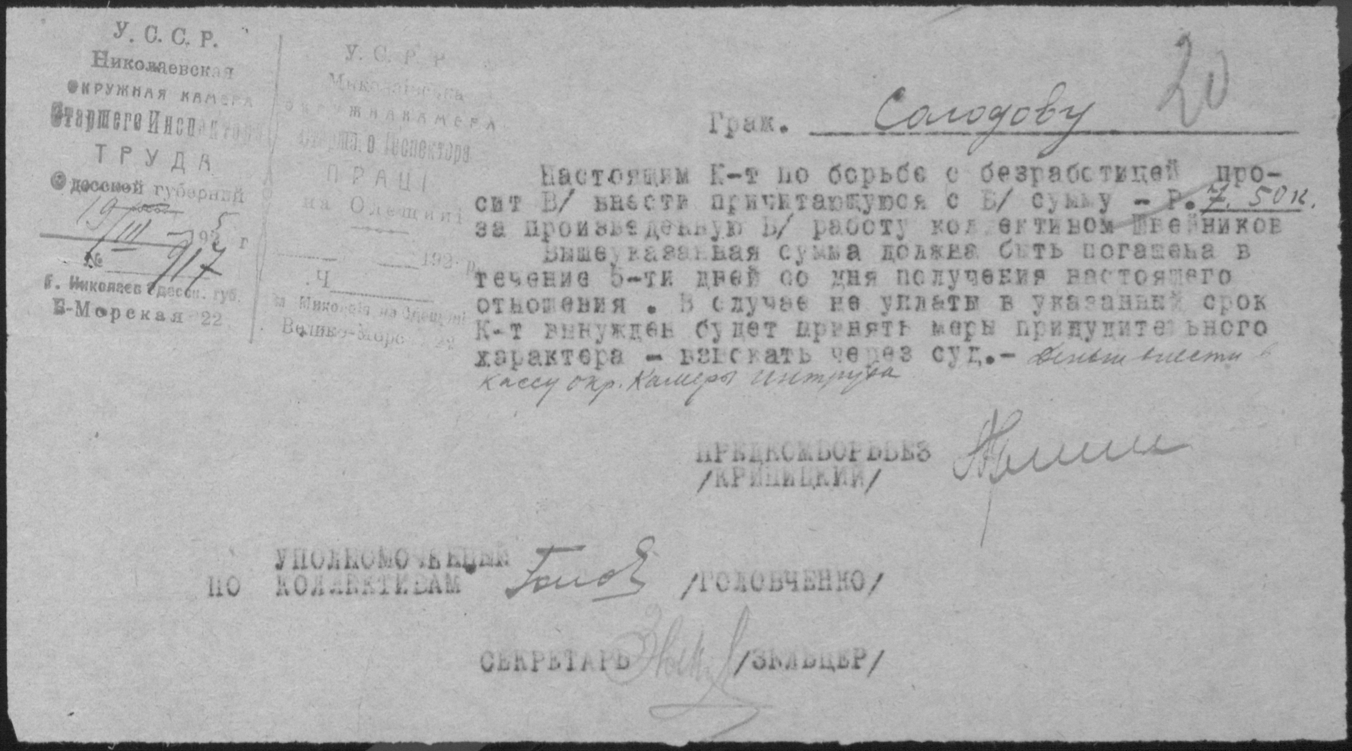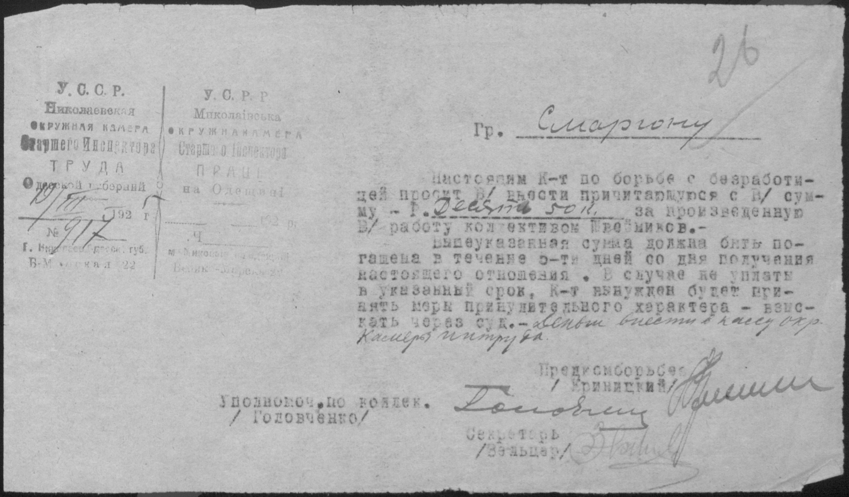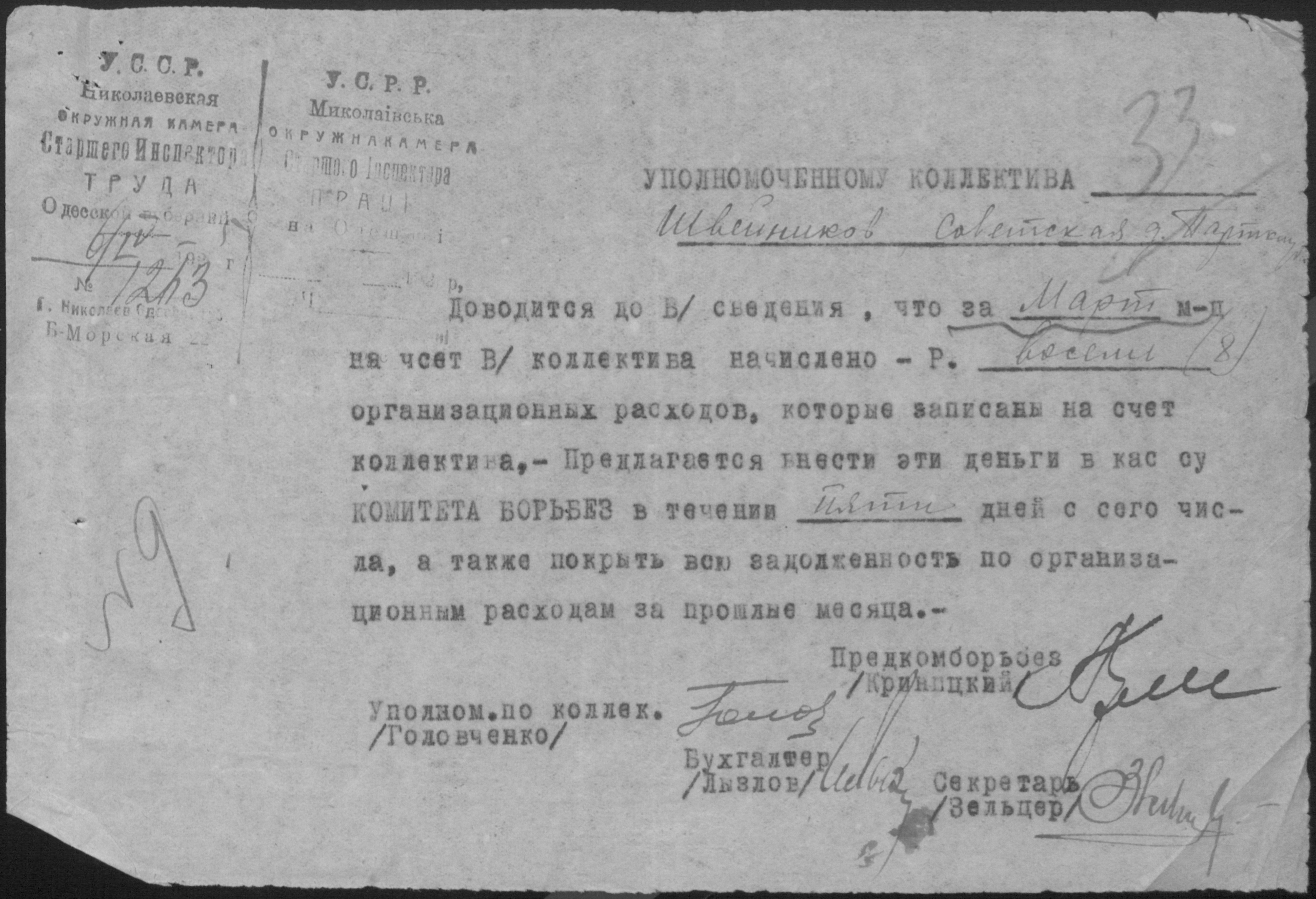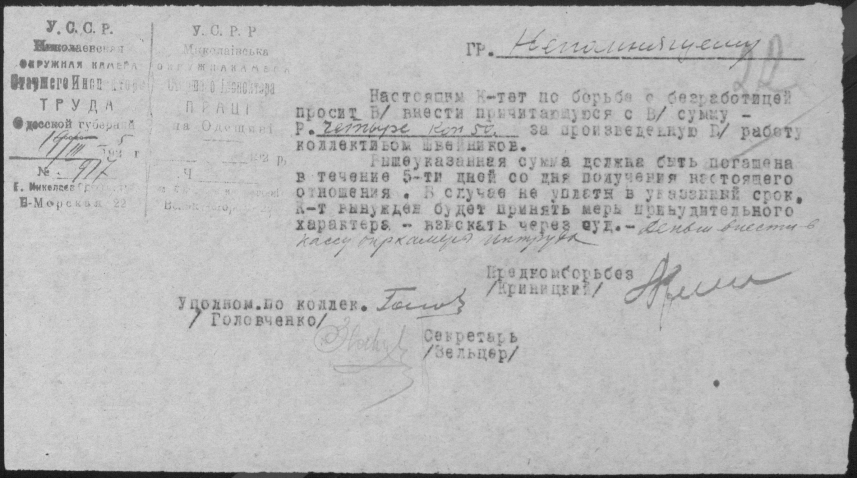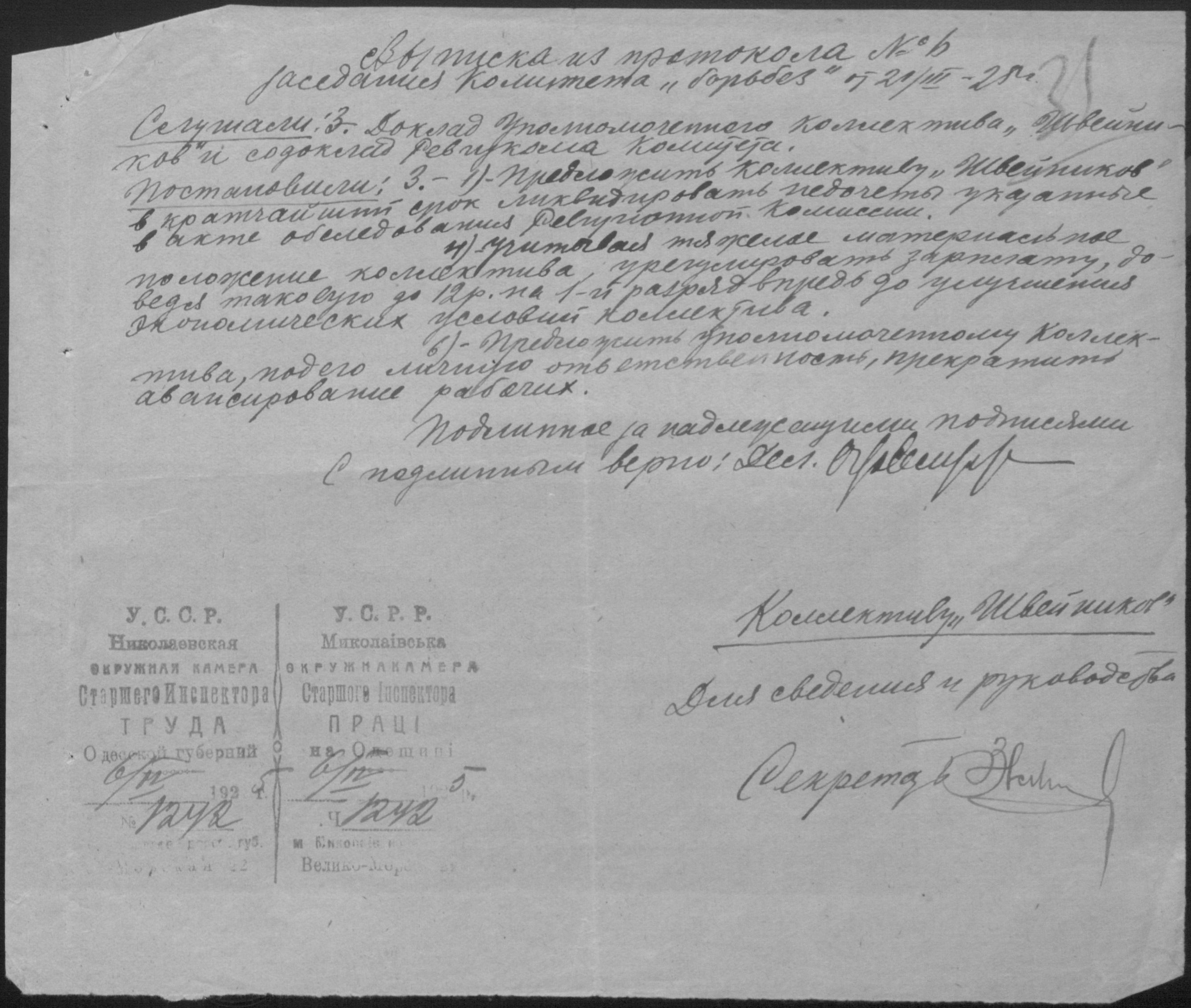 ◦ ◦ Фонд № Р-509 “Колектив безробітних швейників № 1 при Миколаївському окружному комітеті по боротьбі з безробіттям”