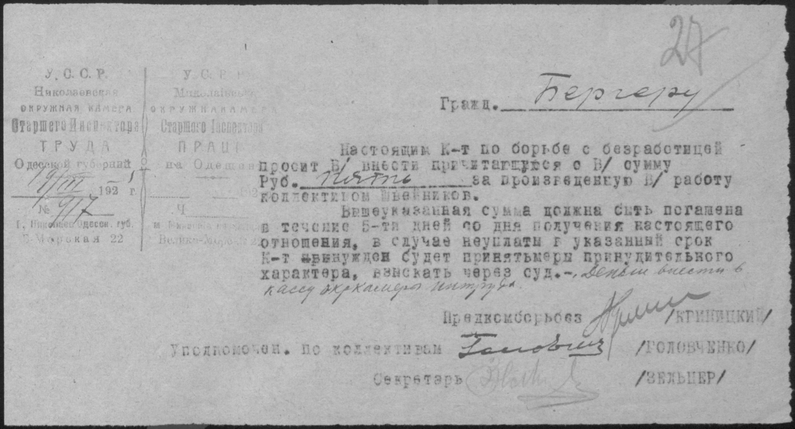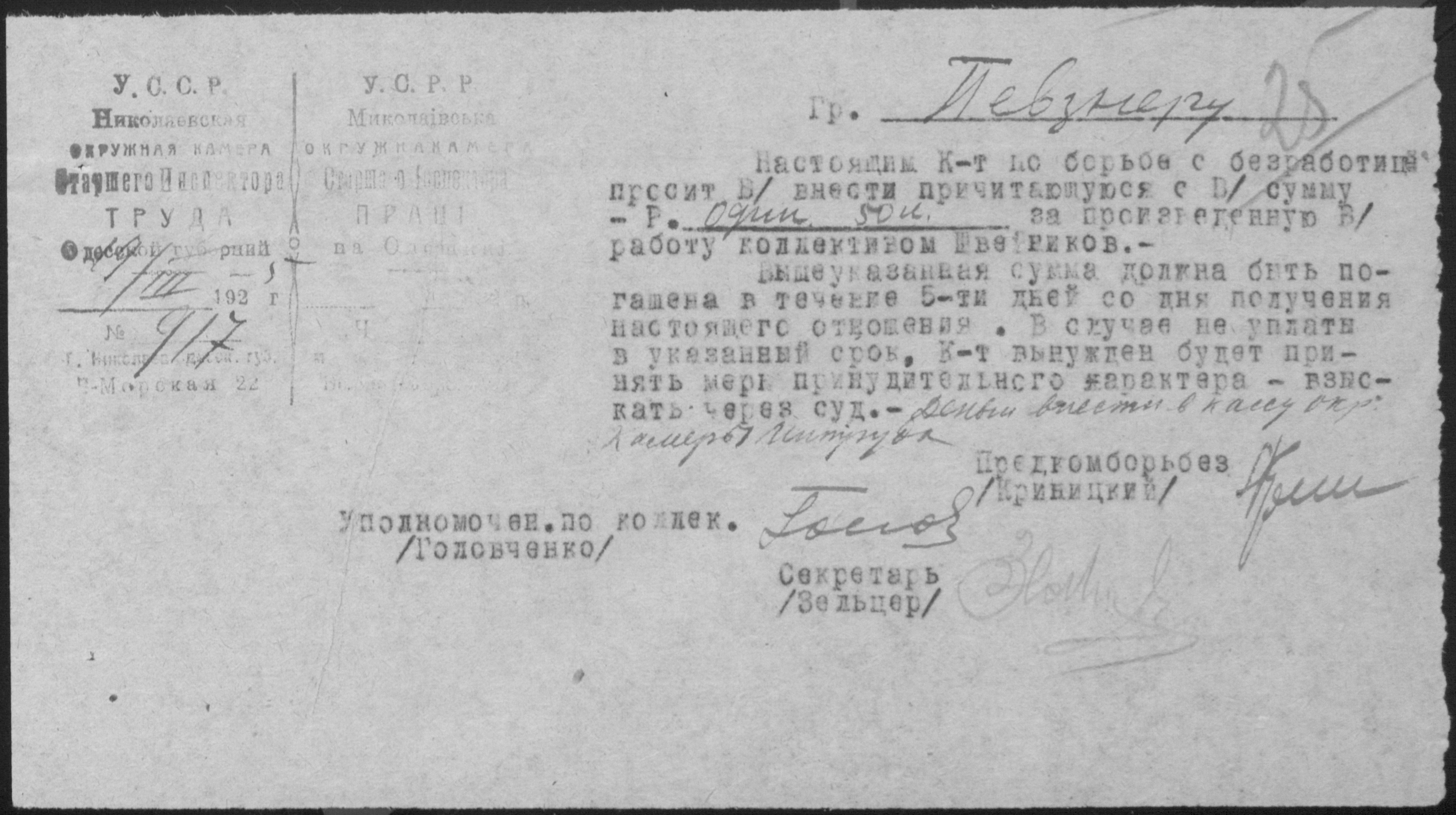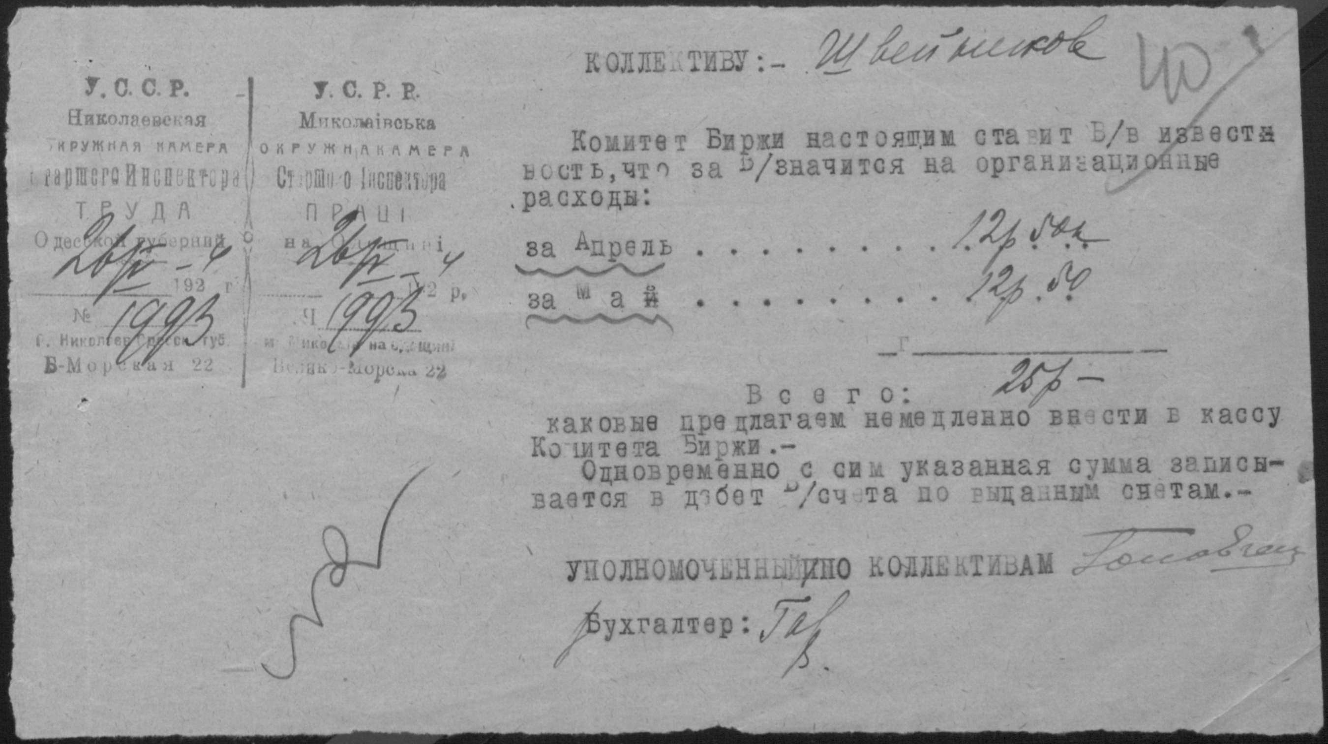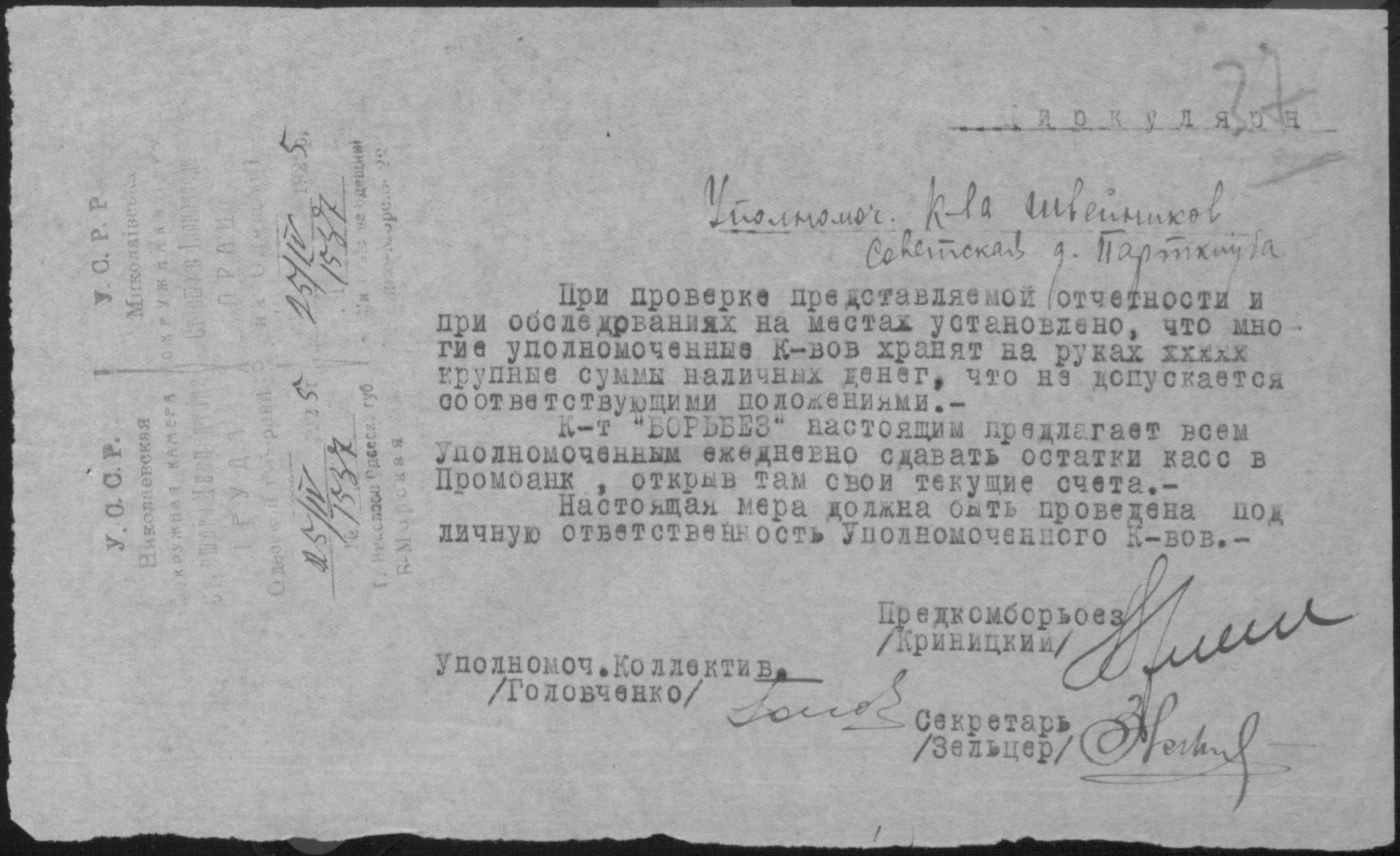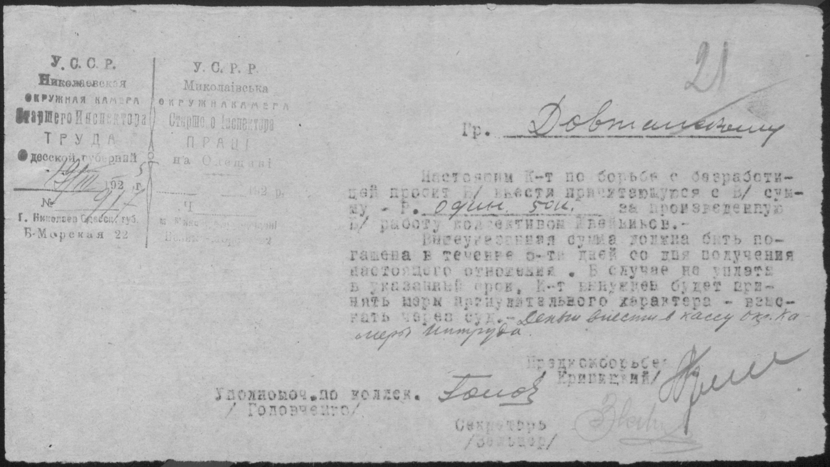 ◦ ◦ Фонд № Р-509 “Колектив безробітних швейників № 1 при Миколаївському окружному комітеті по боротьбі з безробіттям”
