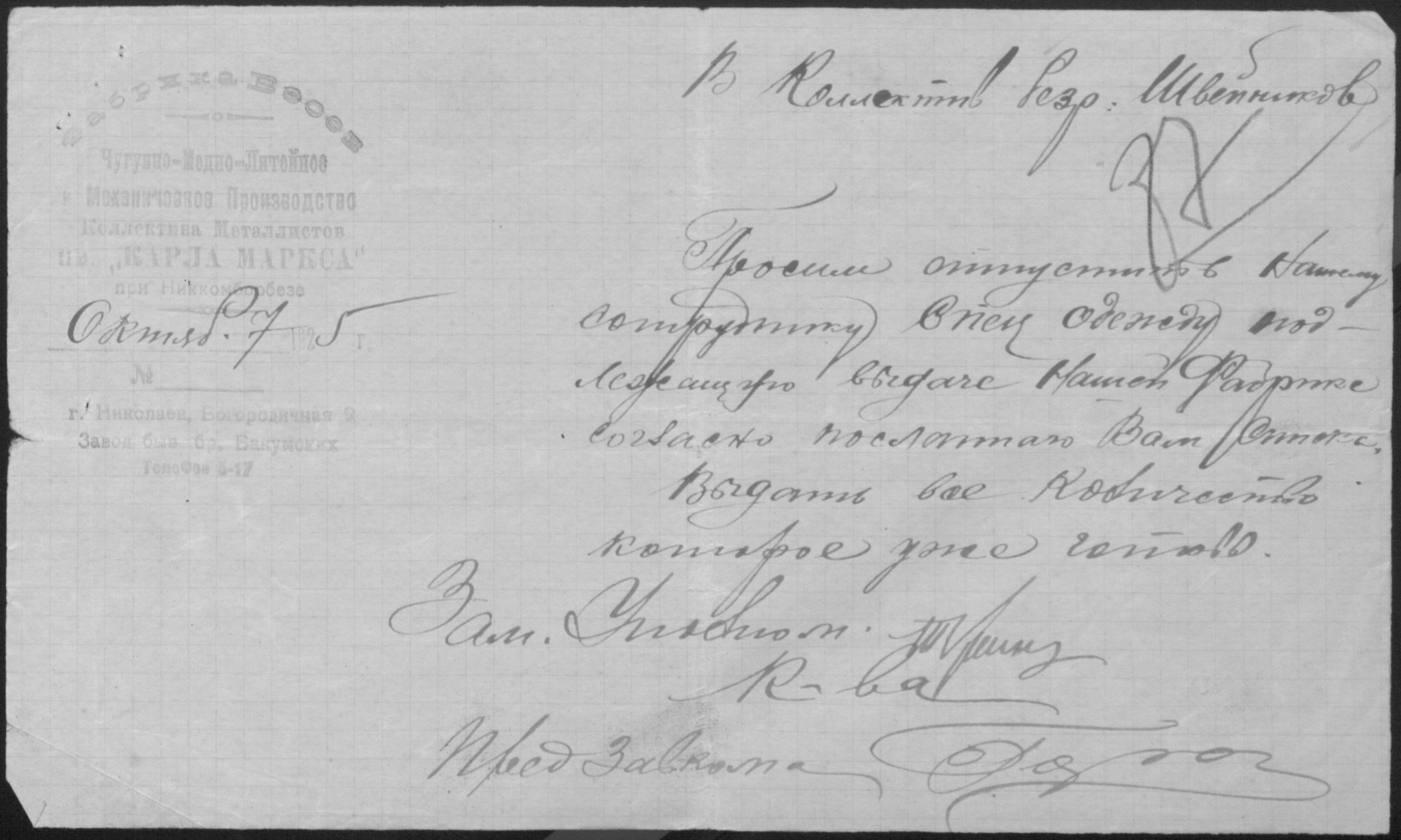 ◦ ◦ Фонд № Р-509 “Колектив безробітних швейників № 1 при Миколаївському окружному комітеті по боротьбі з безробіттям”