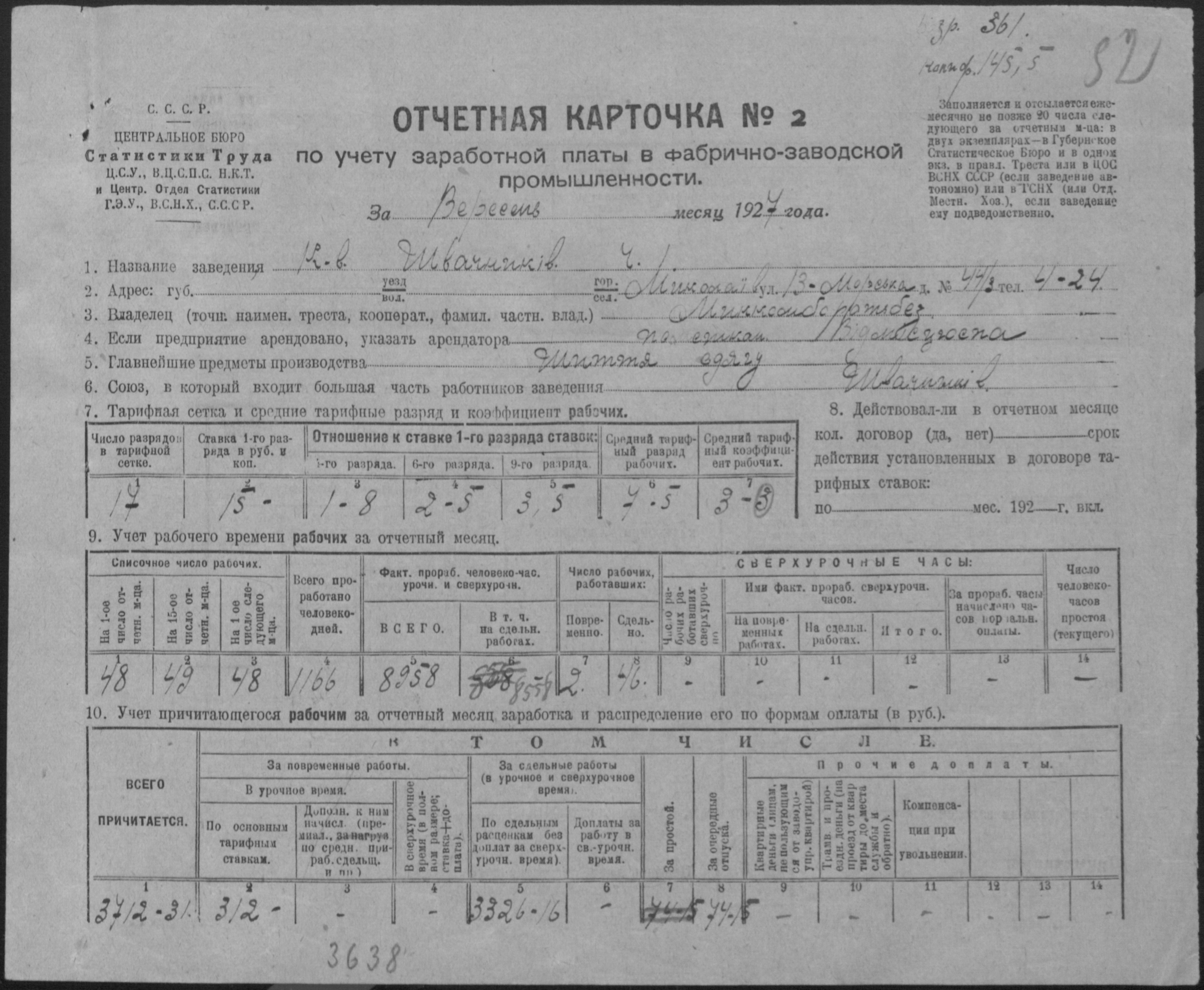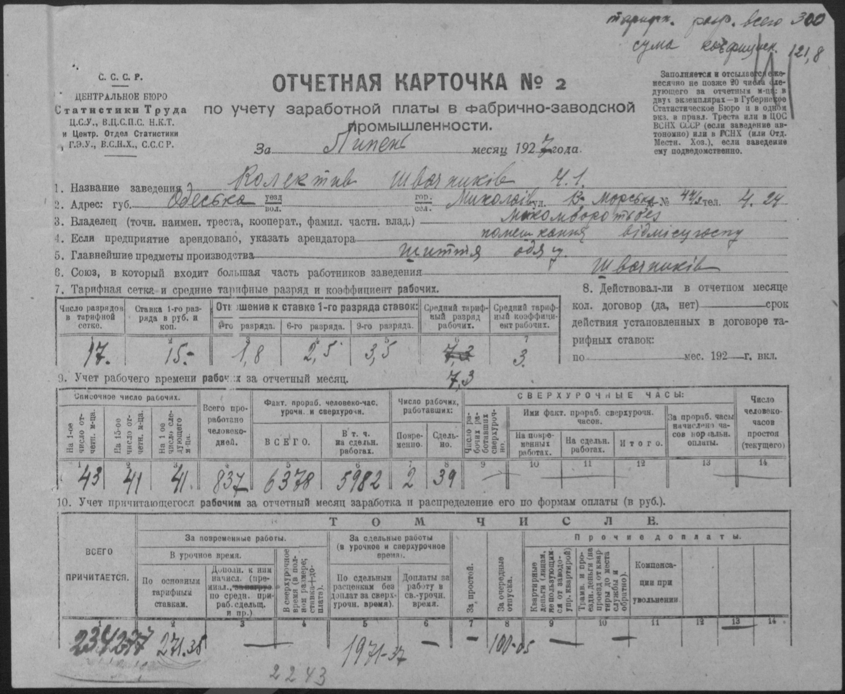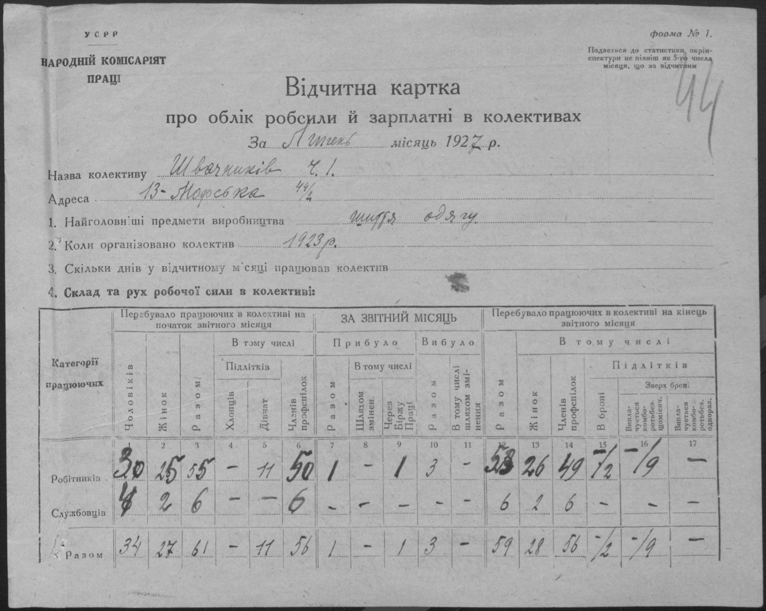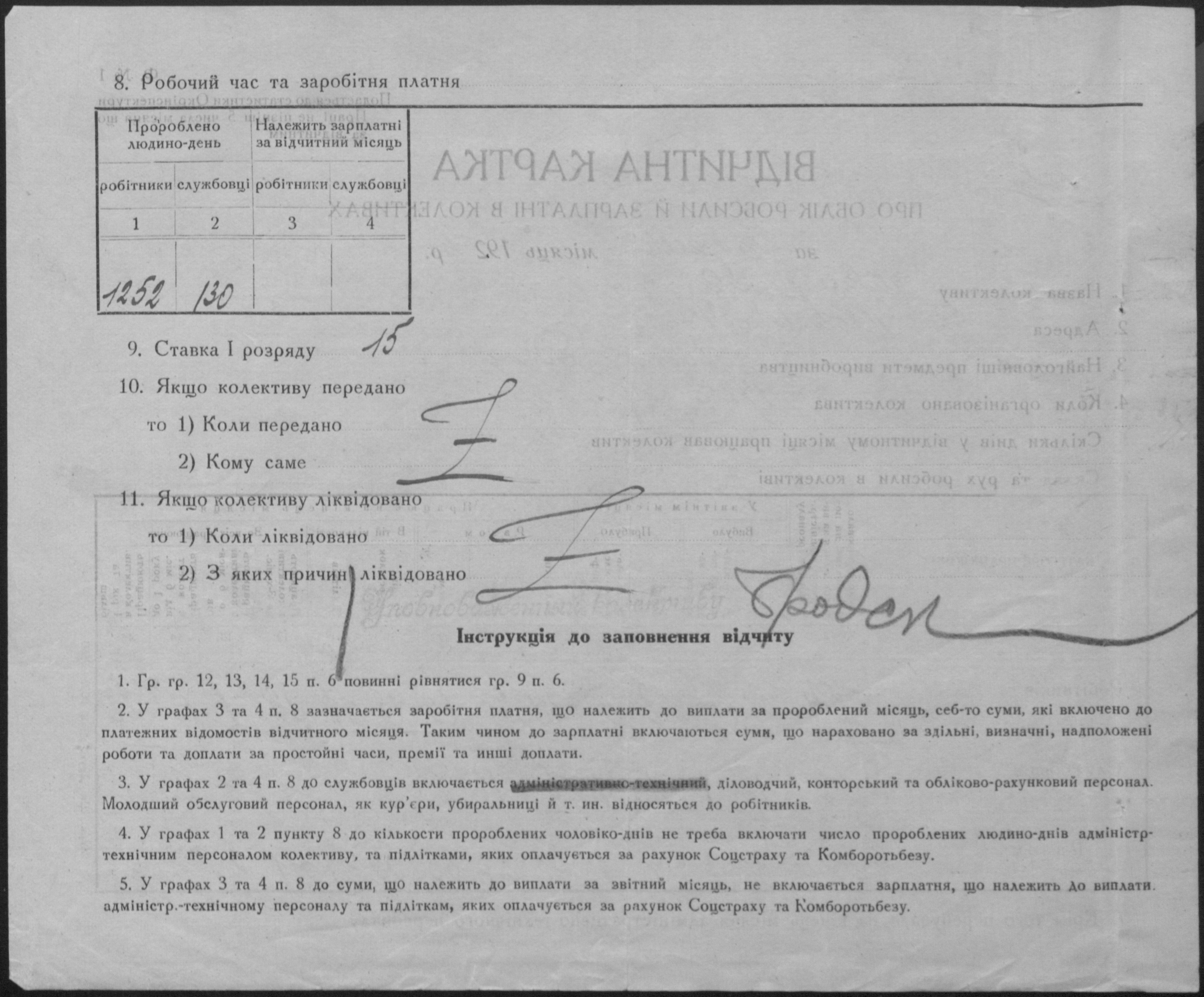 • • • • Справа № 12 “Звітні картки з обліку праці та заробітної плати, звіт обліку капіталів і фінансового стану колективу”