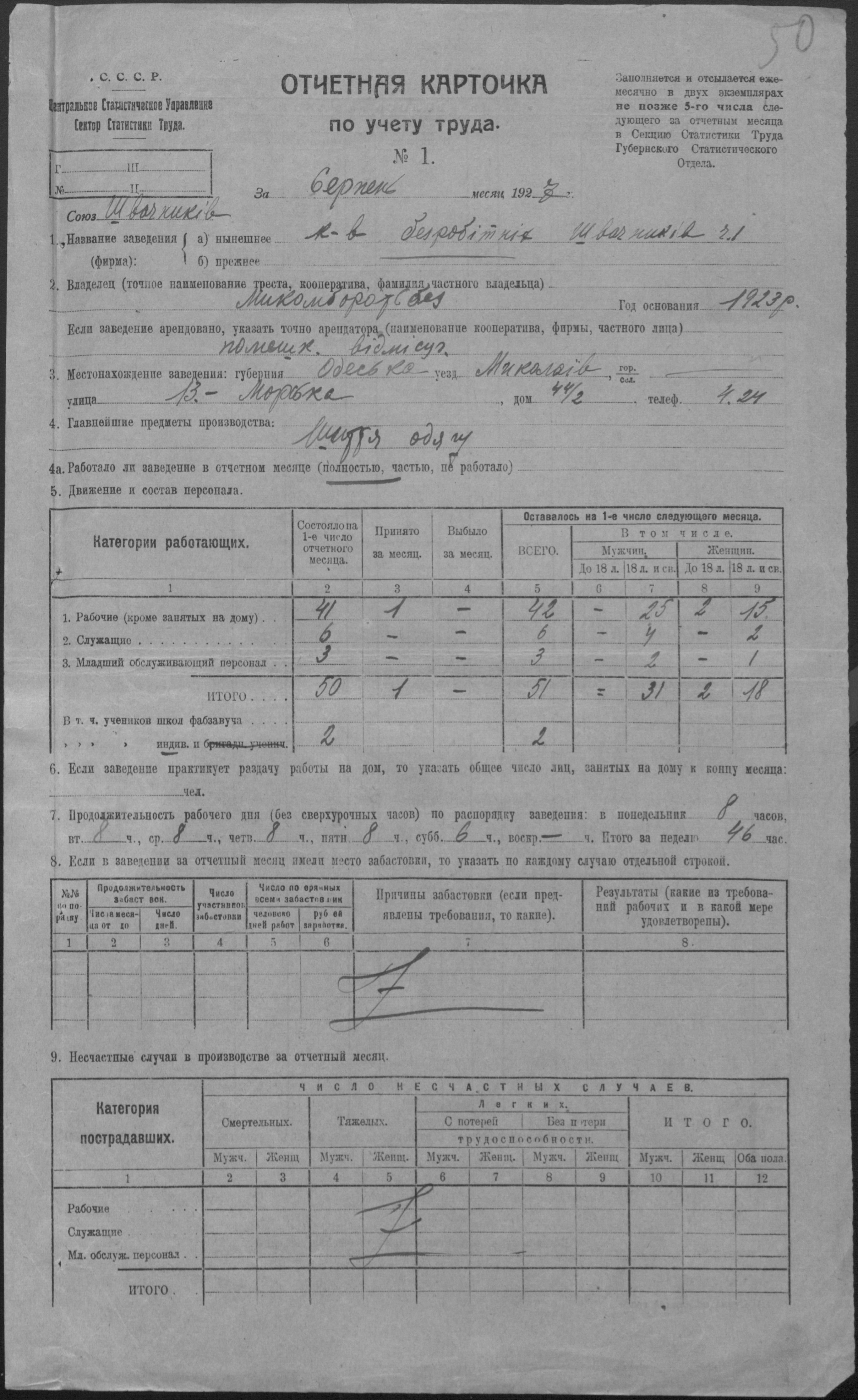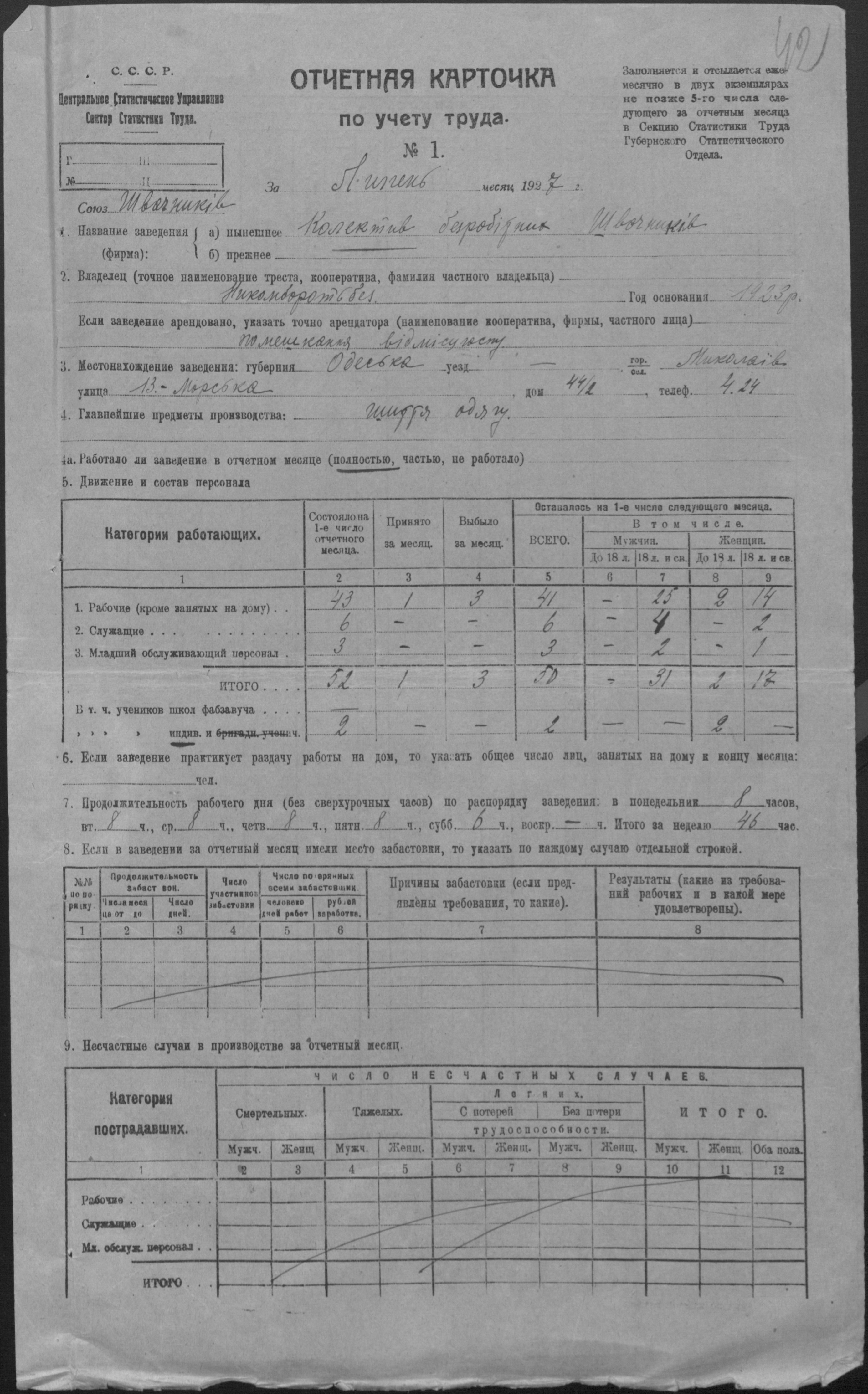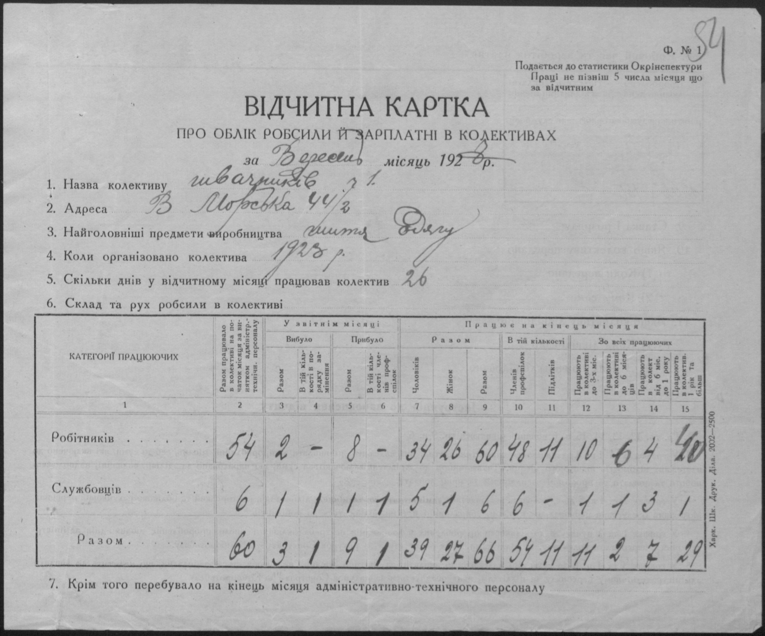 ◦ ◦ Фонд № Р-509 “Колектив безробітних швейників № 1 при Миколаївському окружному комітеті по боротьбі з безробіттям”