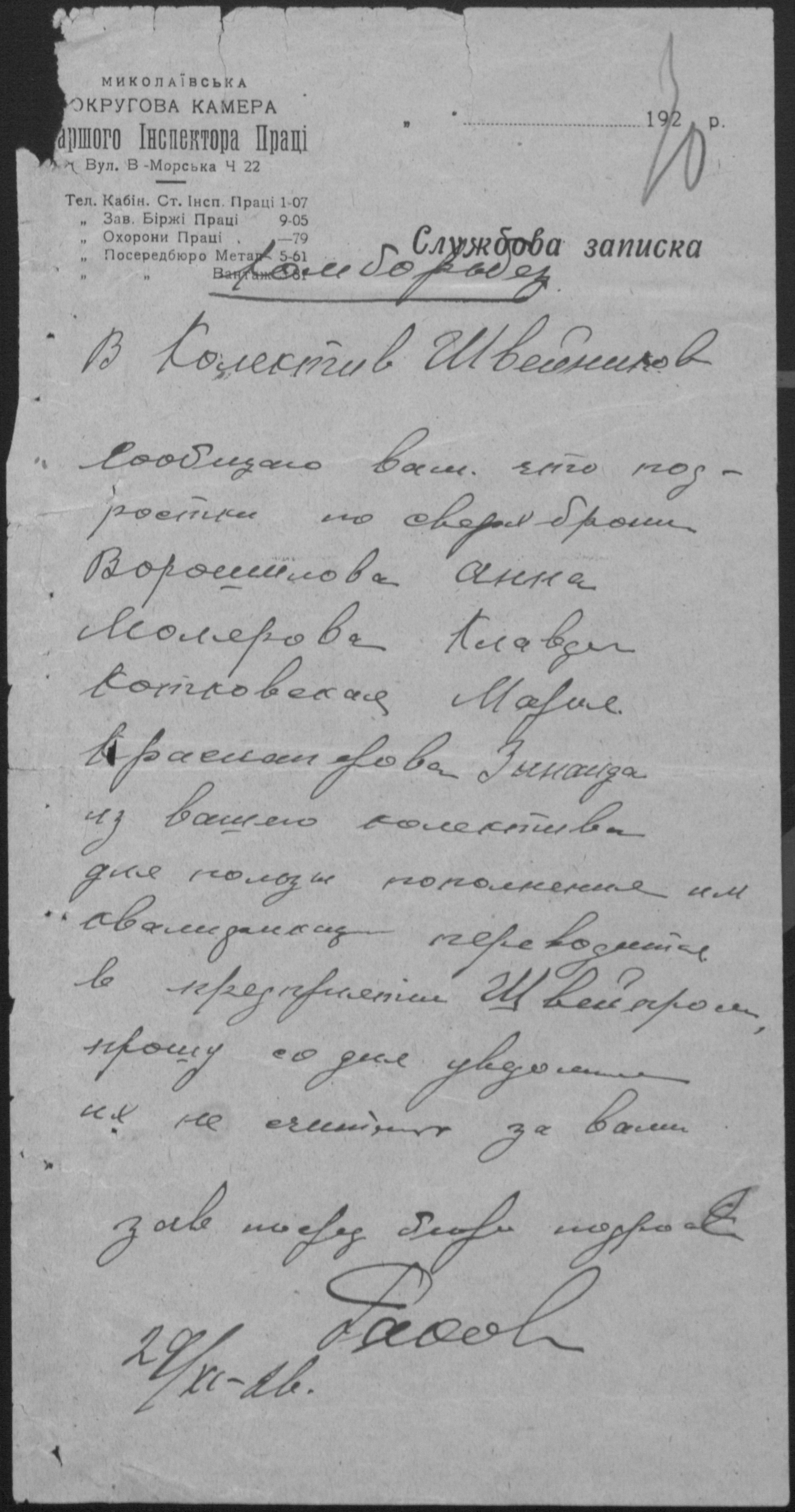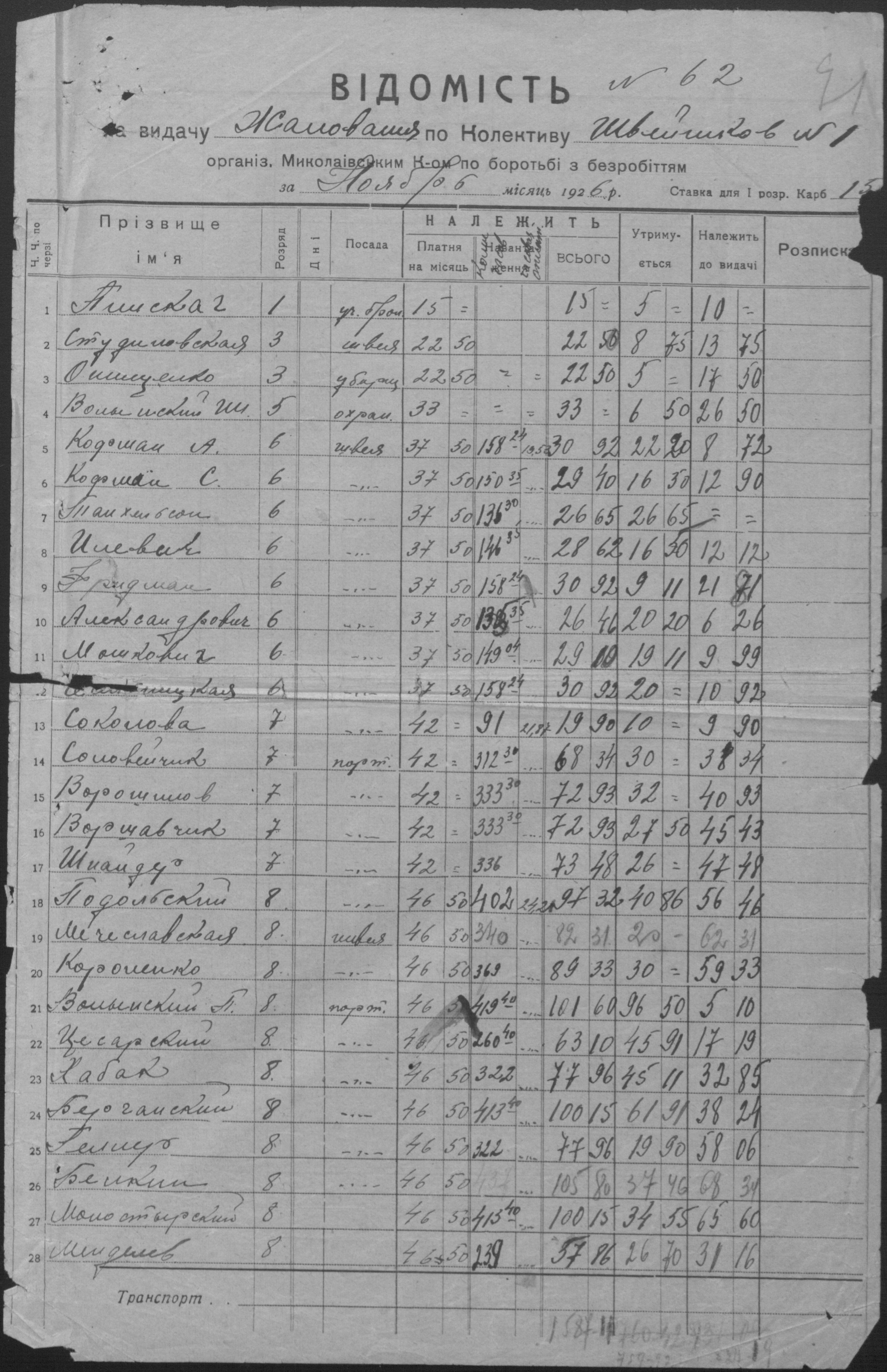 ◦ ◦ Фонд № Р-509 “Колектив безробітних швейників № 1 при Миколаївському окружному комітеті по боротьбі з безробіттям”