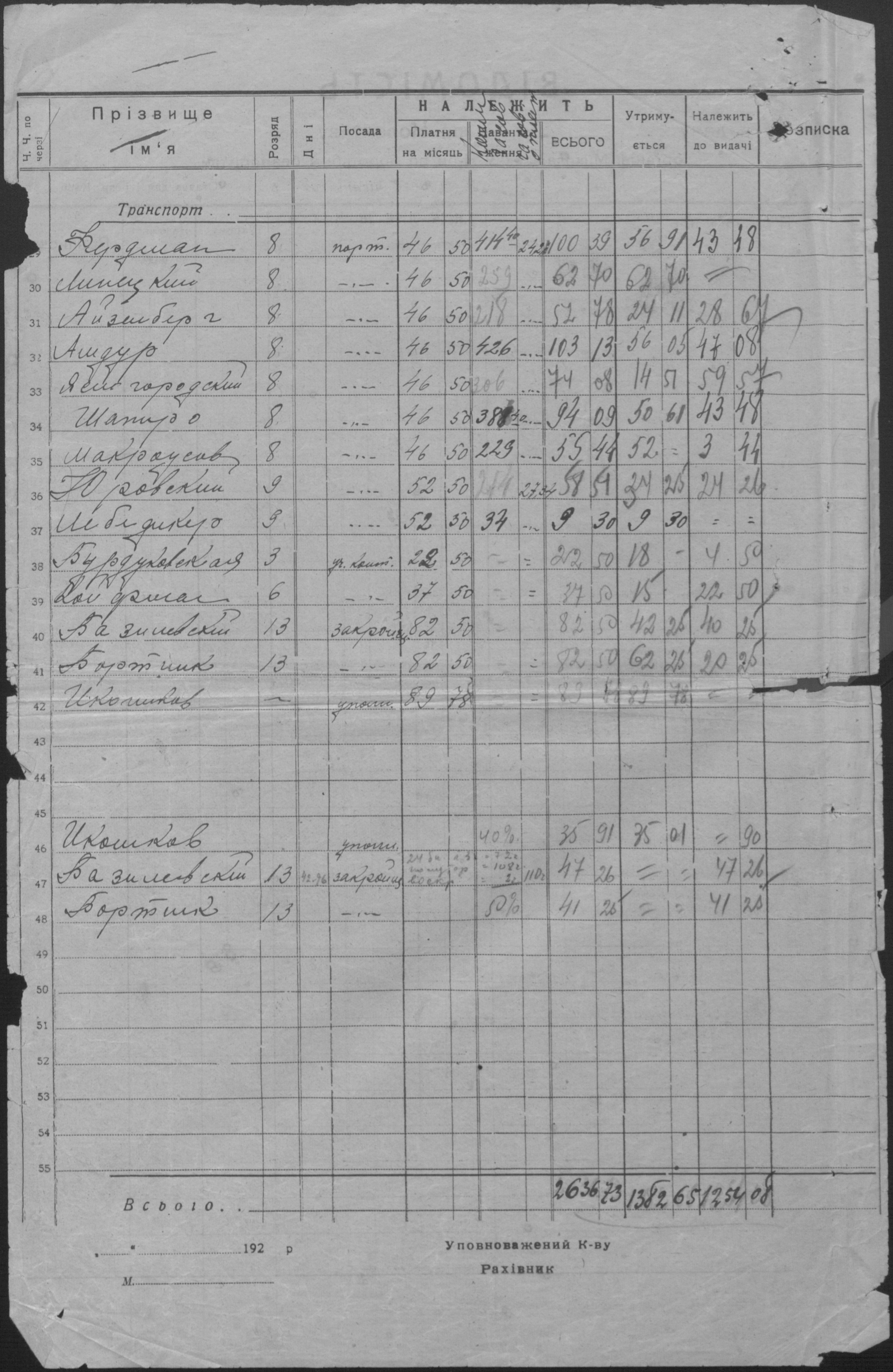 • • • • Справа № 13 “Списки членів колективу і відомості про них; відомості на отримання заробітної плати”