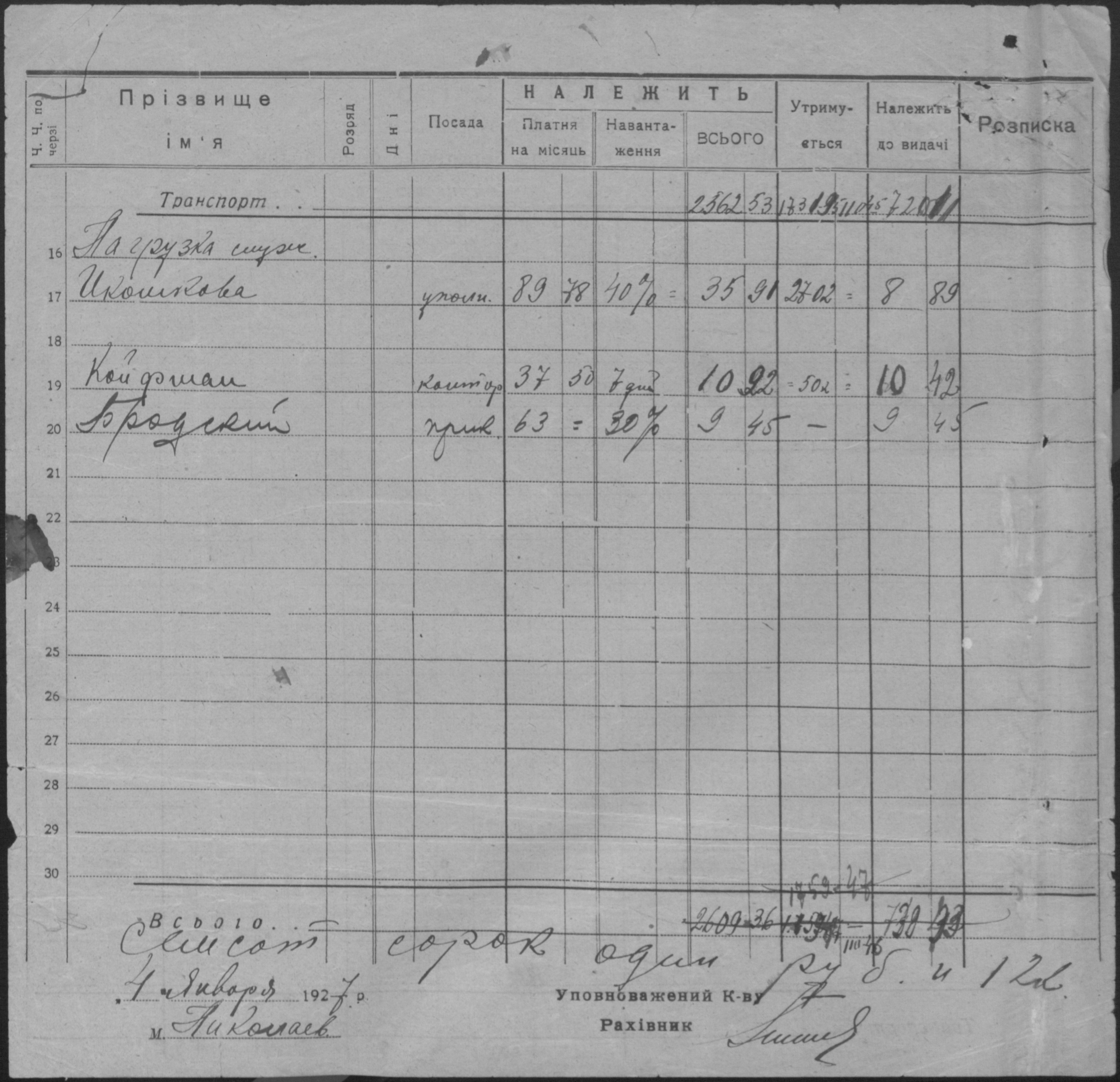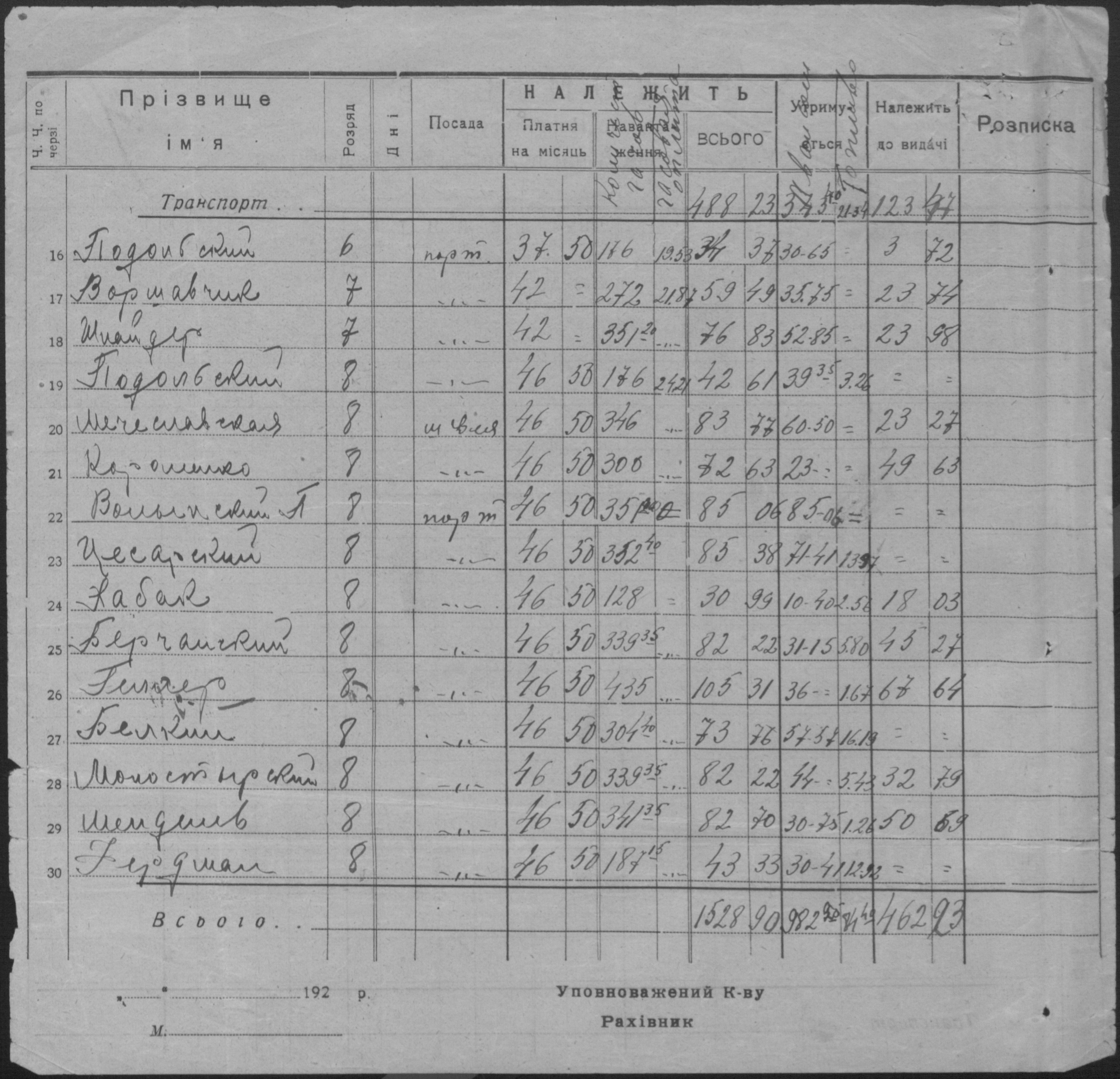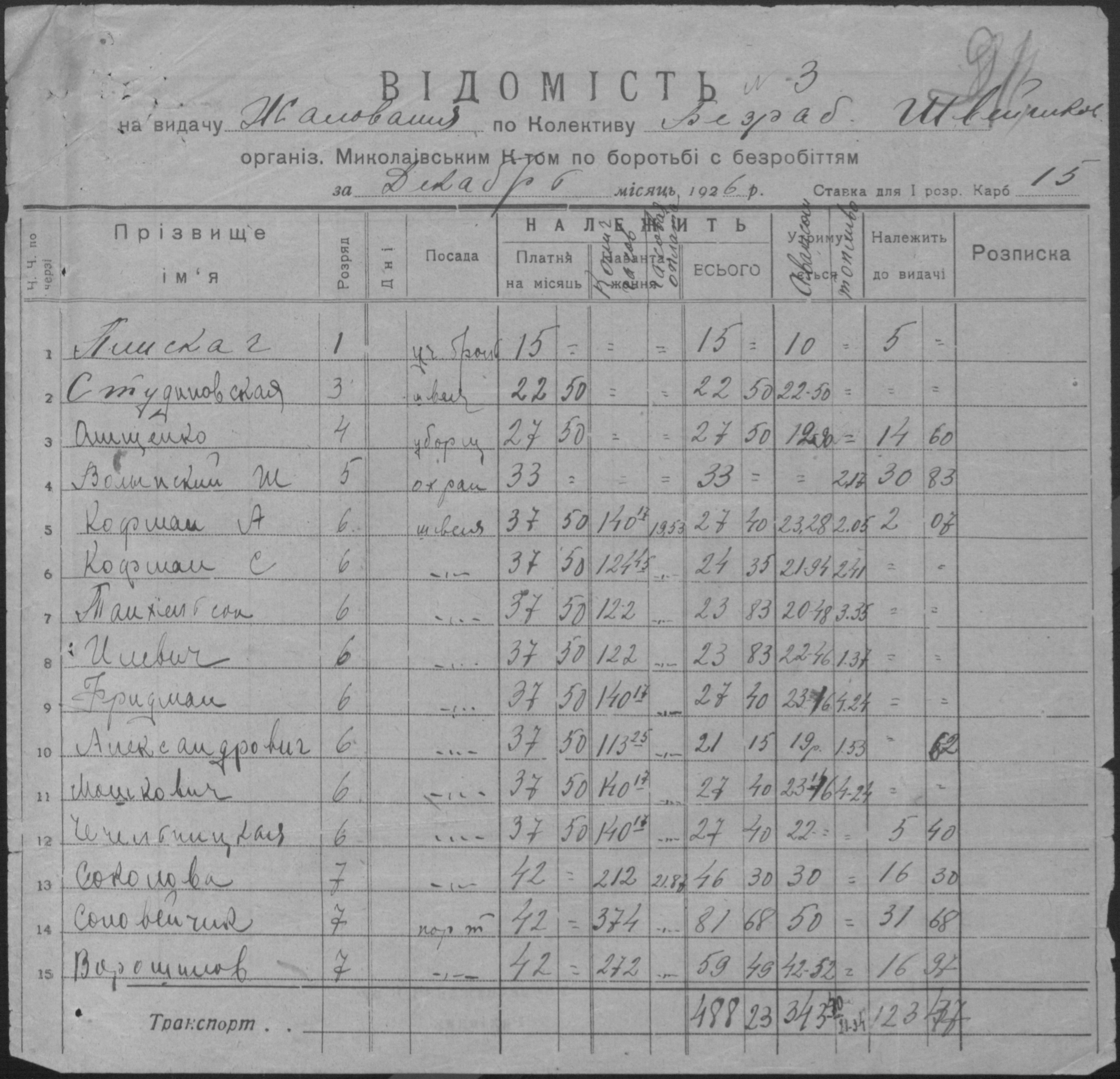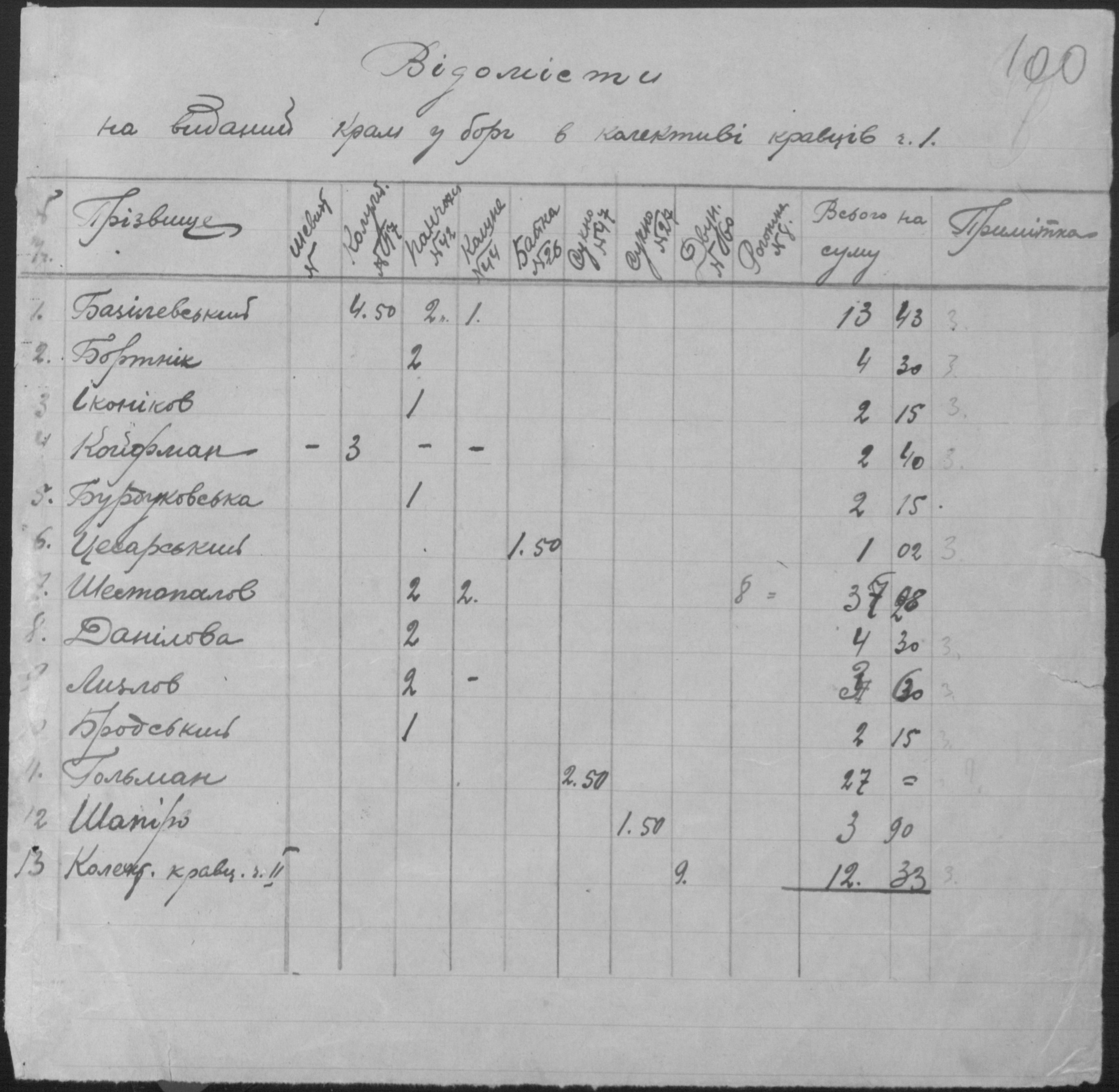 • • • • Справа № 13 “Списки членів колективу і відомості про них; відомості на отримання заробітної плати”
